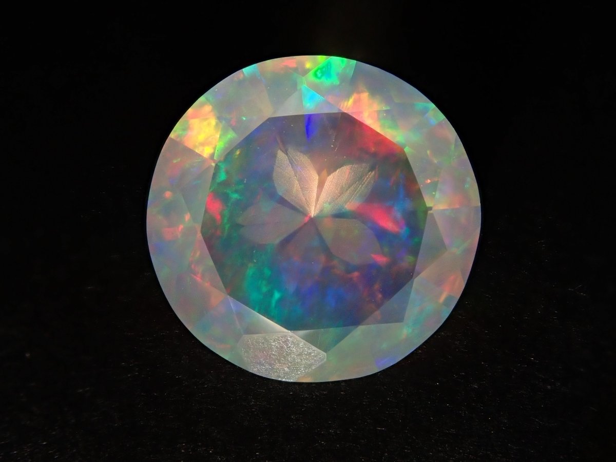 這是由清水寶石公司(Shimizu Precious Stones)出品的櫻花切割蛋白石。它是一顆9毫米/1.52毫米的墨西哥蛋白石。