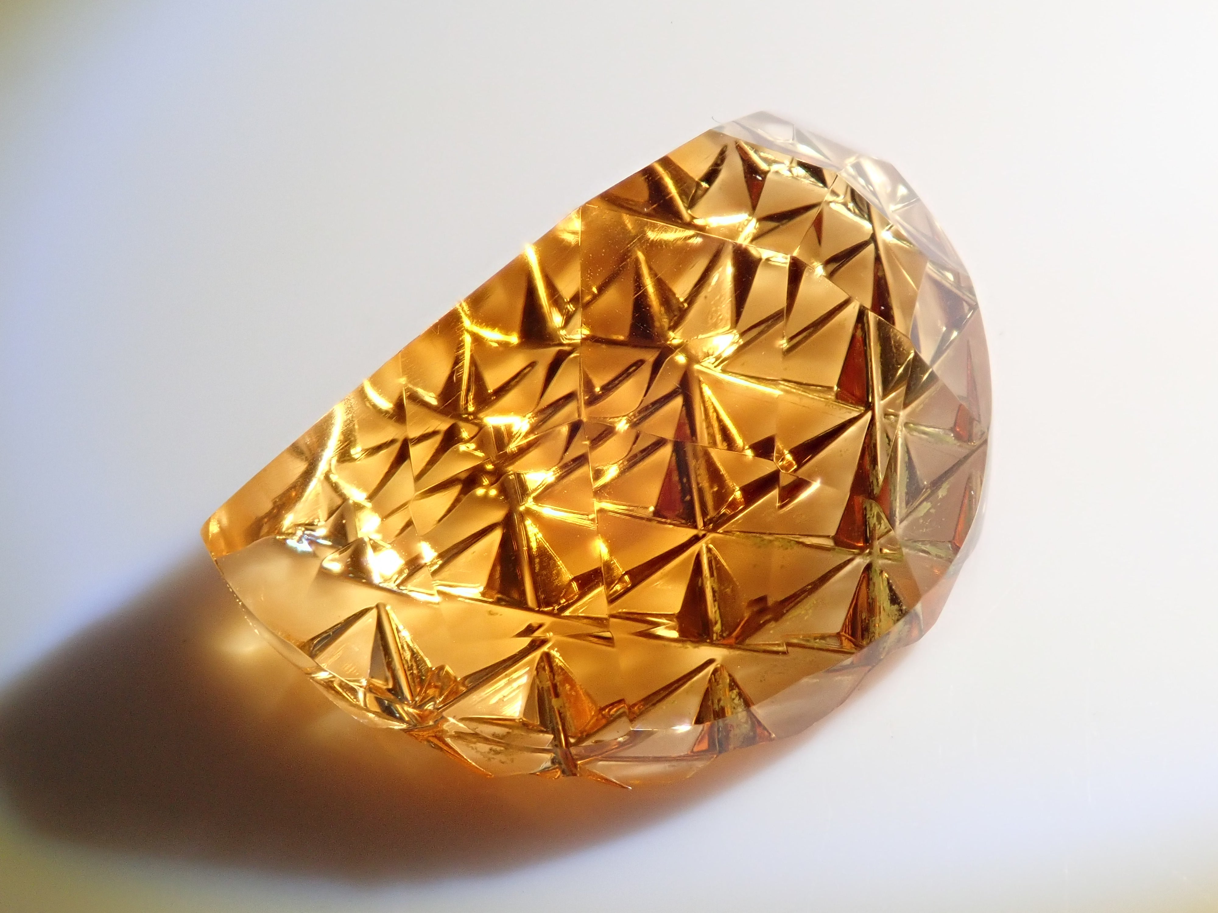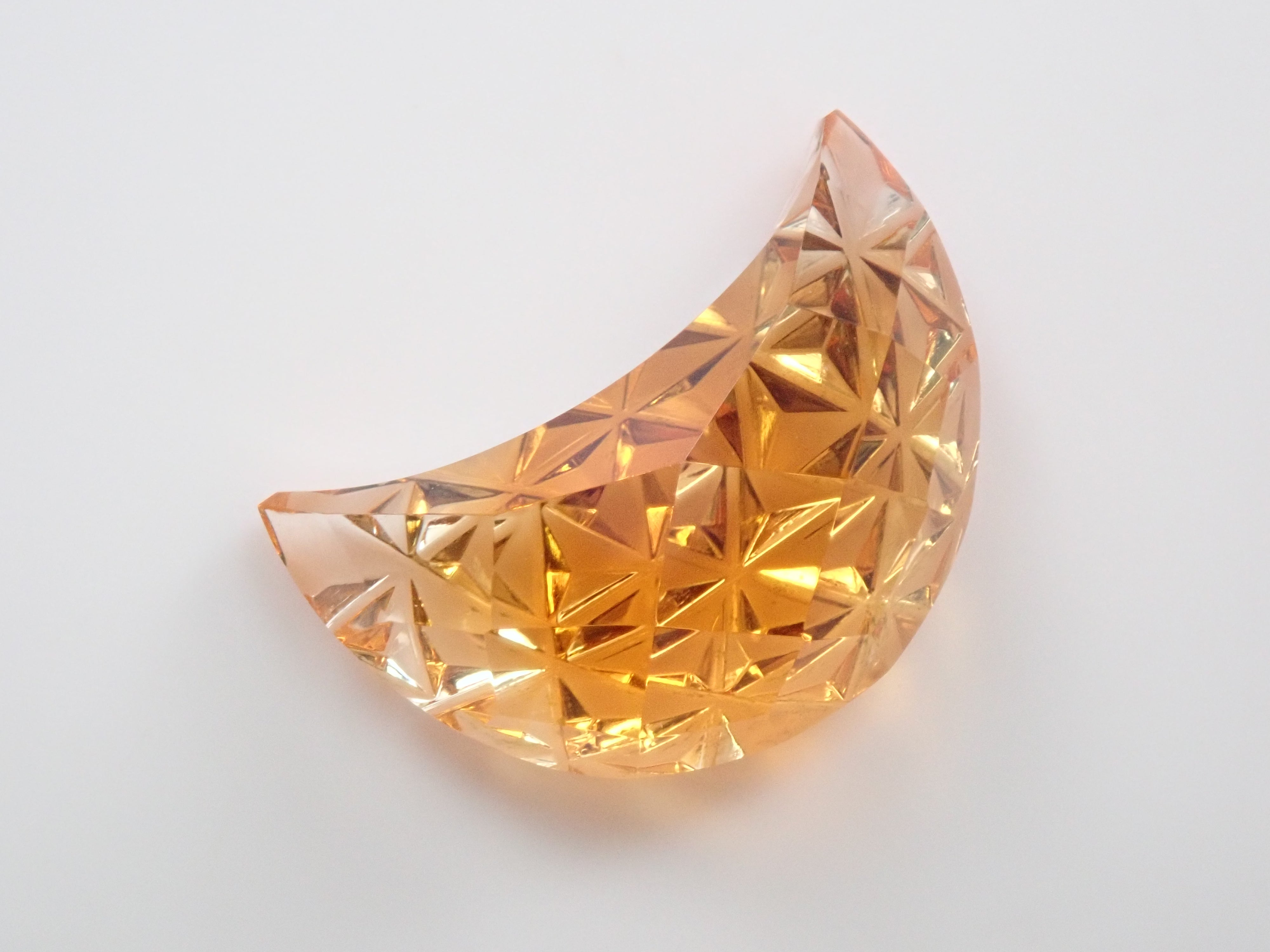 這是甲州高石切子的黃水晶“月形切子曉”,是清水奇蹟和深澤洋一先生的合作作品。