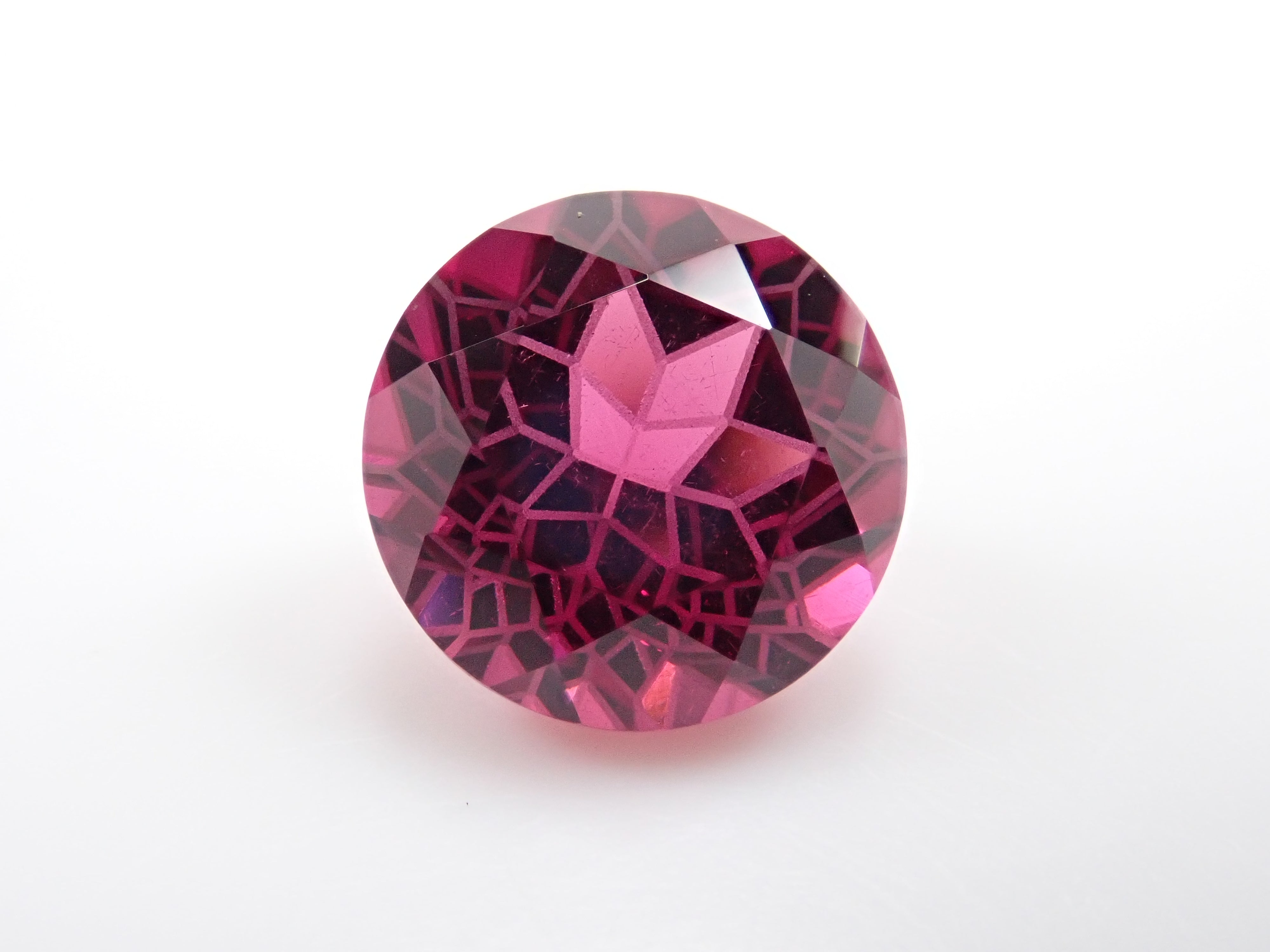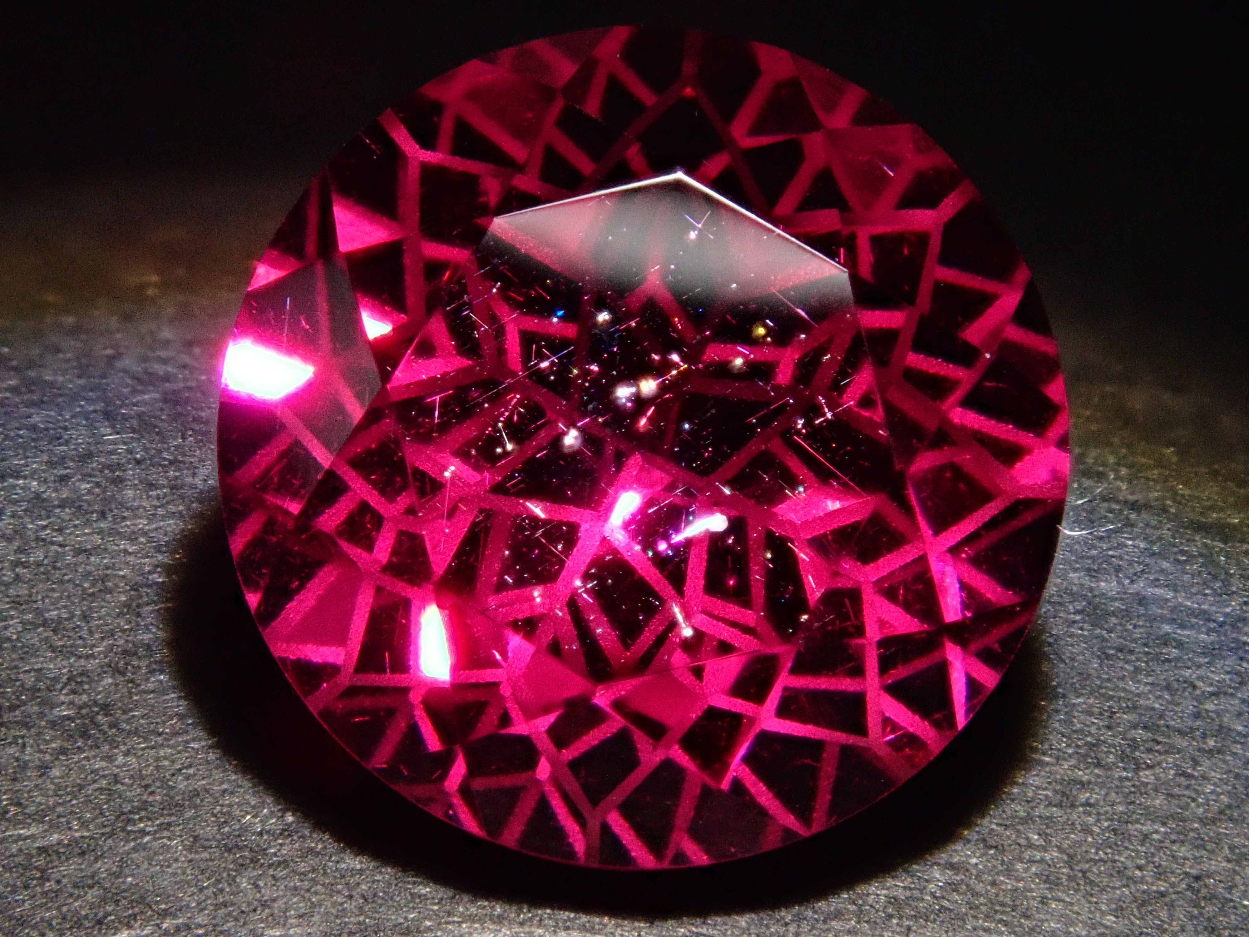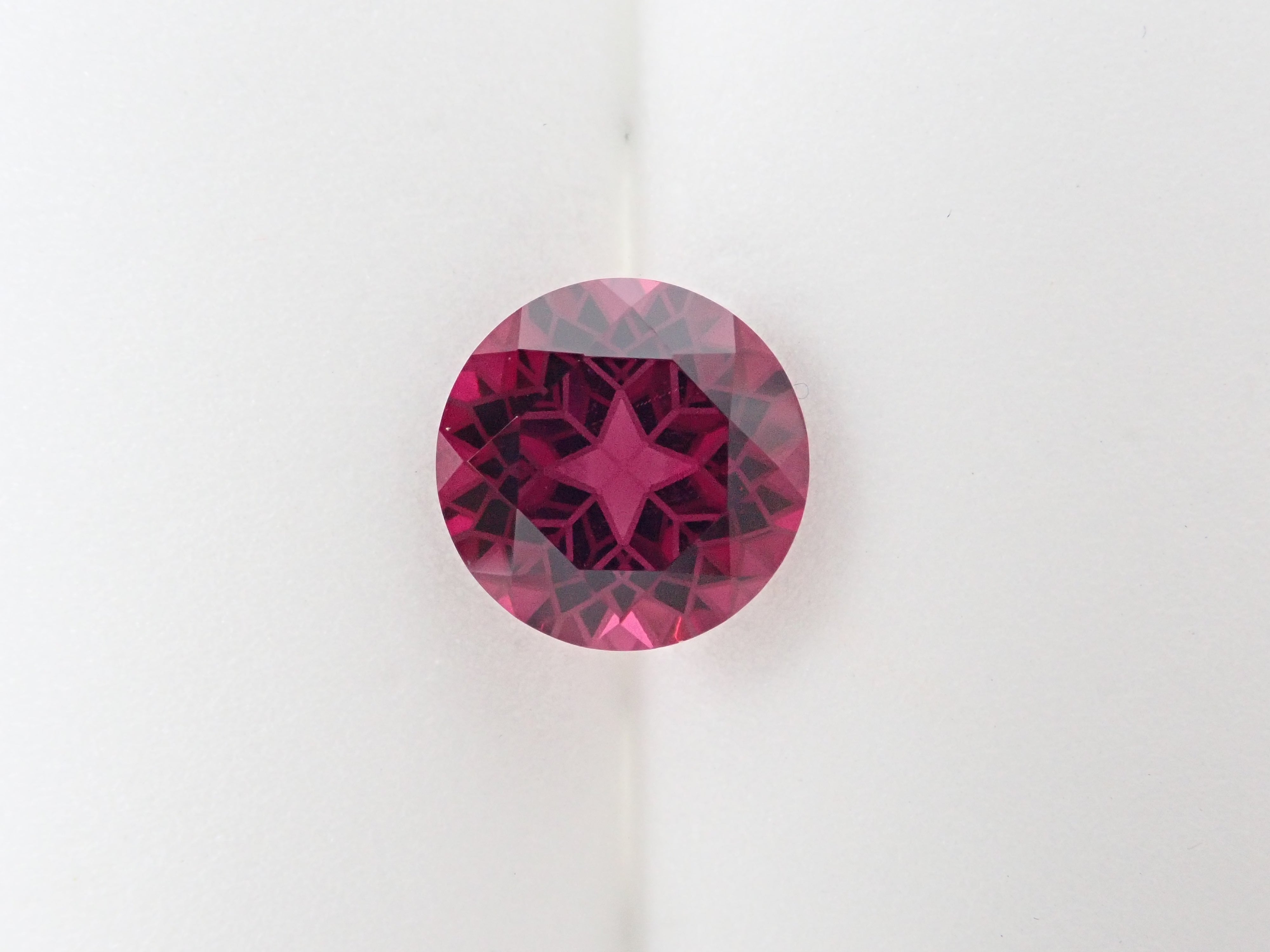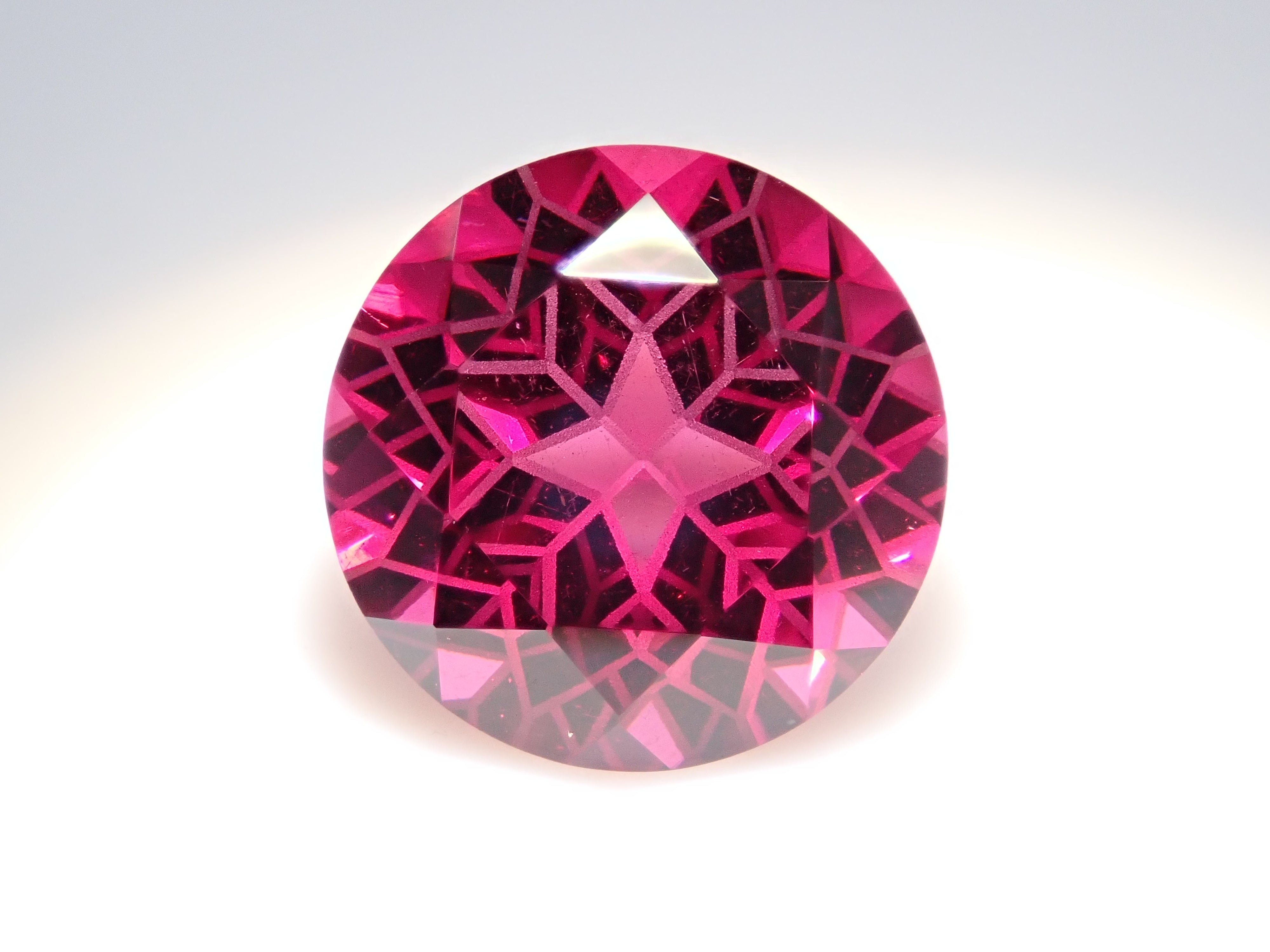 這是一顆9毫米蒲公英切割的鎂鋁榴石,由清水奇蹟(Shimizu Kiseki)打造。這是清水奇蹟與KARATZ合作的作品。