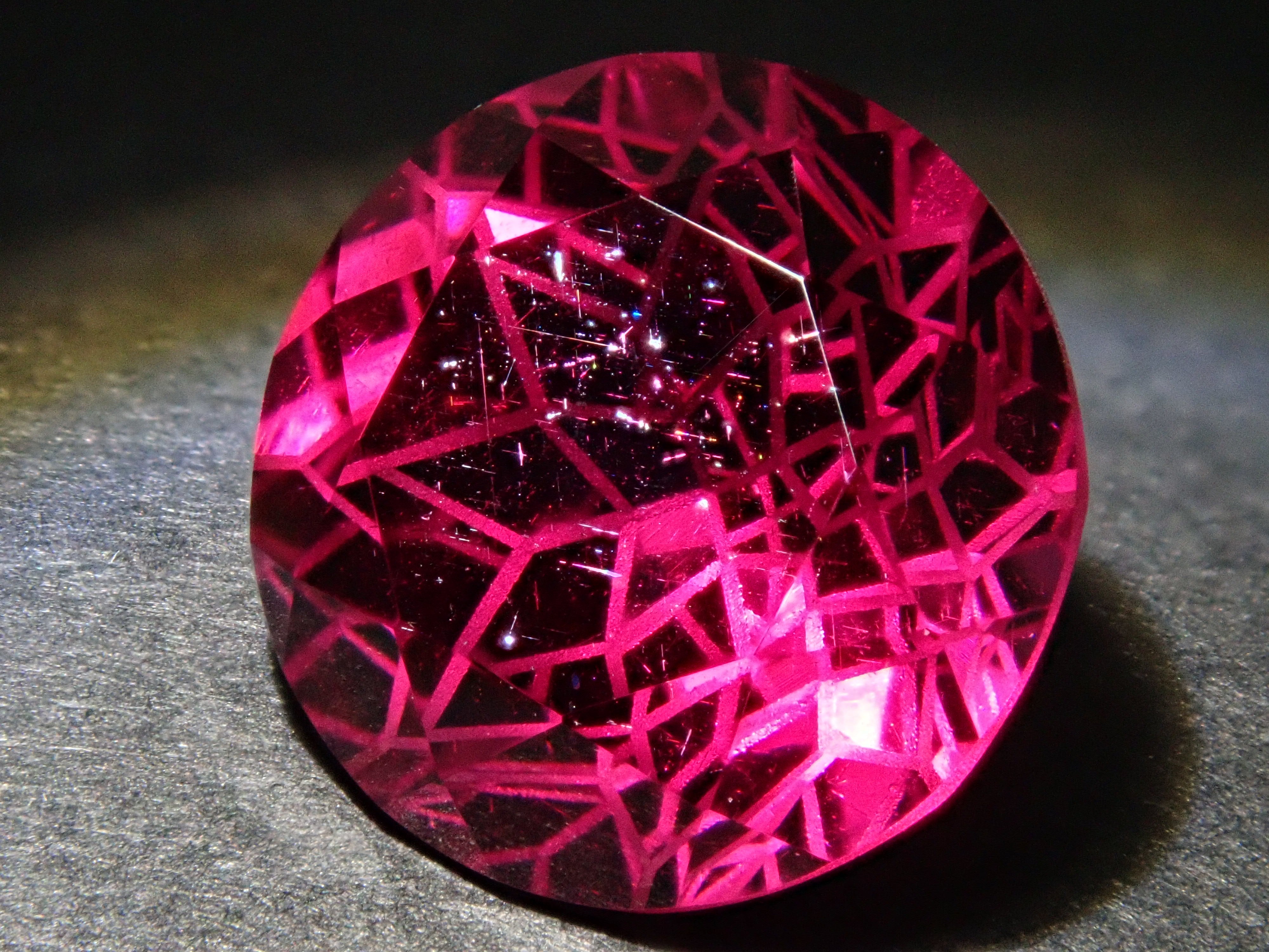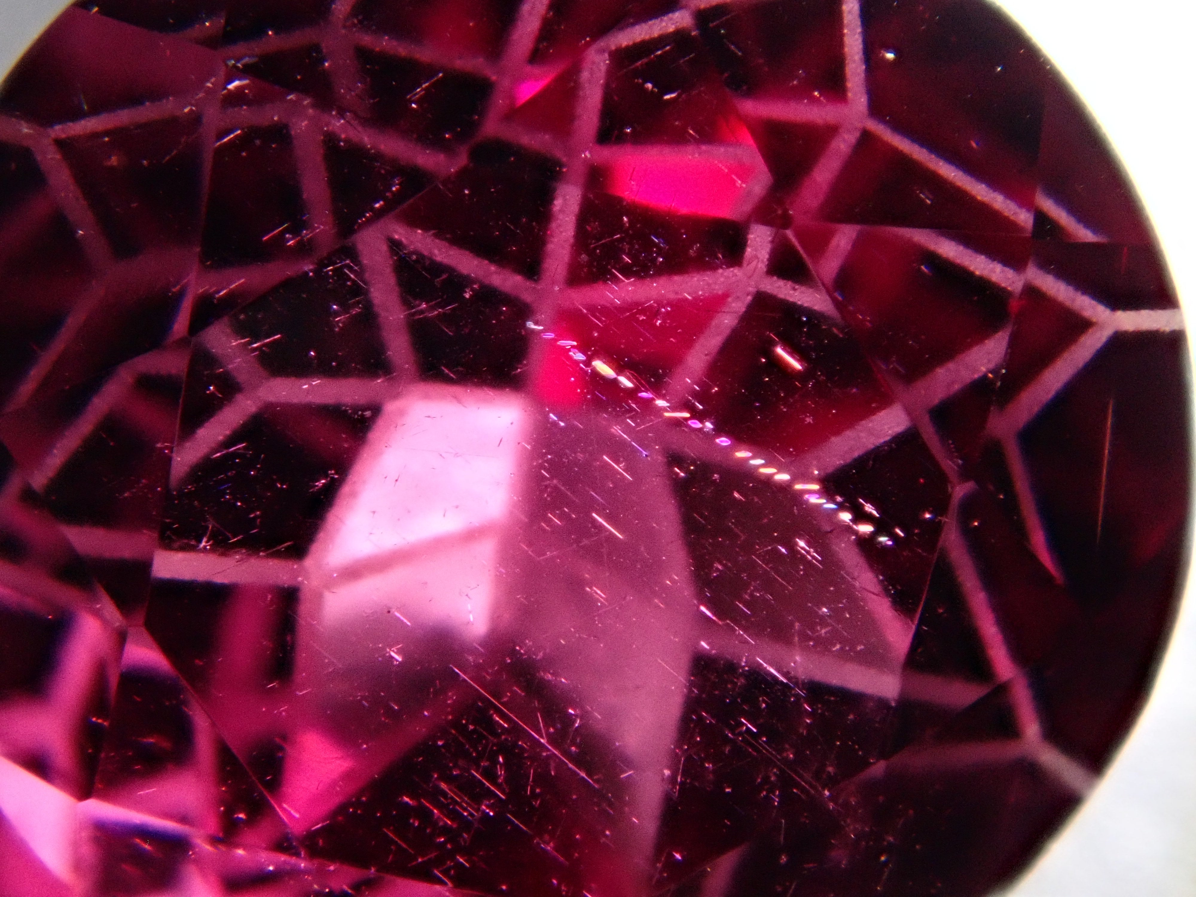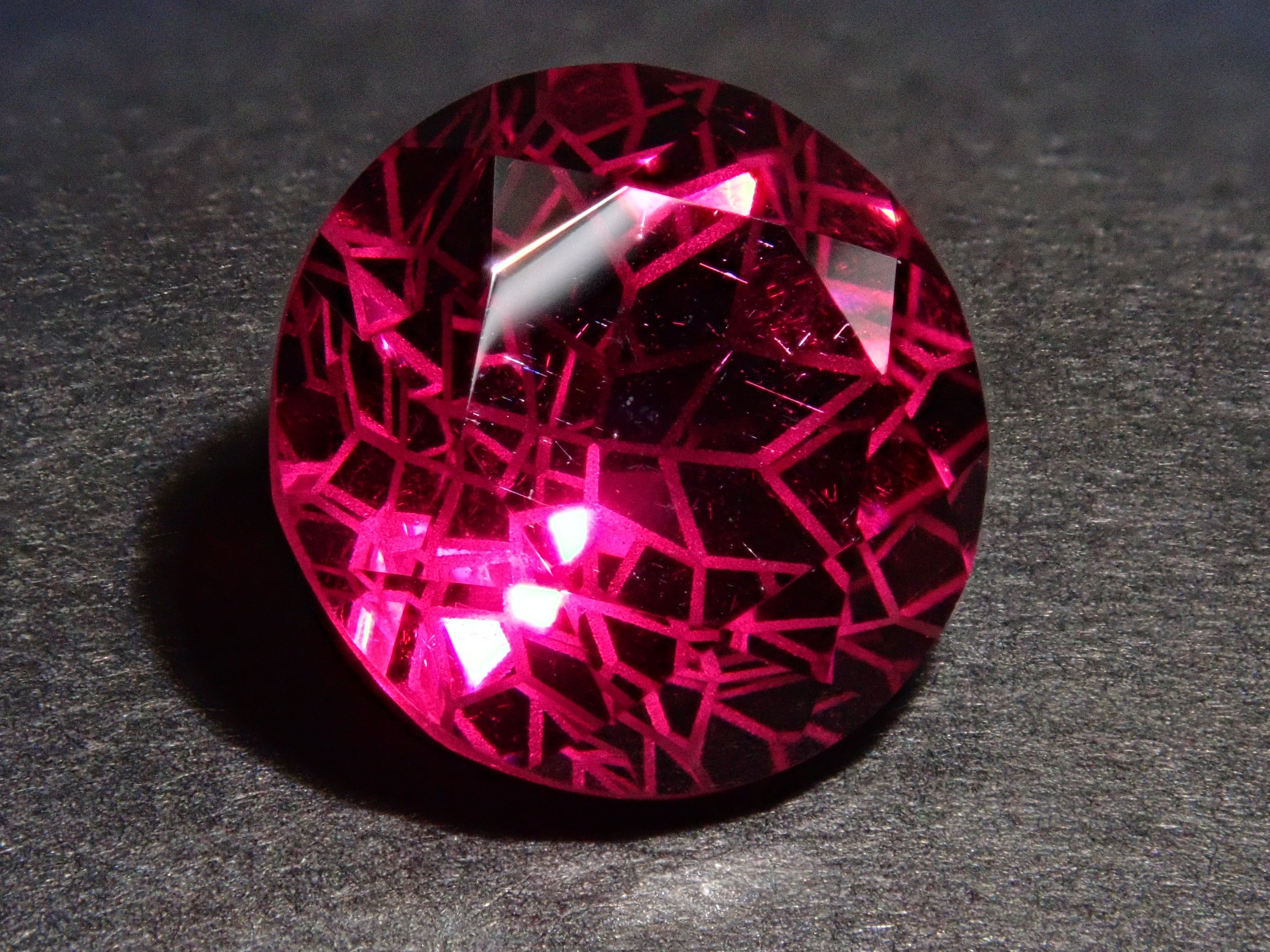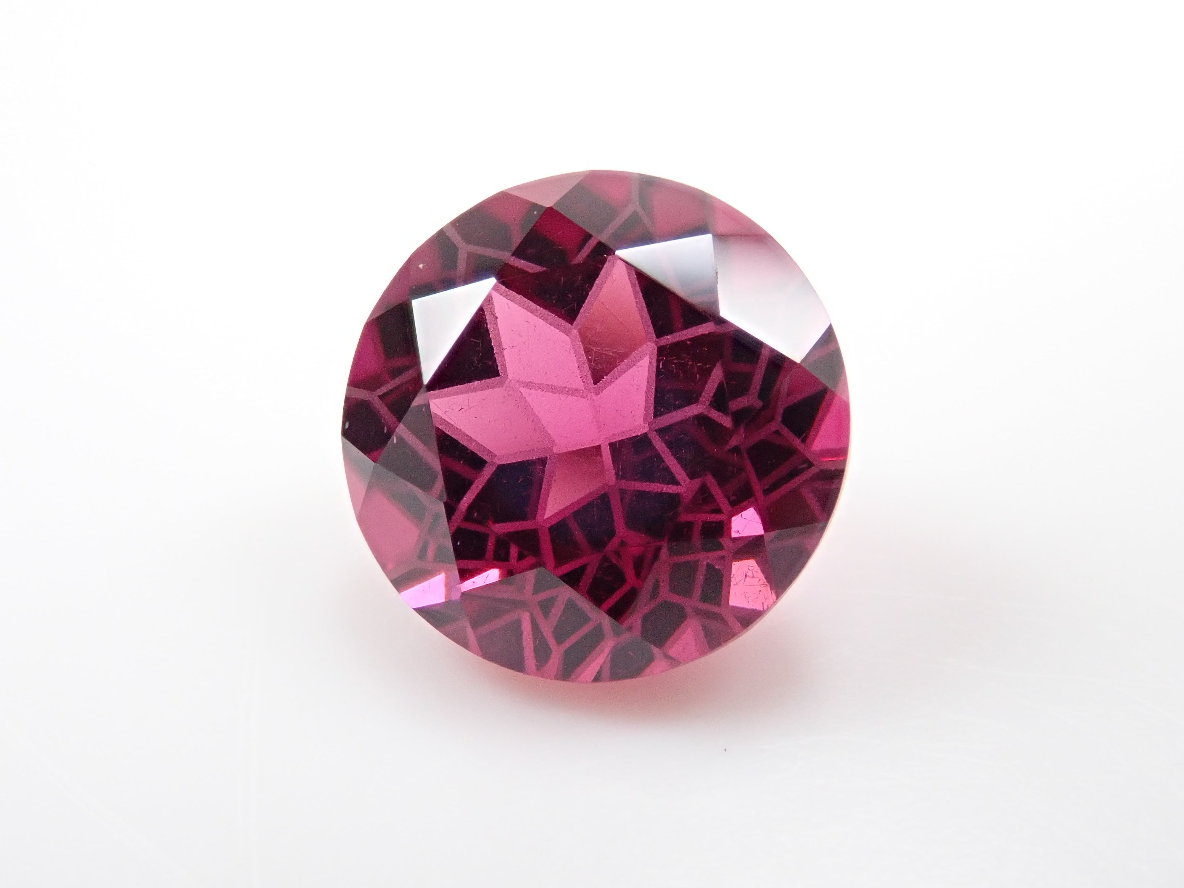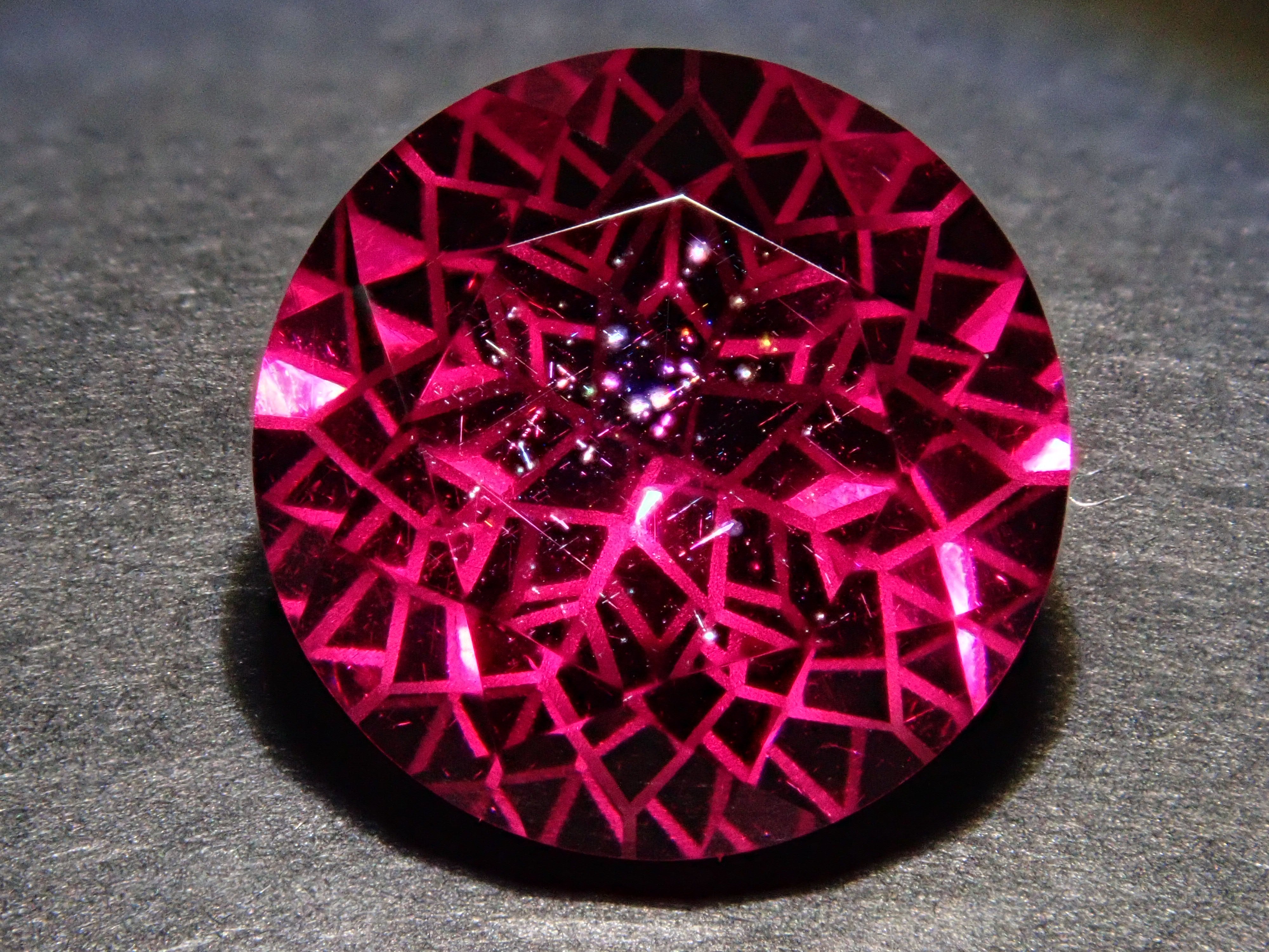 這是一顆9毫米蒲公英切割的鎂鋁榴石,由清水奇蹟(Shimizu Kiseki)打造。這是清水奇蹟與KARATZ合作的作品。