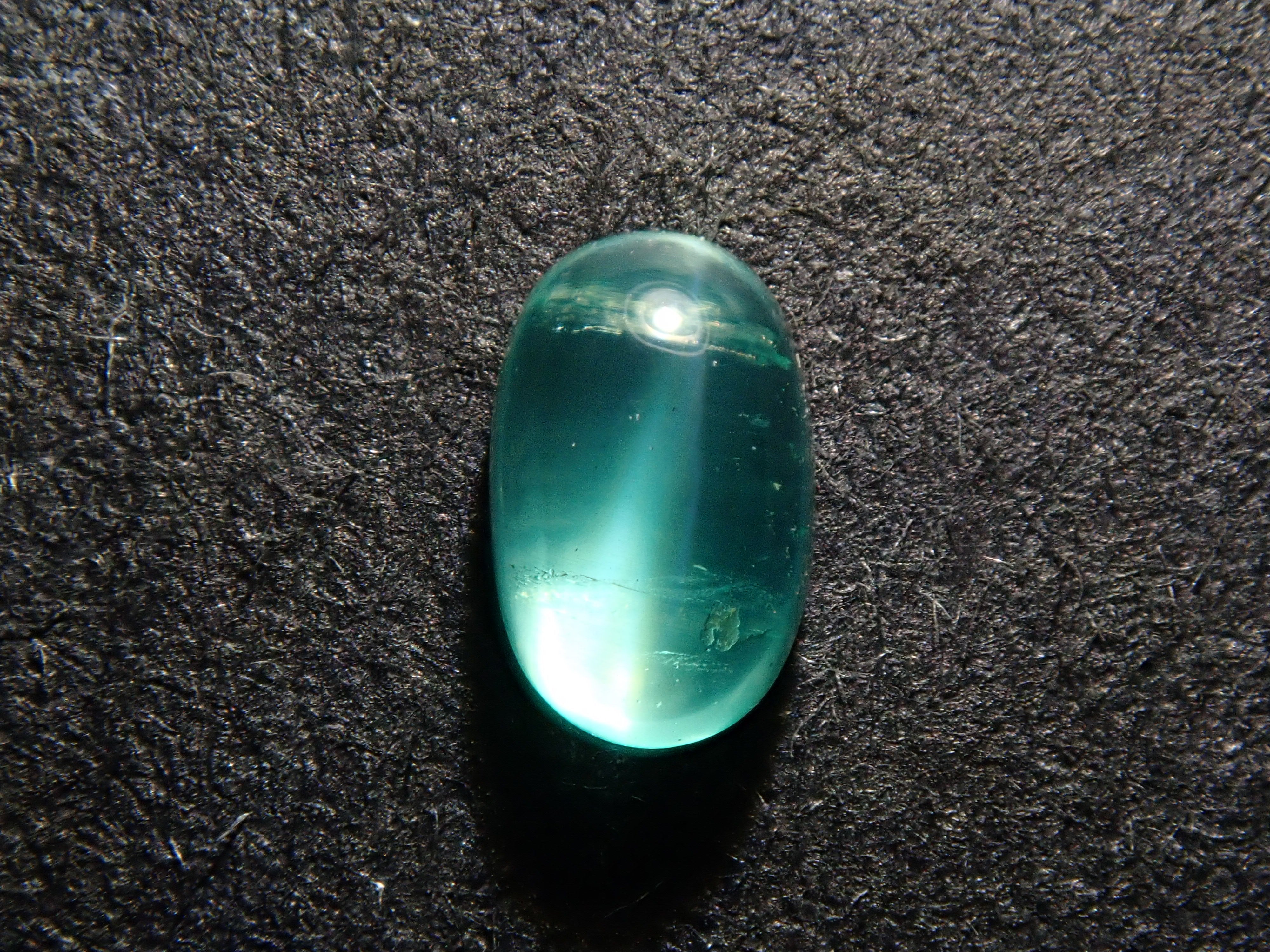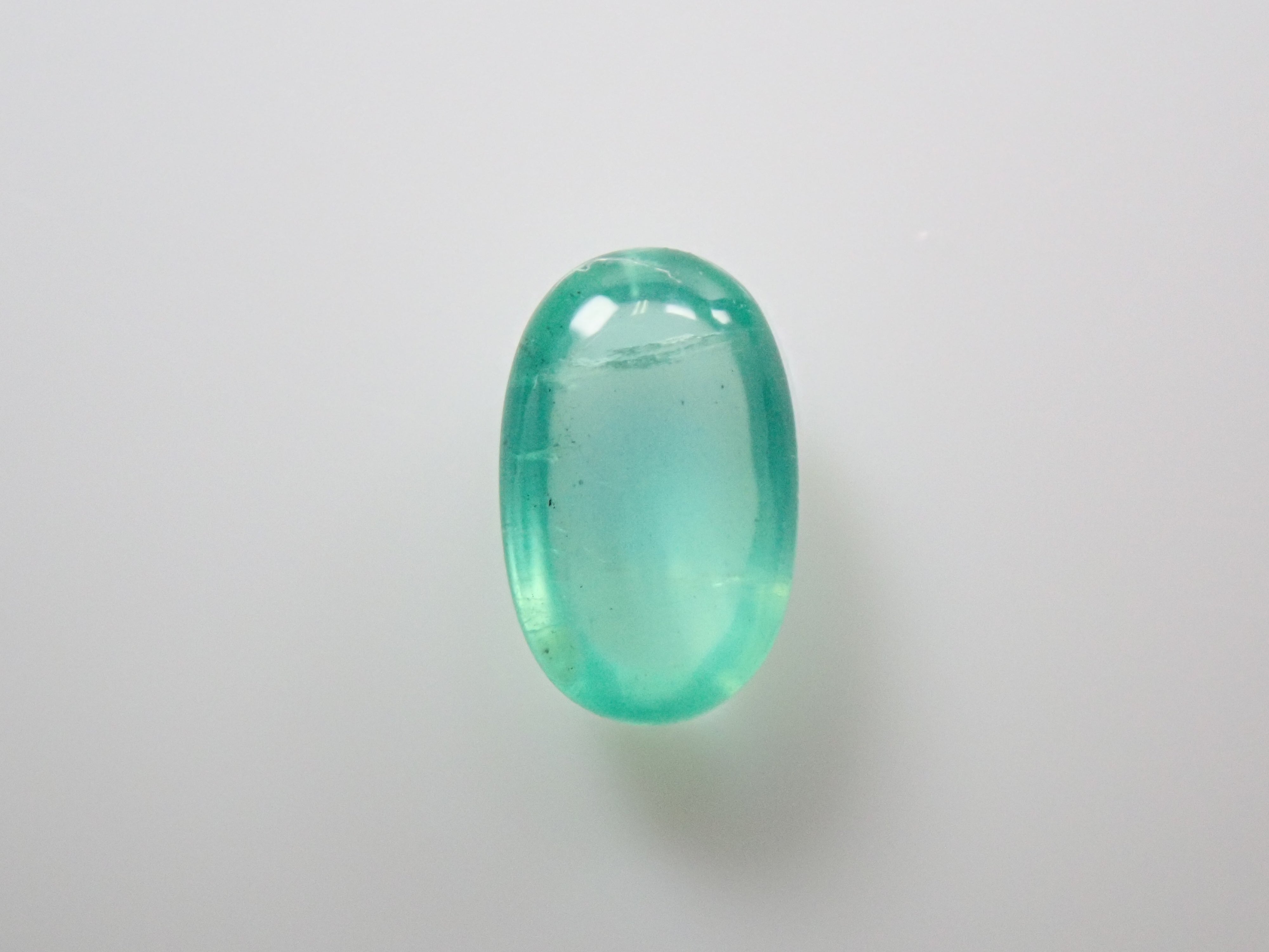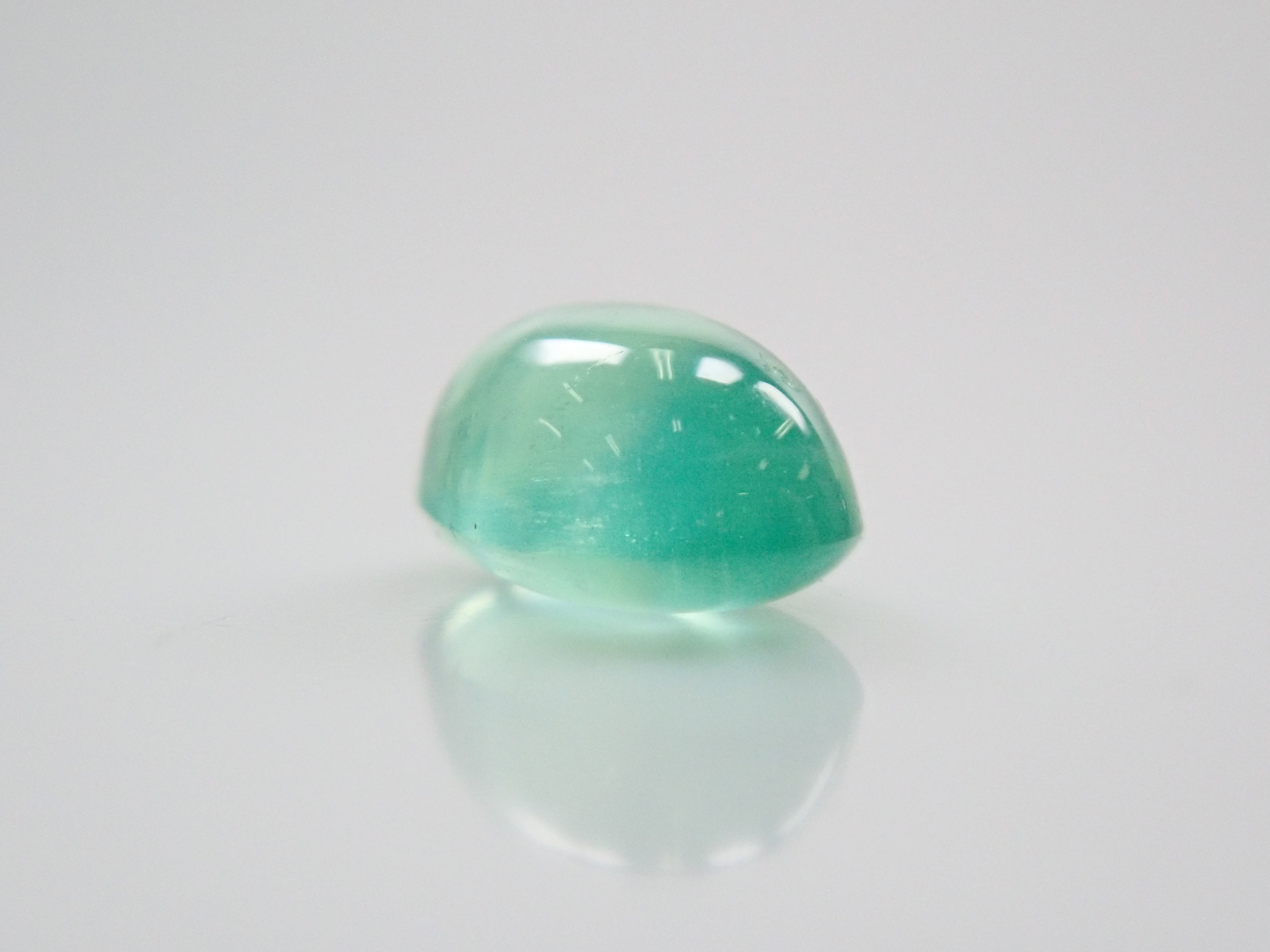 祖母綠是一種因受到埃及豔後克莉奧佩特拉的喜愛而聞名的寶石。它也是一塊有瑕疵的石頭,以至於有「完美無瑕的祖母綠比沒有瑕疵的人還少」的說法。因此,通常使用油處理來使刮痕不那麼明顯。當暴露在光線下時,您可以看到貓眼效應(貓眼)。溫柔與清新融為一體的表情非常吸引人。照片是使用筆燈拍攝的。石頭的背面基本上是未拋光的。