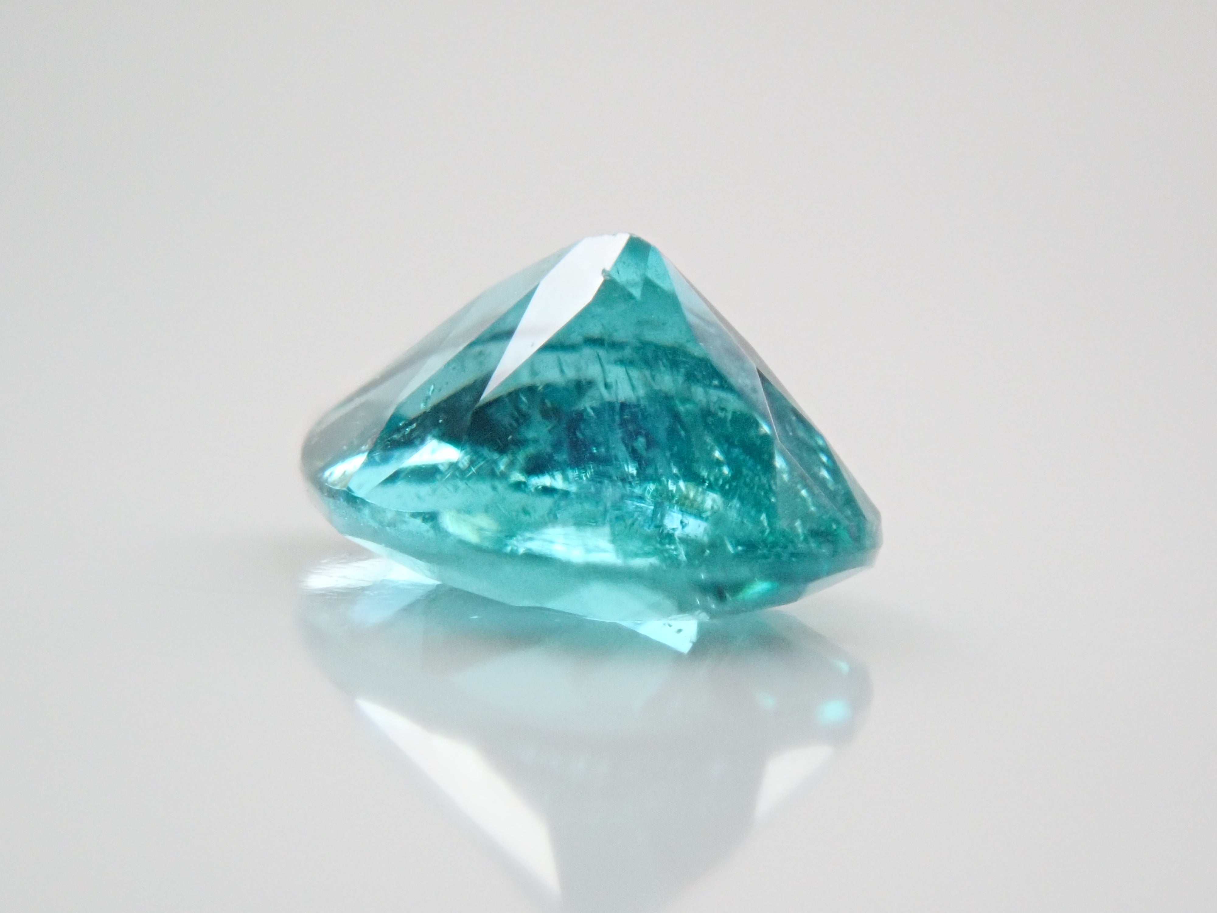 帕拉伊巴碧璽有著不同於大海的藍色或天空的藍色的精緻色彩。它在日本的定義是“含有銅的藍色到綠色碧璽(無論產地)。”它是一種非常受歡迎的寶石。 CuO:1.5%。MnO:2.3%。包括來自珠寶和貴金屬協會的分類資訊。來自巴西巴塔利亞的高品質帕拉伊巴碧璽。