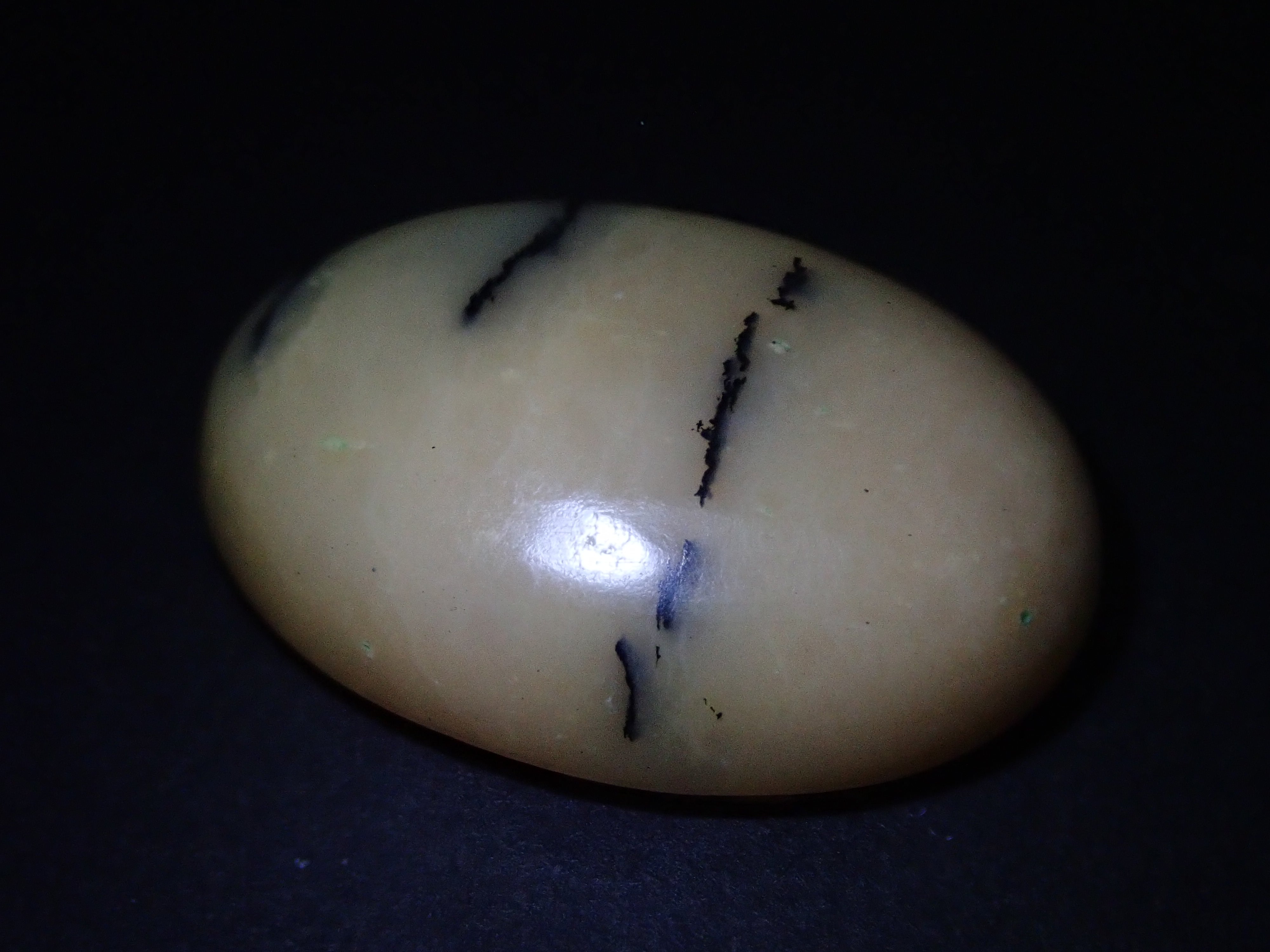 蛋白石是一種閃爍著彩虹色光芒的寶石。蛋白石是一種寶石,有許多不同的類型並具有多種表現形式。有些人被這種魅力所吸引,以至於只收集蛋白石。照片是使用筆燈拍攝的。這是一種沒有遊彩的普通蛋白石,您可以欣賞到樹枝狀的蛋白石。包括日本-德國寶石研究所的分選。