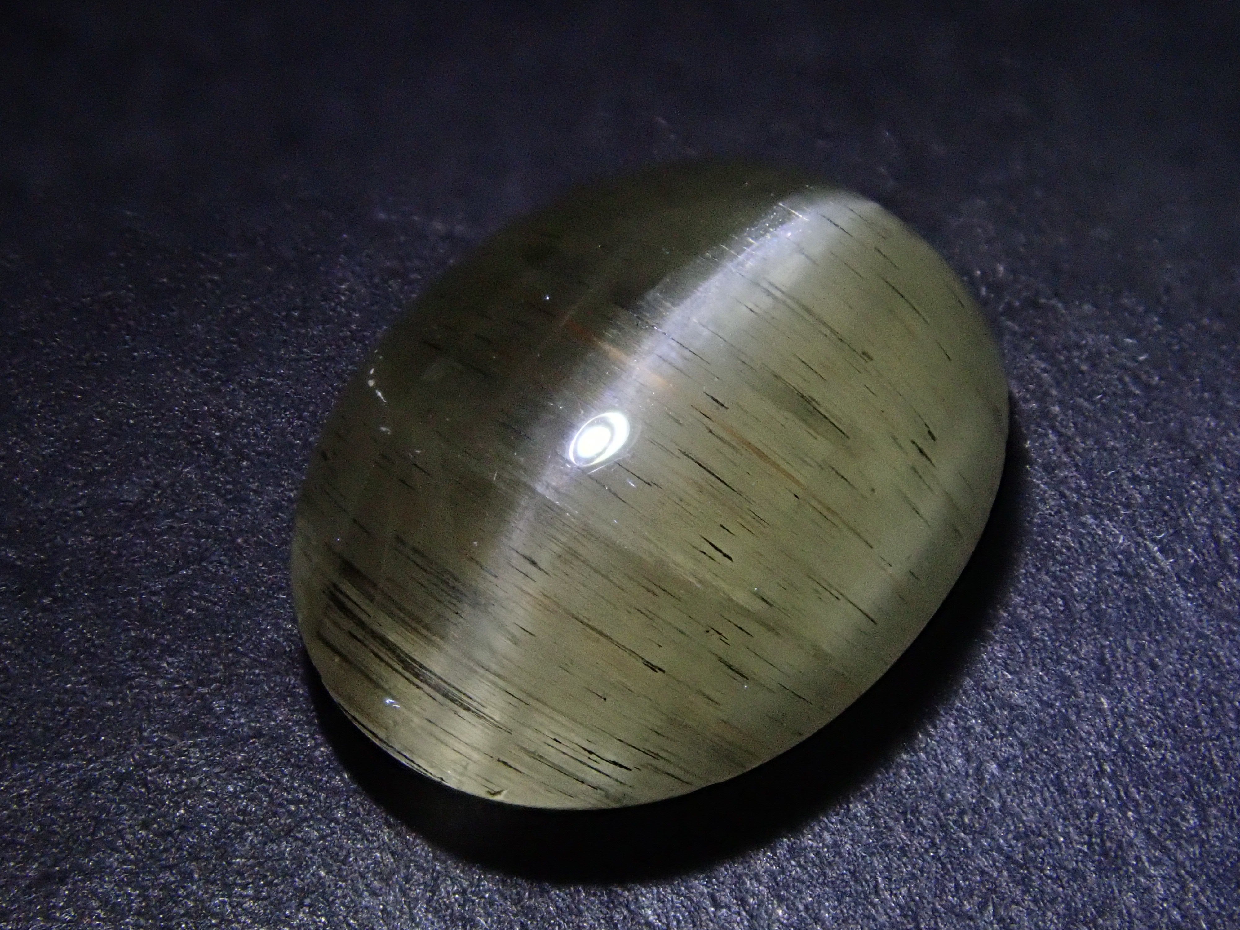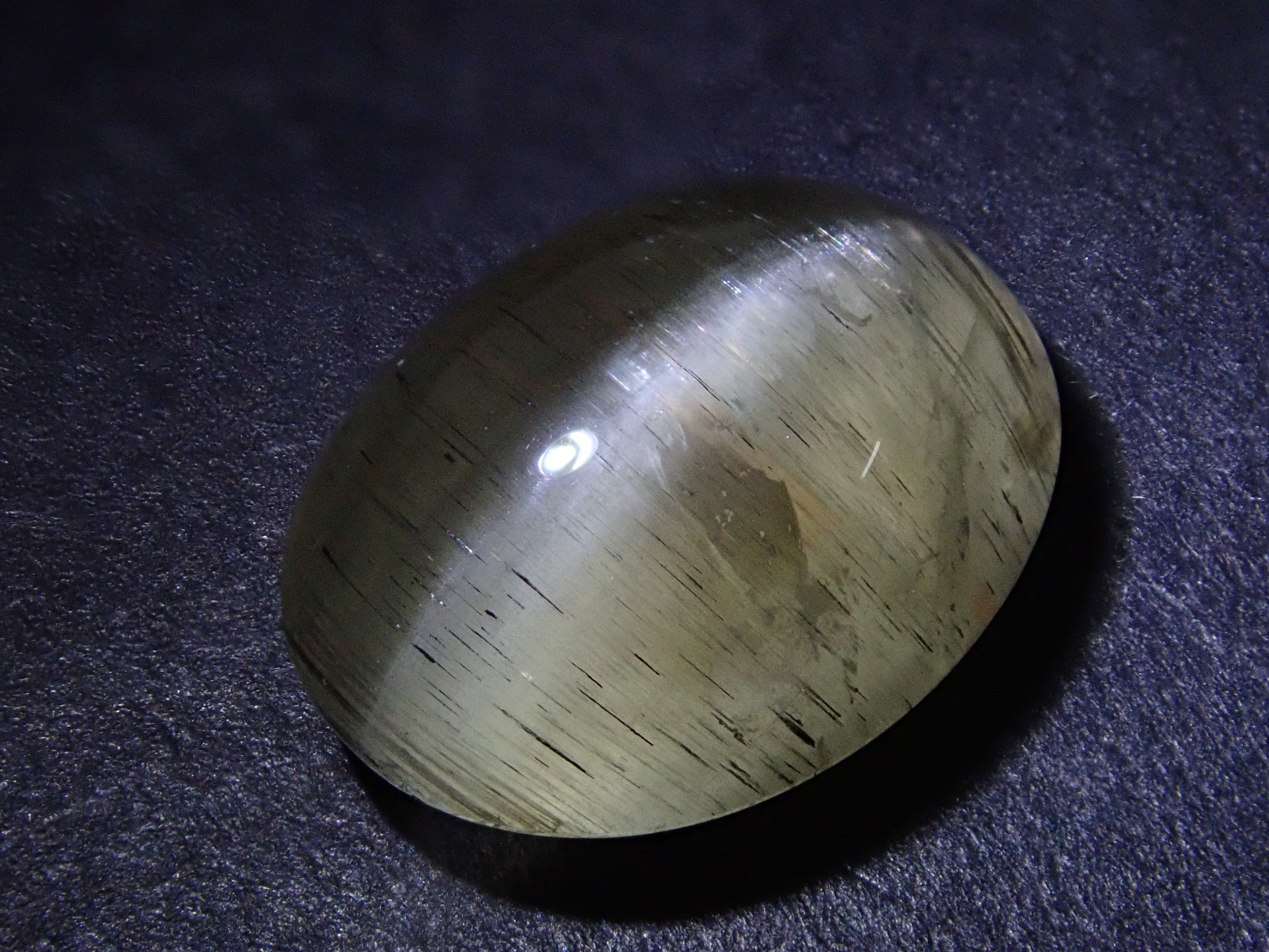 磷灰石是一種顏色豐富的石頭。除了無色之外,它還有藍色、紫色、綠色、黃色、粉紅色、紅色和白色。其礦物名稱為磷灰石。長時間暴露在陽光直射下容易褪色,因此請將其存放在室內。這種類型的磷灰石具有貓眼效果。圖片使用筆形電筒拍攝。