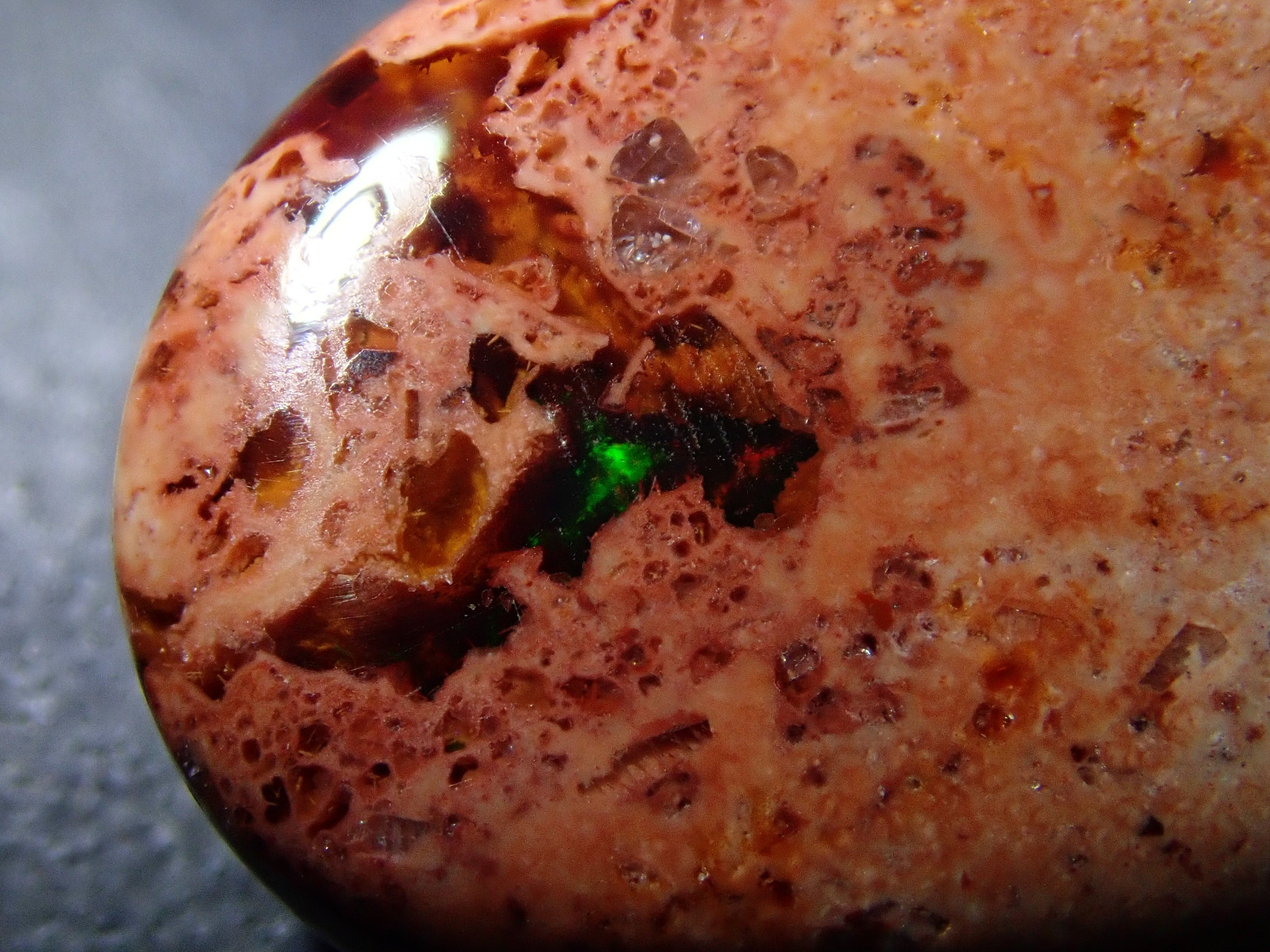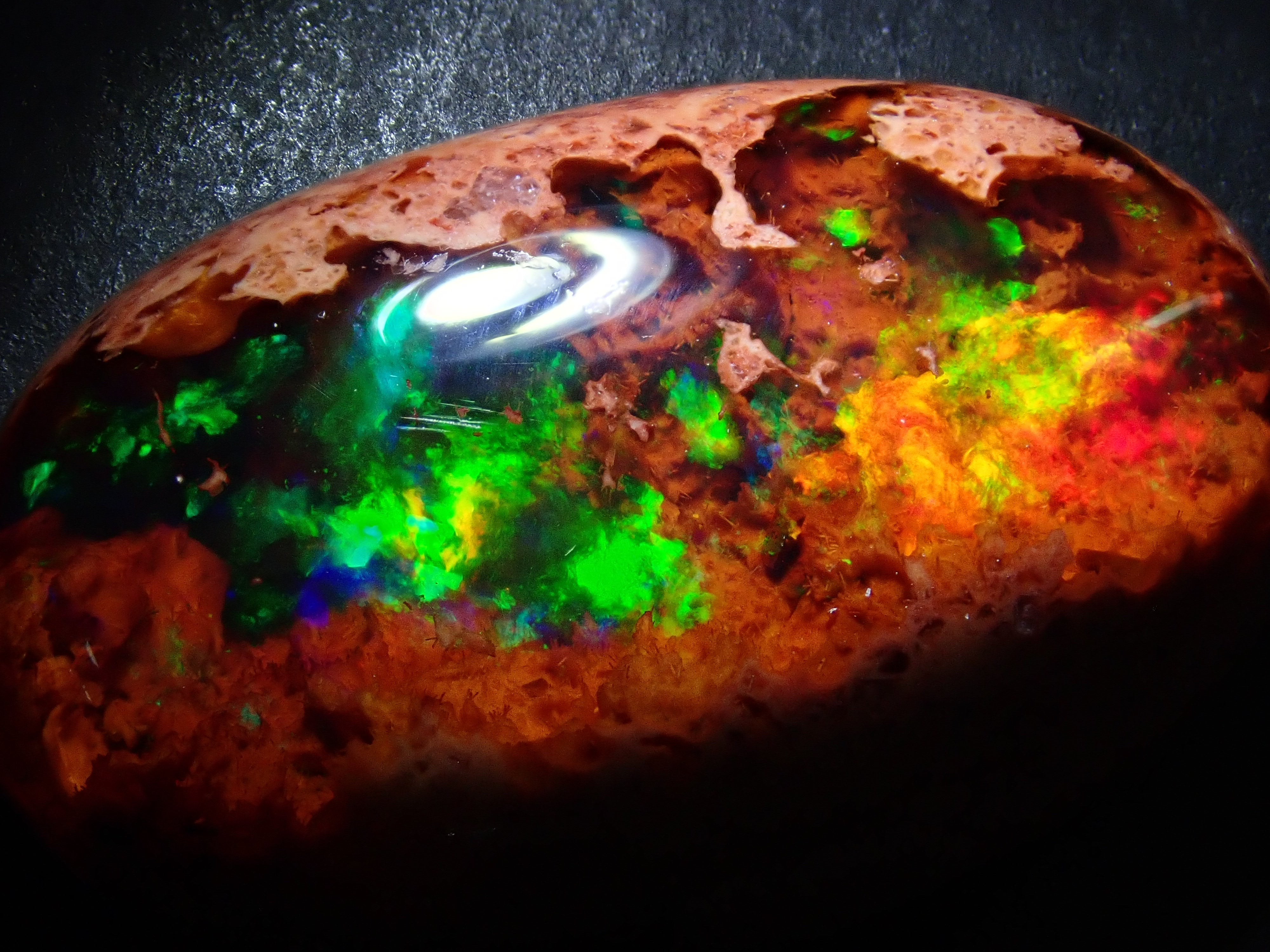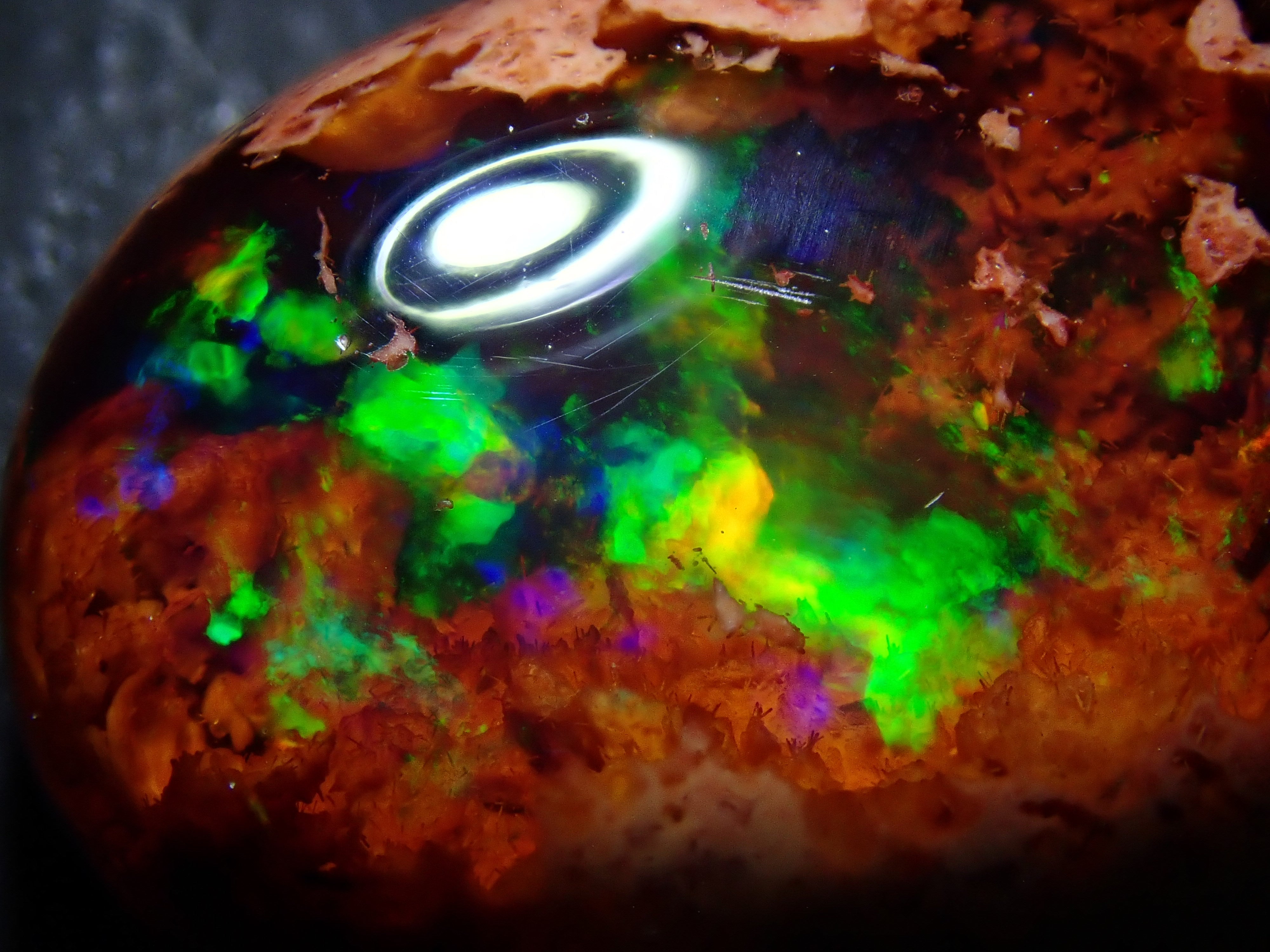 Cantera 蛋白石原本是一種有許多環的寶石。照片是使用筆燈拍攝的。