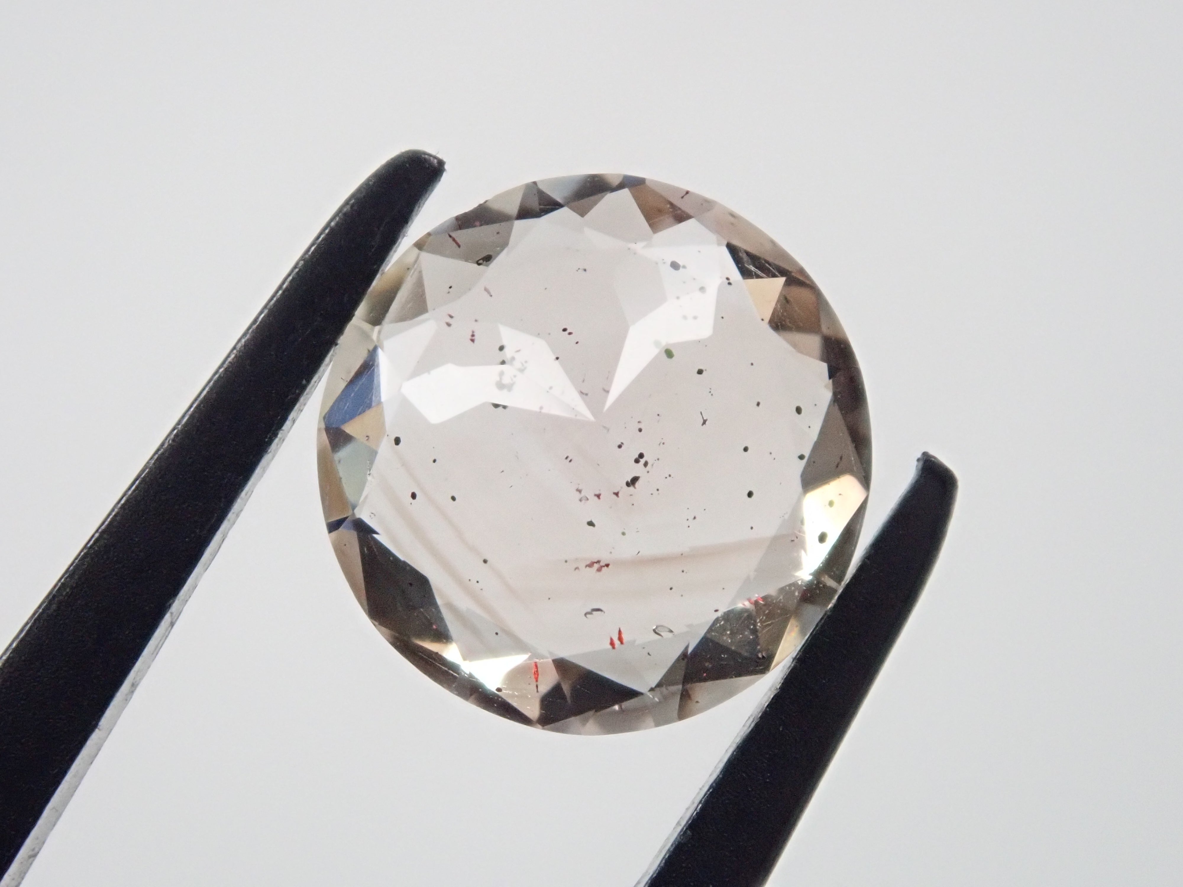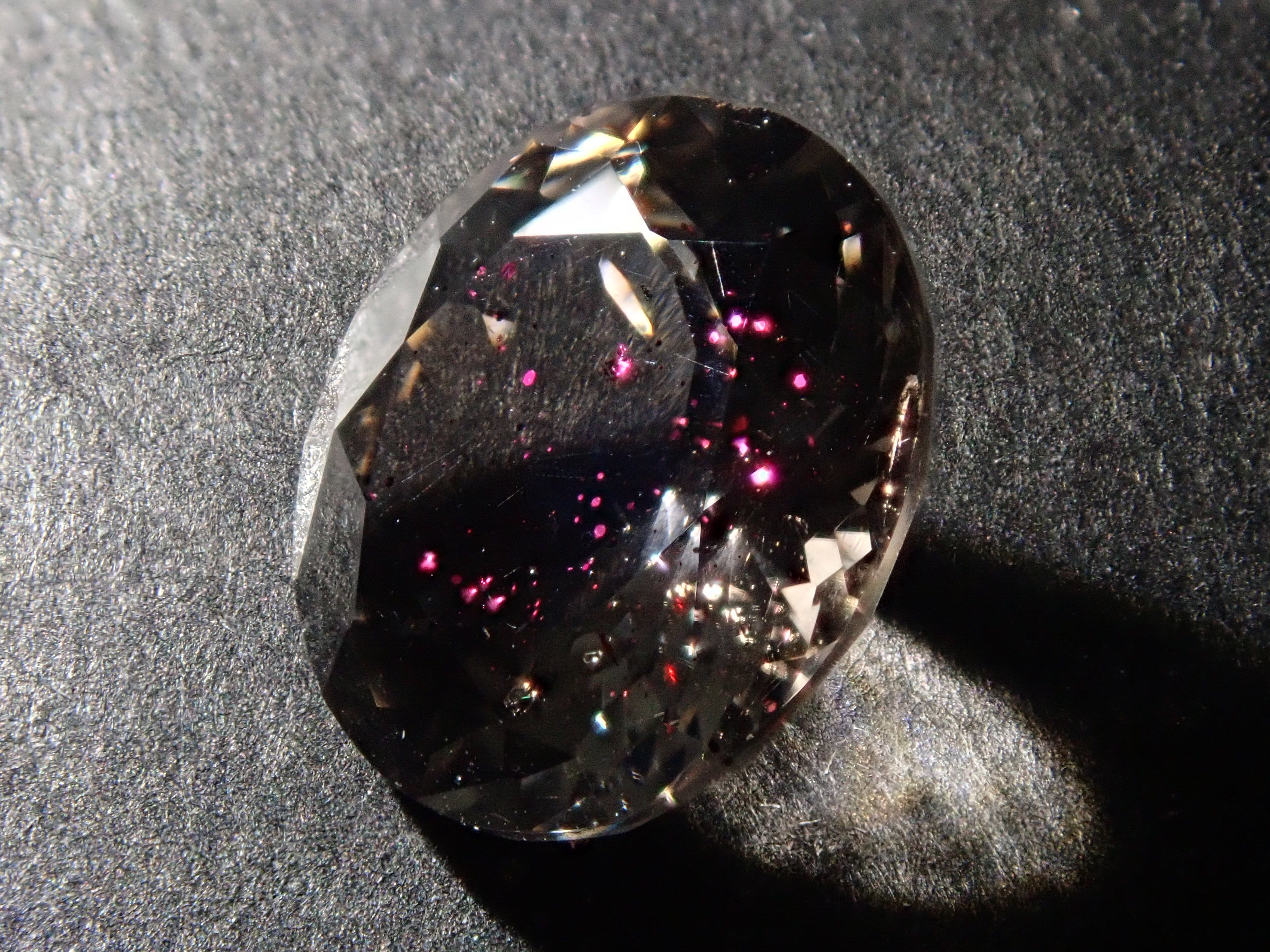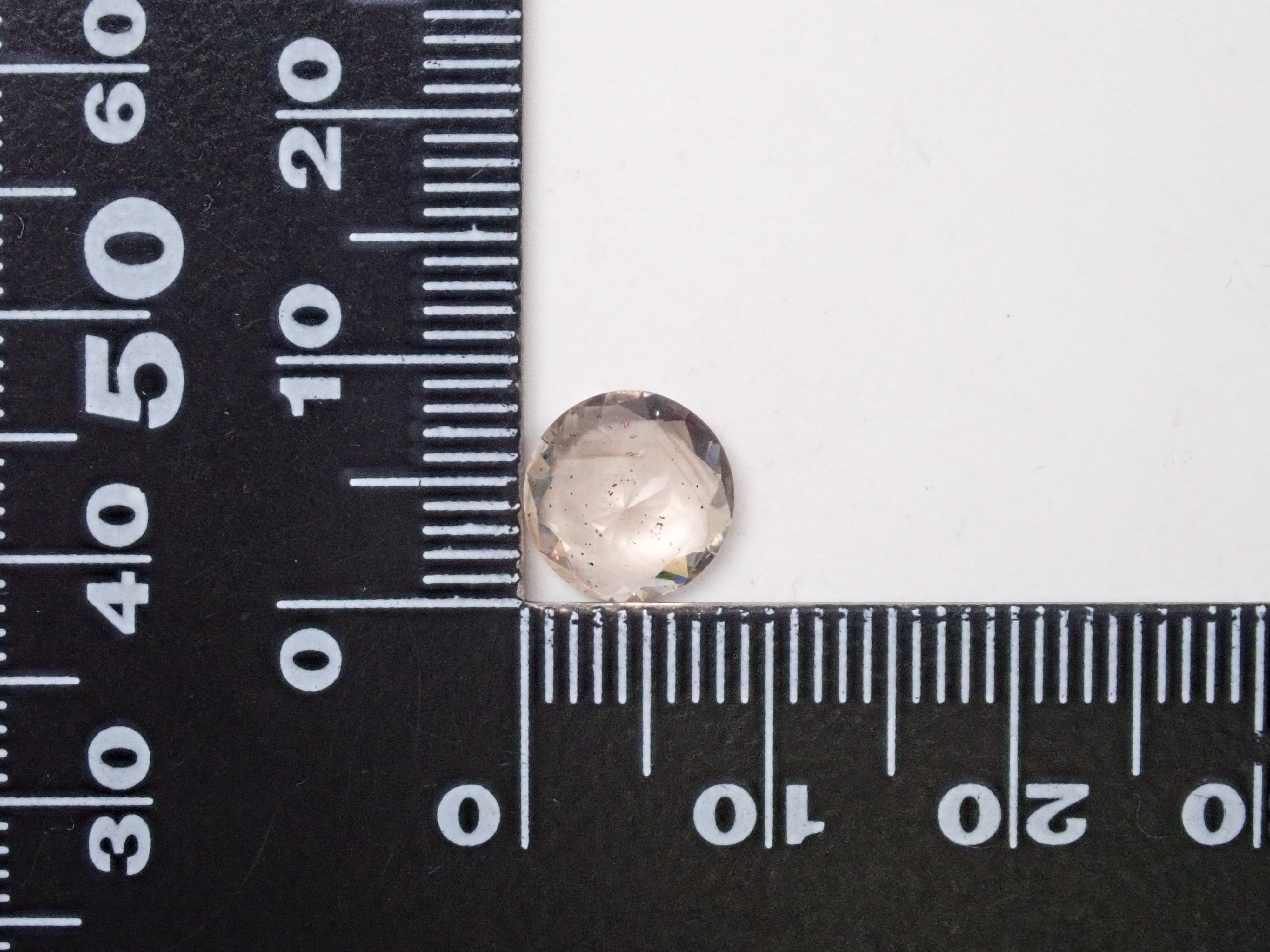 石英在日文中稱為水晶。它是一種在日本非常熟悉的石頭,但它也是一種深寶石,有紫水晶和黃水晶等多種類型。這種晶體看起來像暴風雪般的紅色花朵,被稱為小叮噹石英或粉紅火石英。為了清楚地顯示裡麵包裹體的樣子,我用了筆電筒拍照。圓形切割 8.5 毫米。它是刻面切割,這對於小叮噹石英來說是罕見的。