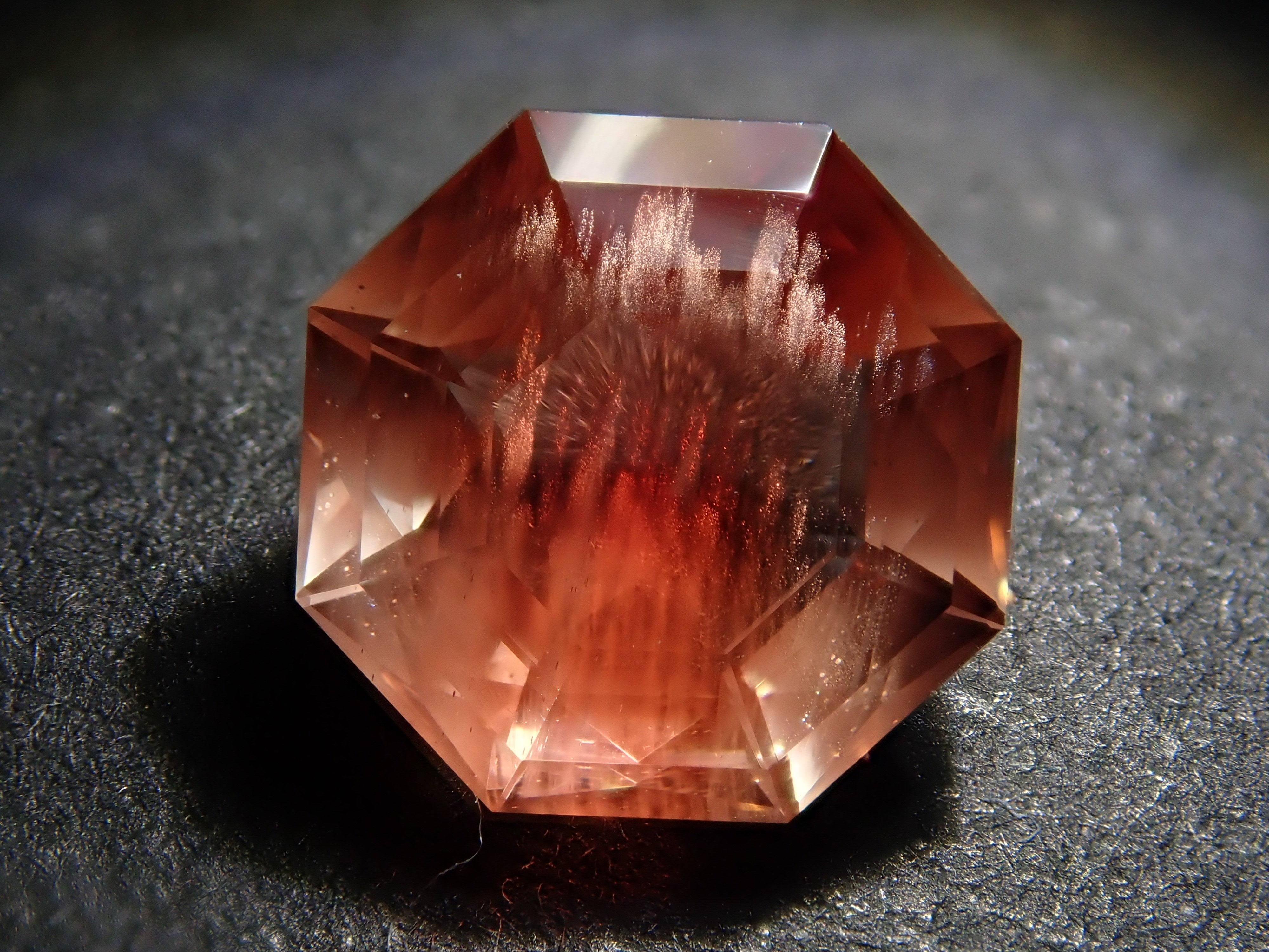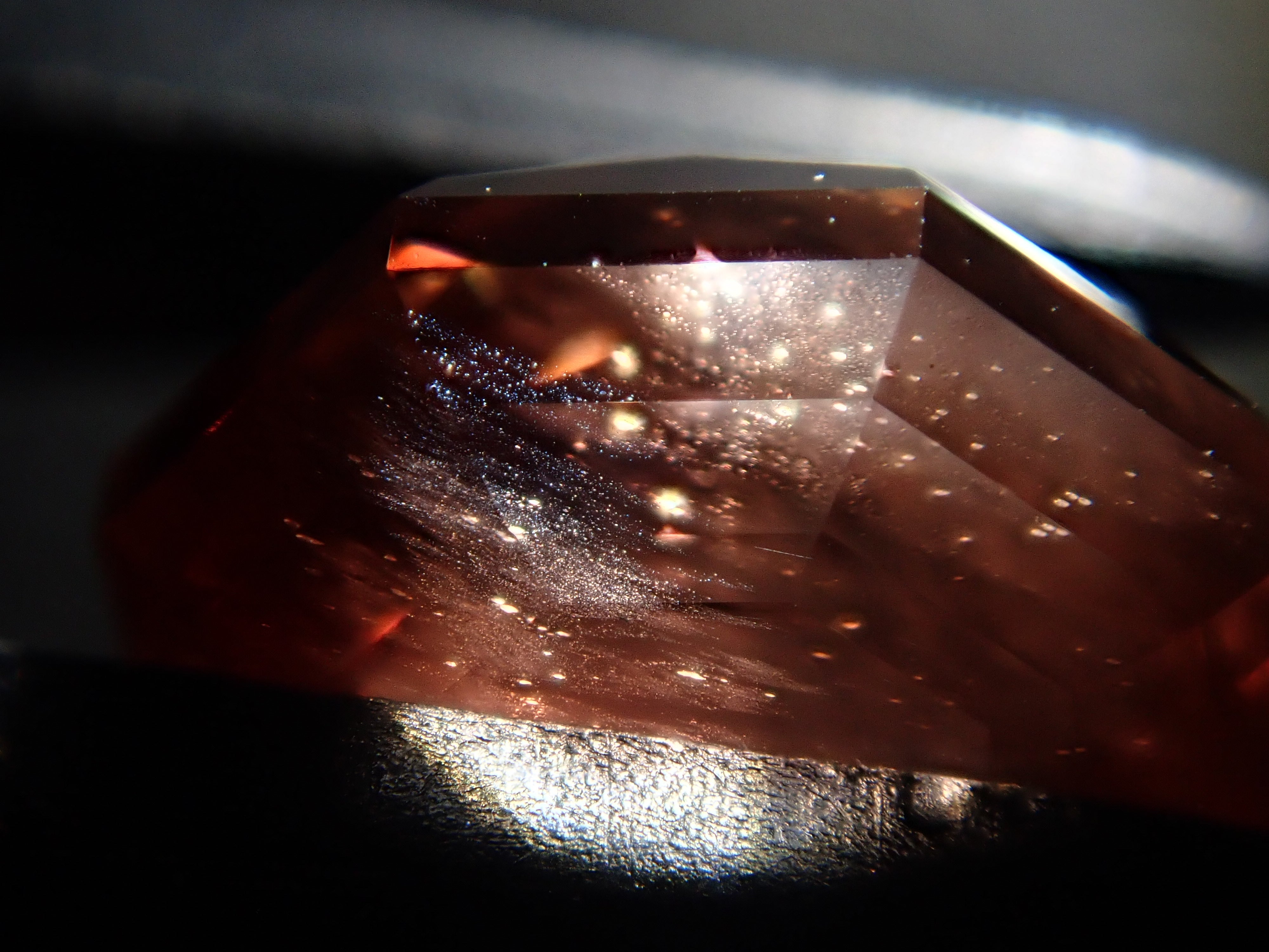 俄勒岡太陽石被譽為世界上最美麗的拉長石。近年來,這種寶石越來越受歡迎。有些寶石中的內含物會像閃光一樣反射,這種現象稱為灑金現象(席勒效應)。為了更好地呈現這些光學效果,攝影時會使用筆形電筒。