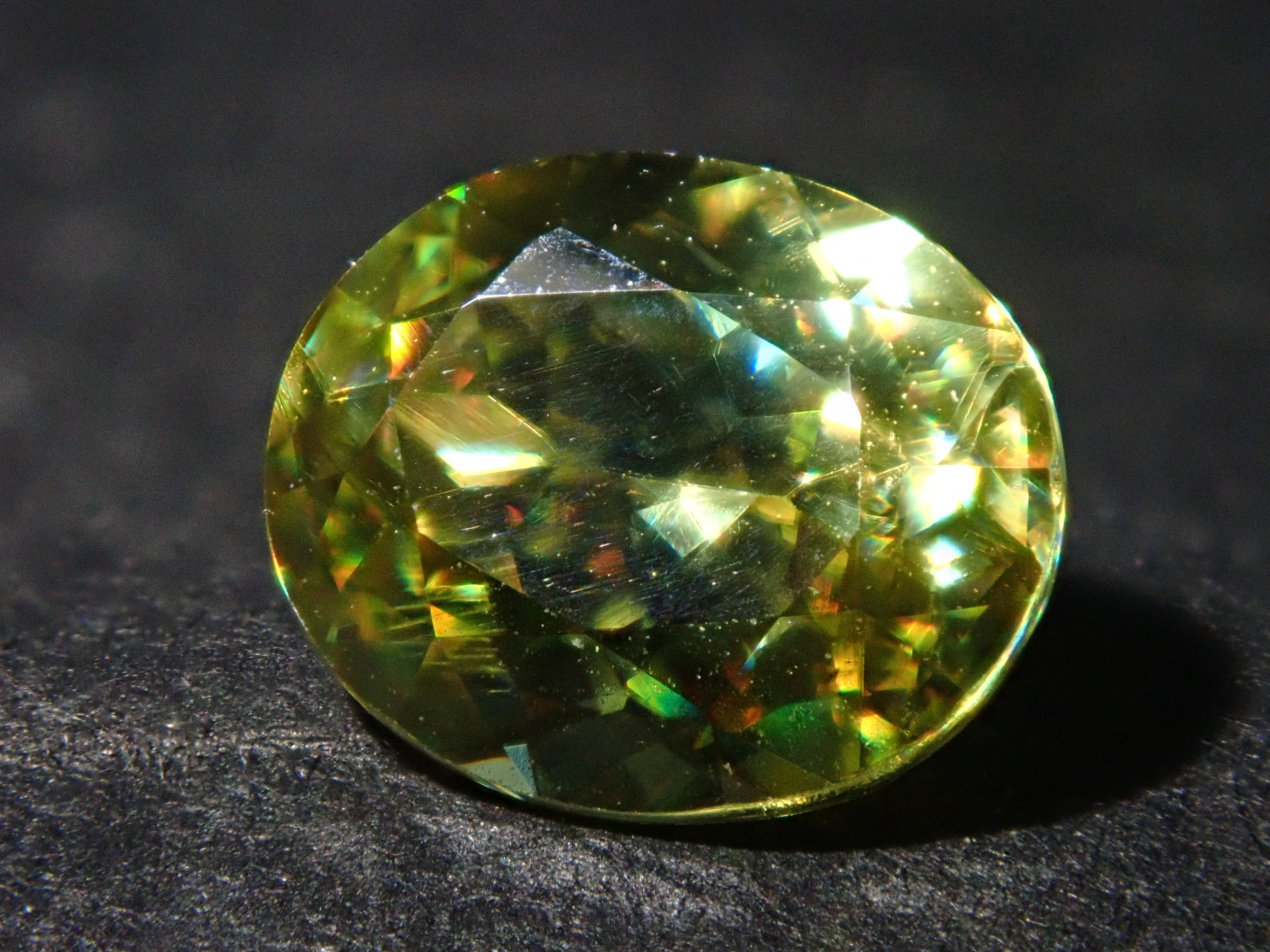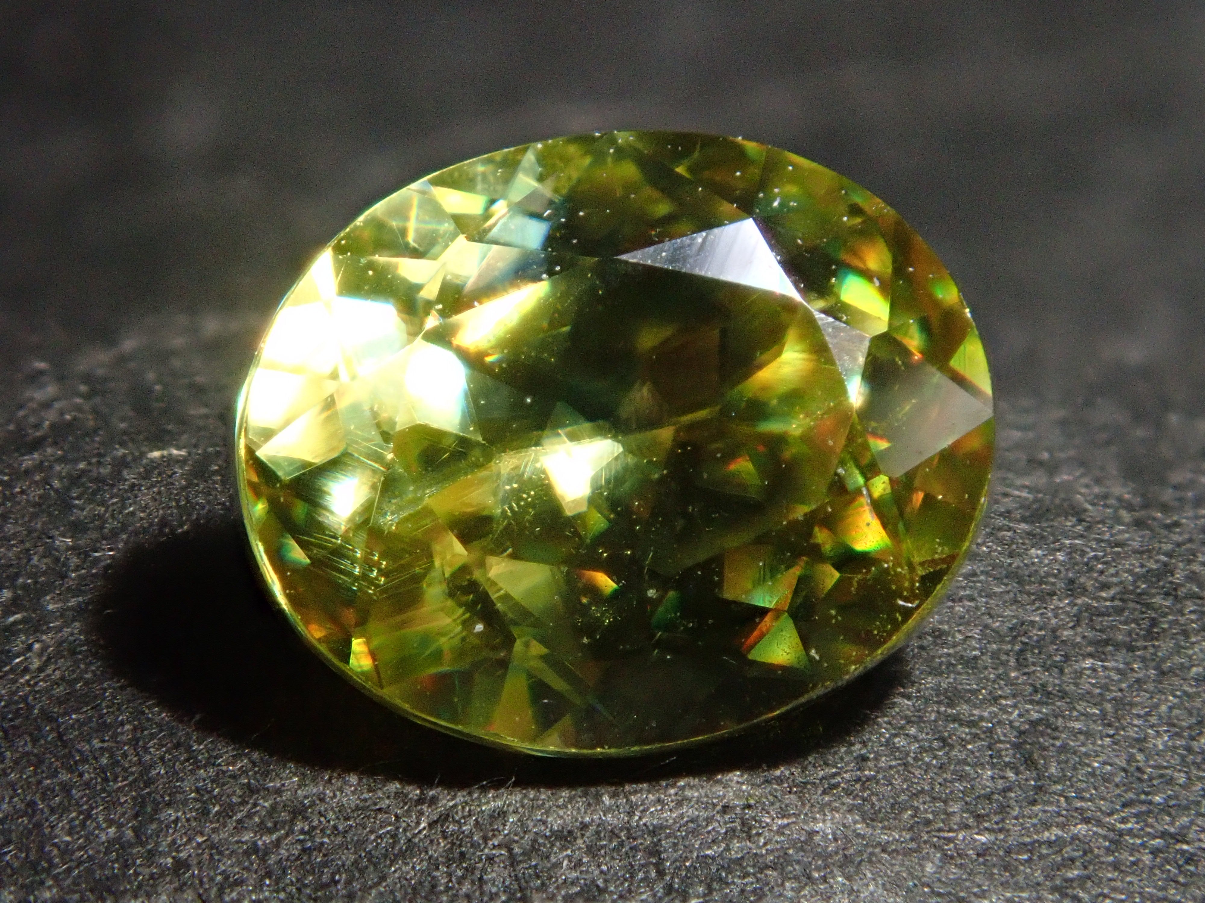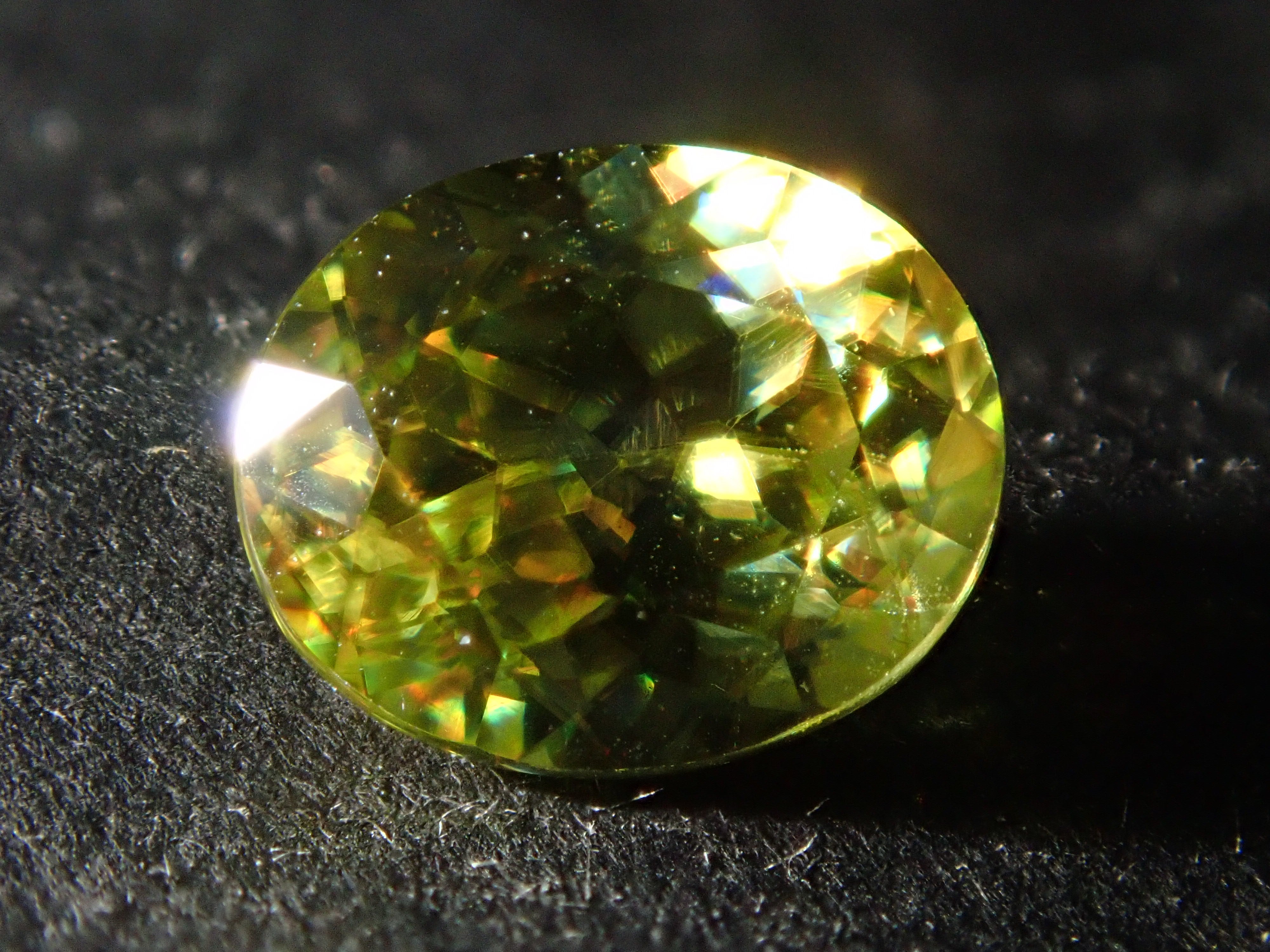 呈現出金色光芒和奢華火焰的榍石。它作為一種有吸引力的寶石而受到收藏家的歡迎,它散發出比鑽石更強大的火彩。輝度隨角度而快速變化的榍石。請在陽光下在手中滾動並觀察。請注意,有些照片是使用筆燈拍攝的。這是來自馬達加斯加的榍石,透明度高,能享受火。