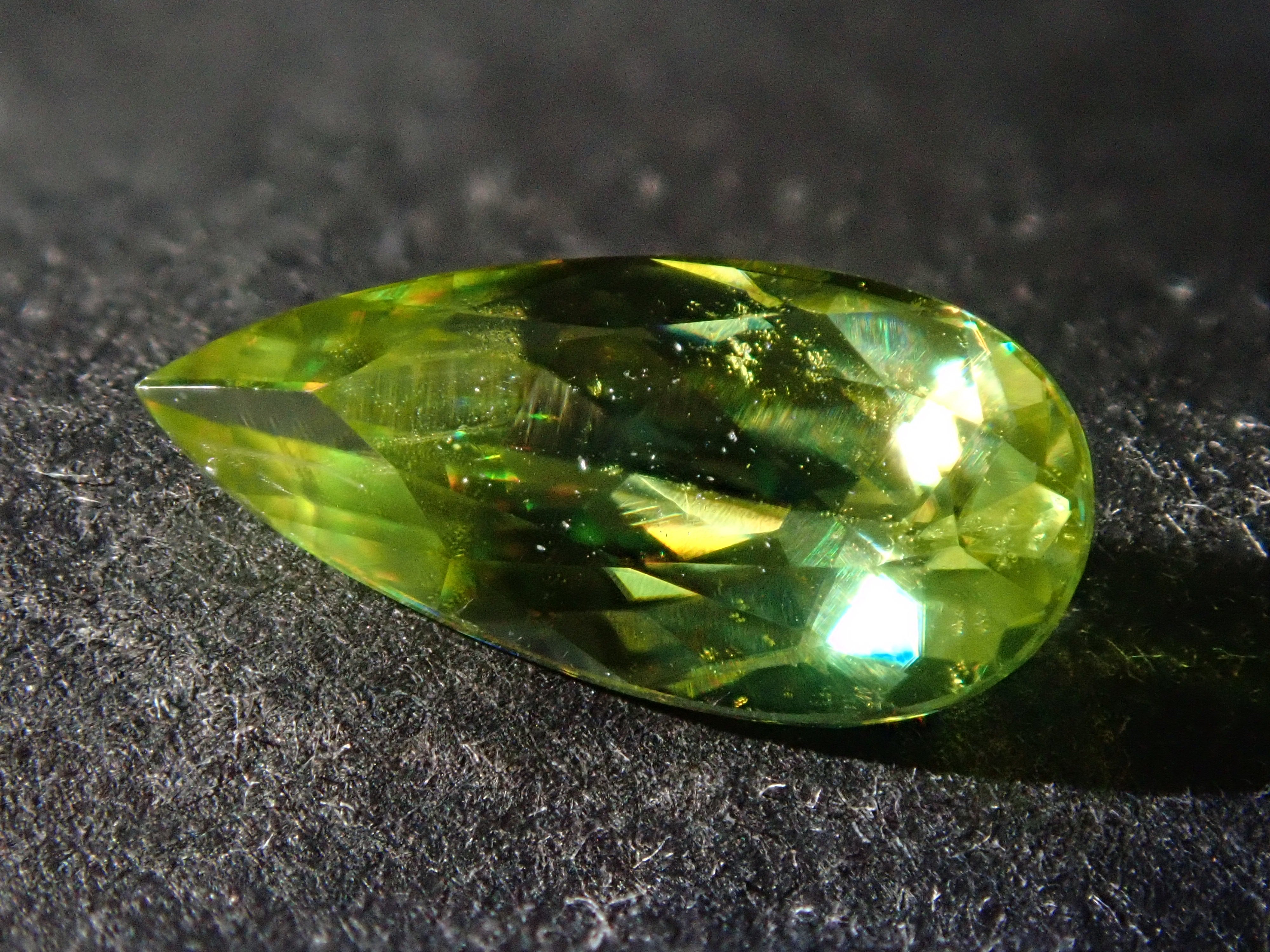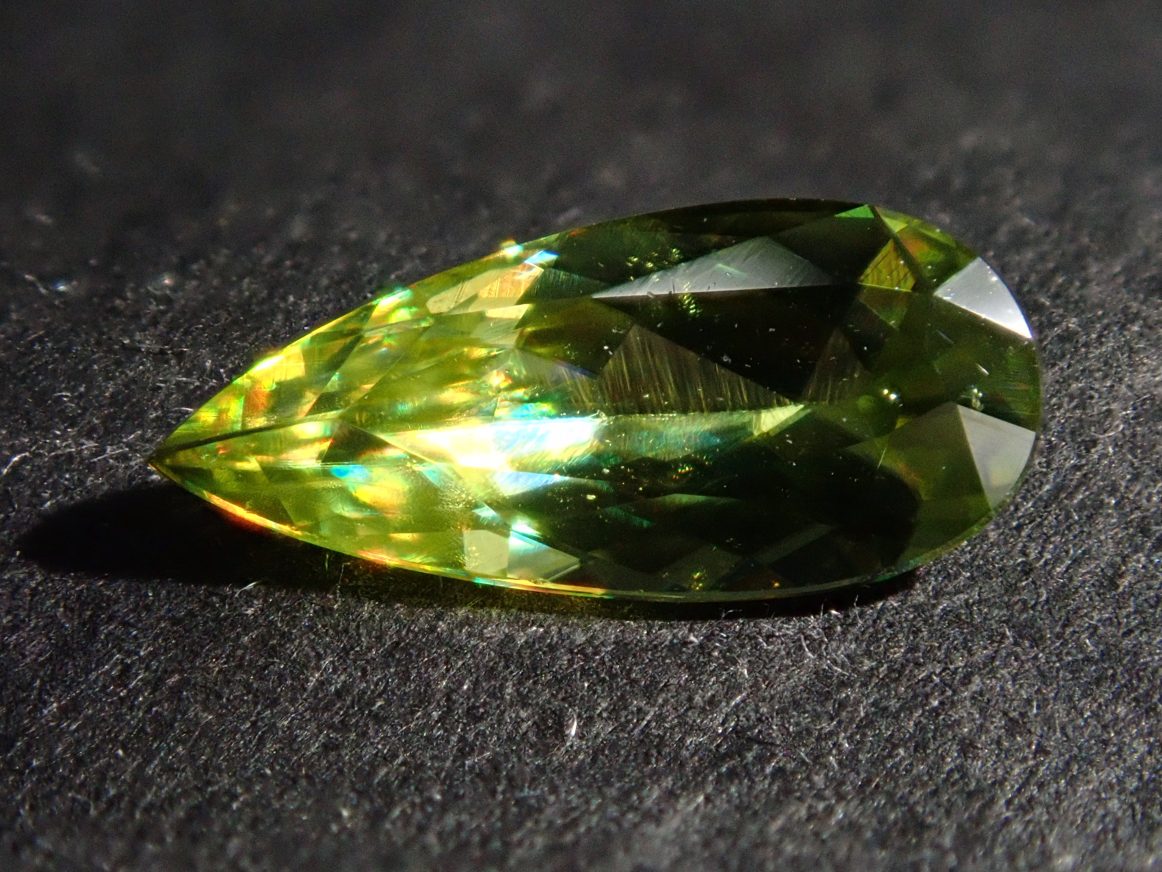 呈現出金色光芒和奢華火焰的榍石。它作為一種有吸引力的寶石而受到收藏家的歡迎,它散發出比鑽石更強大的火彩。輝度隨角度而快速變化的榍石。請在陽光下在手中滾動並觀察。請注意,有些照片是使用筆燈拍攝的。這是產自馬達加斯加的優質榍石,具有濃鬱的綠色、高透明度和深顏色。