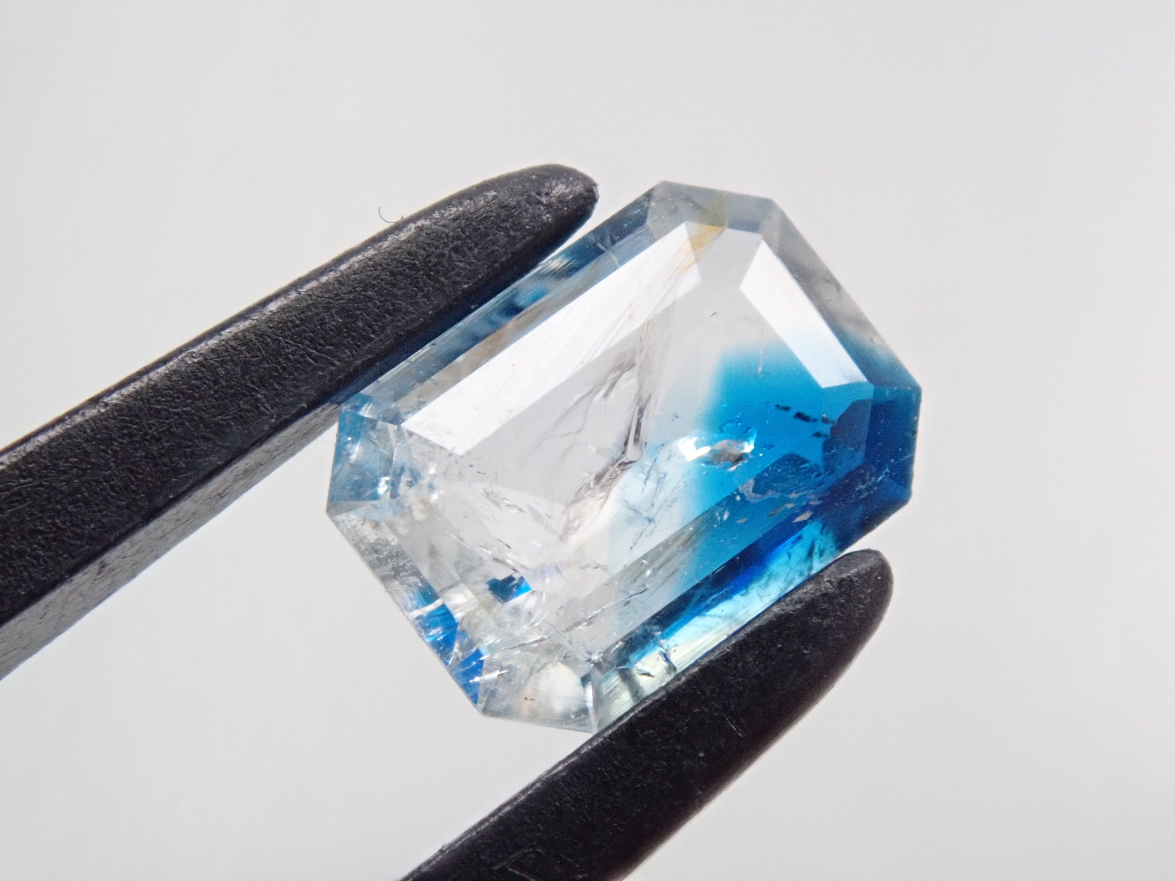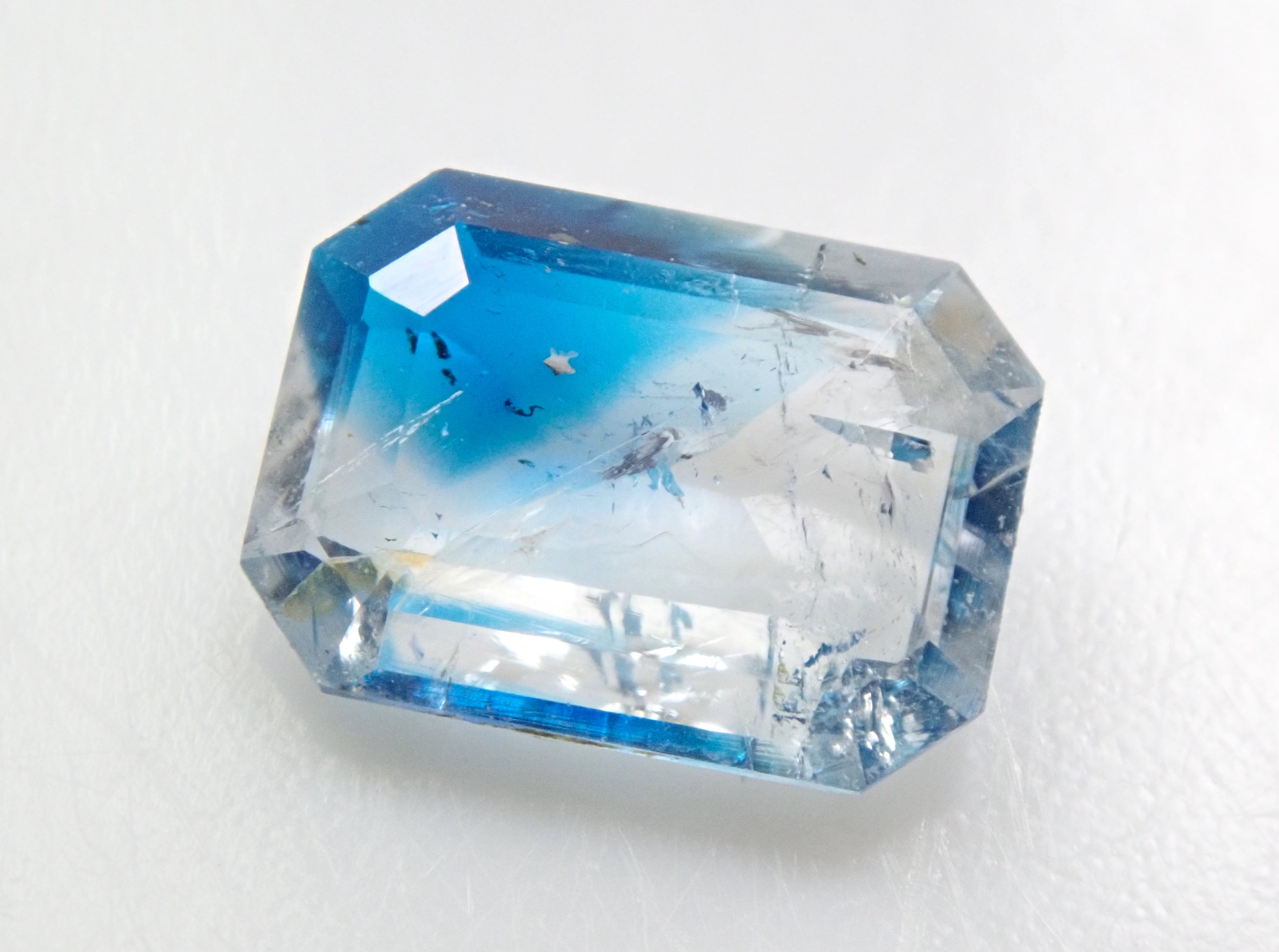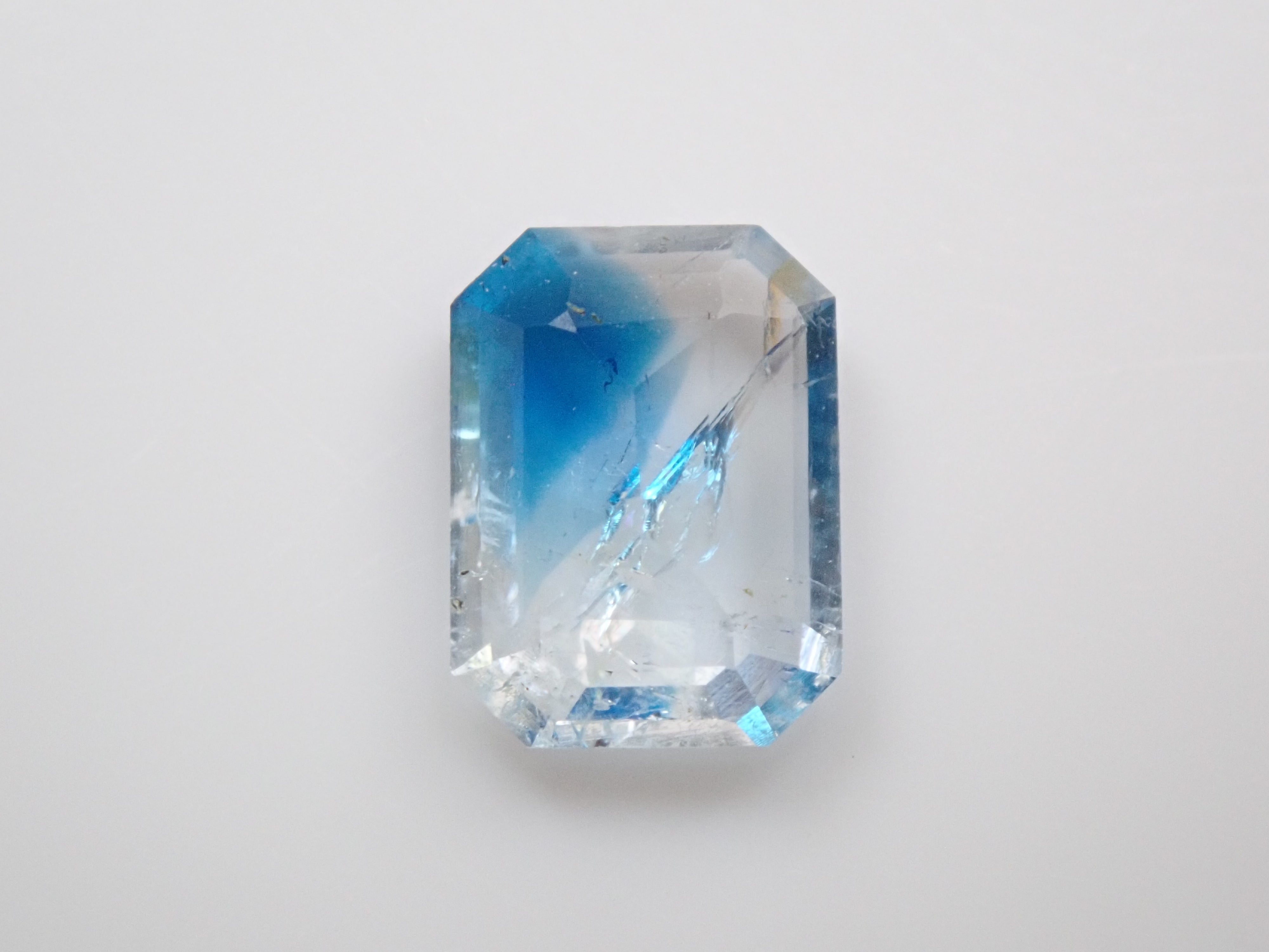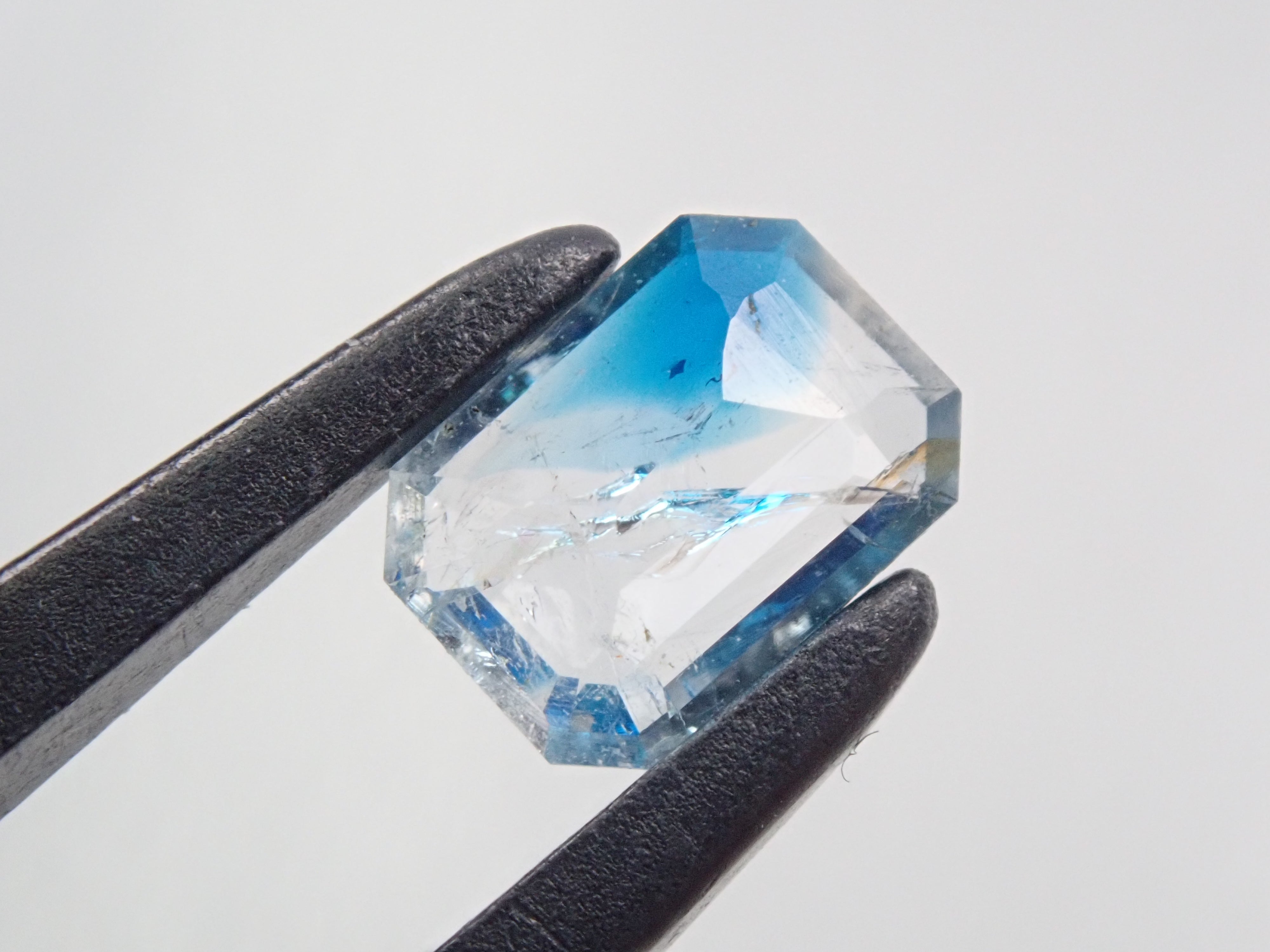 綠柱石(Euclase)的名字來自希臘語“eu”(意為“好”)和“klasis”(意為“破碎”)。顧名思義,它擁有完美的解理。由於產地稀少,這種寶石很少被製成寶石。它有多種顏色,包括白色、無色、淺綠色、淺藍色和深藍色。這顆產自辛巴威的雙色綠柱石。