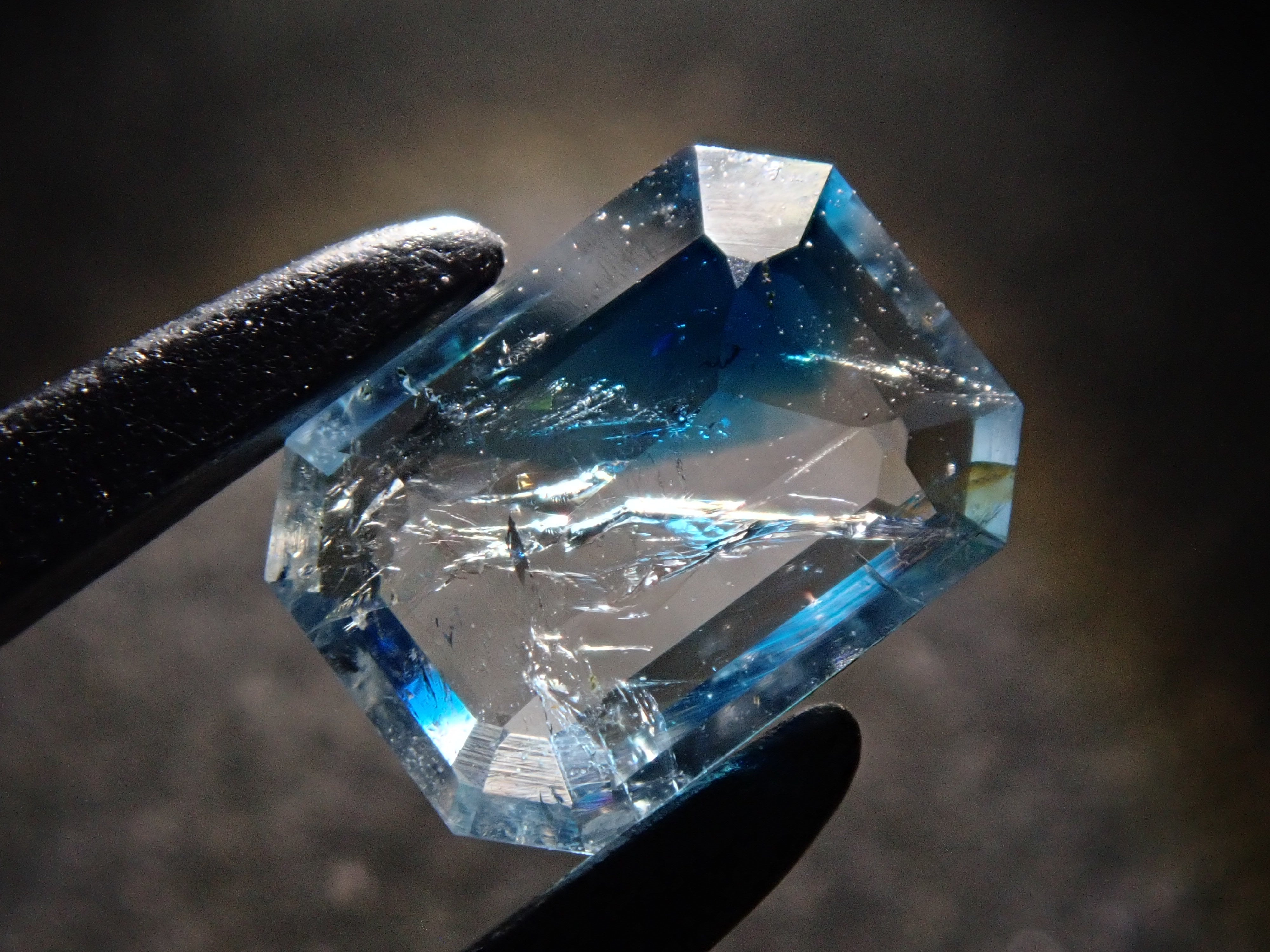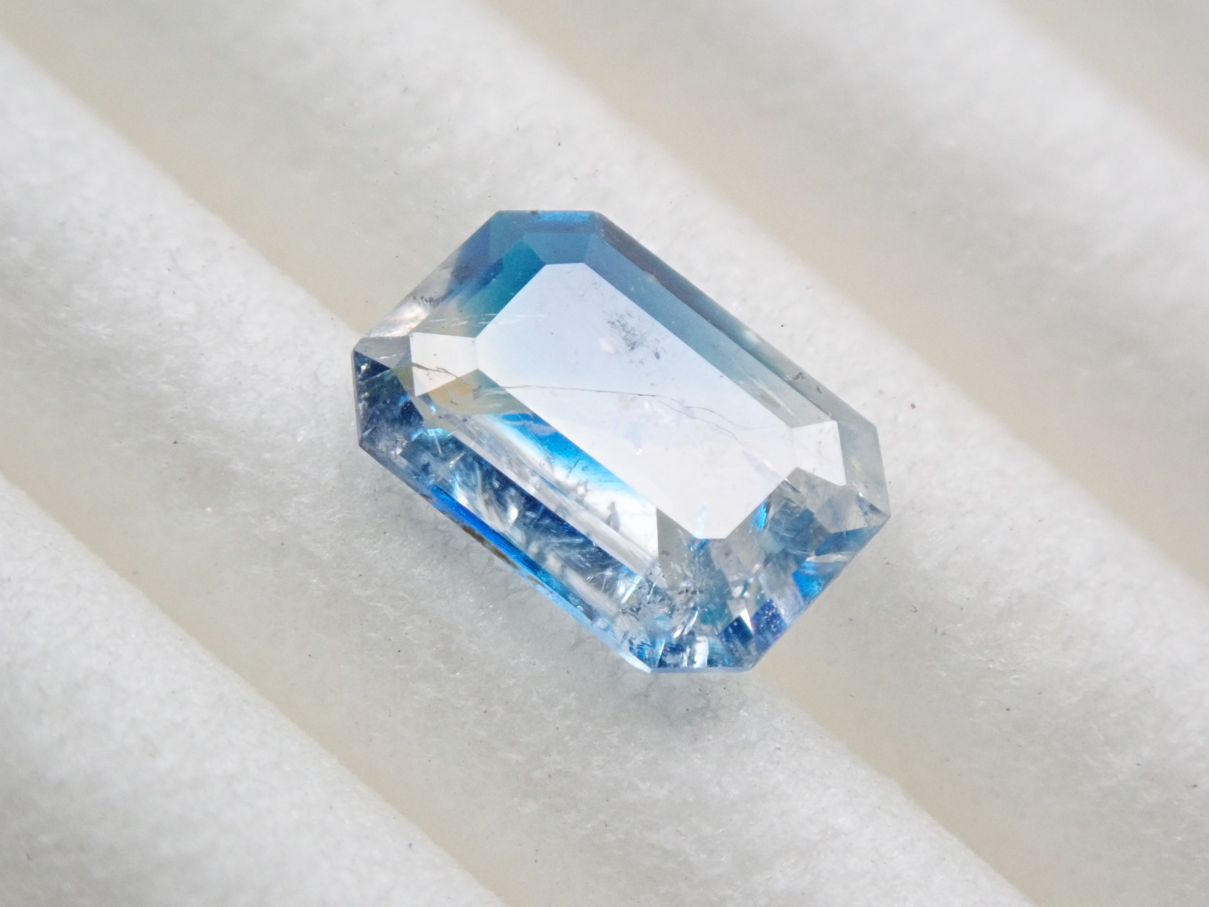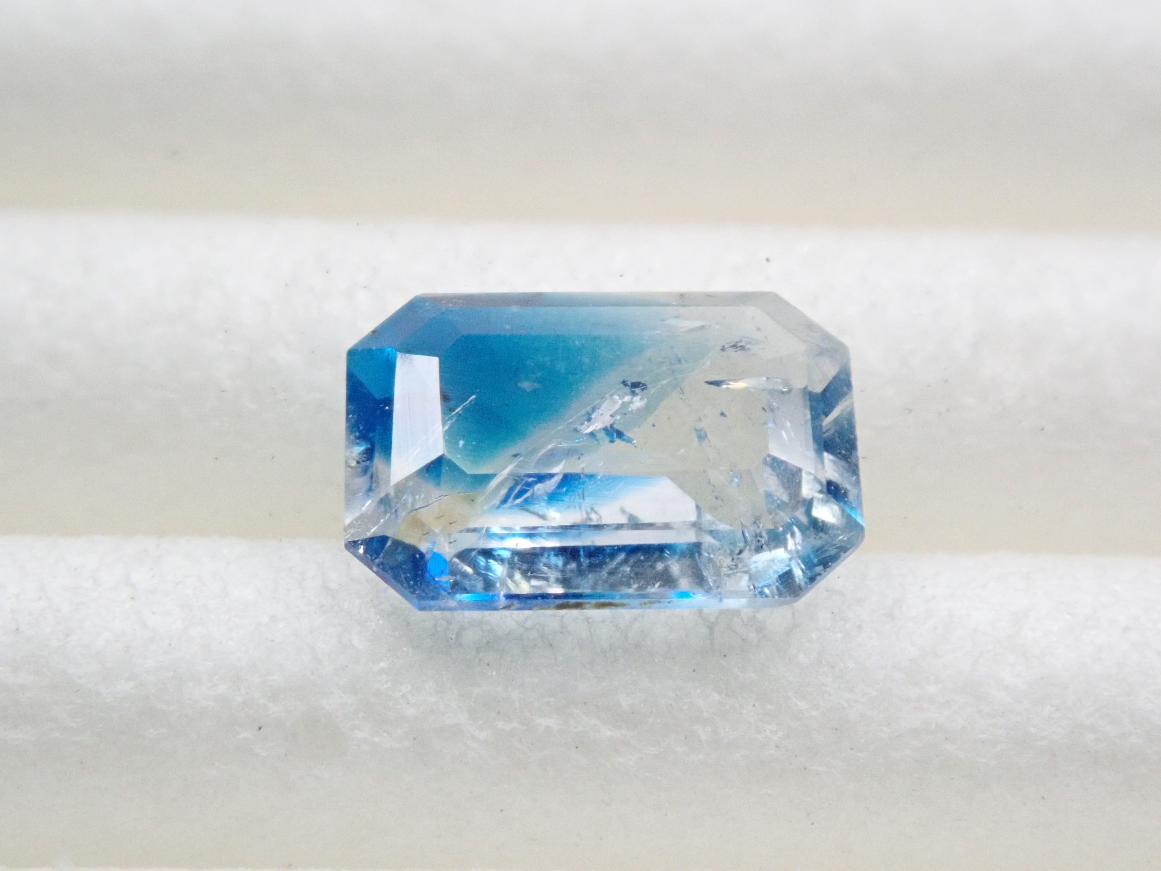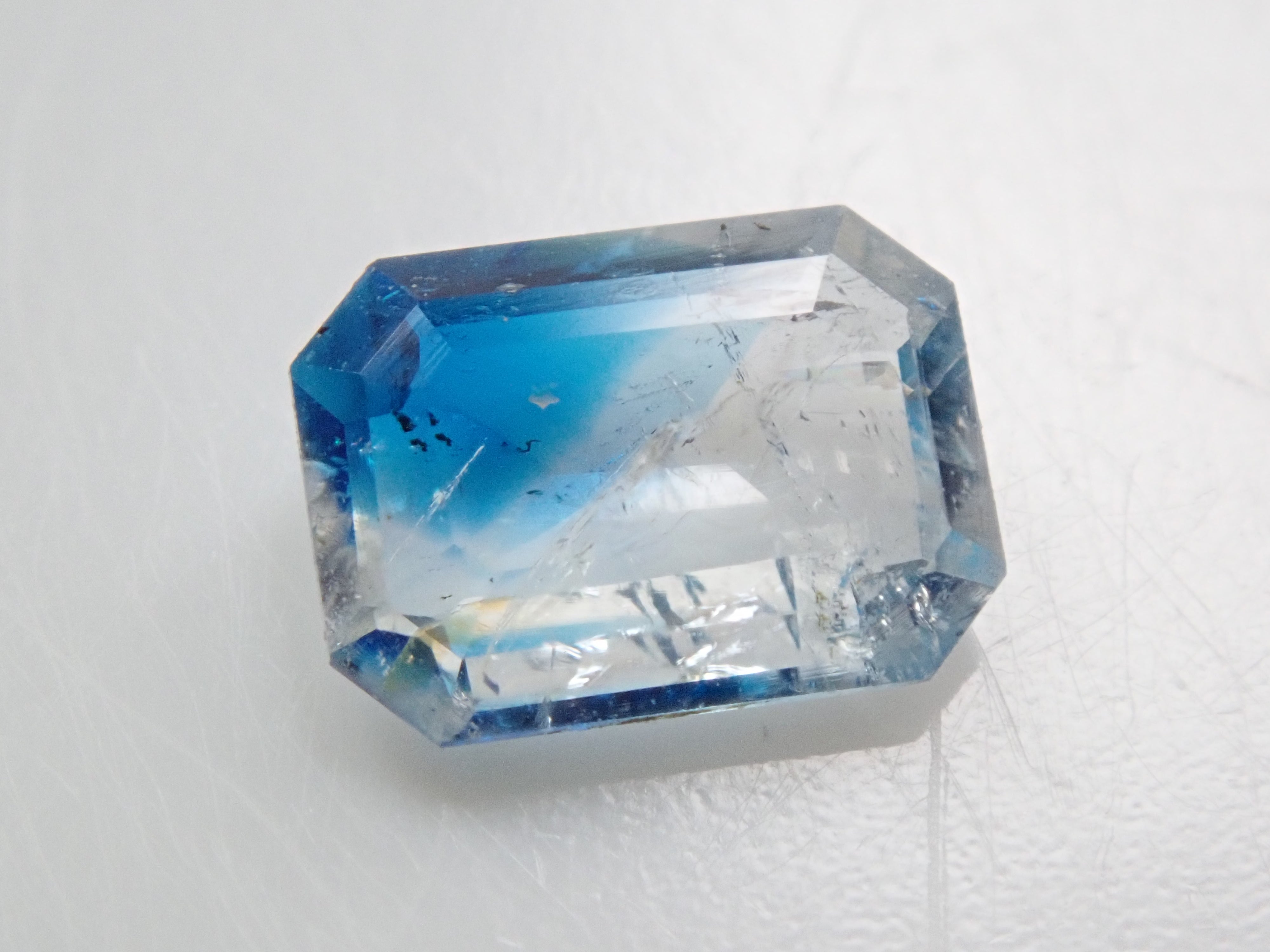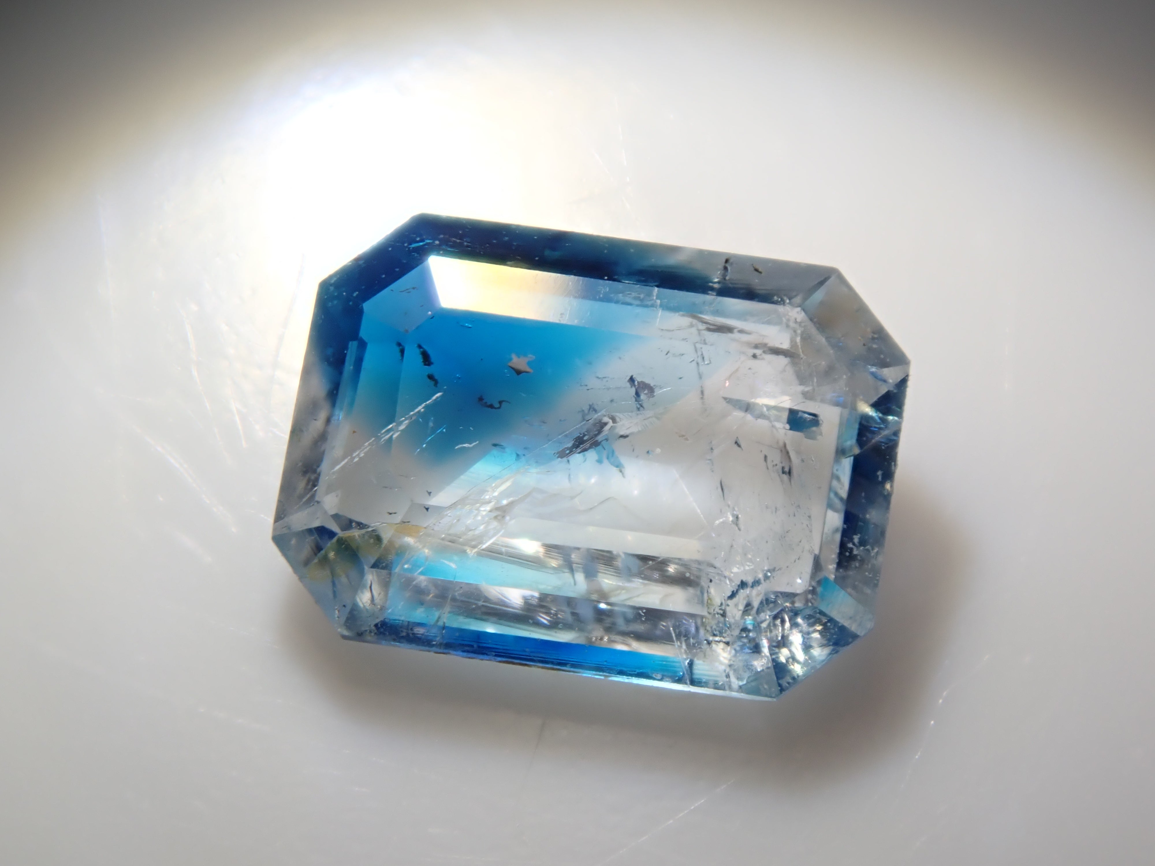 綠柱石(Euclase)的名字來自希臘語“eu”(意為“好”)和“klasis”(意為“破碎”)。顧名思義,它擁有完美的解理。由於產地稀少,這種寶石很少被製成寶石。它有多種顏色,包括白色、無色、淺綠色、淺藍色和深藍色。這顆產自辛巴威的雙色綠柱石。
