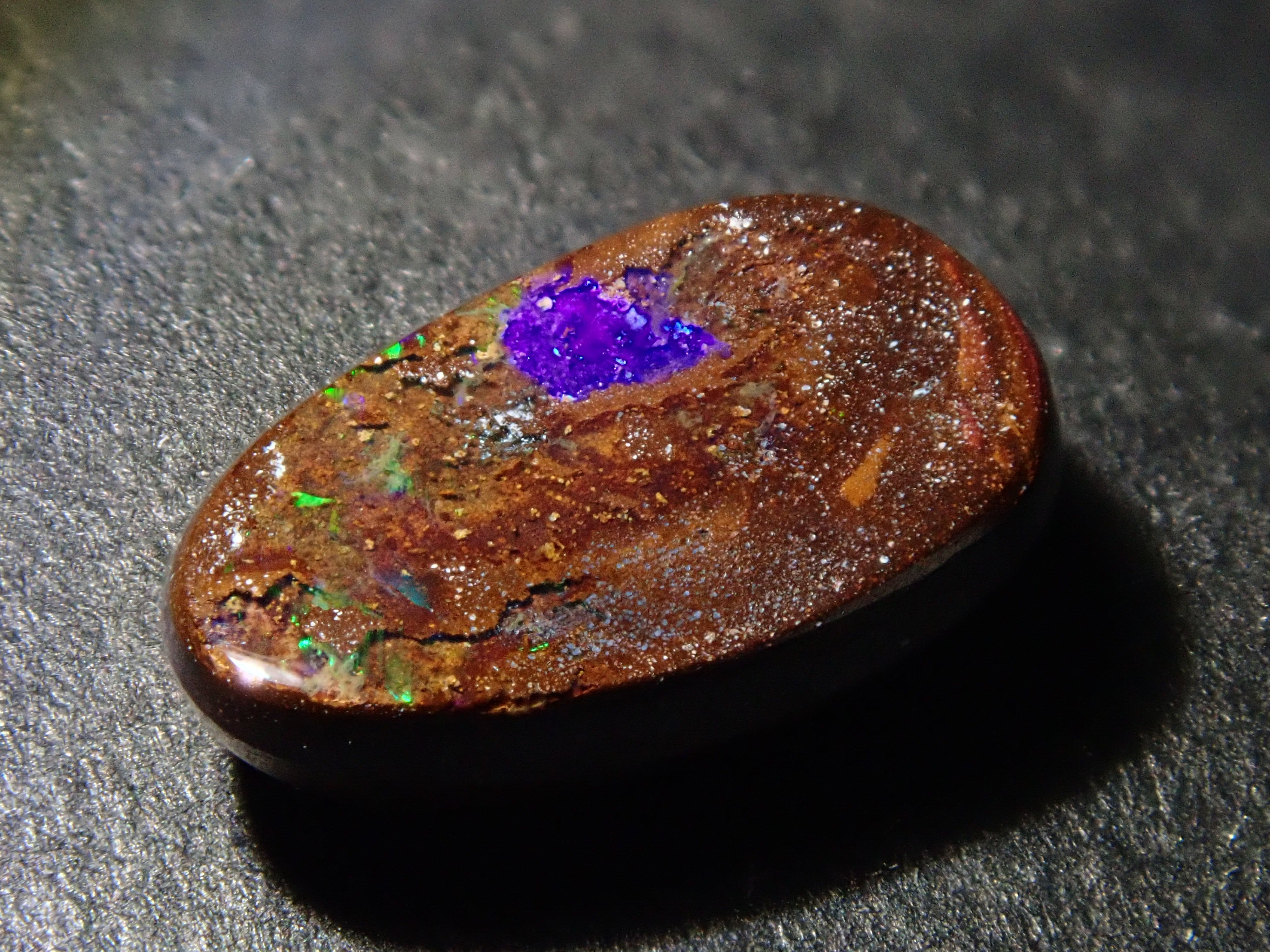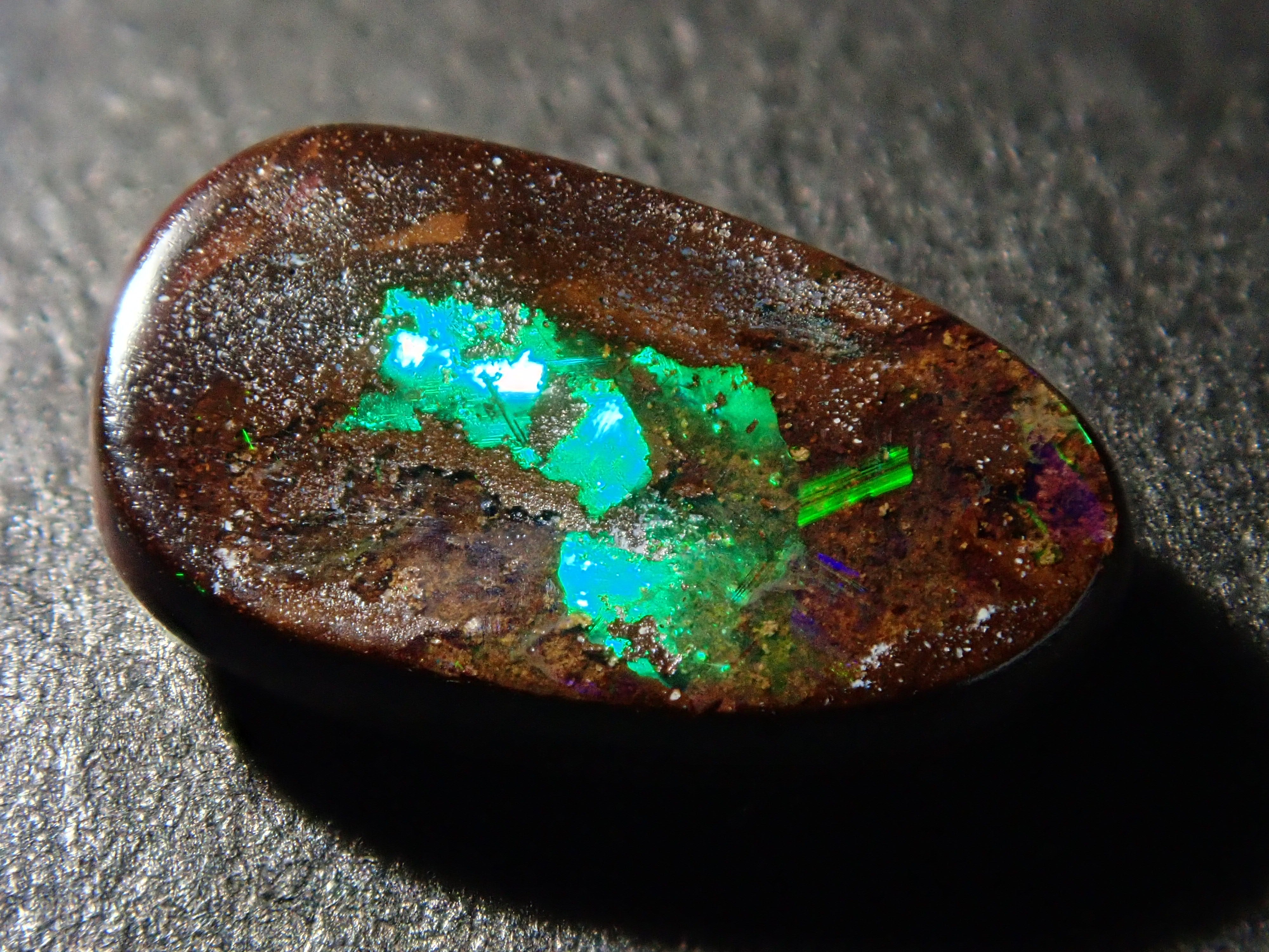 蛋白石是一種閃爍著彩虹色光芒的寶石。蛋白石有多種類型,其中,礫石蛋白石是指仍附著主岩的蛋白石。有些照片是用筆燈拍攝的。