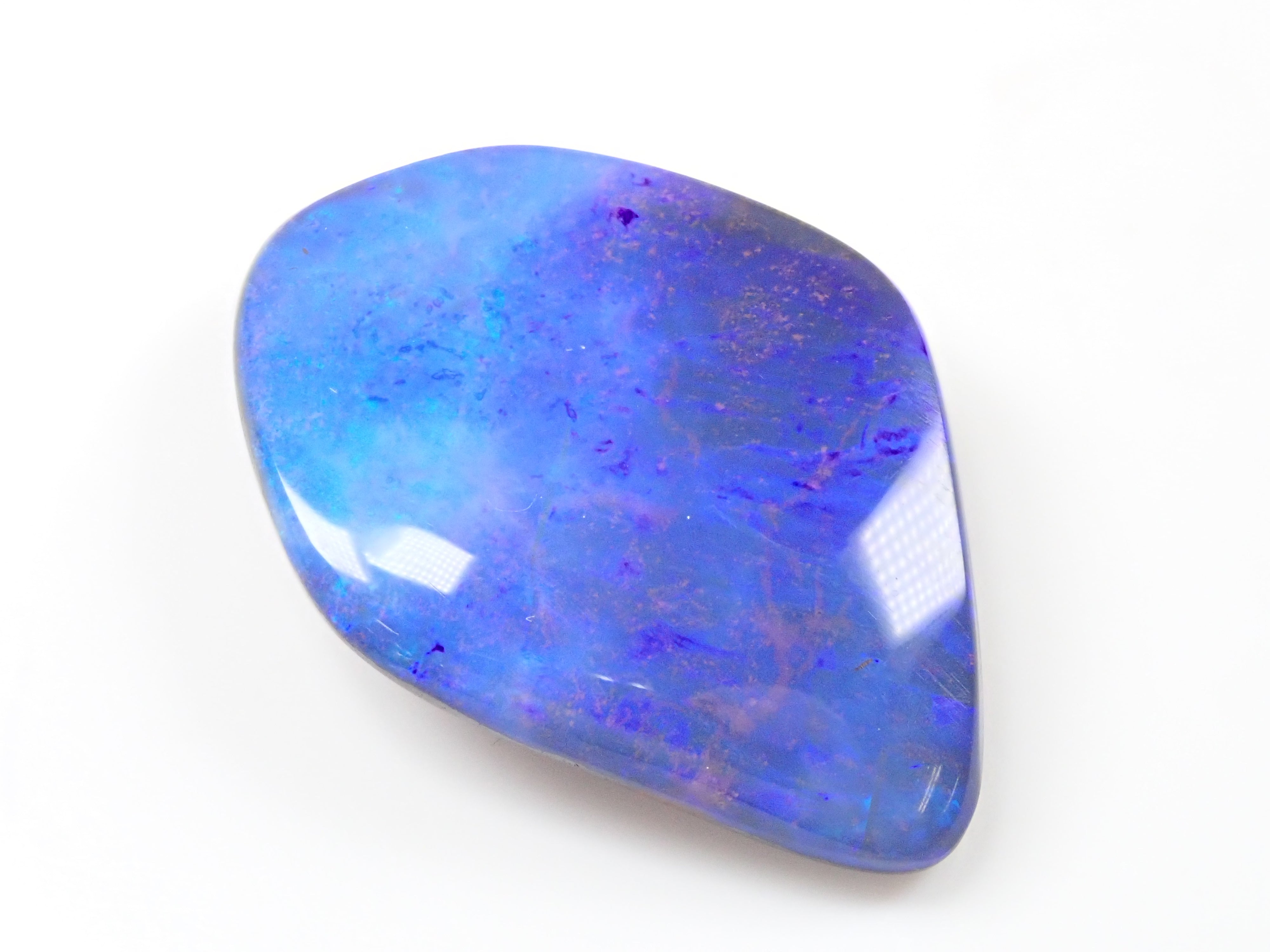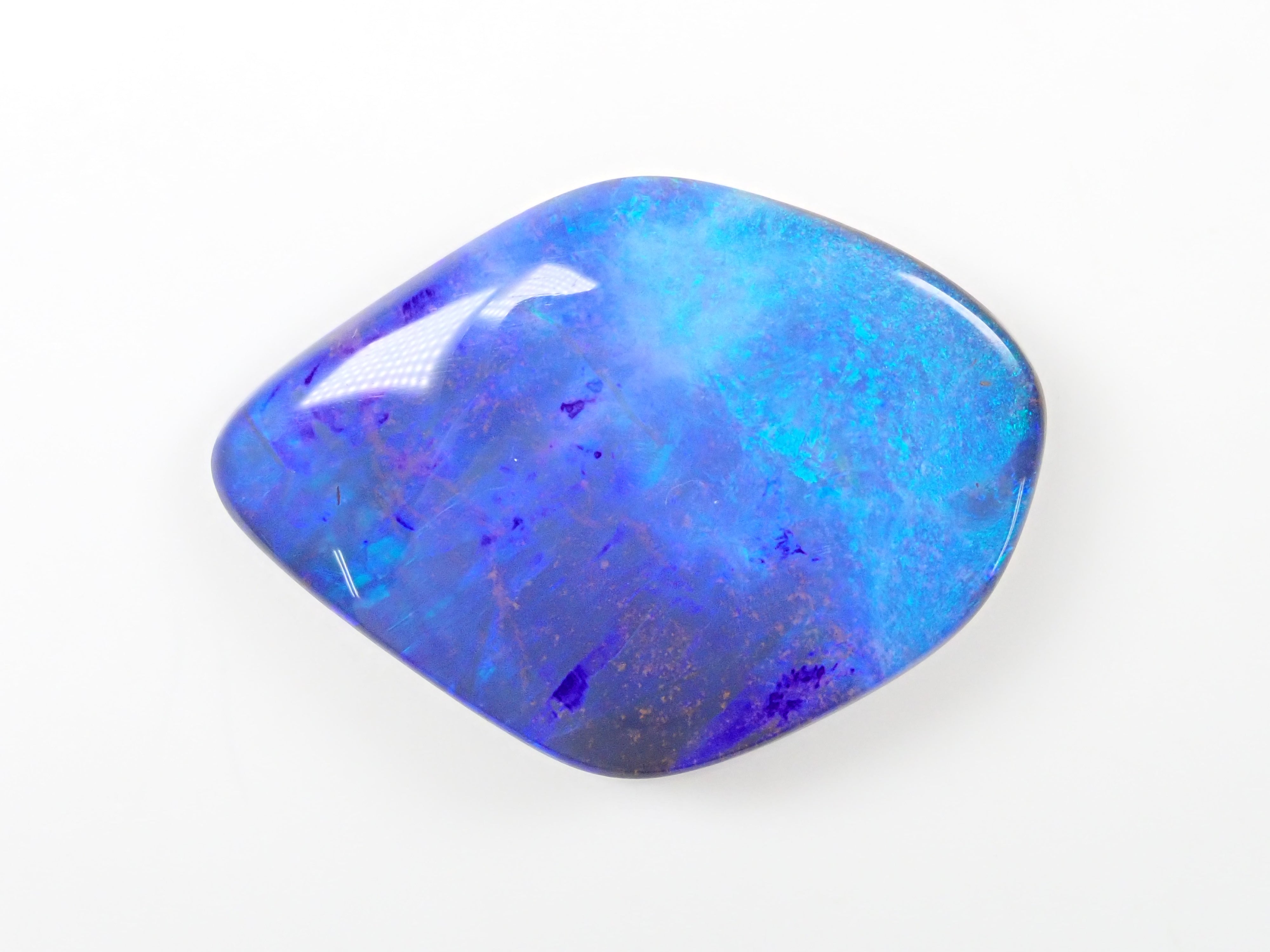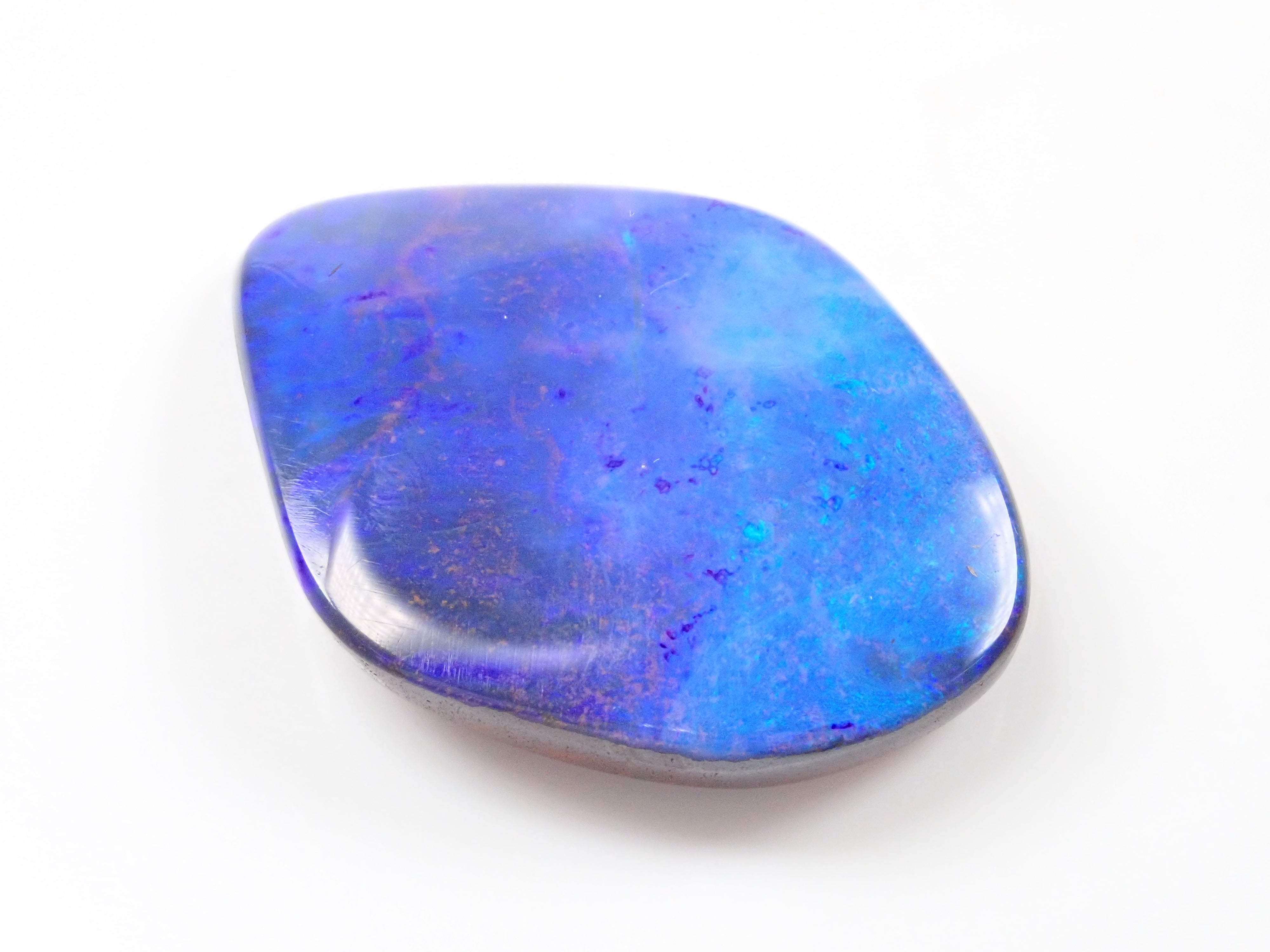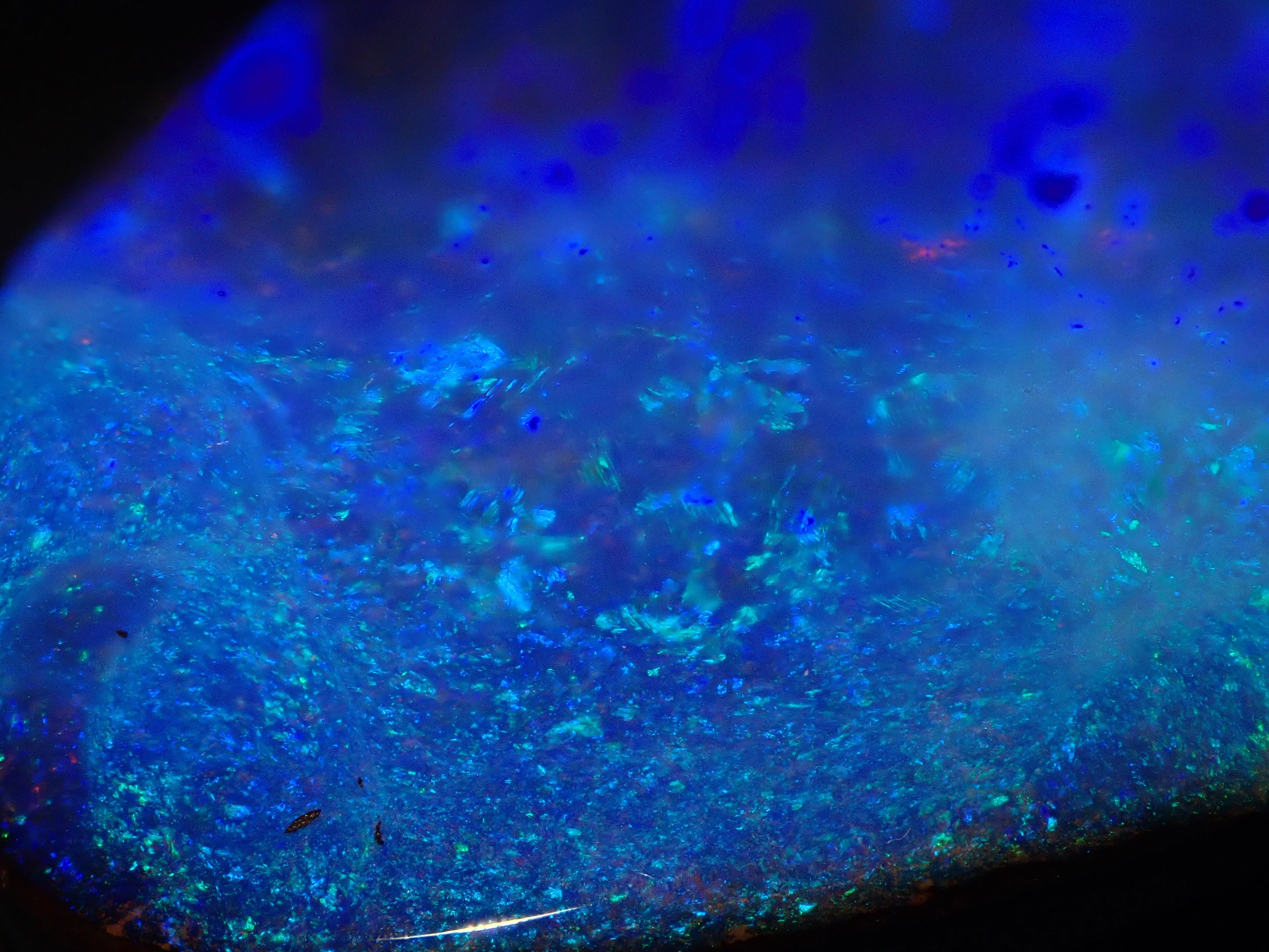蛋白石是一種閃爍著彩虹色光芒的寶石。蛋白石有多種類型,其中,礫石蛋白石是指仍附著主岩的蛋白石。有些照片是用筆燈拍攝的。這是一顆帶有變彩的澳洲礫石蛋白石。這是一顆美麗的澳洲巨石蛋白石,有著亮藍色的色彩。