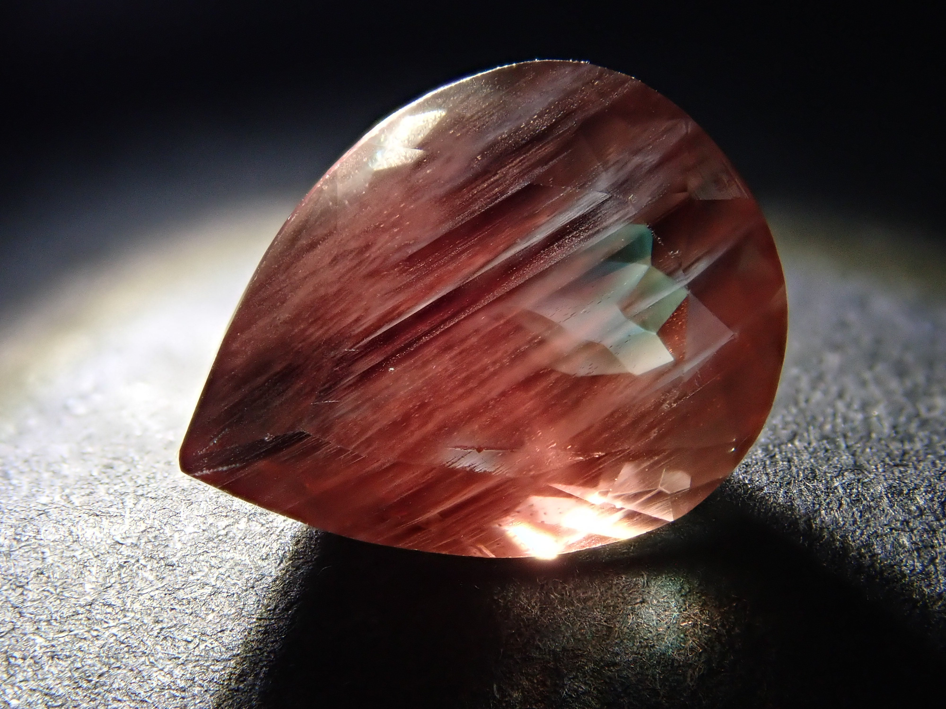 俄勒岡日光石據說是世界上最美麗的拉長石。近年來,這種石頭越來越受歡迎。還有一種稱為散光(席勒效應)的寶石,其中寶石內部的內含物會像閃光一樣反射。為了準確地傳達這些光學效果,攝影時使用筆燈。