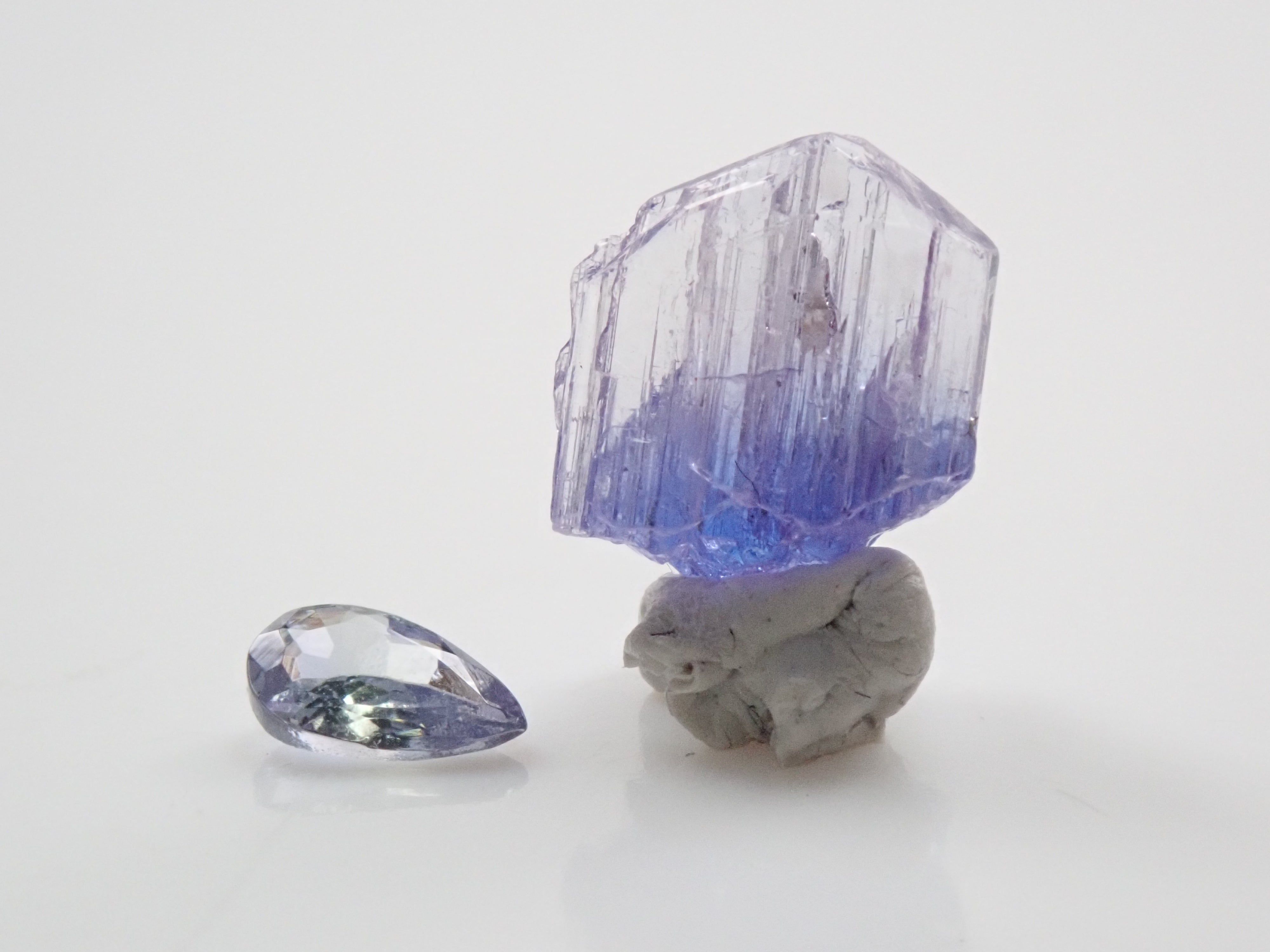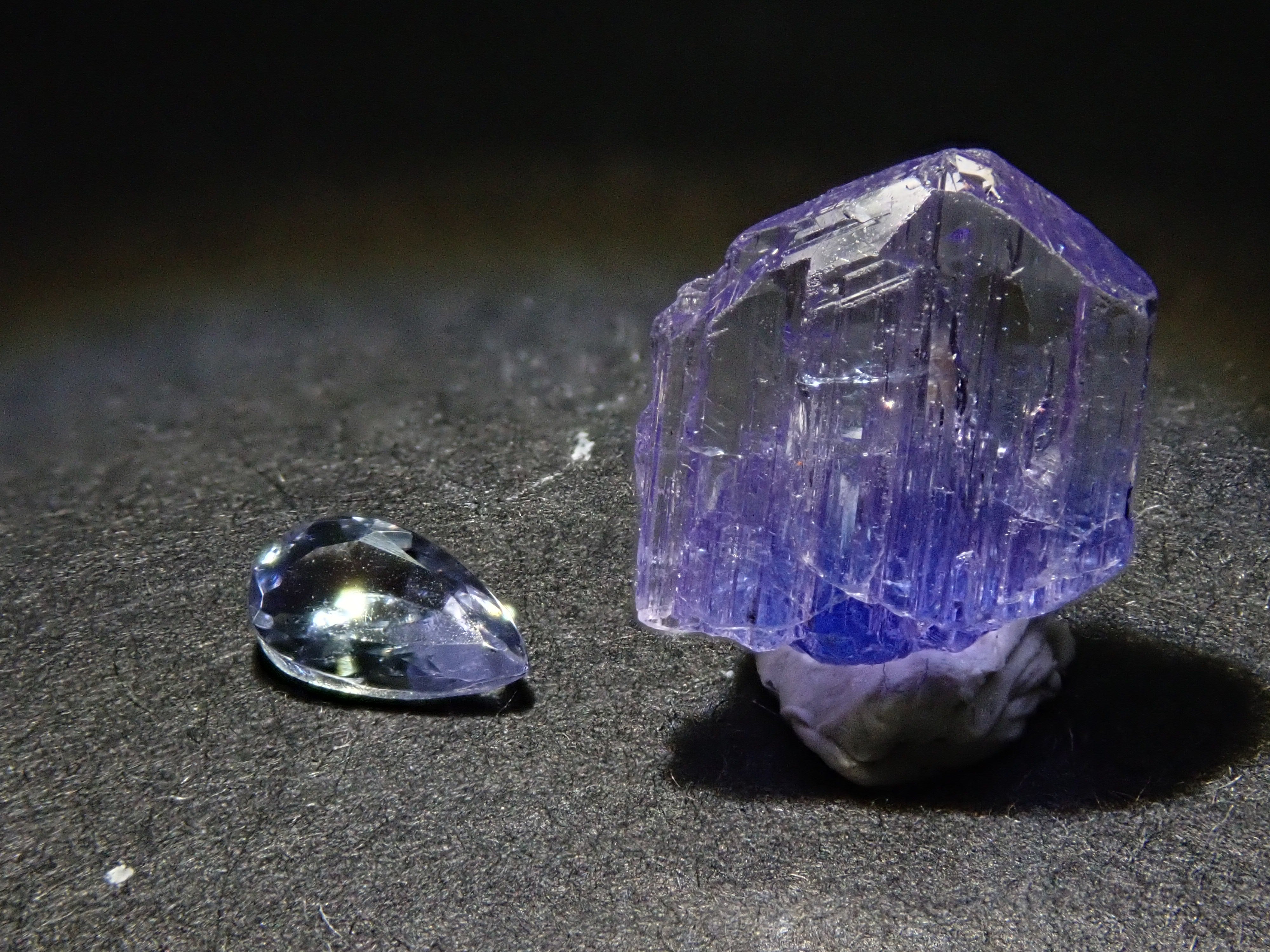 坦尚尼亞雙色坦桑石 1.644 克拉原石和散石 2 件套
