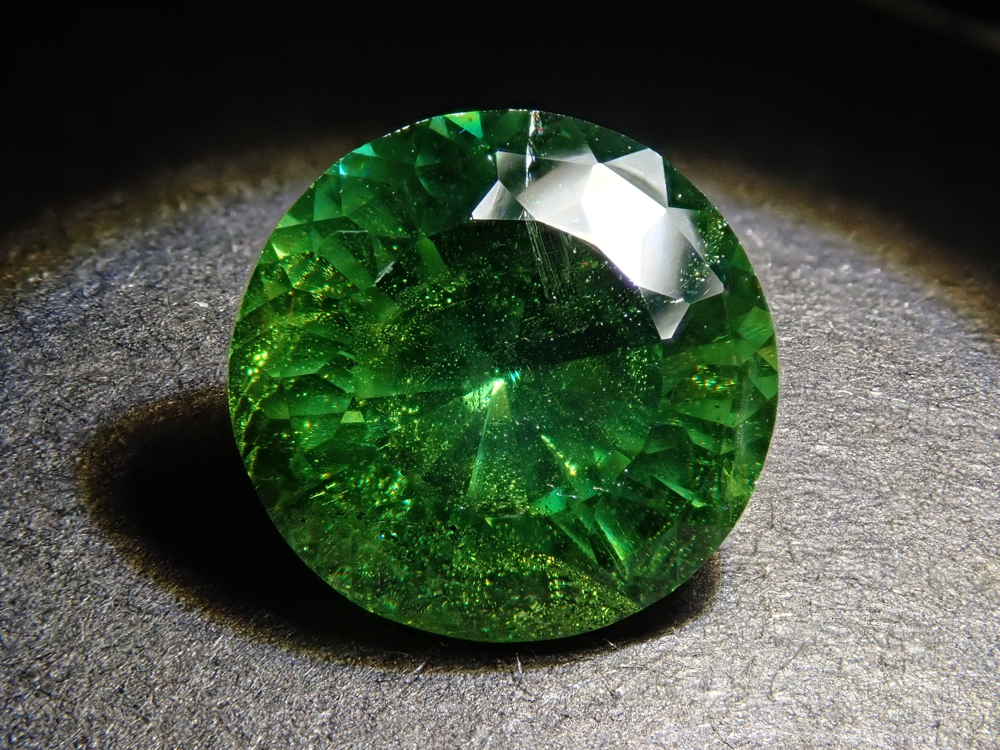 閃鋅礦的色散率接近鑽石的四倍,並呈現出絢麗的火彩。據說是流通量很小、市場上數量不多的稀有寶石之一。底色有黃、橙、綠等,在火中可以欣賞到黃、棕、橙、紅、綠等各種顏色。作為綠色閃鋅礦,它很大,尺寸為 9 毫米 UP。附有日德寶石研究所頒發的原產地證書。