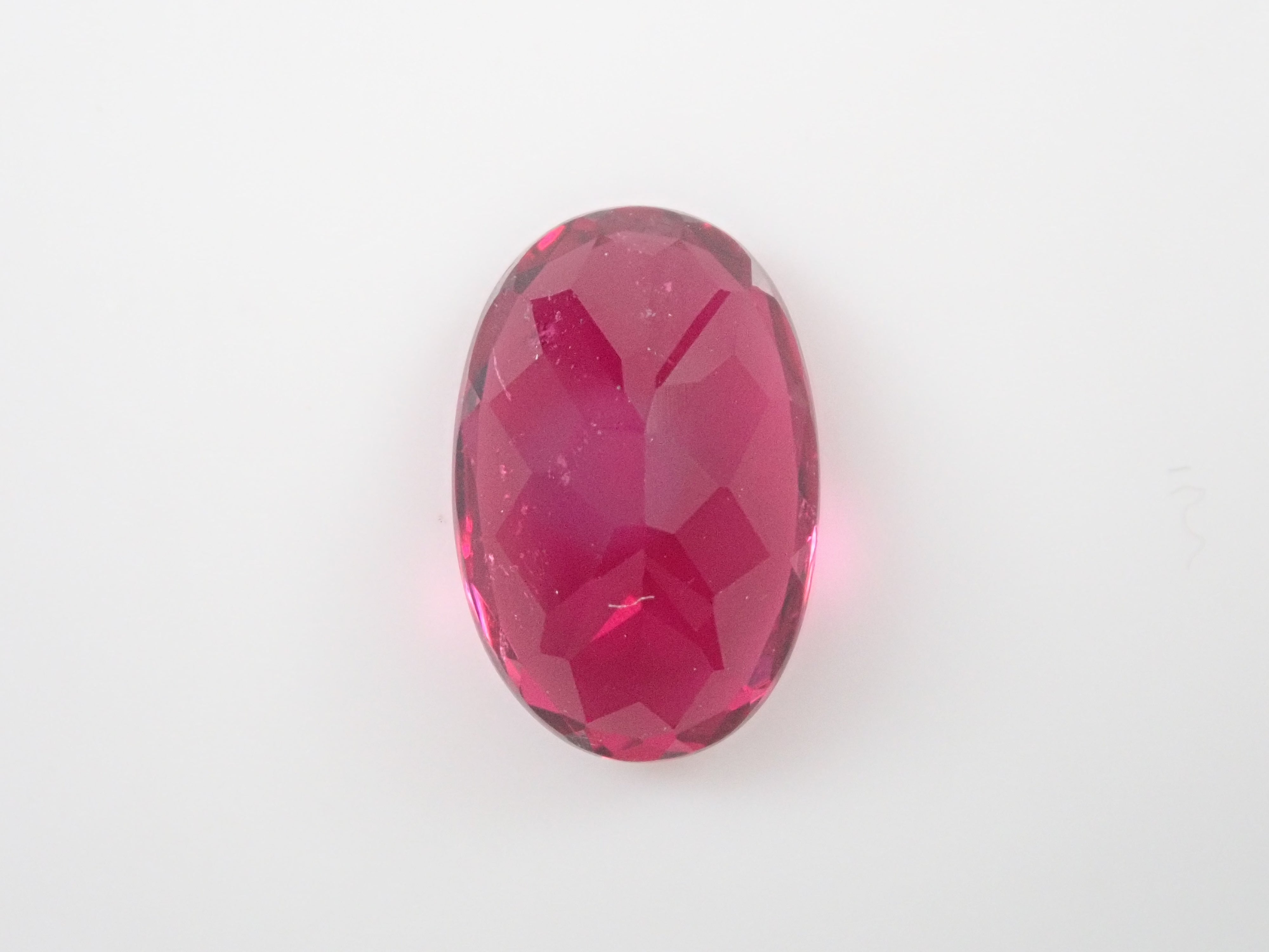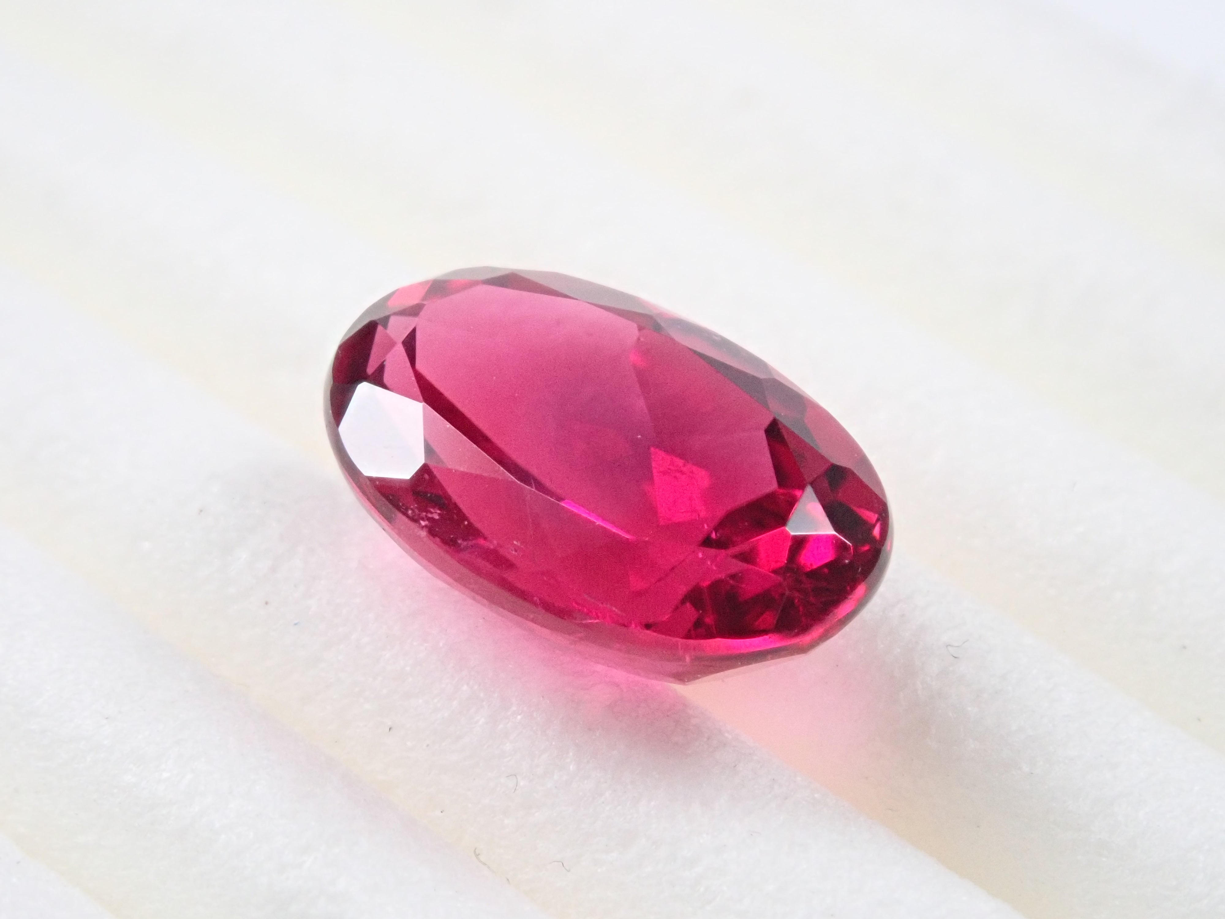 迷人的蔓越莓色,紅碧璽。它是一種碧璽,指的是紅色碧璽。在紅色碧璽中,特定顏色範圍內的碧璽被稱為紅碧璽。欣賞從紅色到紫紅色的清新光澤。一般來說,紅碧璽內含物較多,但這顆卻很少。它顏色深,是一塊特別優質的紅碧璽散石。