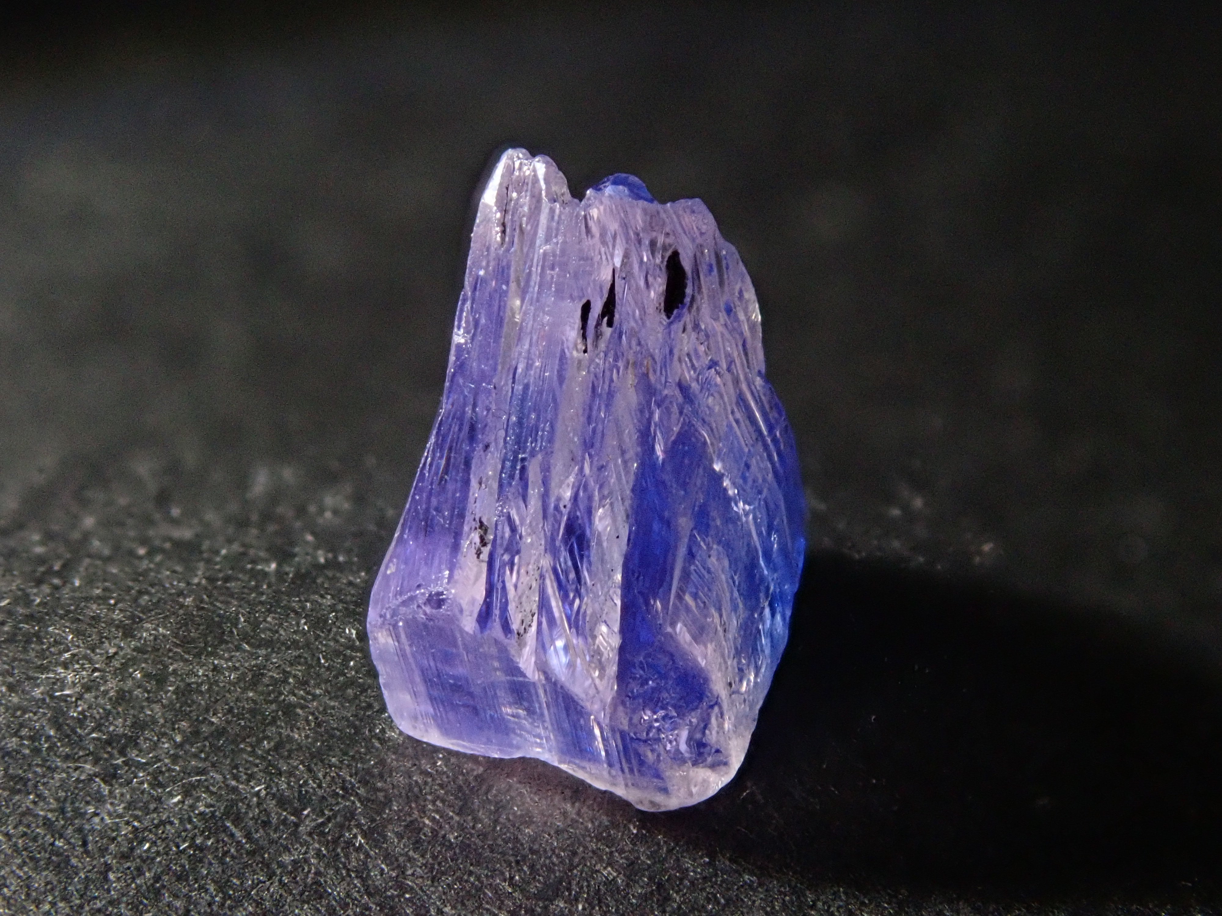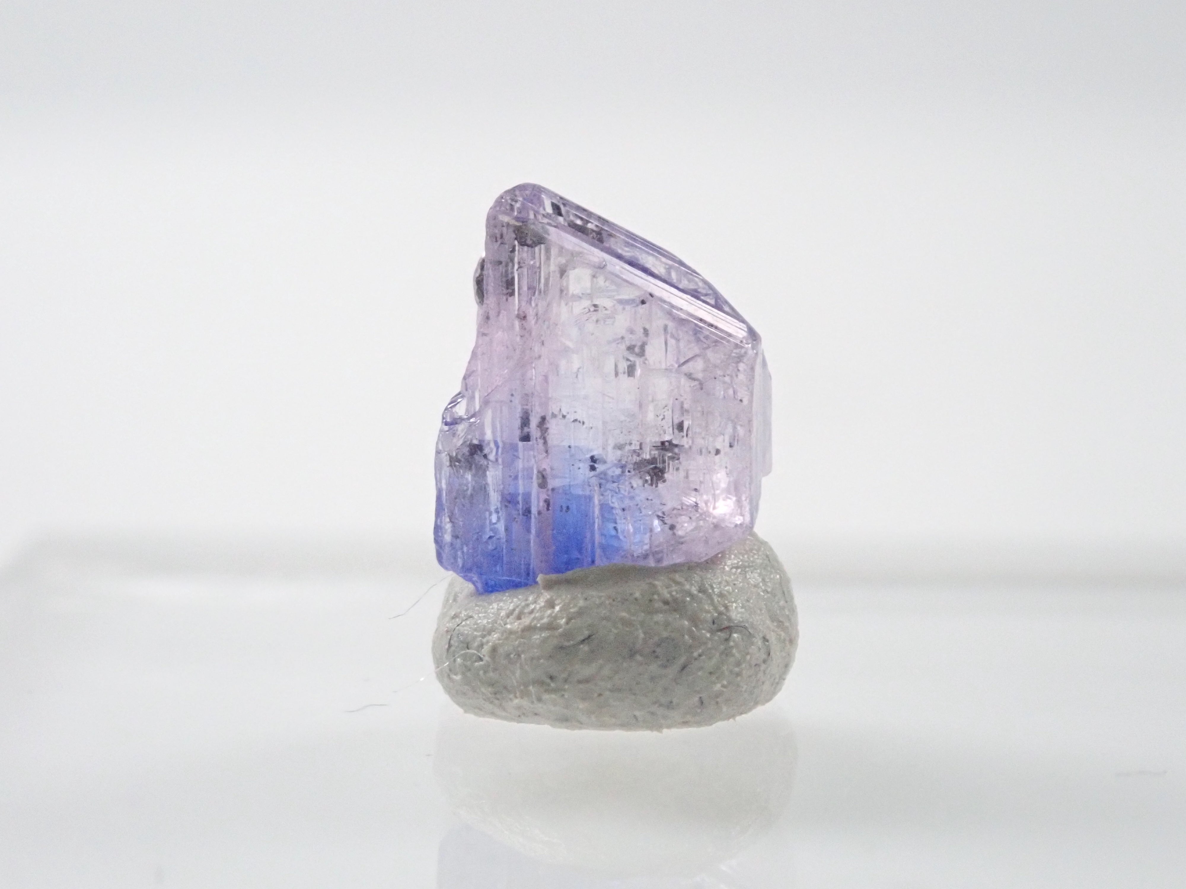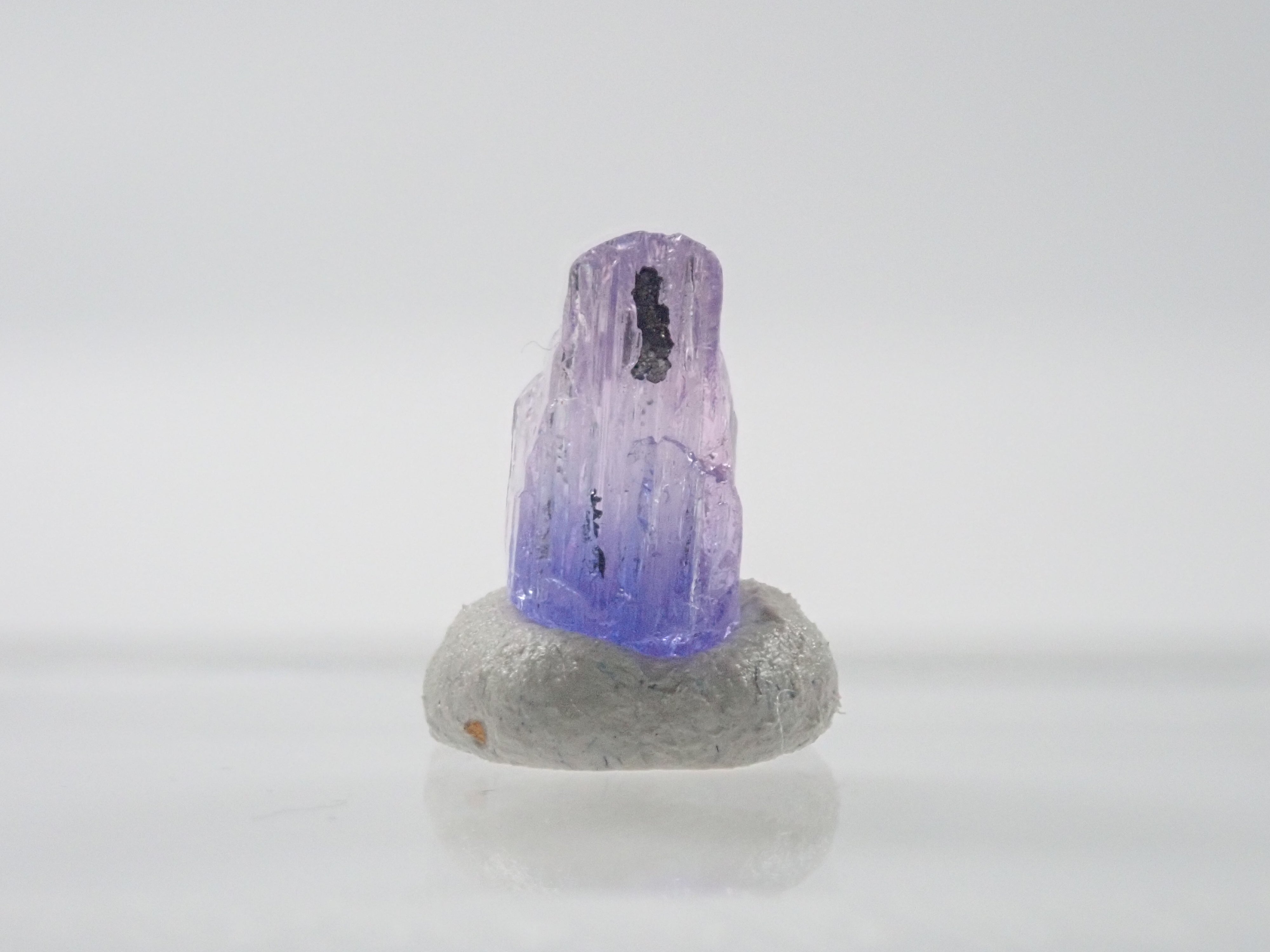黝簾石有多種顏色。它以斯洛維尼亞礦物收藏家 Zygmunt Zois 的名字命名。坦桑石其實是黝簾石的一種。與坦桑石一樣,它是一種有吸引力的多向色性寶石,根據觀察角度的不同,呈現出不同的顏色。這是一種相對罕見的雙色黝簾石。 包括壓克力底座和礦物標籤。