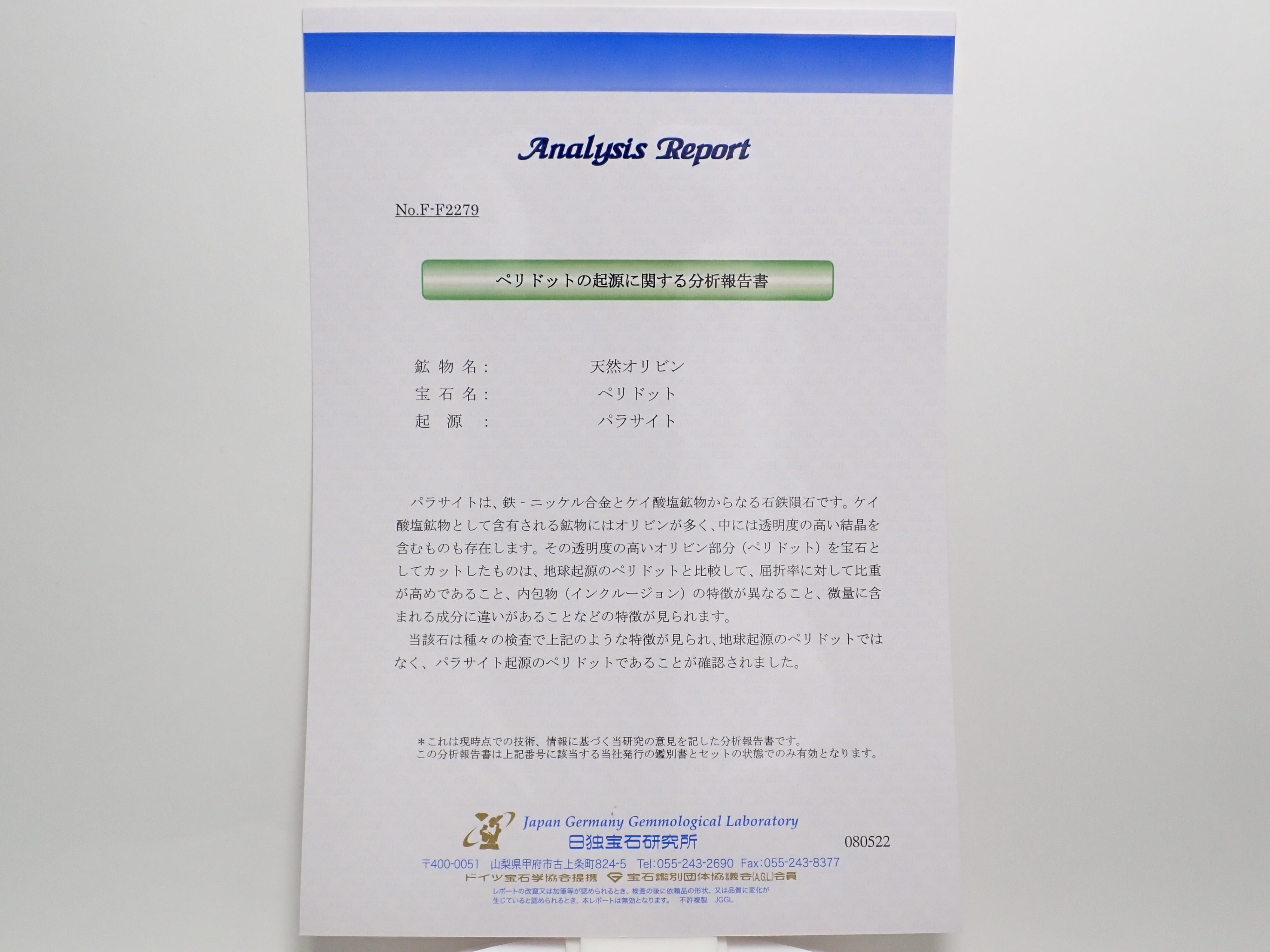 橄欖石以八月生日石而聞名。事實上,橄欖石也存在於月球岩石和隕石中。與地球上的差異包括更高的比重和獨特的內含物和成分。這是一種非常神秘的寶石,來自遙遠的太空。並列橄欖石是一種罕見的寶石,通常很小,很少鬆散。美麗的平列橄欖石,具有流星般的特徵內含物。附有日德寶石研究所頒發的鑑定證書。