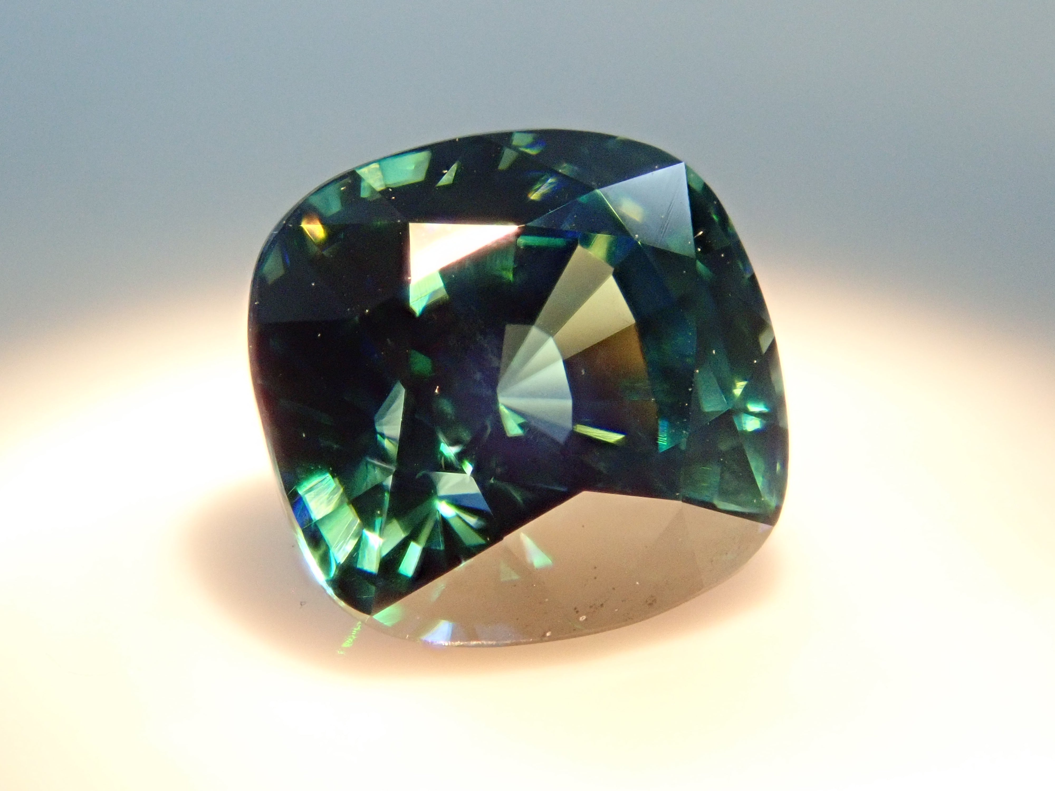 鋯石是世界上最古老的礦物。它是一種顏色多種多樣的石頭,具有高雙折射和一種稱為“雙重”的特性,使其閃閃發光。這是一種罕見的寶石,變色鋯石。在白光照射下顏色變為藍色,在橙色光照射下顏色變為綠色。這是變色鋯石中的深藍色,分佈體積較小。