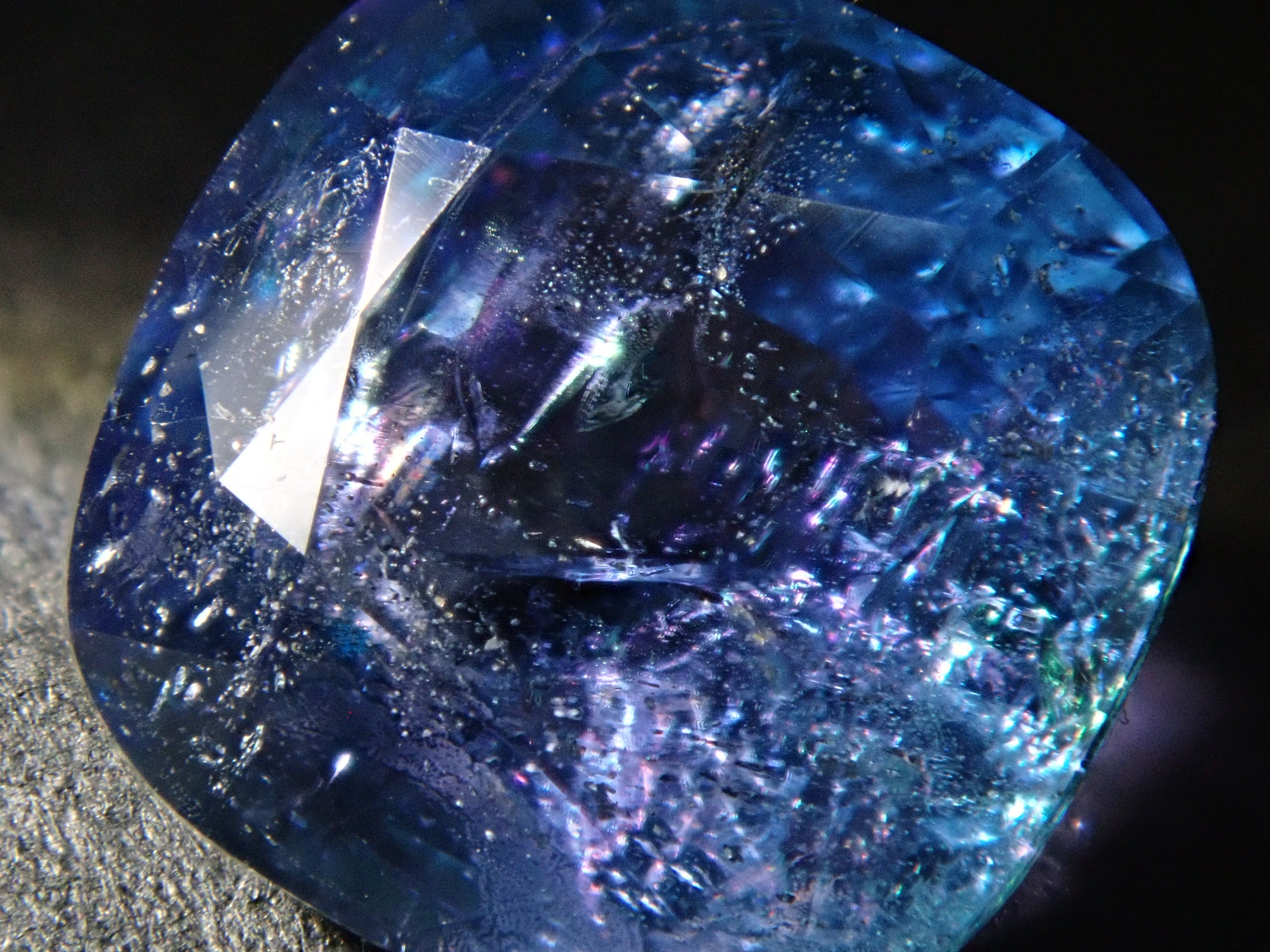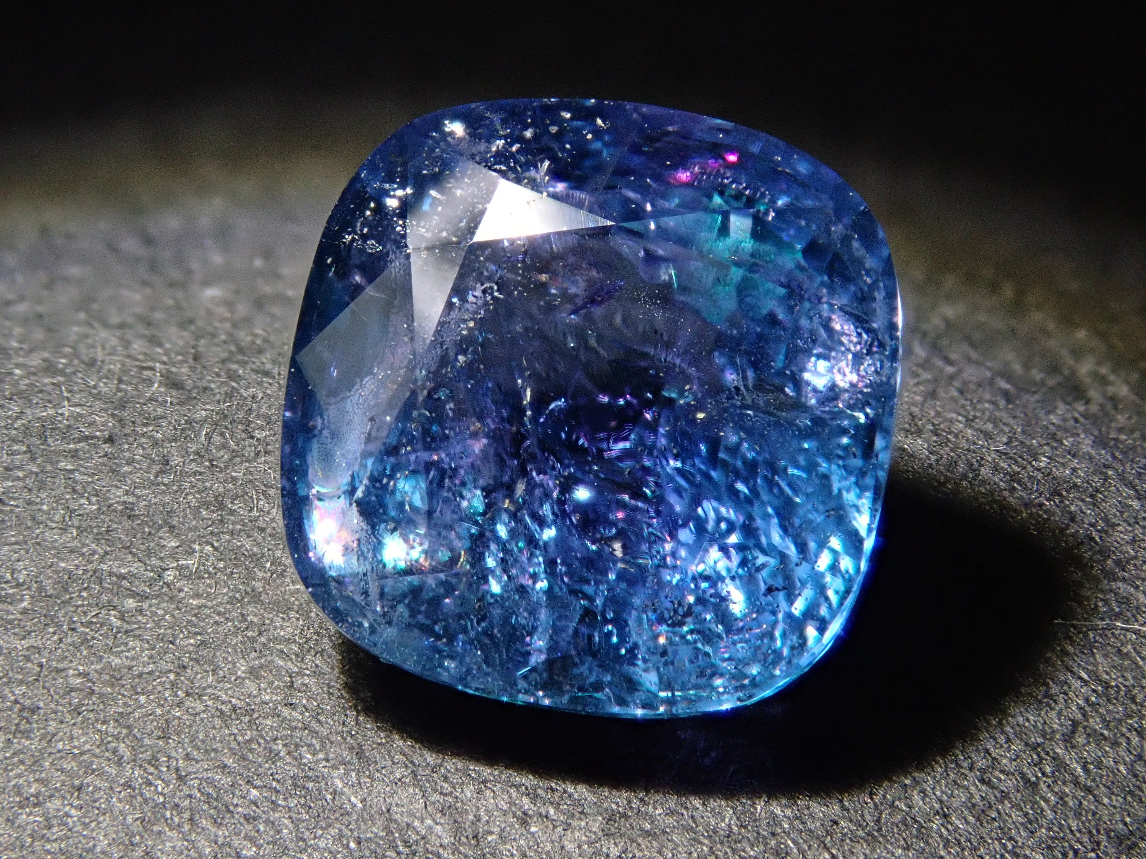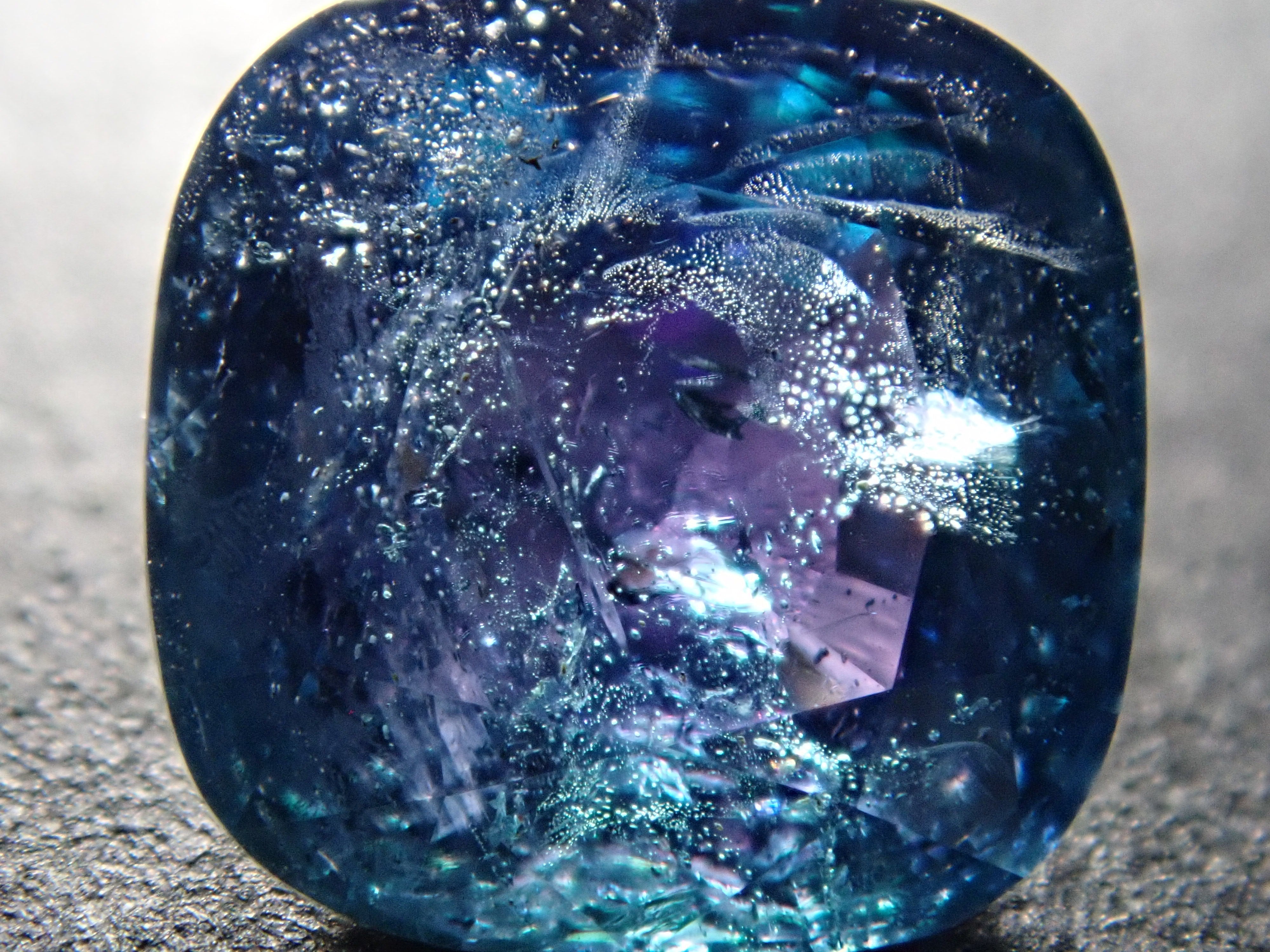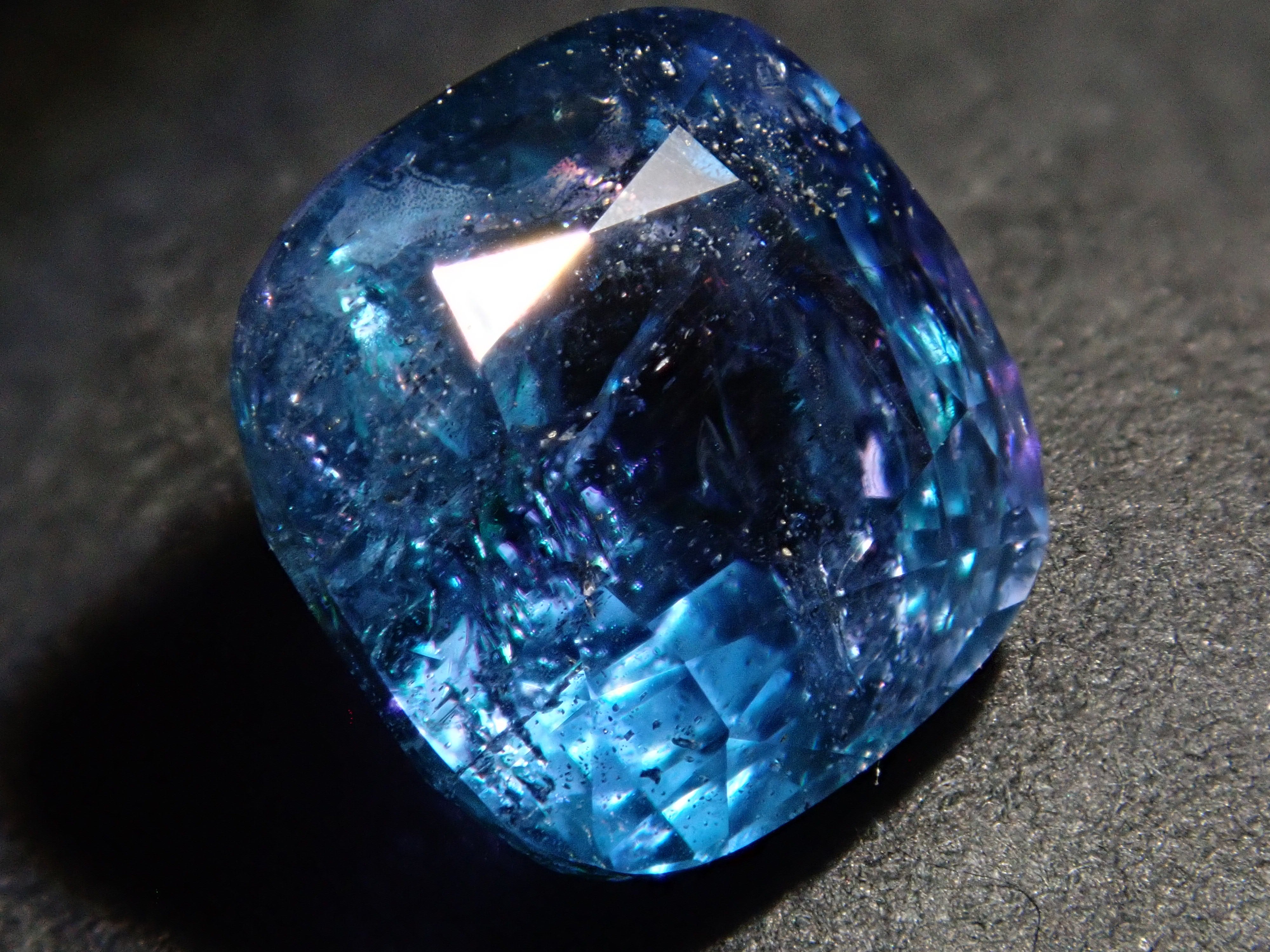 山茱萸因其多色性而引人注目,這使得從不同角度觀看時呈現出不同的顏色。它是稀有寶石之一。多向色性通常以三種顏色出現,有些可以神奇地從藍色變為紫色、綠色和透明。據說,顆粒越大,其多色性就越美麗,但這種情況並不多見。這是一種罕見的含硼茱萸,稱為 prismatin。這是一個大山茱萸別針,具有 2.2 克拉的美麗藍色和這種顏色。