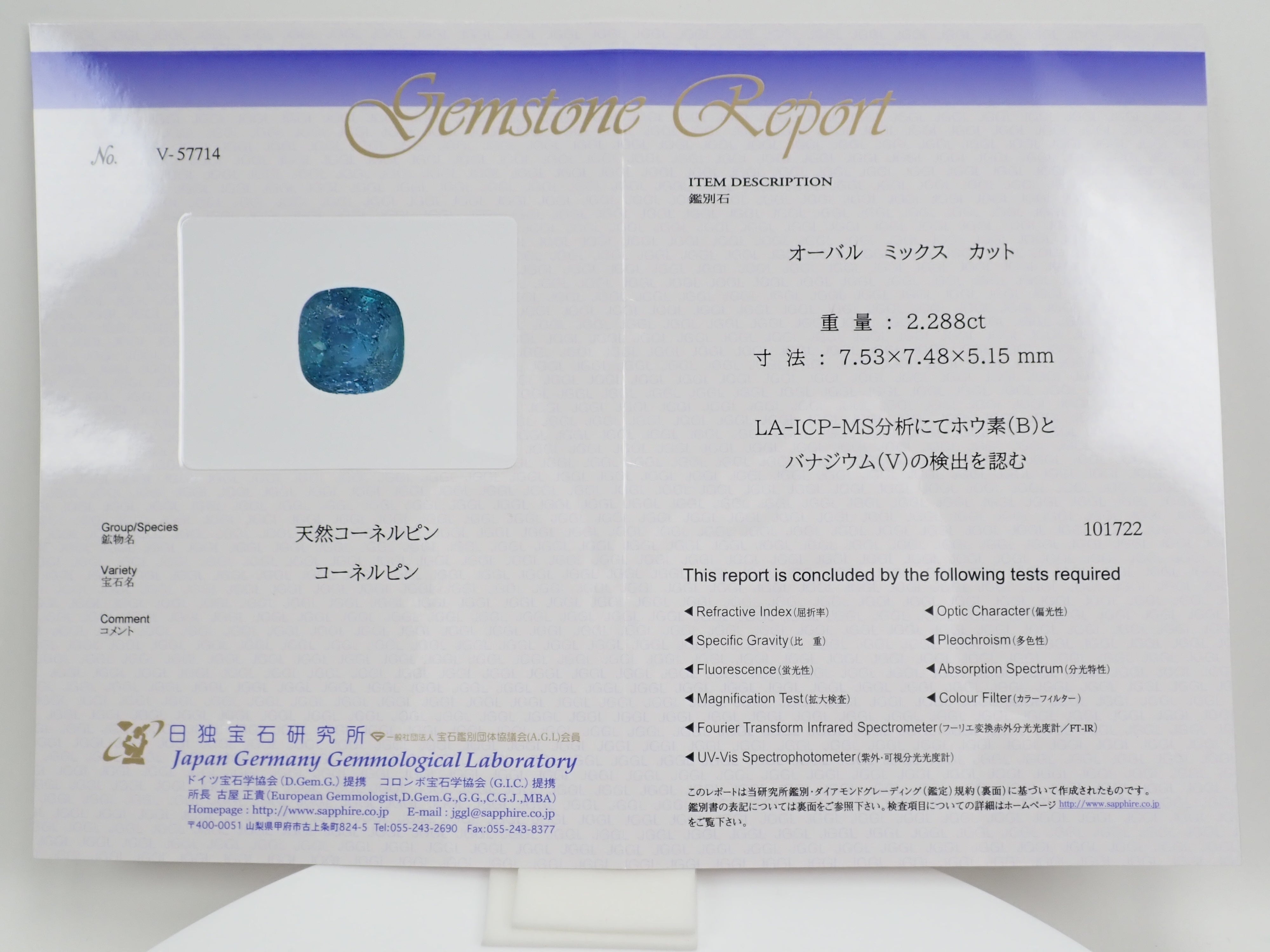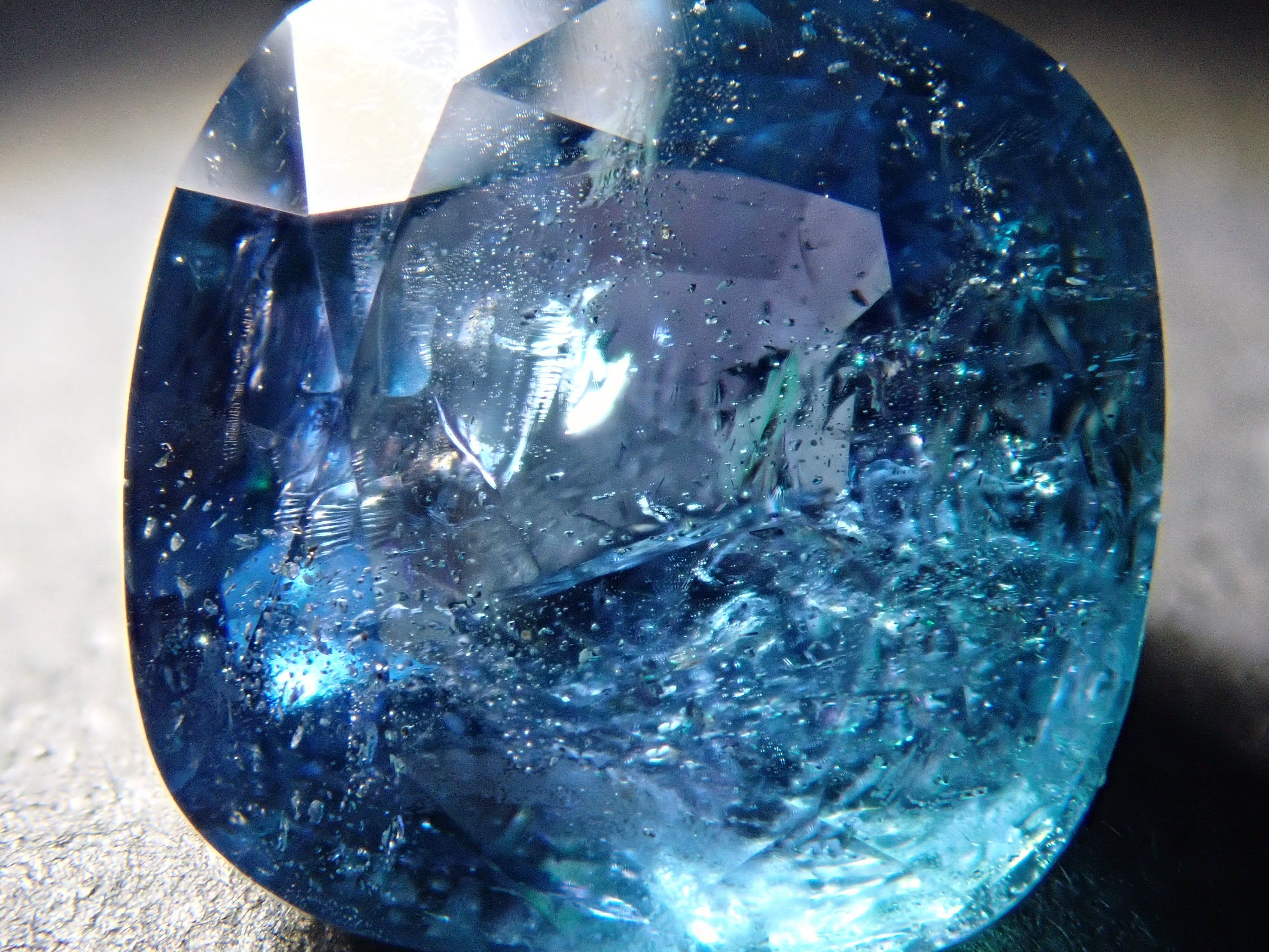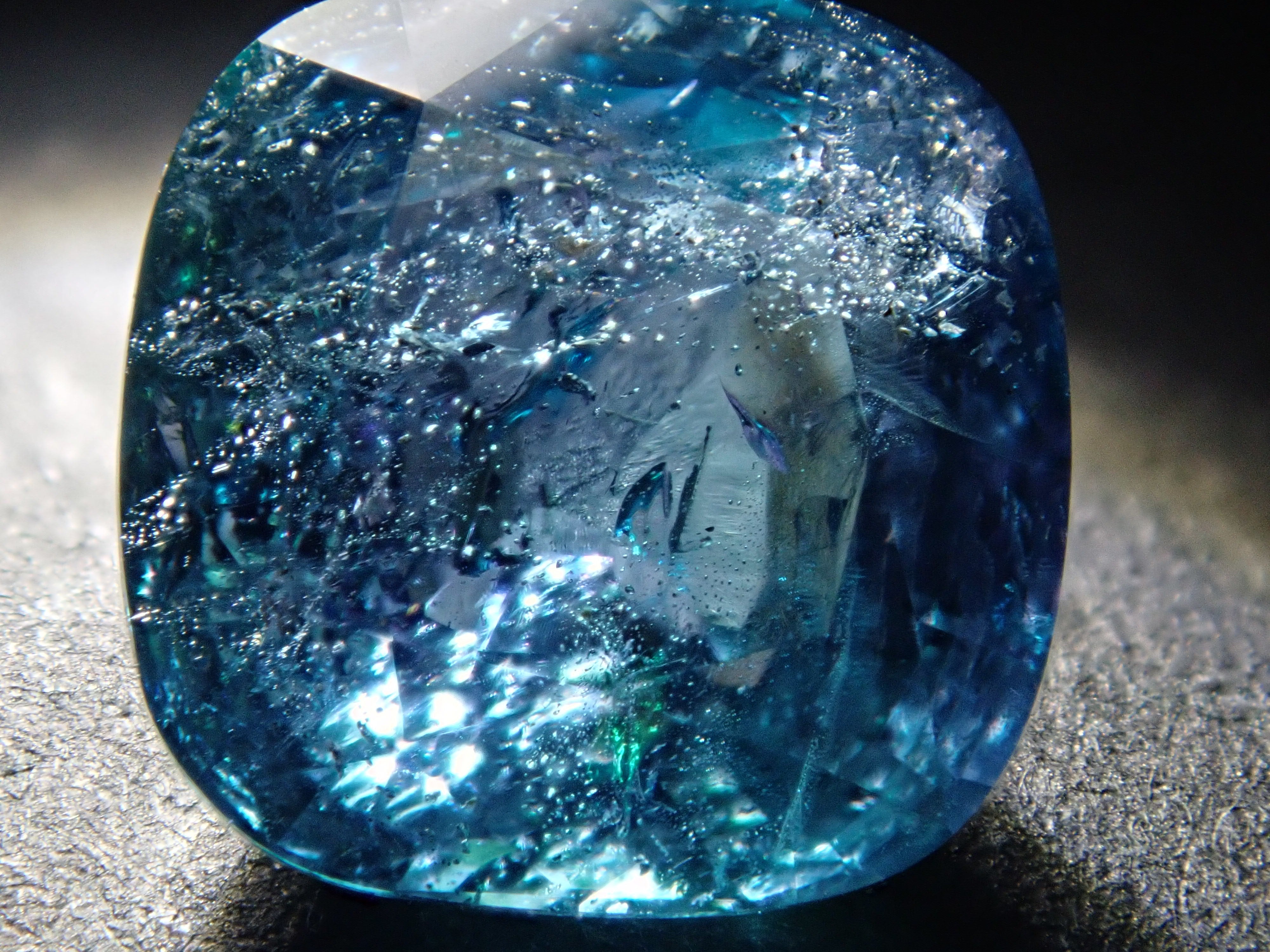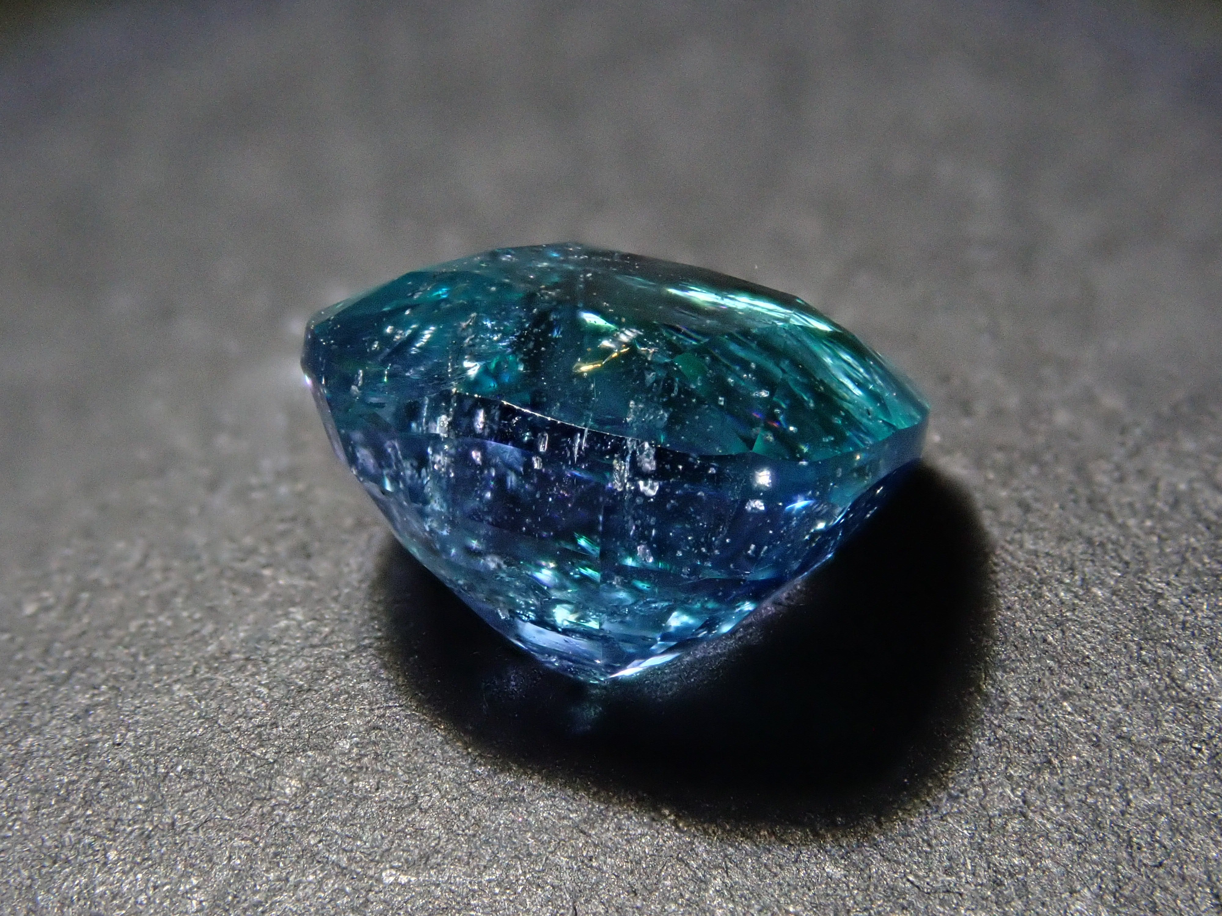 山茱萸因其多色性而引人注目,這使得從不同角度觀看時呈現出不同的顏色。它是稀有寶石之一。多向色性通常以三種顏色出現,有些可以神奇地從藍色變為紫色、綠色和透明。據說,顆粒越大,其多色性就越美麗,但這種情況並不多見。這是一種罕見的含硼茱萸,稱為 prismatin。這是一個大山茱萸別針,具有 2.2 克拉的美麗藍色和這種顏色。
