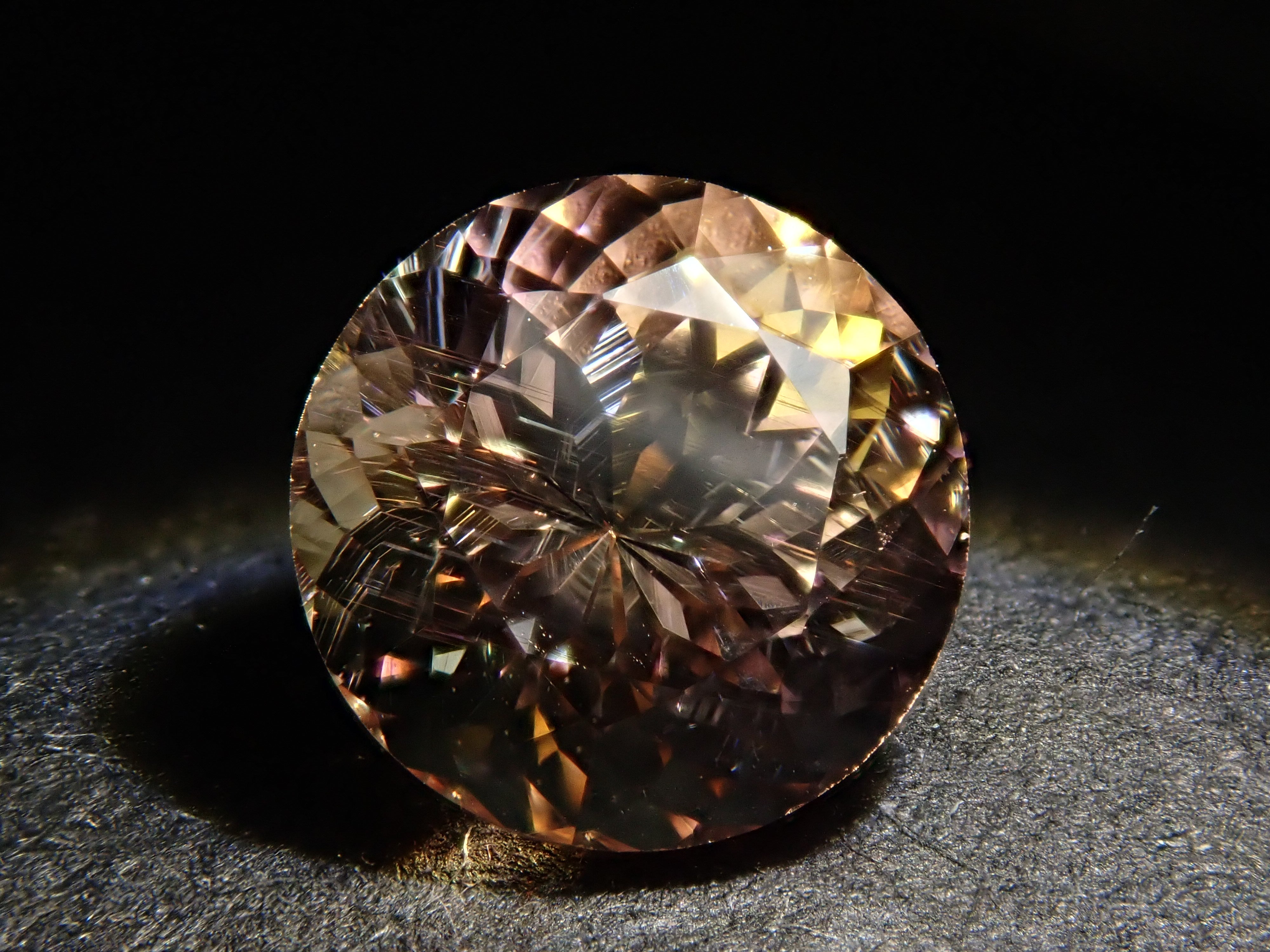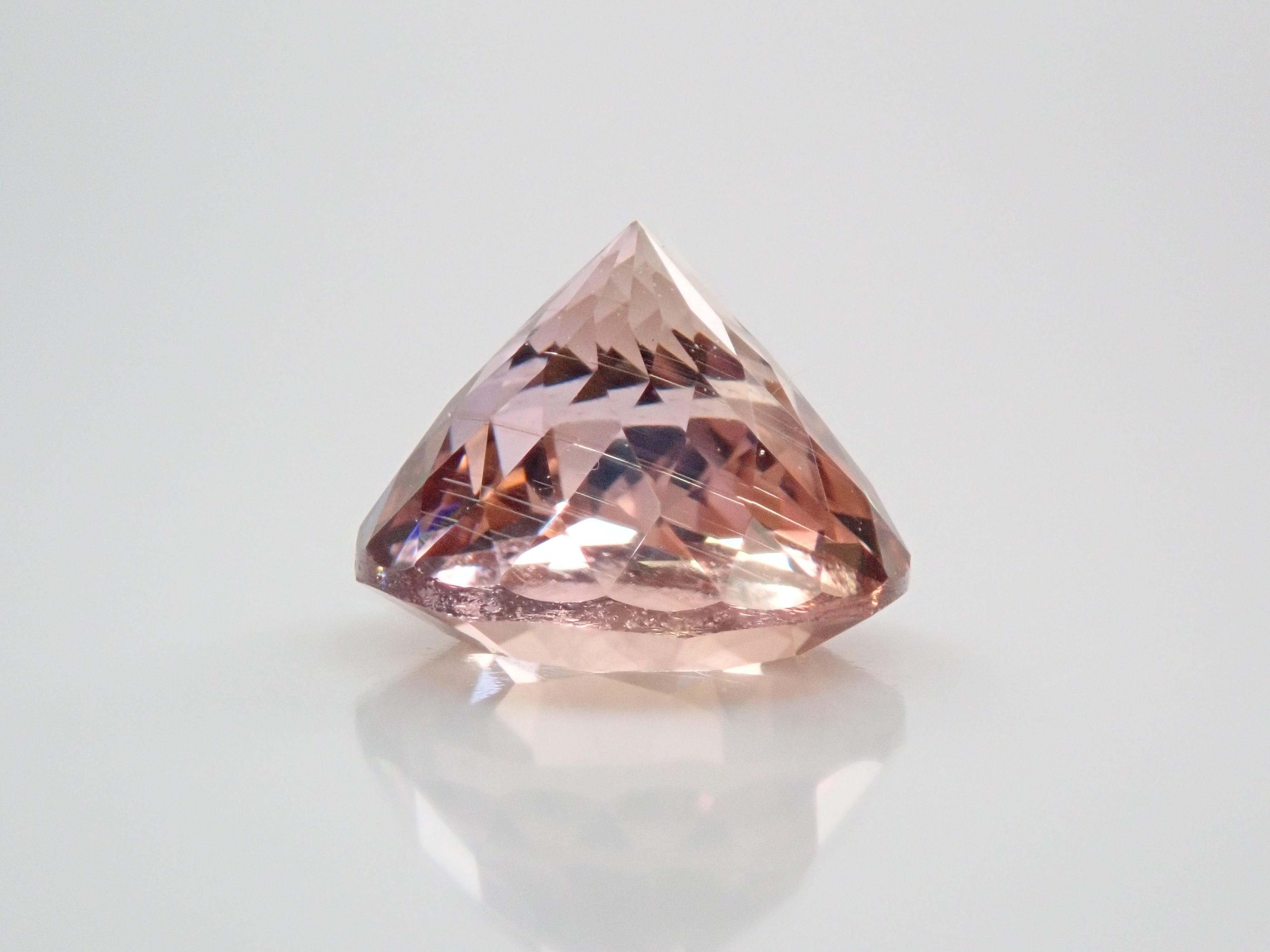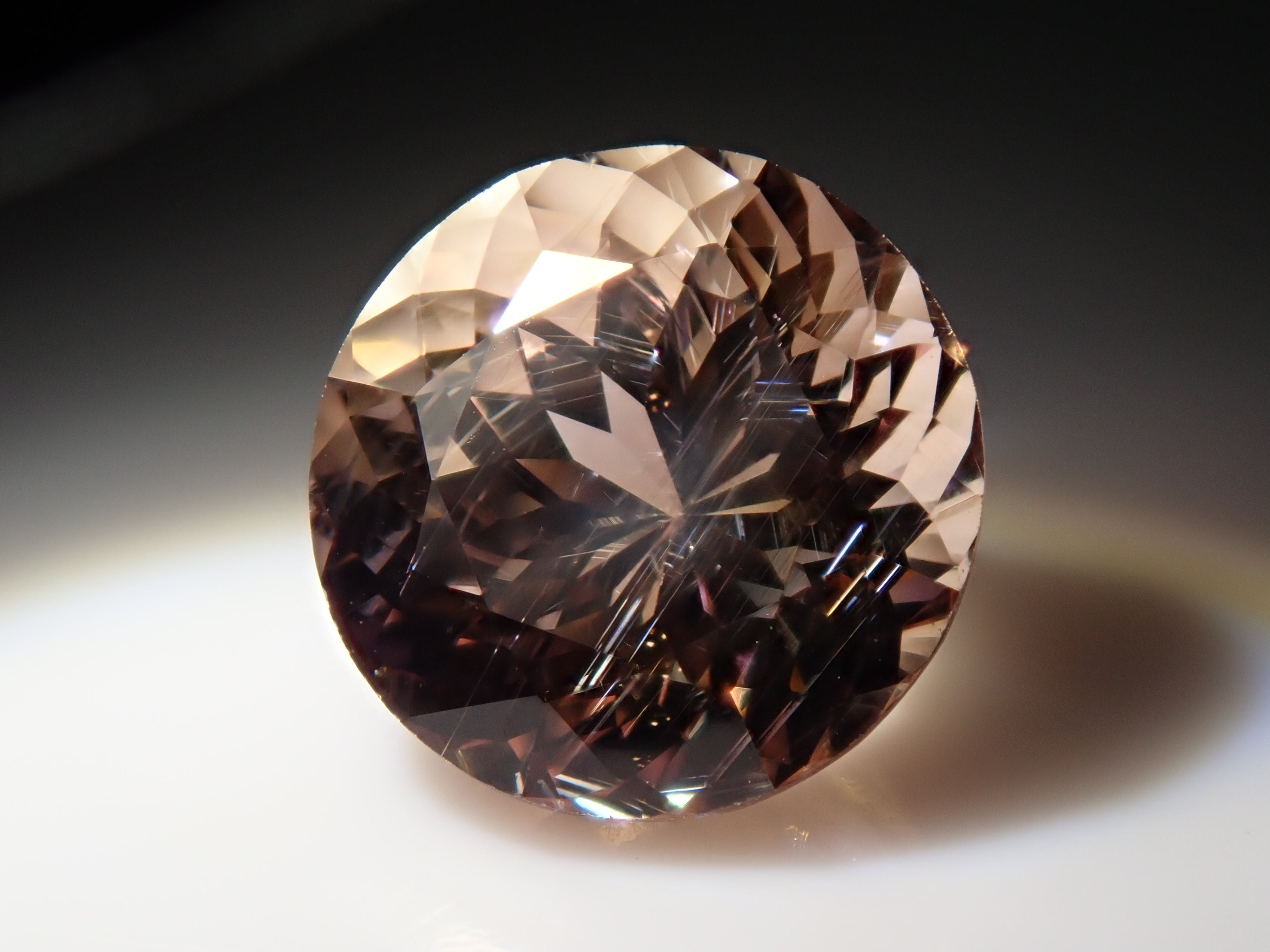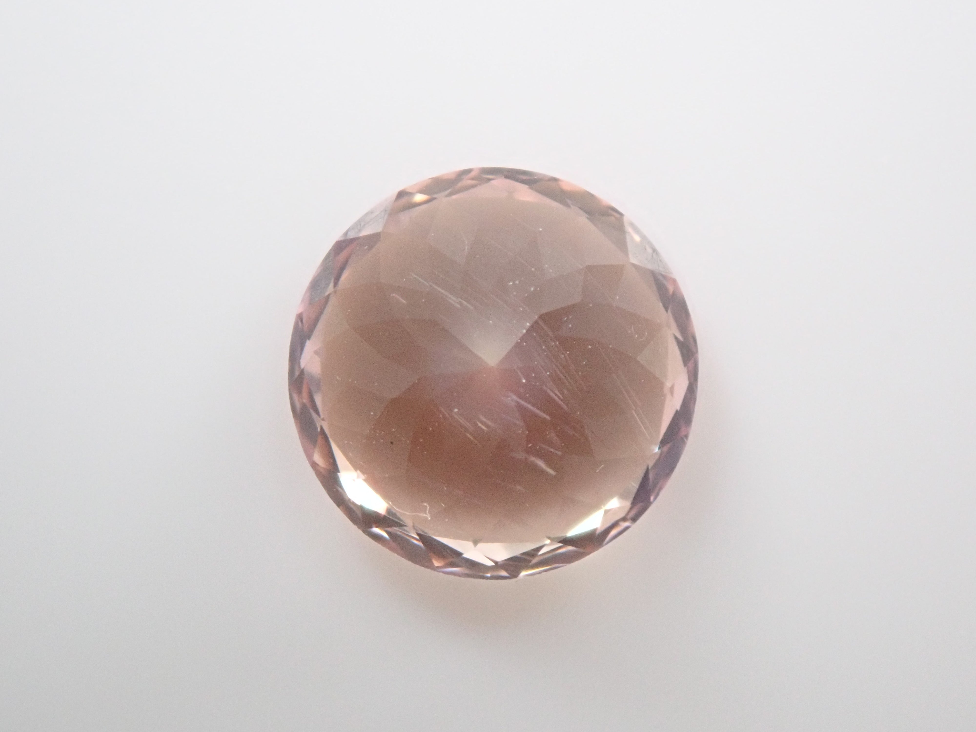 由德國熟練工匠 Sendra 切割的粉紅色黝簾石。這種顏色也被稱為桃粉色。圓形切割 6.7 毫米、1 克拉桃粉色是一種稀有的黝簾石,流通量很少。