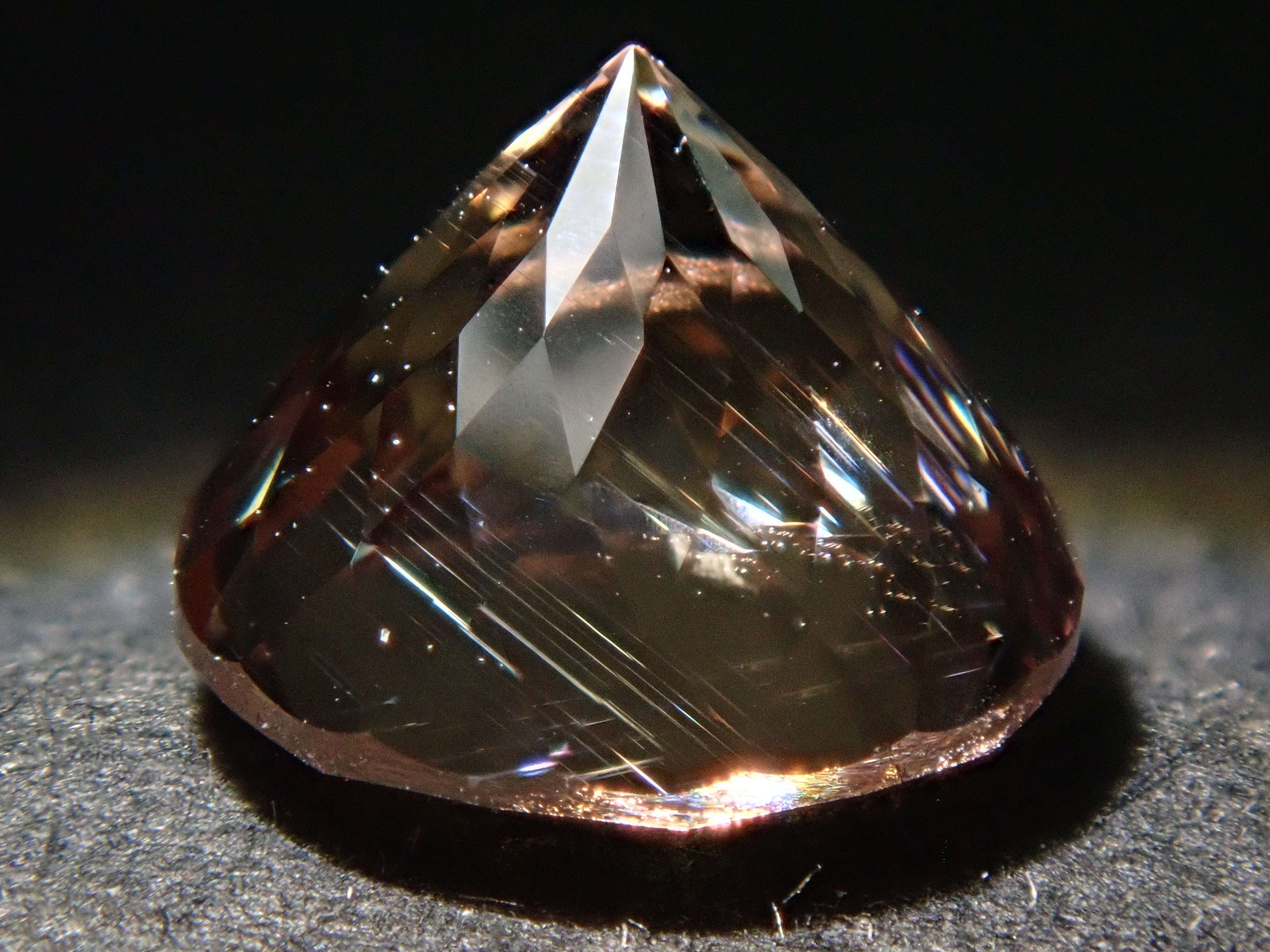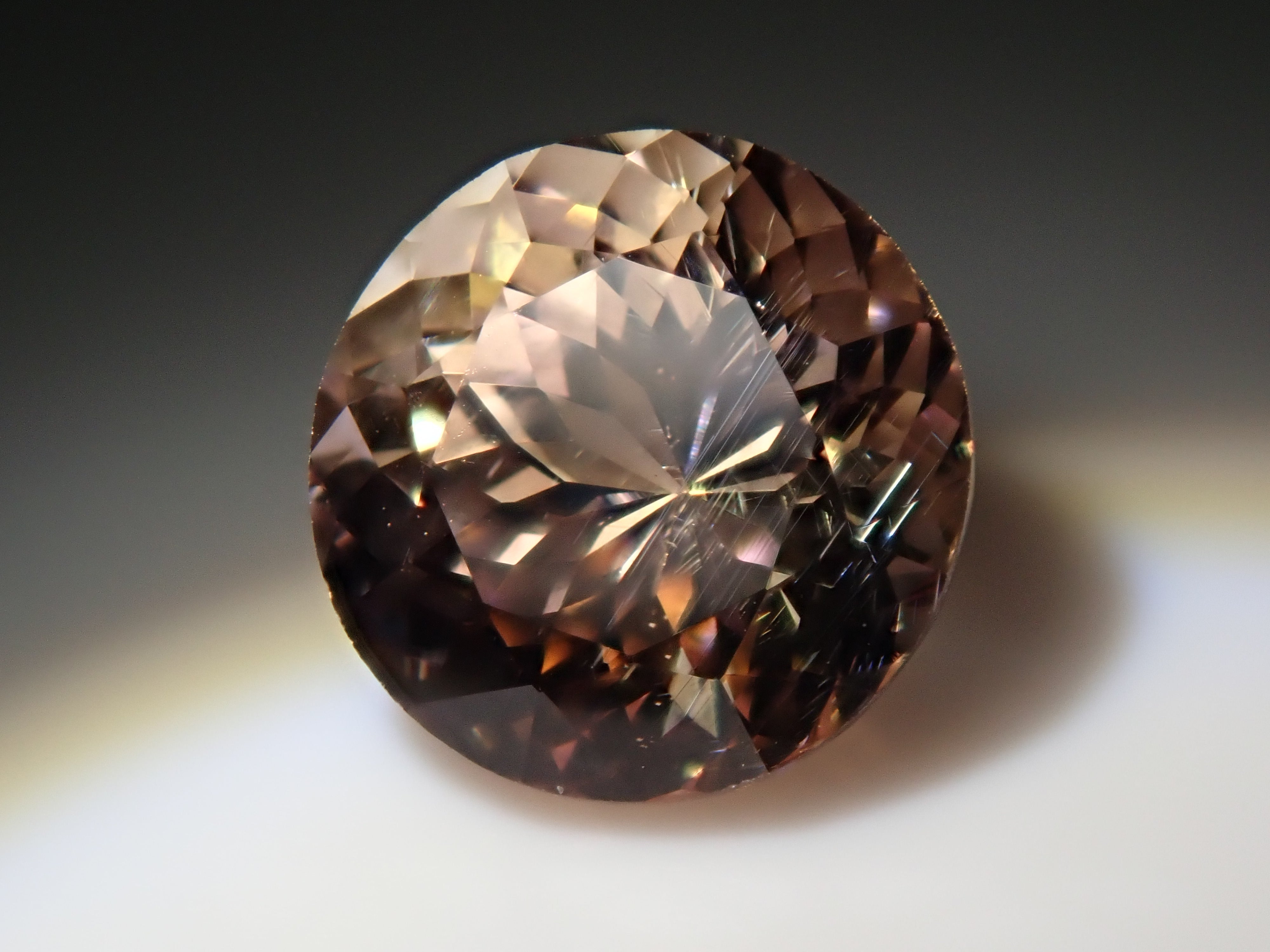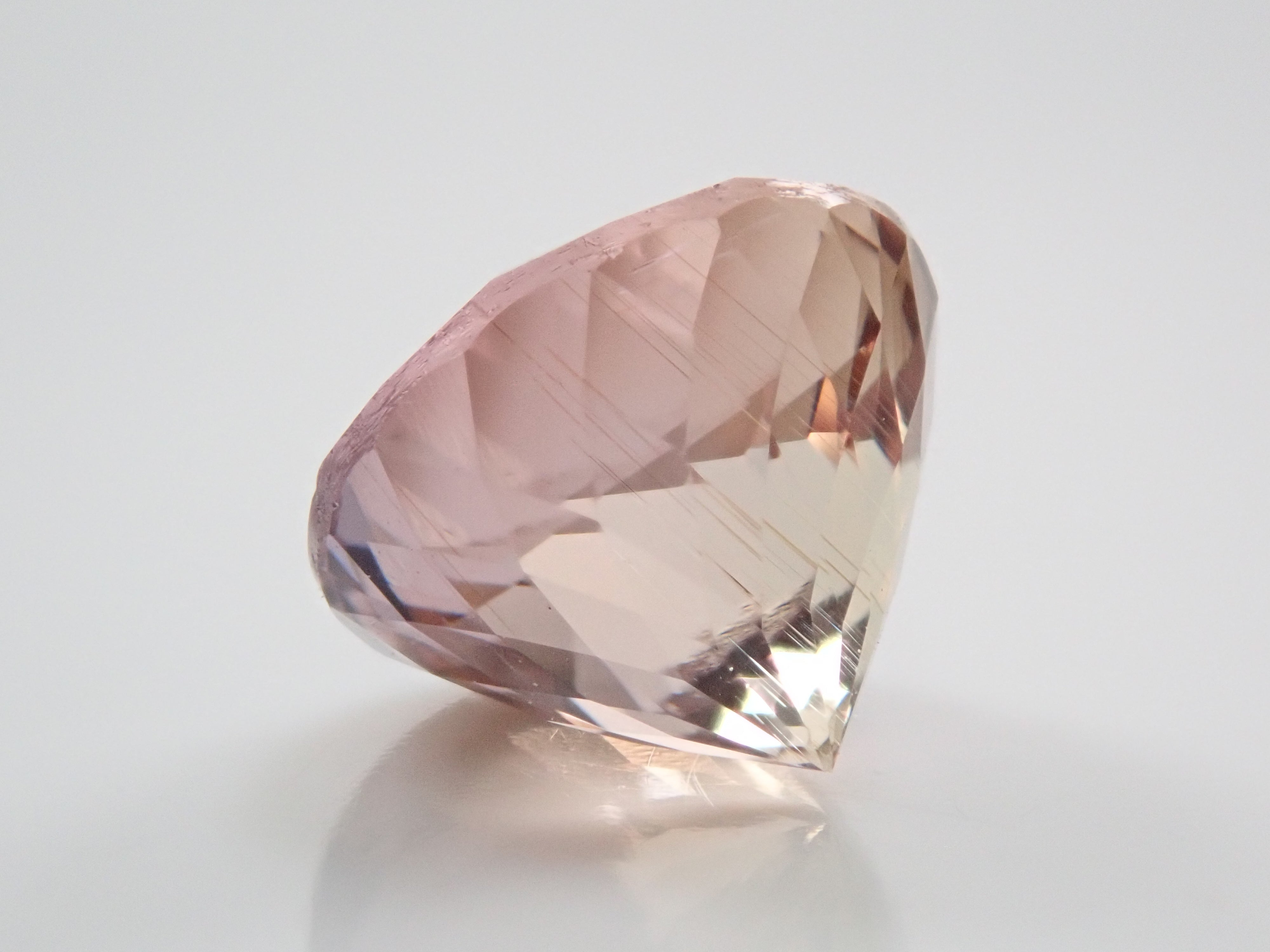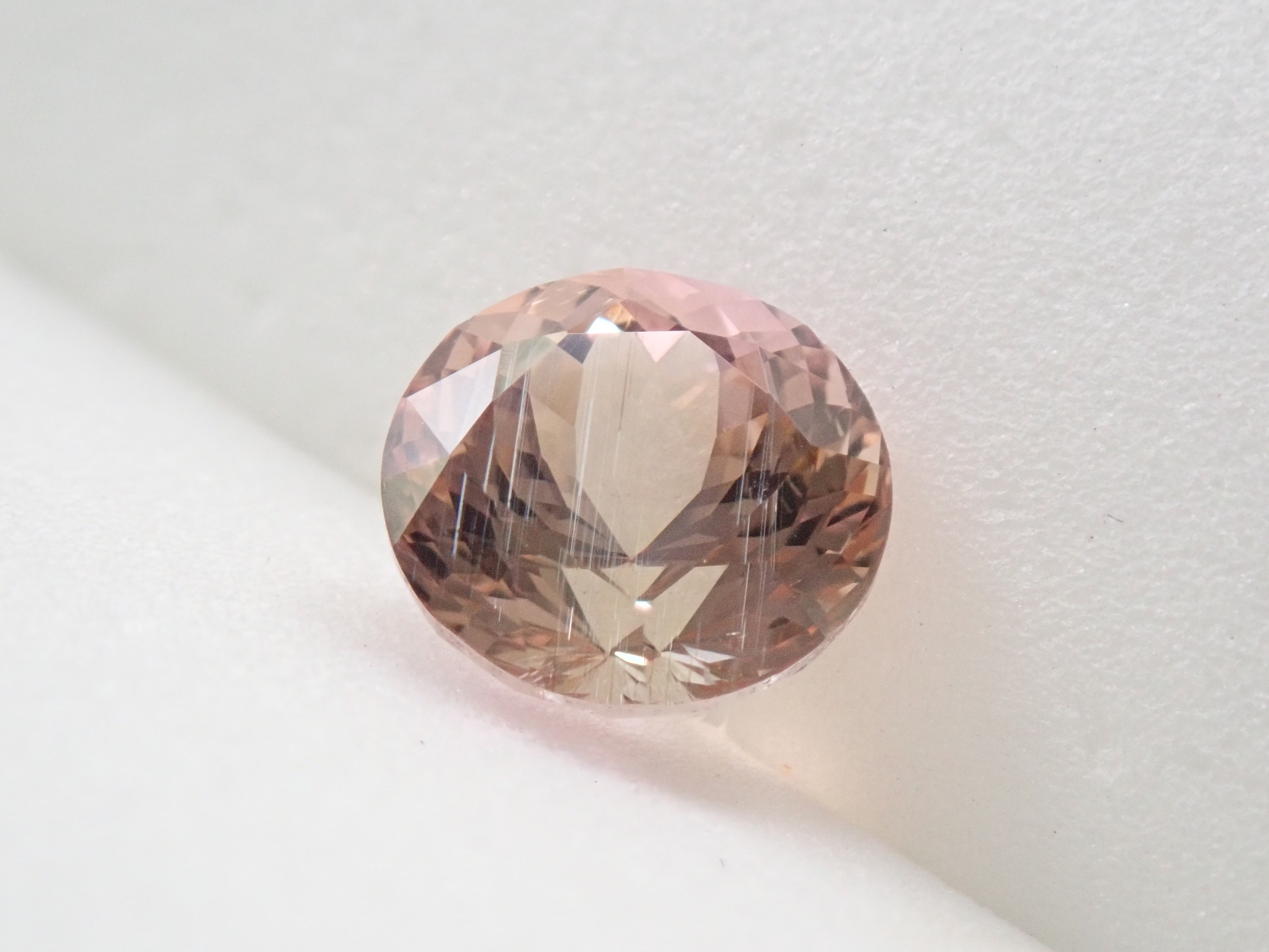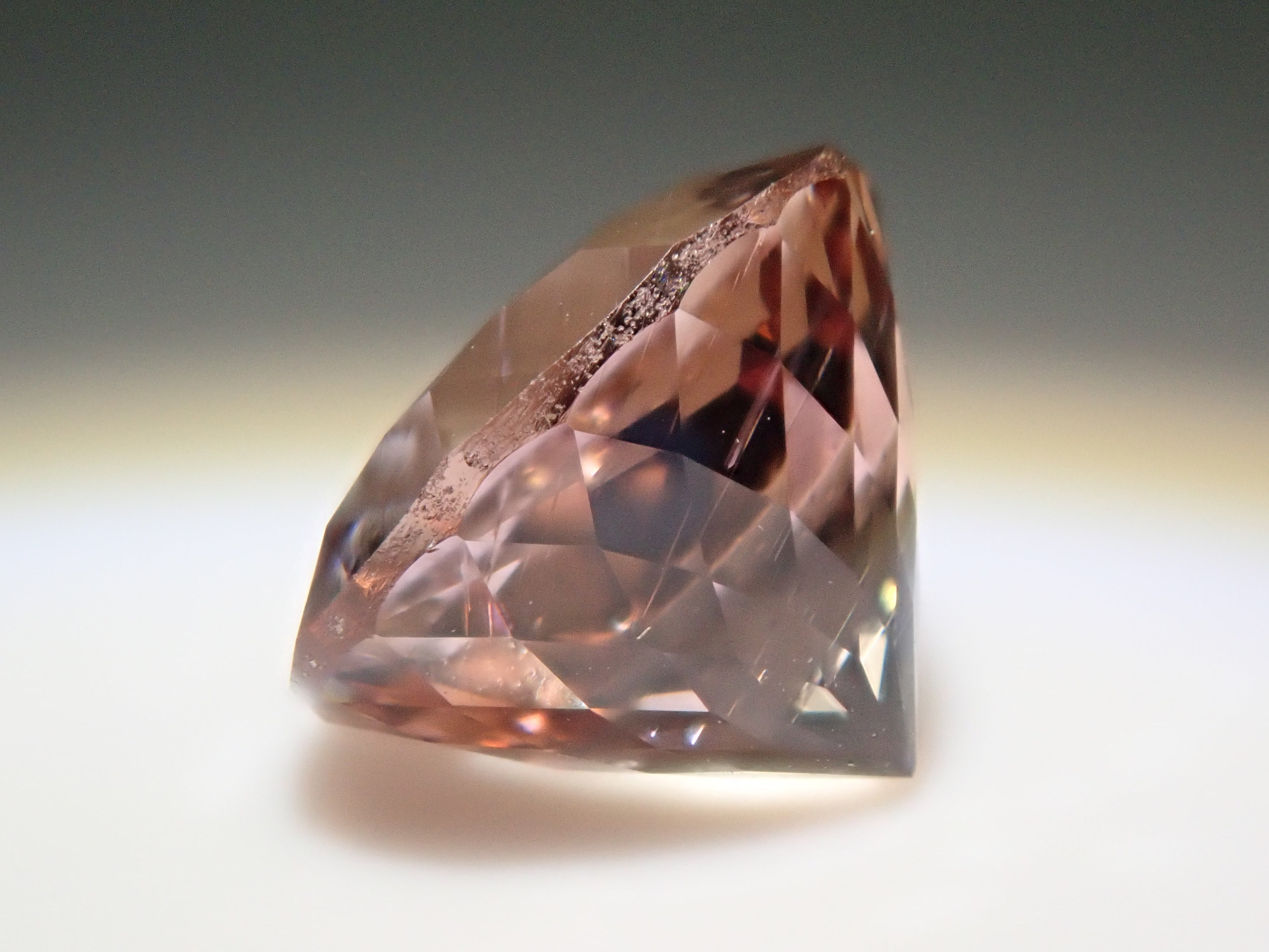 由德國熟練工匠 Sendra 切割的粉紅色黝簾石。這種顏色也被稱為桃粉色。圓形切割 6.7 毫米、1 克拉桃粉色是一種稀有的黝簾石,流通量很少。