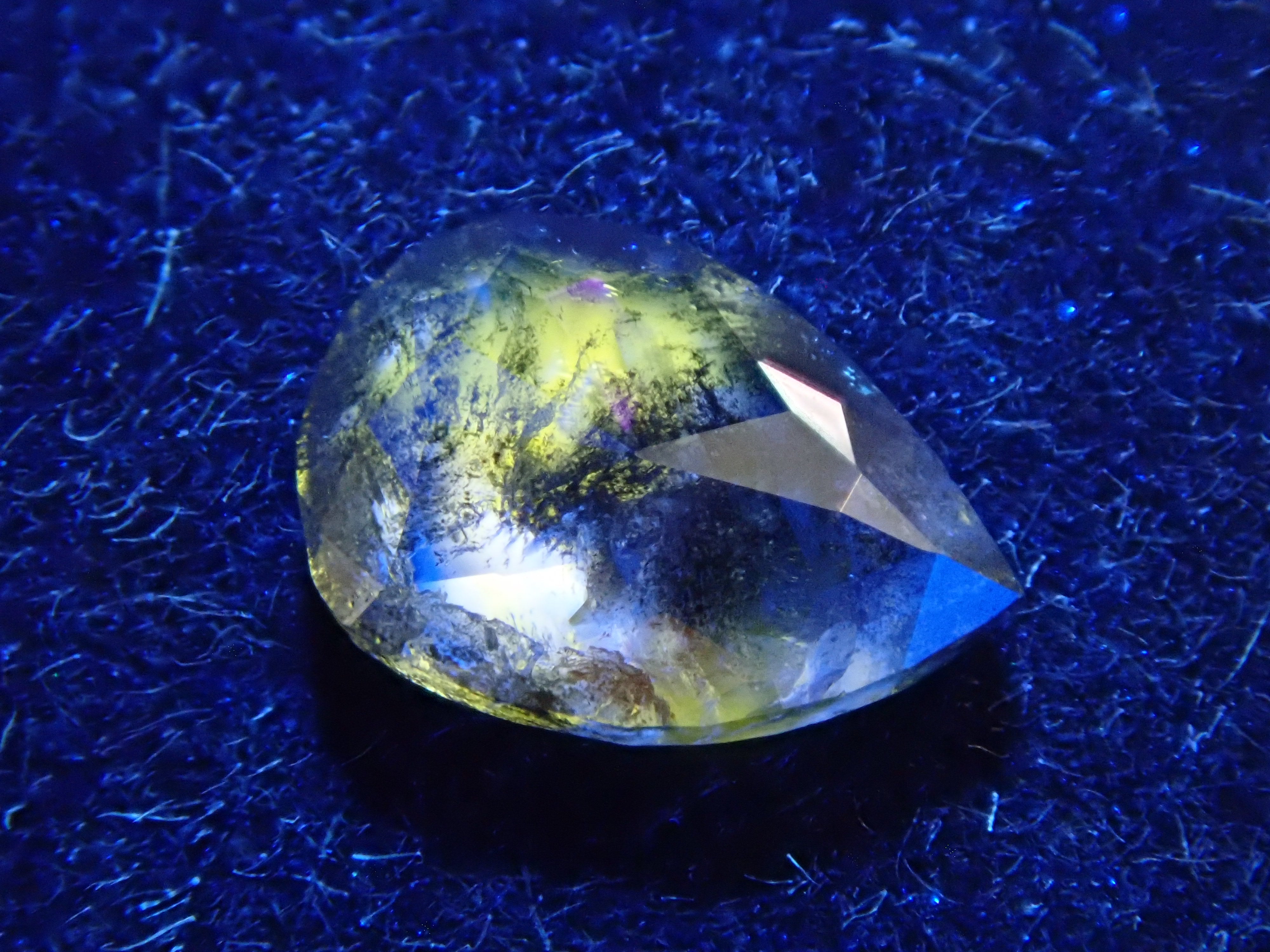 如果有螢光照片,它們是在暗室中在強黑光下拍攝的。如果您想在家中觀看螢光,可以透過將房間調暗或用手掌遮住珠寶來欣賞美麗的螢光。