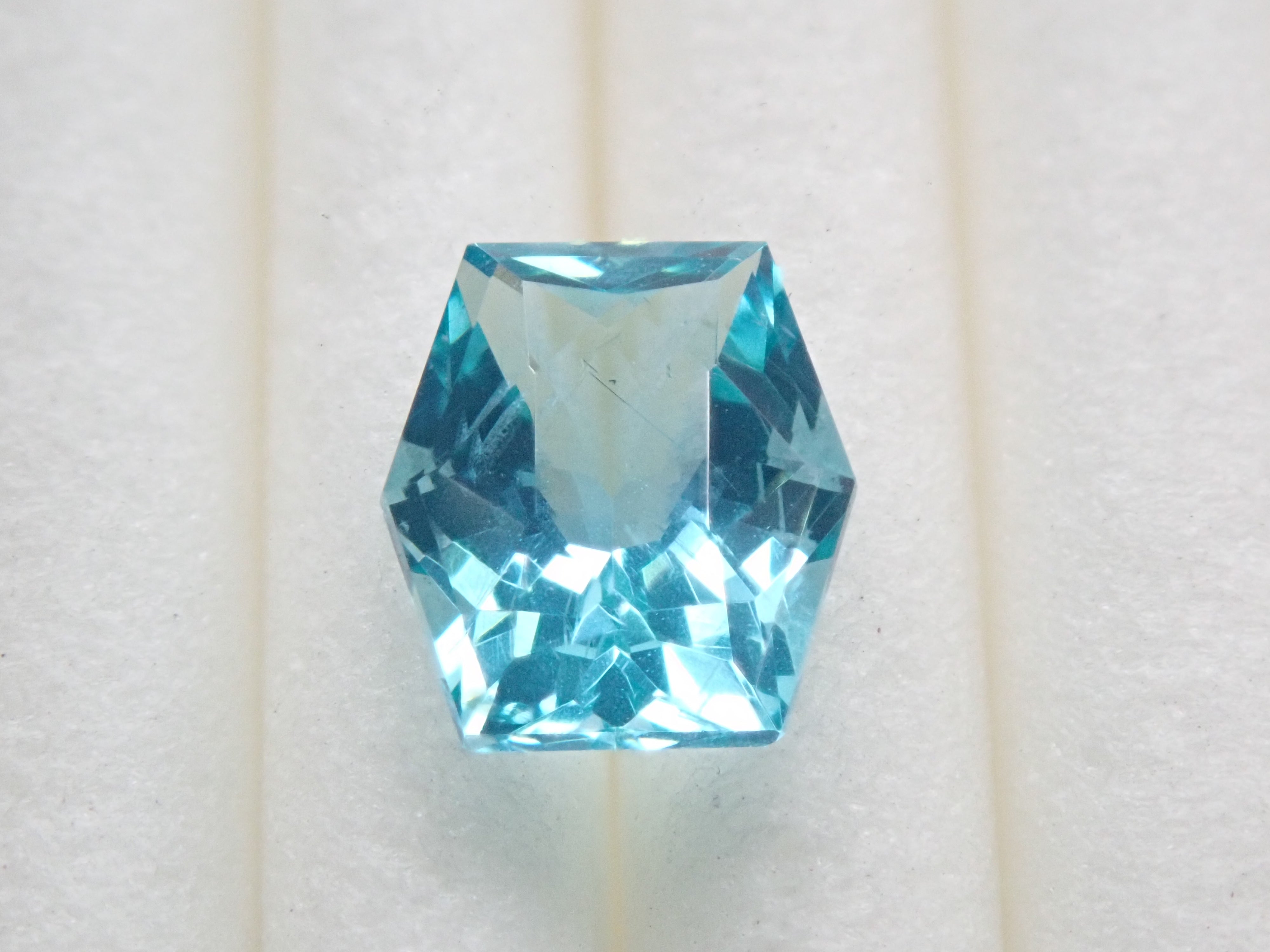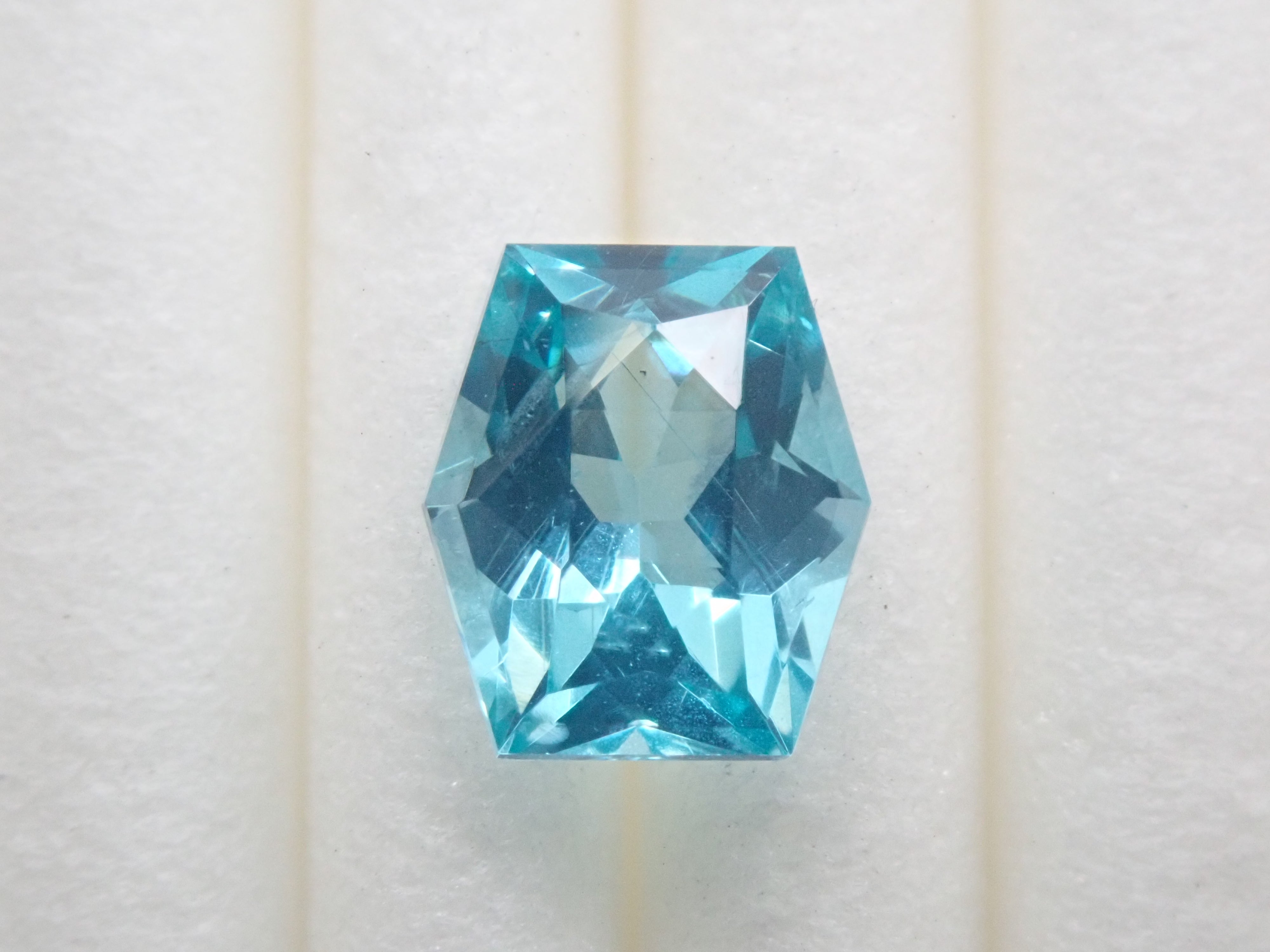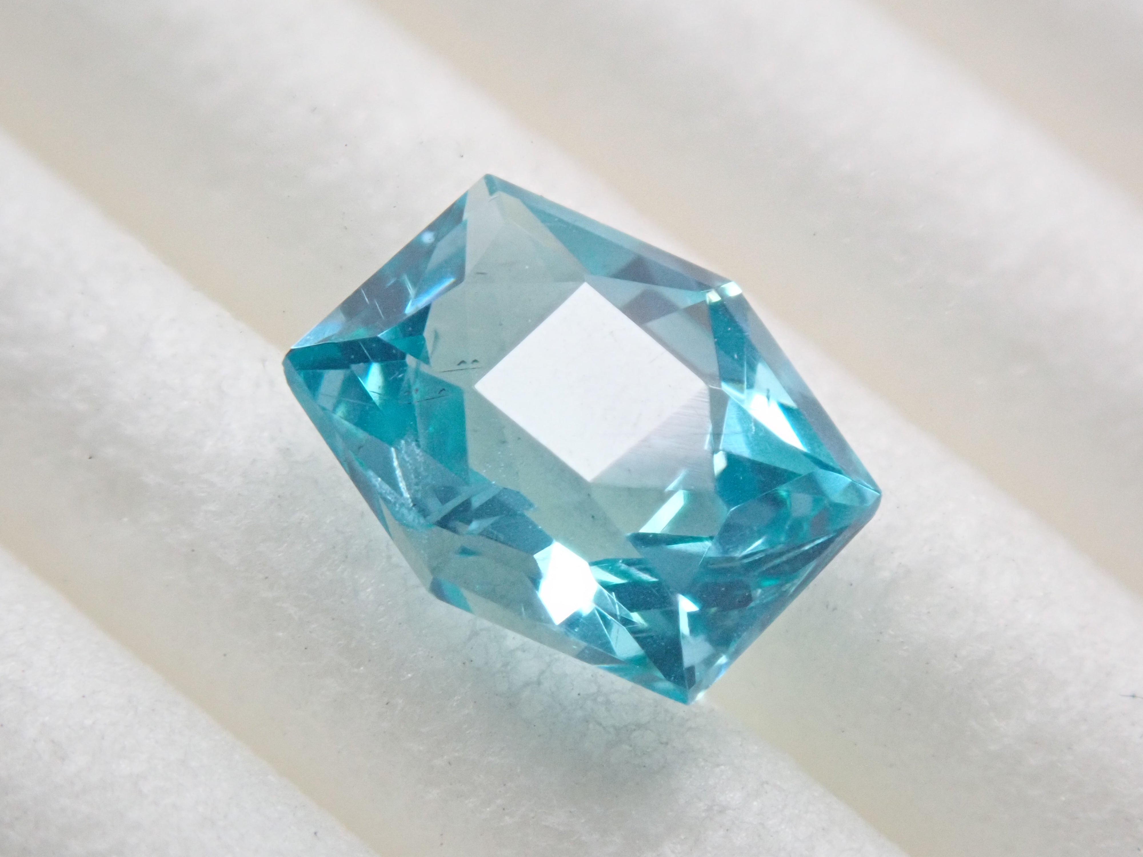 磷灰石是一種顏色豐富的寶石。除了無色之外,它還有藍色、紫色、綠色、黃色、粉紅色、紅色和白色。它的礦物名稱是磷灰石。它的硬度較低,僅為5,容易刮傷,因此佩戴時要小心,不要撞到它。這是產自馬達加斯加的磷灰石,由斯里蘭卡切割師桑傑切割而成。
