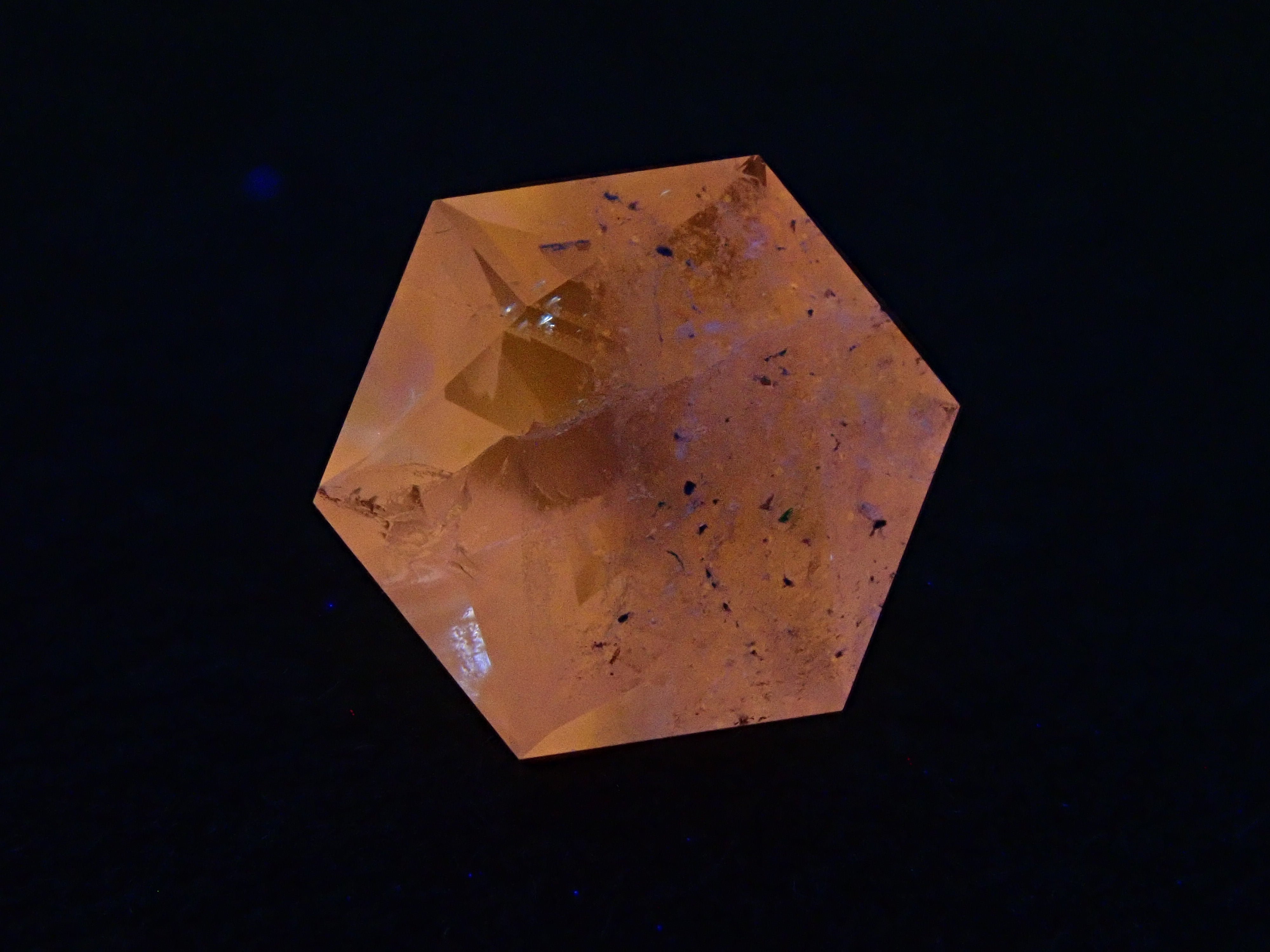 稀有石頭,哈克曼石。它有一個奇怪的特點:當你將它暴露在黑光下大約5到10秒時,顏色會變成淡紫色,並且有一段時間不會恢復到原來的顏色。這是一種相對較新的稀有石材,於 20 世紀 80 年代在俄羅斯科拉半島發現。由於硬度較低,需要注意不要與硬物碰撞。哈克曼石由斯里蘭卡拋光師 Sanjay 切割。