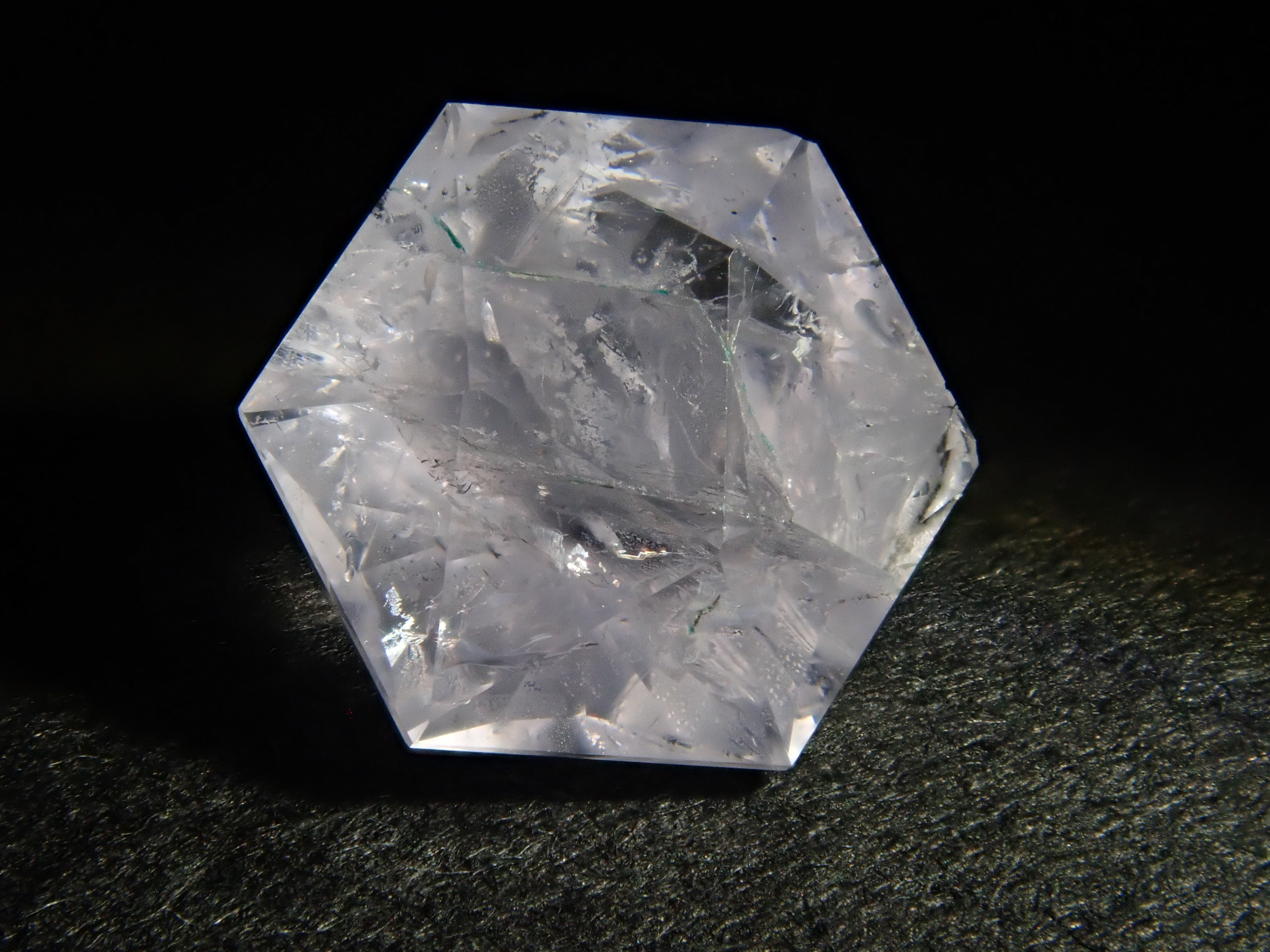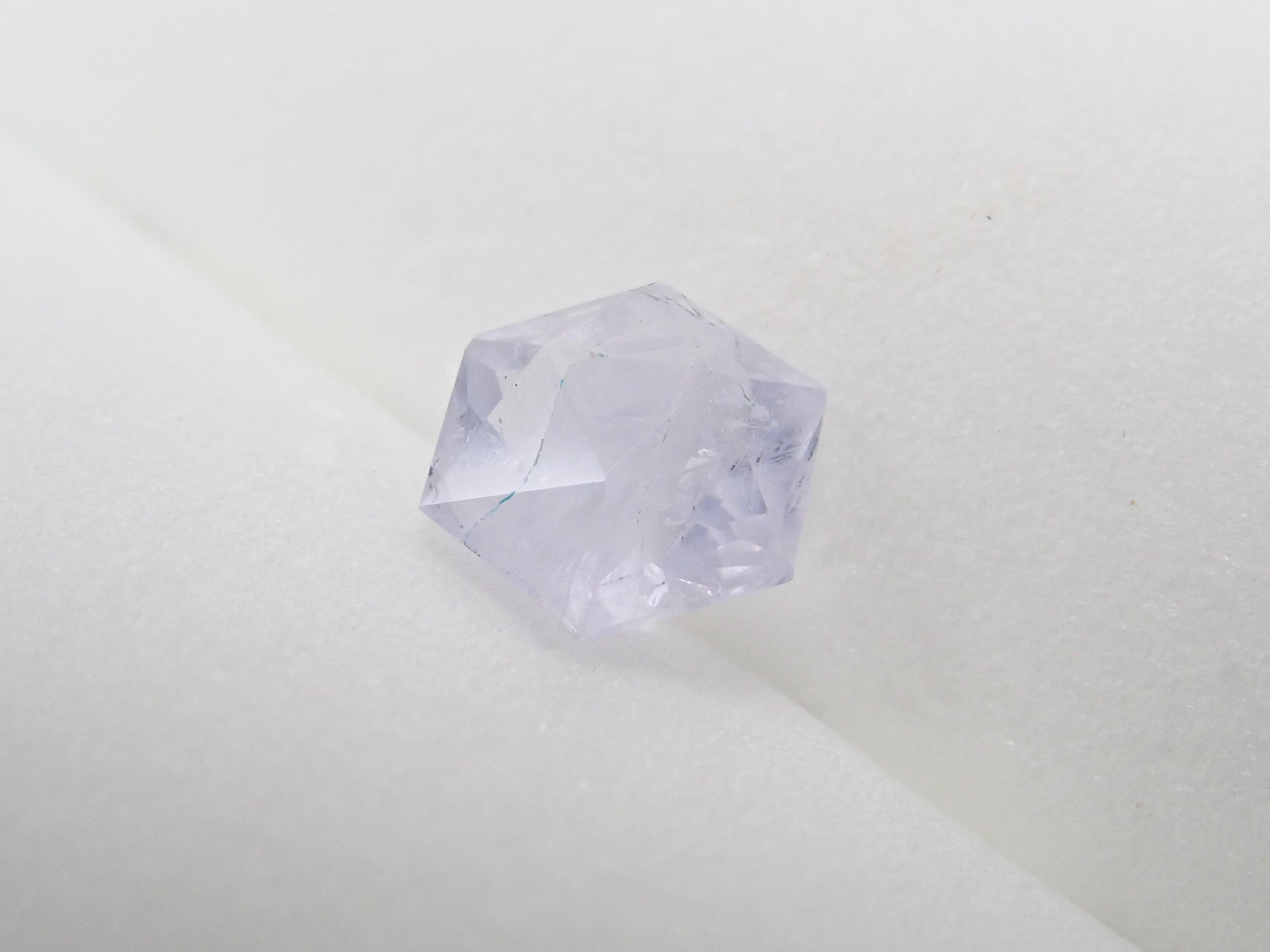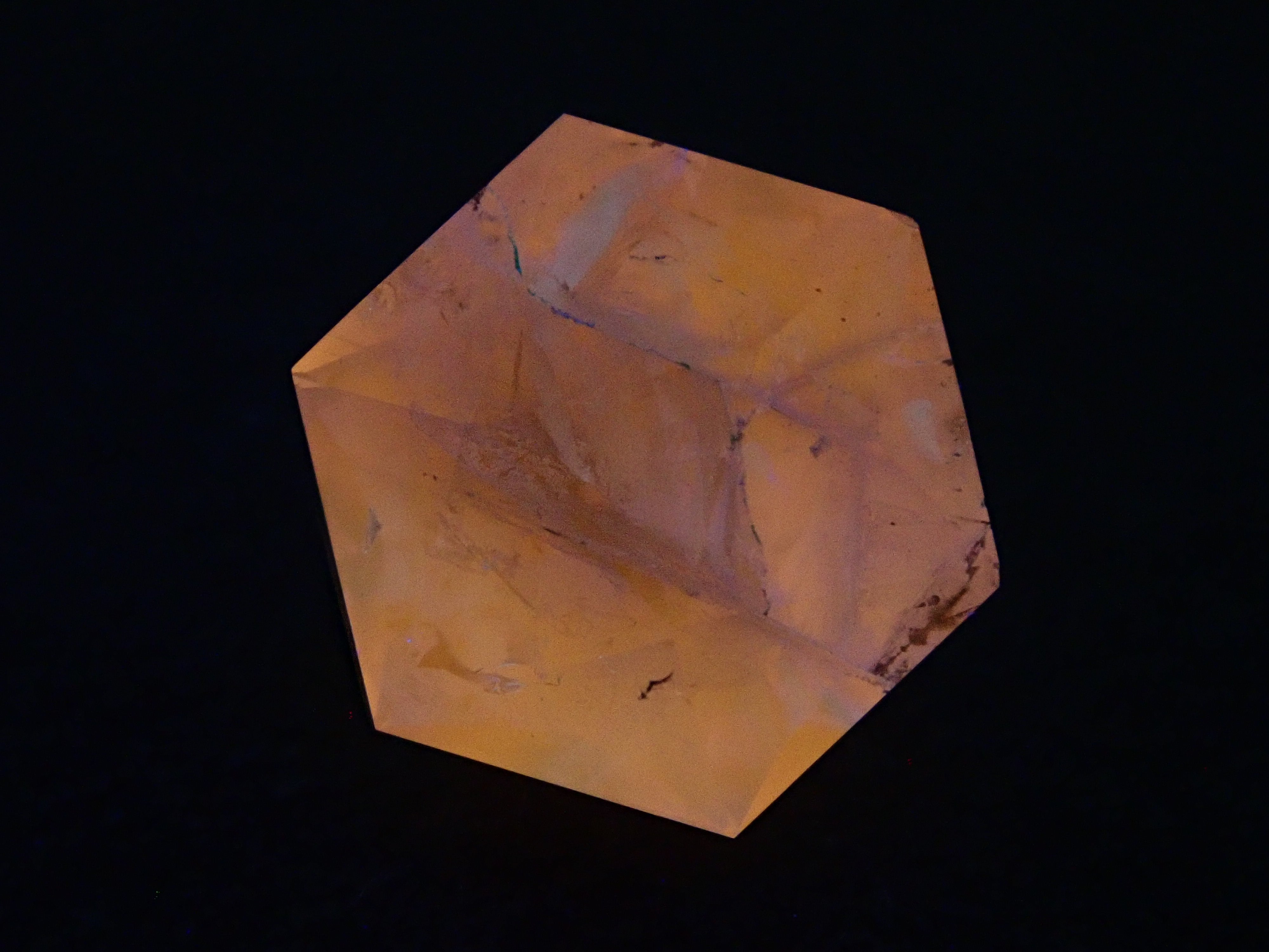 稀有石頭,哈克曼石。它有一個奇怪的特點:當你將它暴露在黑光下大約5到10秒時,顏色會變成淡紫色,並且有一段時間不會恢復到原來的顏色。這是一種相對較新的稀有石材,於 20 世紀 80 年代在俄羅斯科拉半島發現。由於硬度較低,需要注意不要與硬物碰撞。由斯里蘭卡拋光師 Sanjay 先生切割。