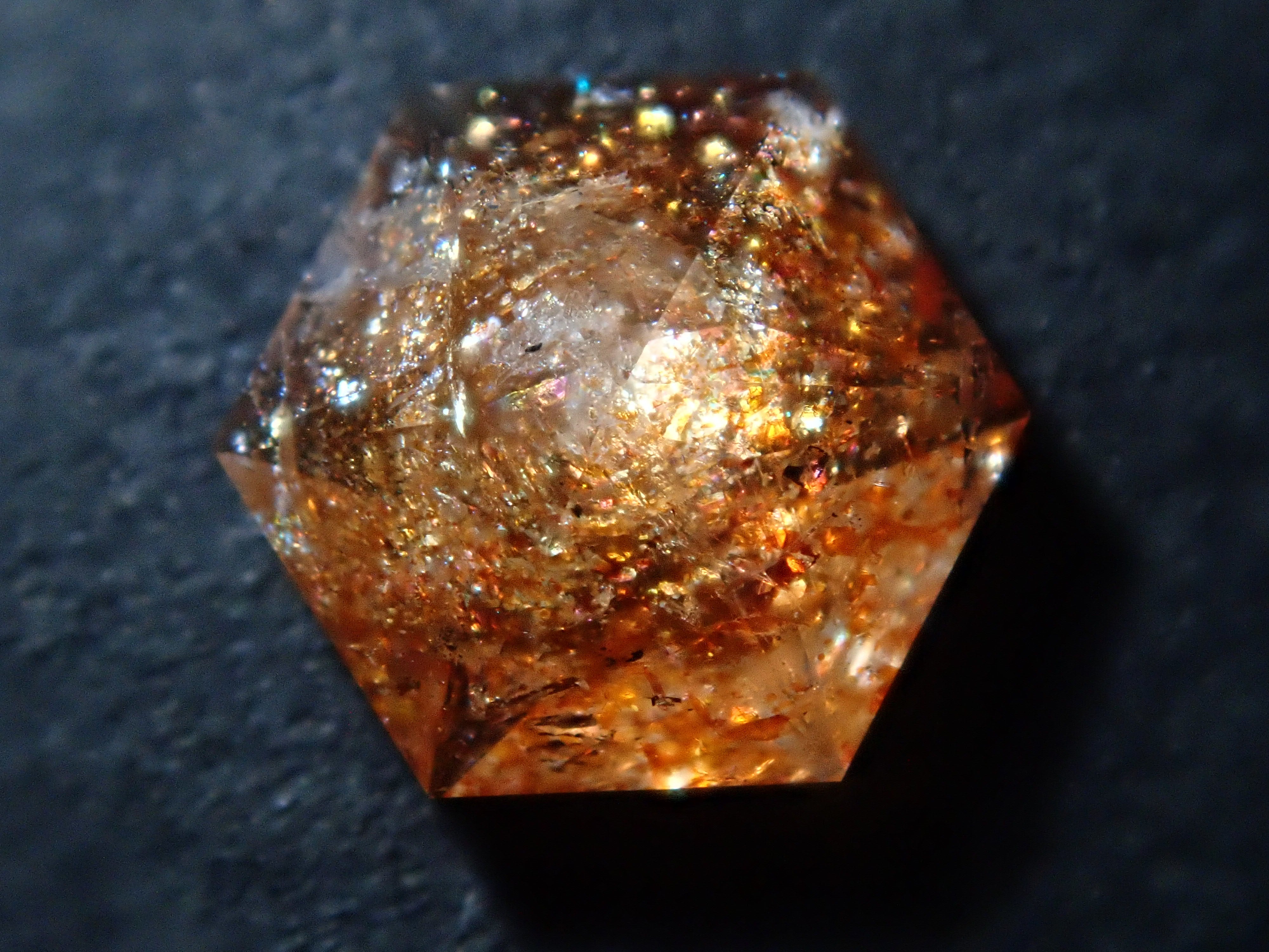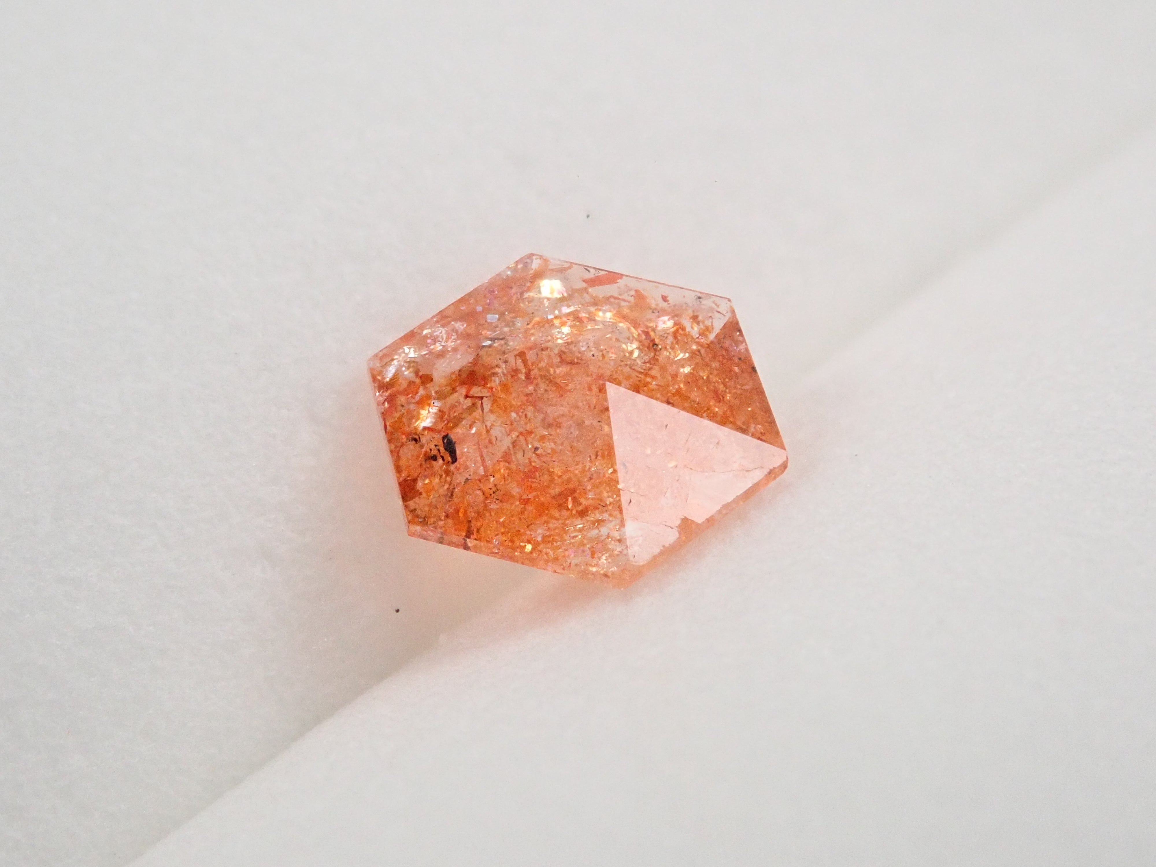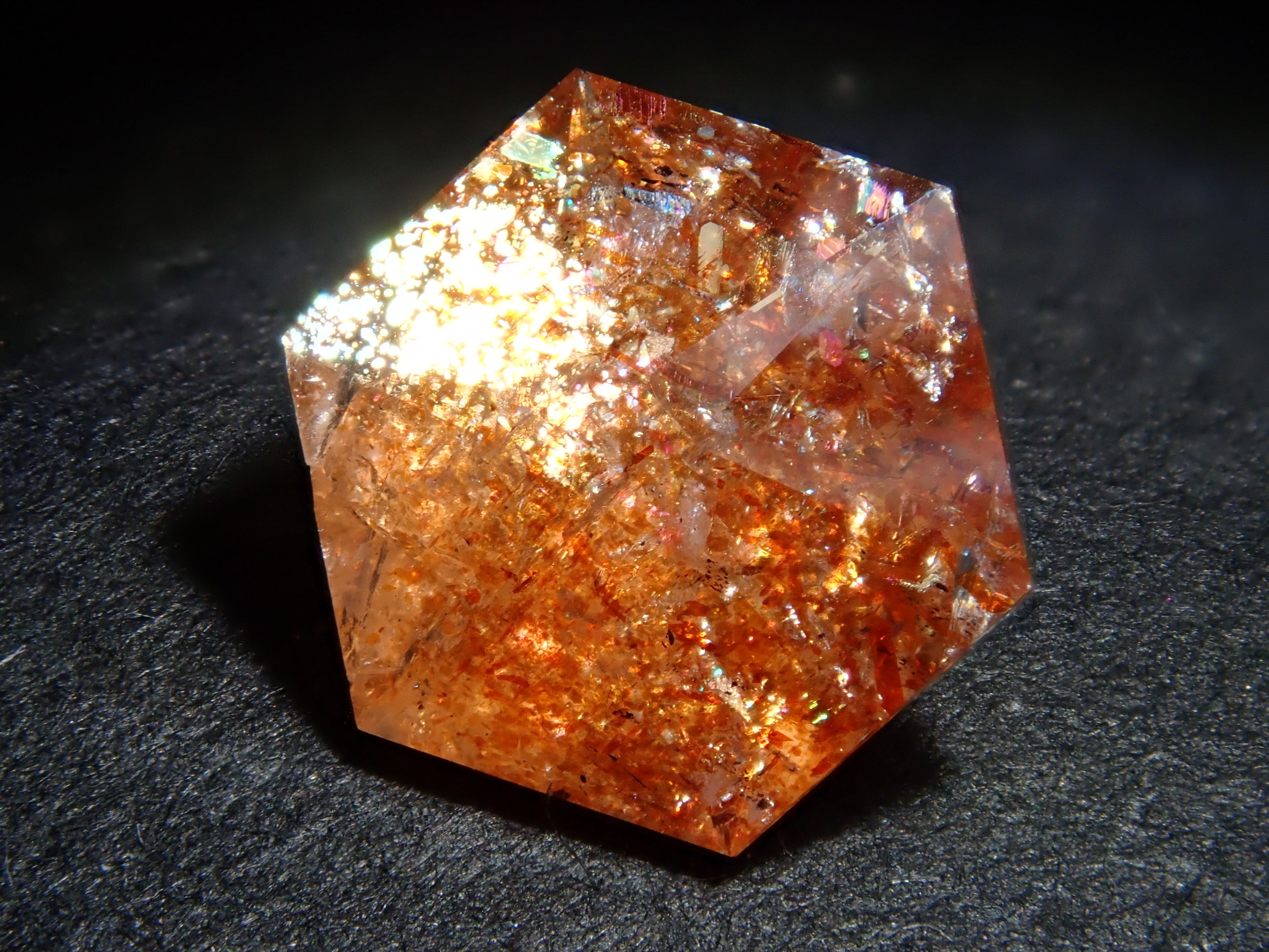 日光石散發著耀眼的光芒,美不勝收。它的光芒宛如盛夏的陽光。我想分享一下給這塊石頭取名「日光石」的人的感受。它也被稱為幻覺日光石。