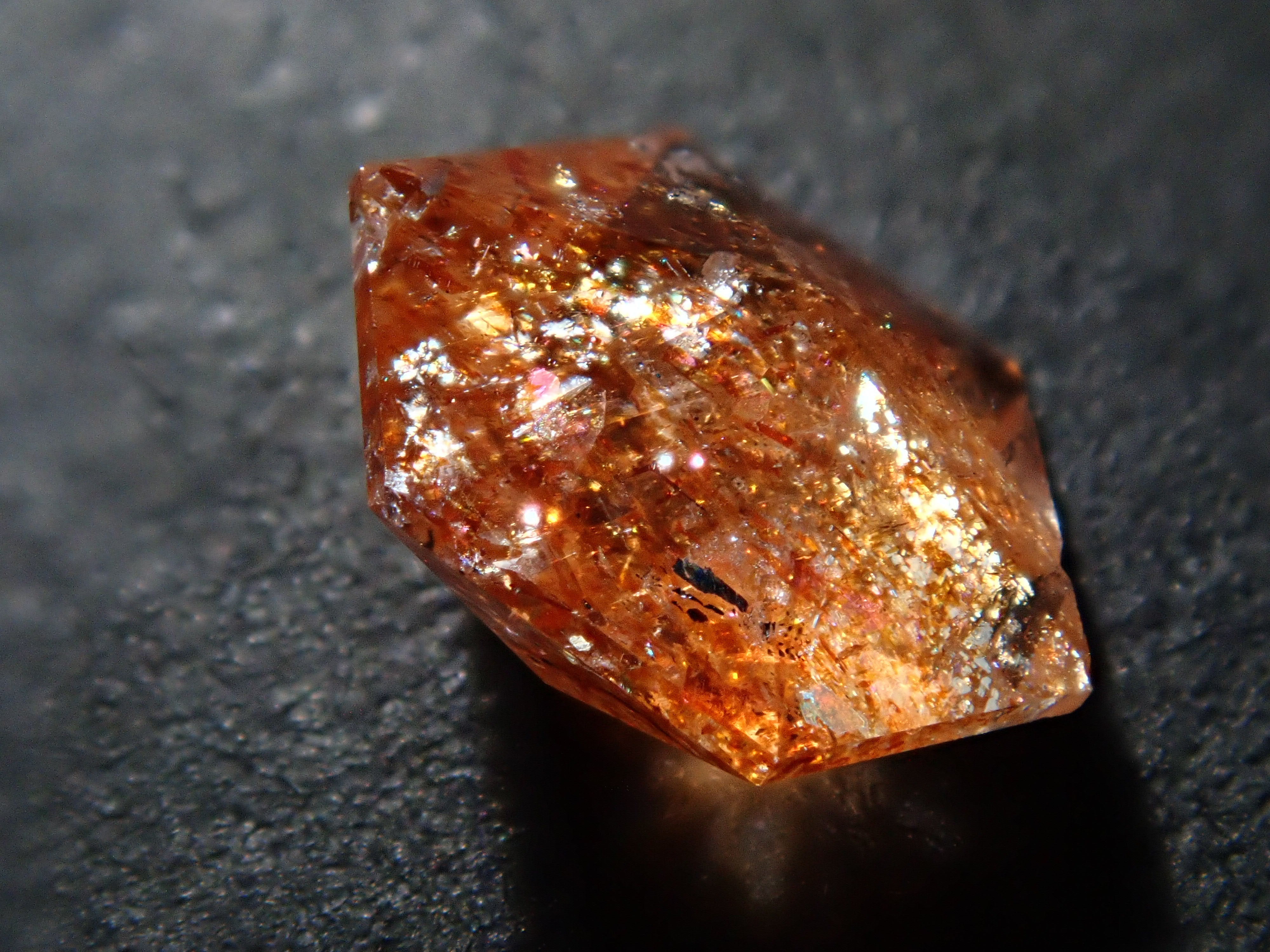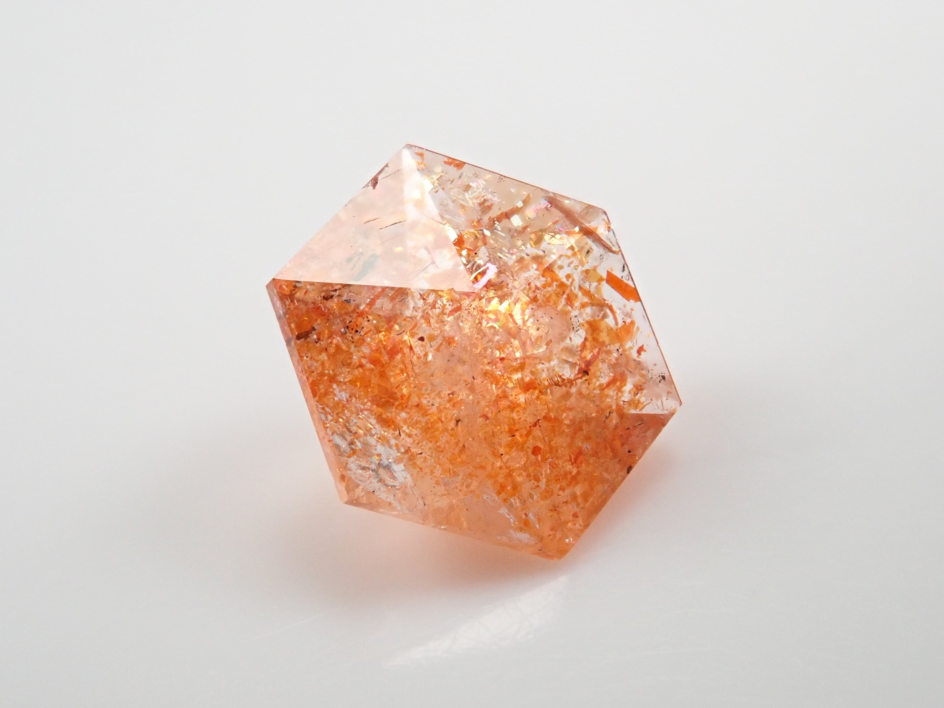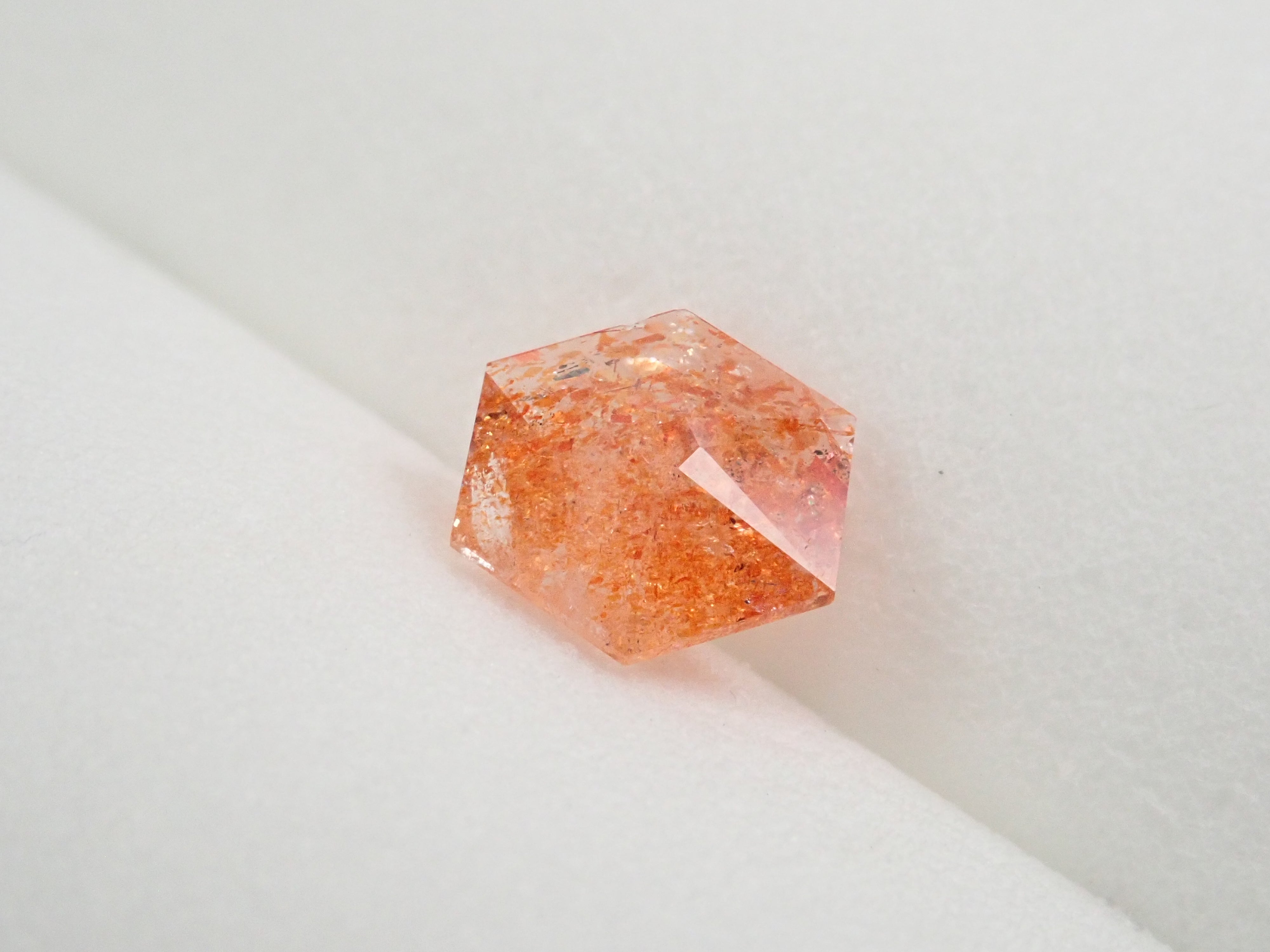 日光石散發著耀眼的光芒,美不勝收。它的光芒宛如盛夏的陽光。我想分享一下給這塊石頭取名「日光石」的人的感受。它也被稱為幻覺日光石。