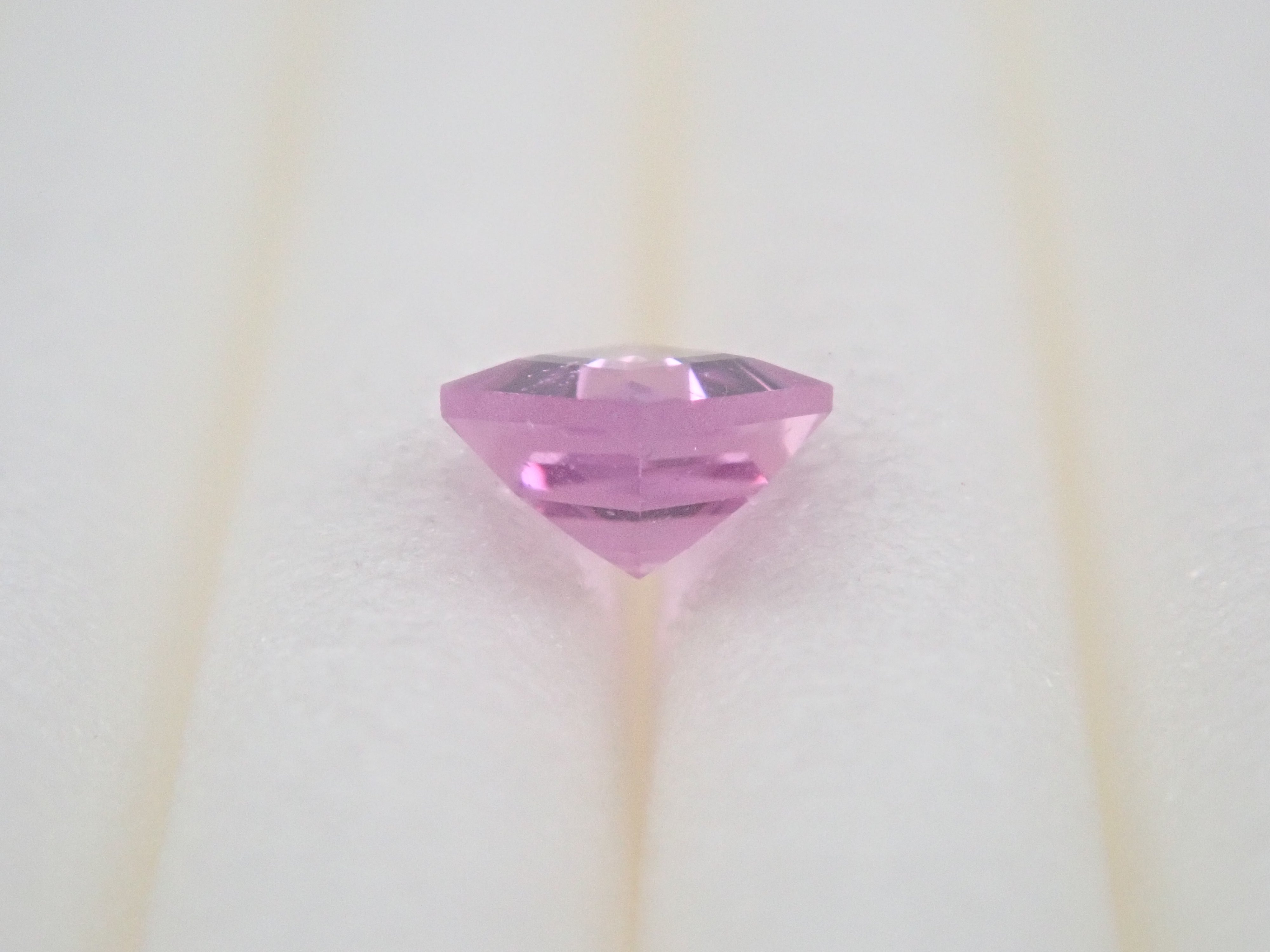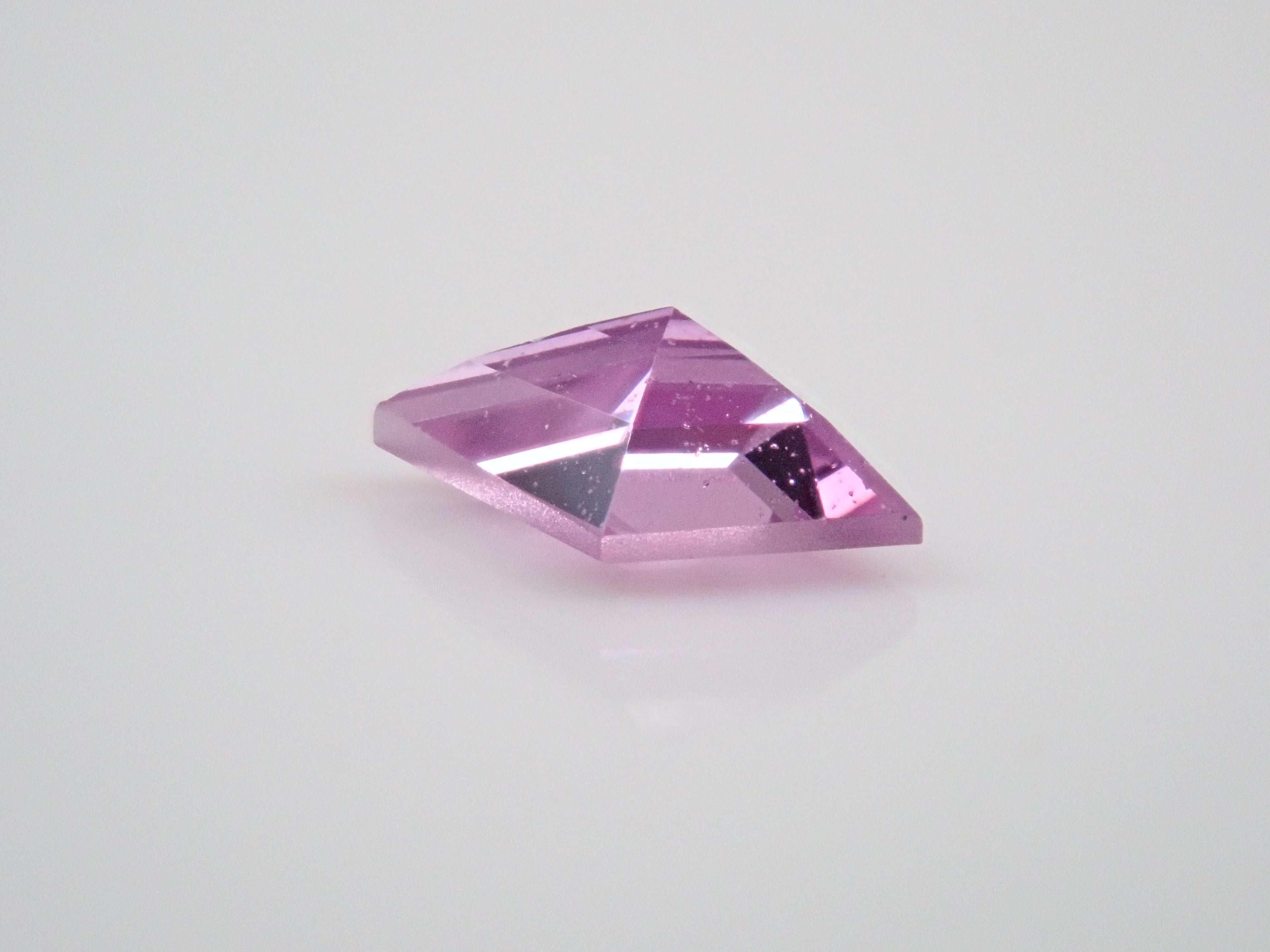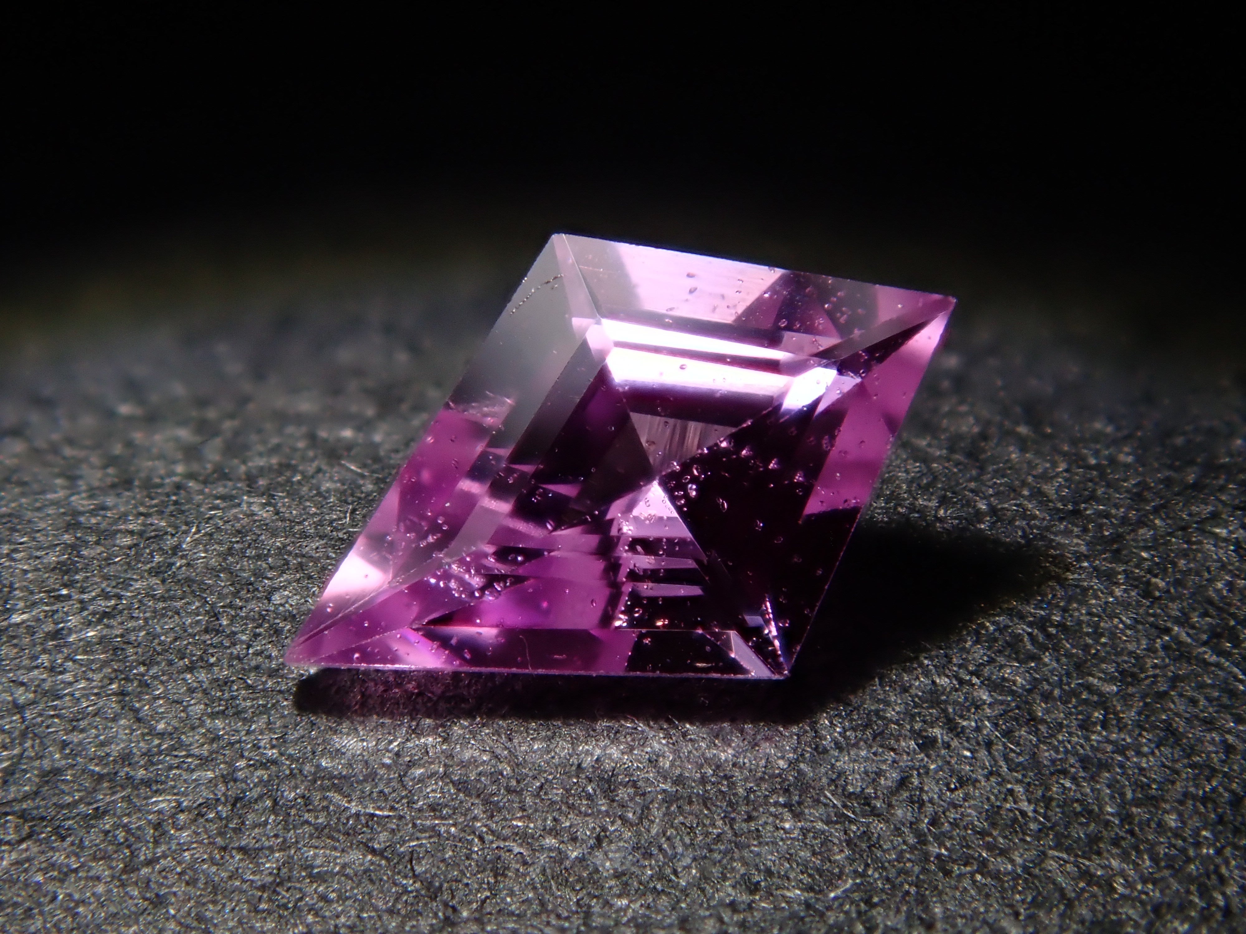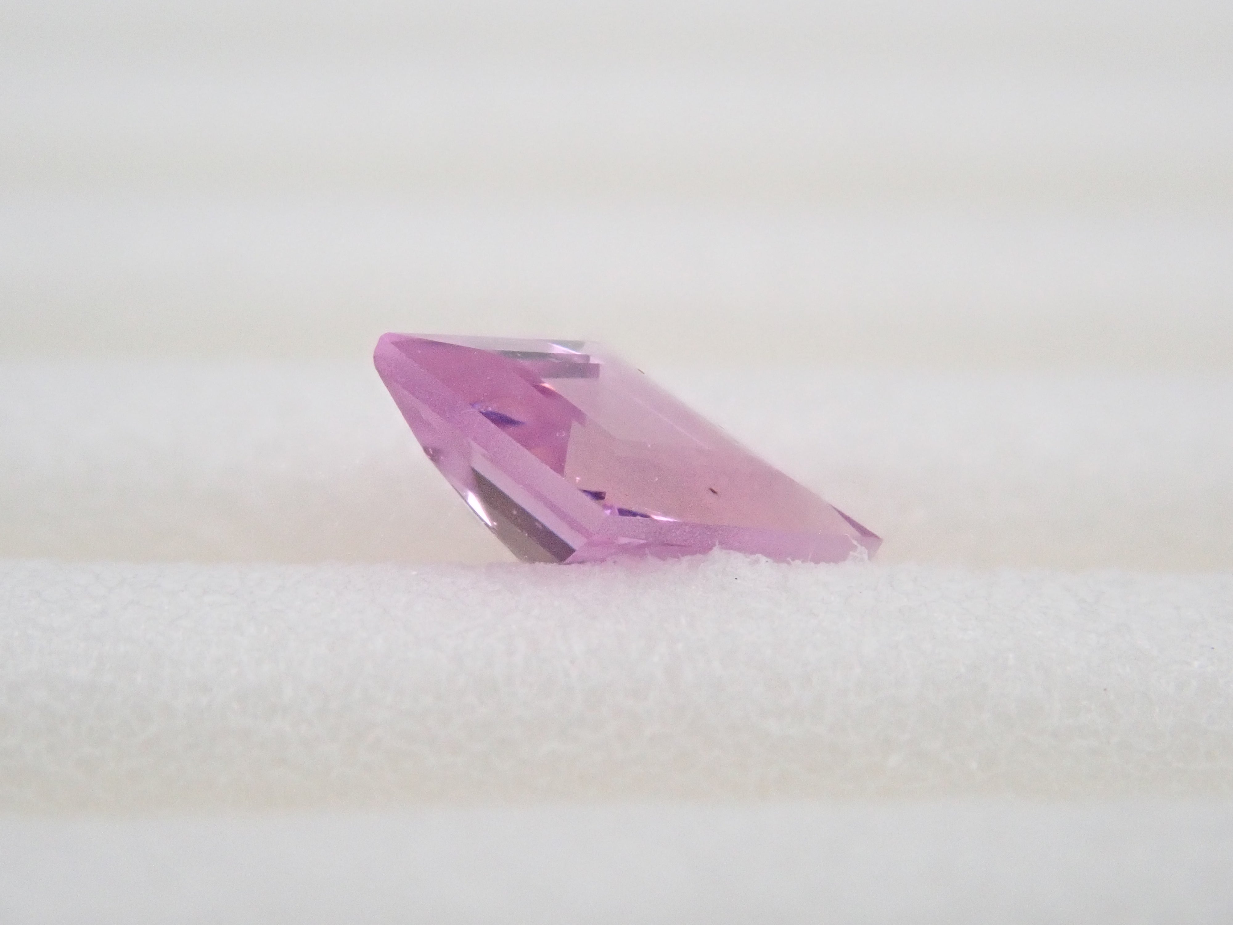 藍寶石是一種著名的寶石。礦物為剛玉,與紅寶石相同,但除紅色以外的所有剛玉稱為藍寶石。這是一顆帶有鮮明桃色的粉紅色藍寶石。藍寶石的硬度為 9,是僅次於鑽石的第二硬寶石,是一種高度堅韌、穩定且易於護理的寶石。這是一顆高品質紫色藍寶石,重 0.199 克拉,菱形切工,透明度高。它是粉紫色的。