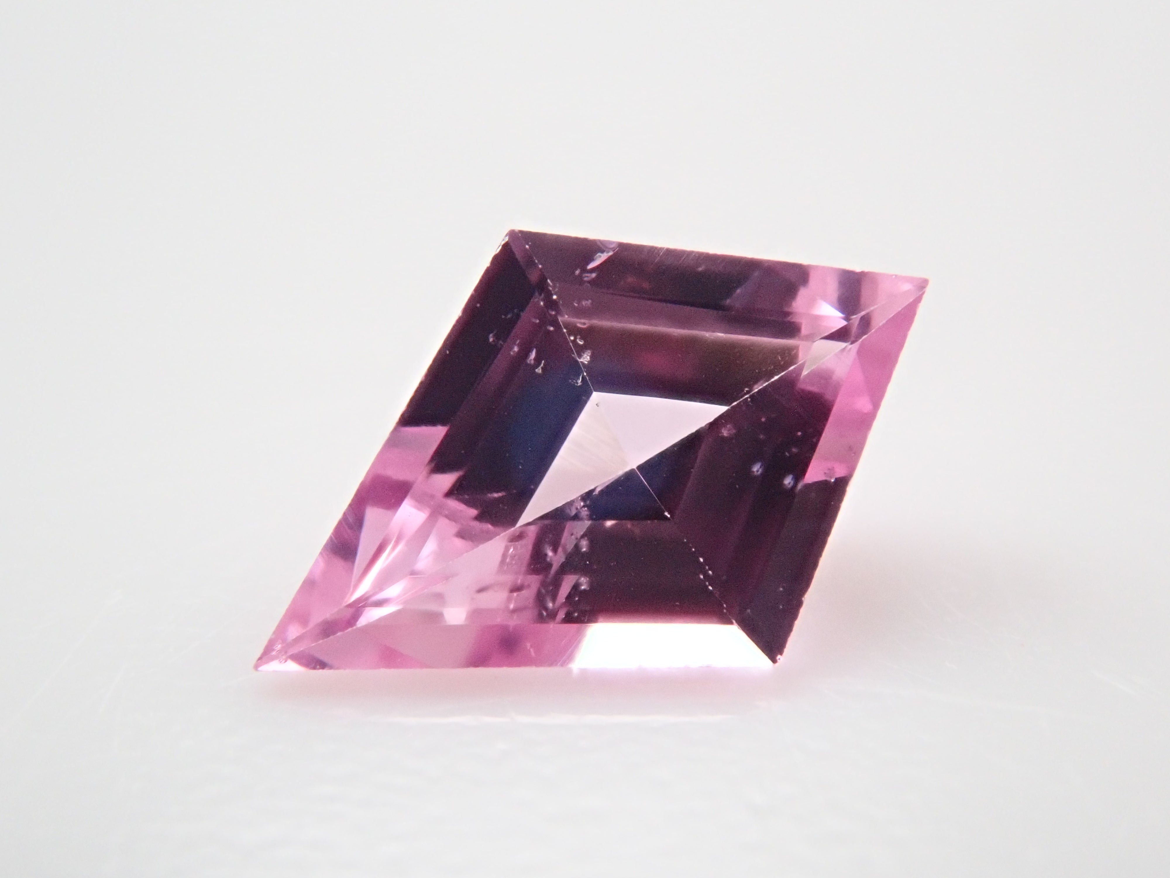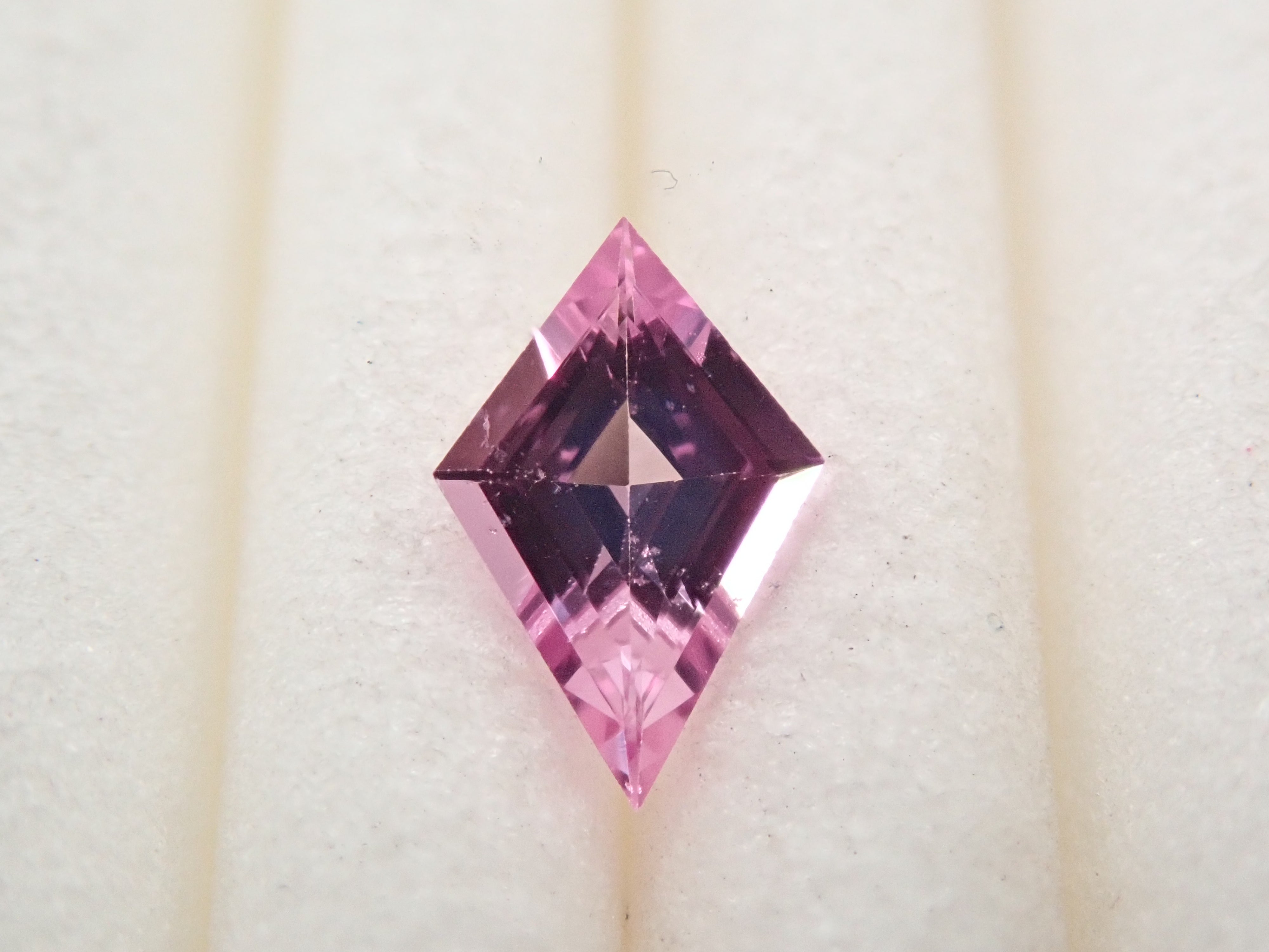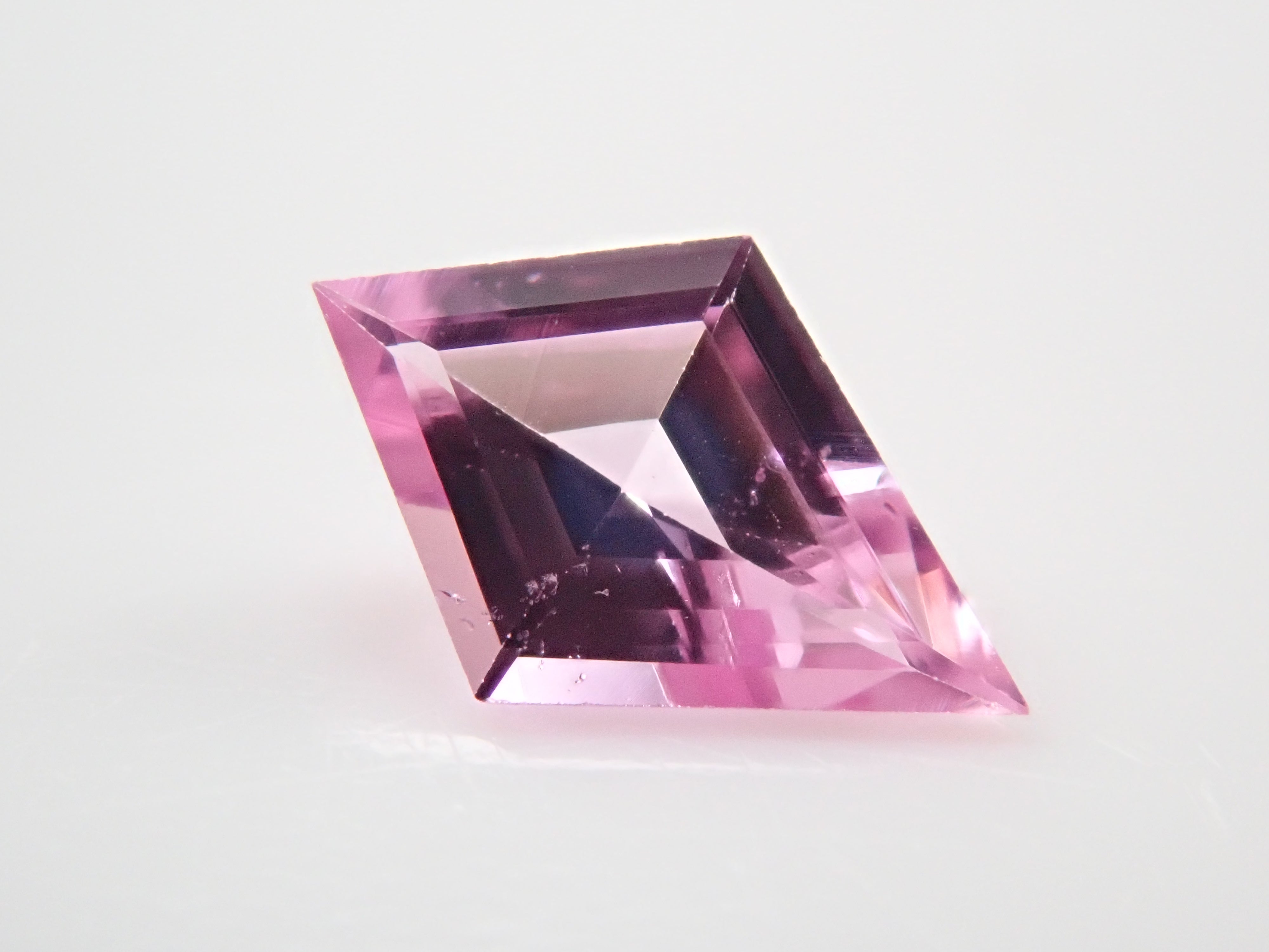 藍寶石是一種著名的寶石。礦物為剛玉,與紅寶石相同,但除紅色以外的所有剛玉稱為藍寶石。這是一顆粉紅色藍寶石,呈現鮮亮的桃色。藍寶石的硬度為 9,是僅次於鑽石的第二硬寶石,是一種高度堅韌、穩定且易於護理的寶石。這是一顆高品質粉紅色藍寶石 0.202 克拉裸石,菱形切工,透明度高。