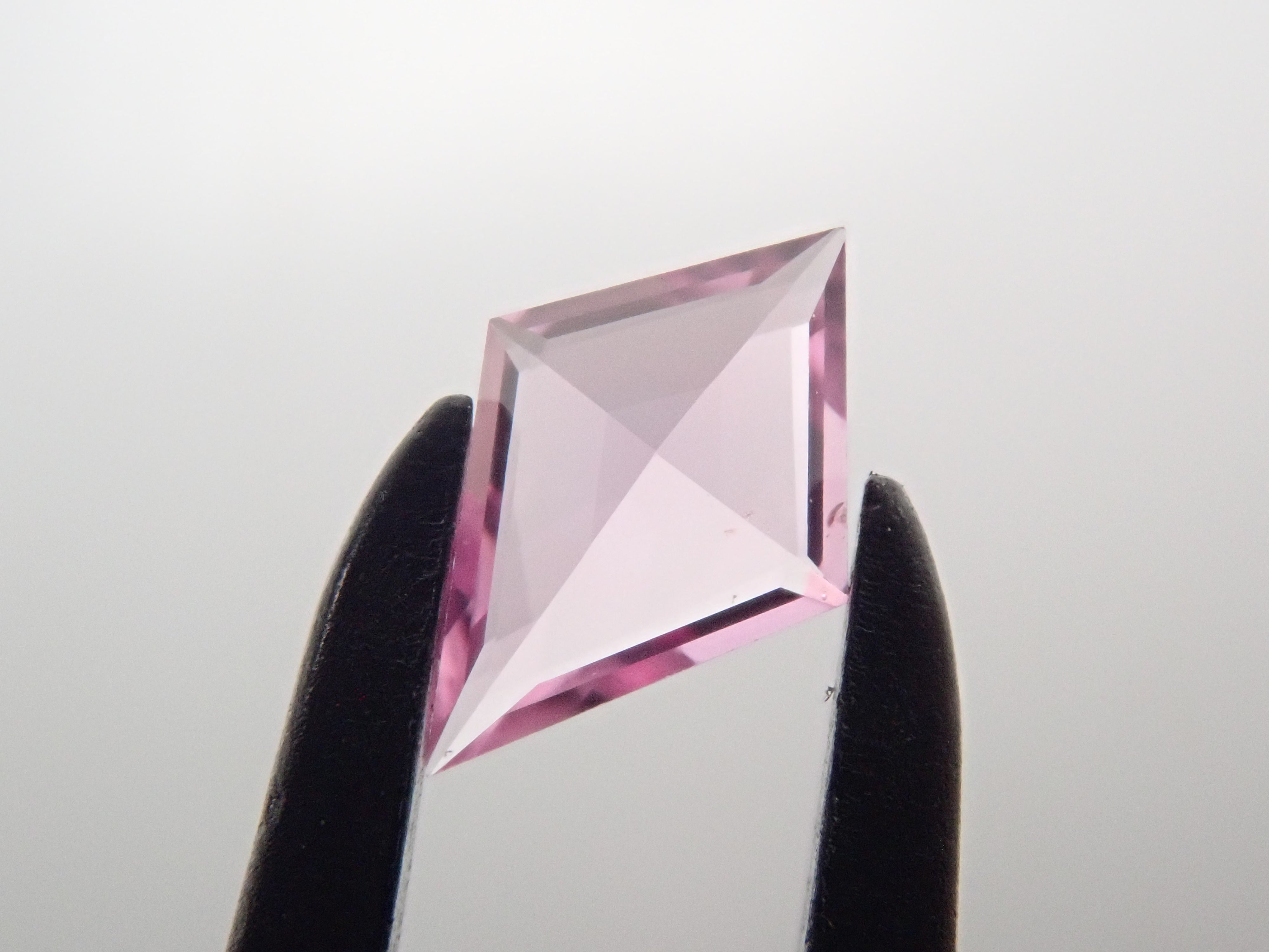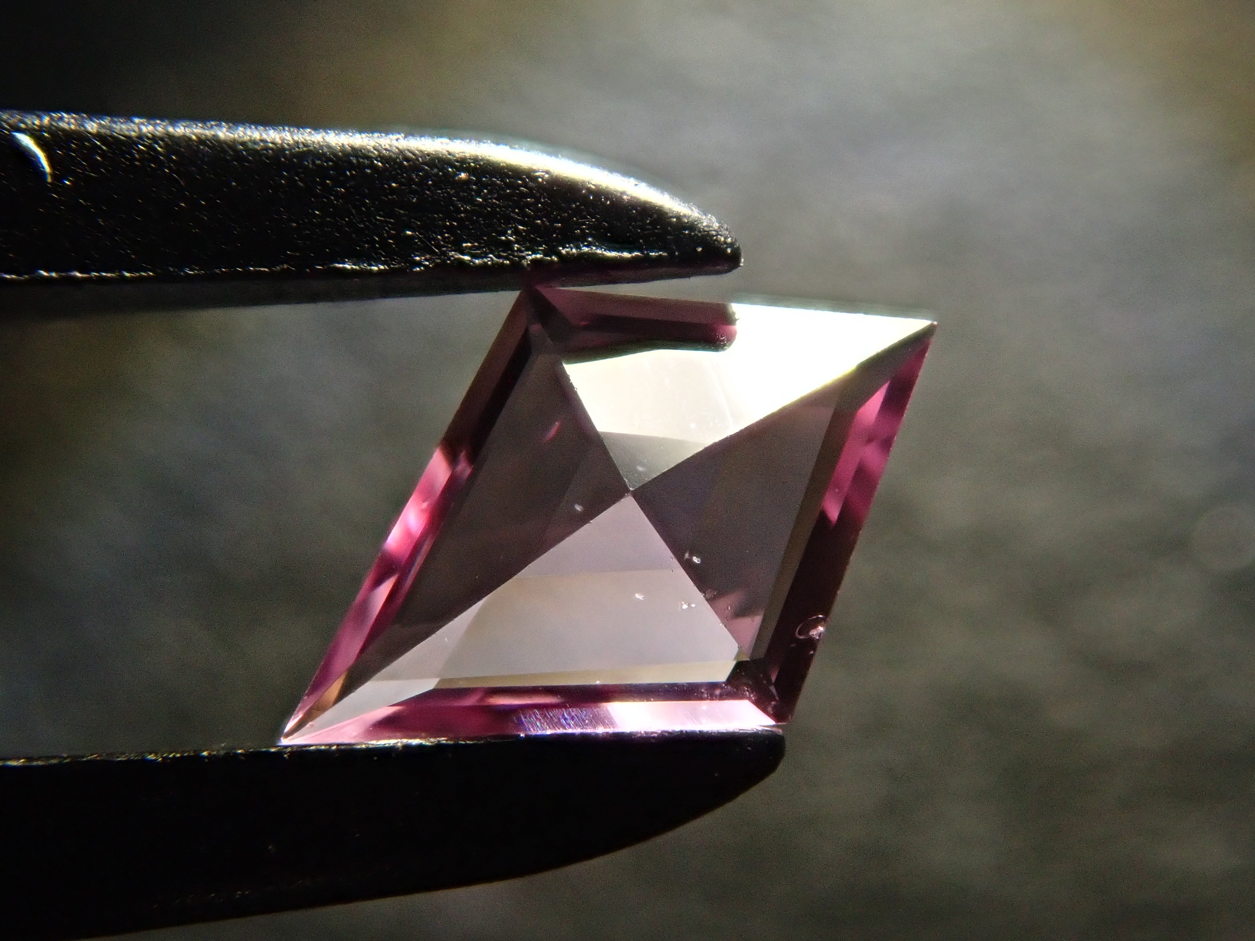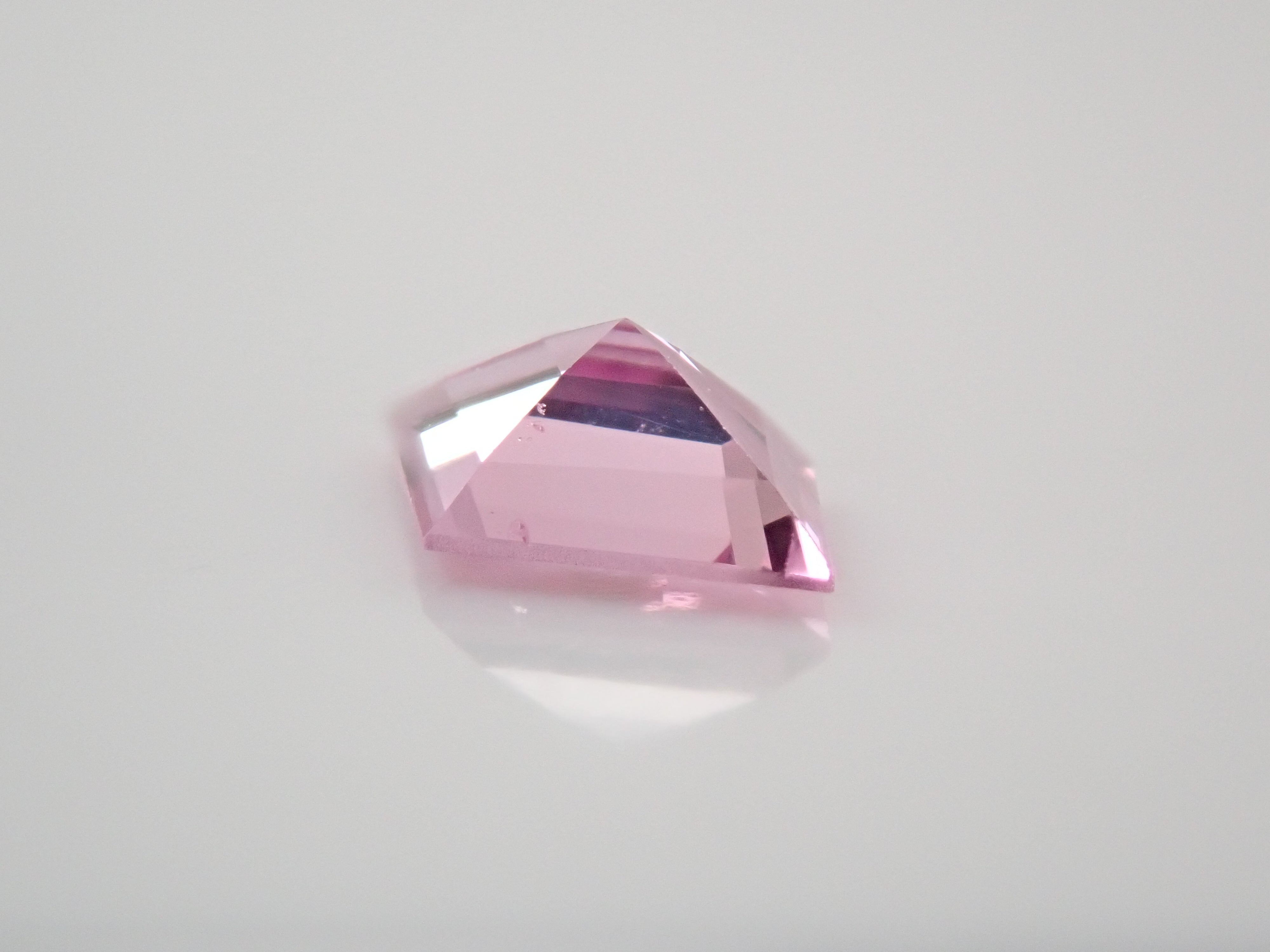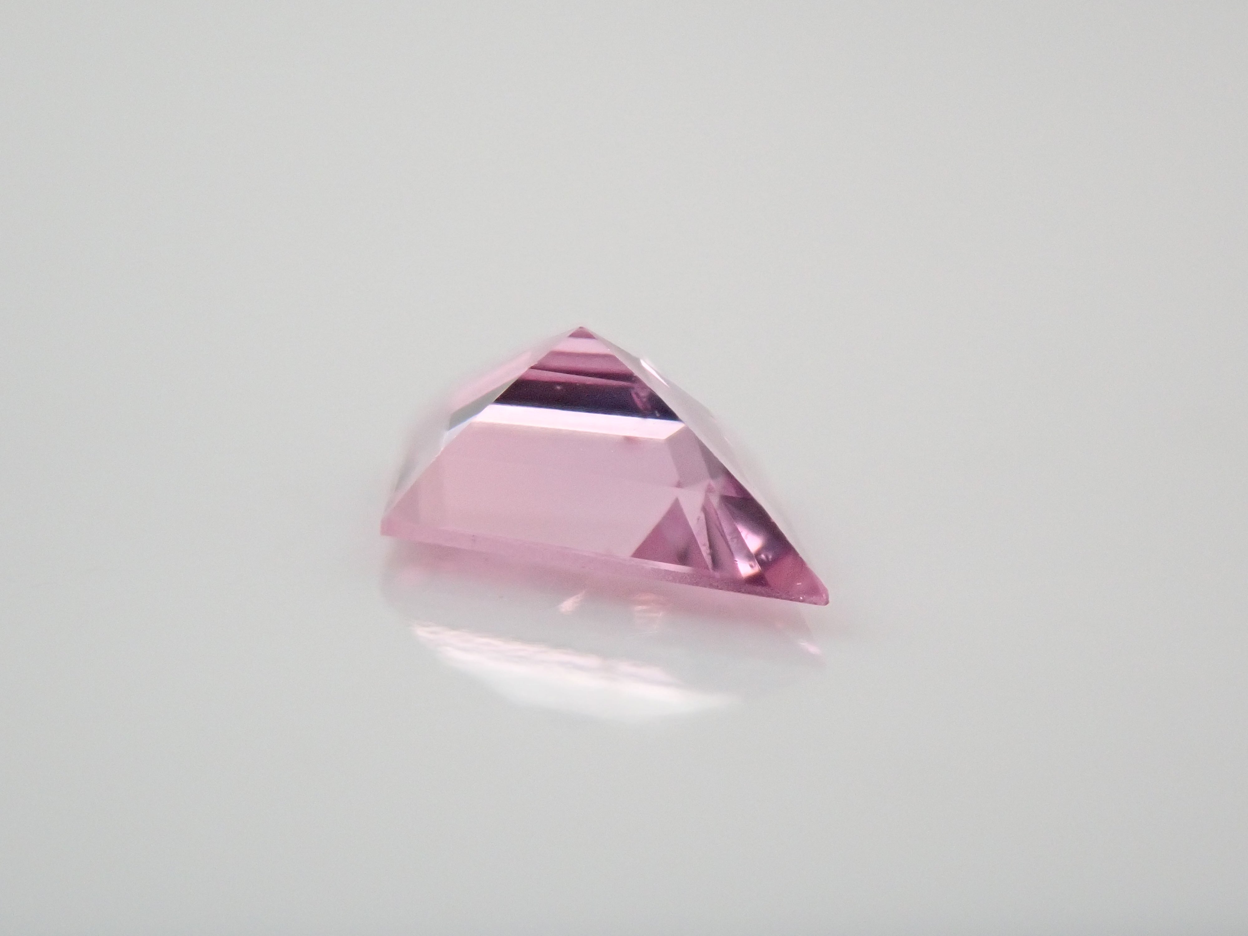 藍寶石是一種著名的寶石。礦物為剛玉,與紅寶石相同,但除紅色以外的所有剛玉稱為藍寶石。這是一顆粉紅色藍寶石,呈現鮮亮的桃色。藍寶石的硬度為 9,是僅次於鑽石的第二硬寶石,是一種高度堅韌、穩定且易於護理的寶石。這是一顆高品質粉紅色藍寶石 0.202 克拉裸石,菱形切工,透明度高。