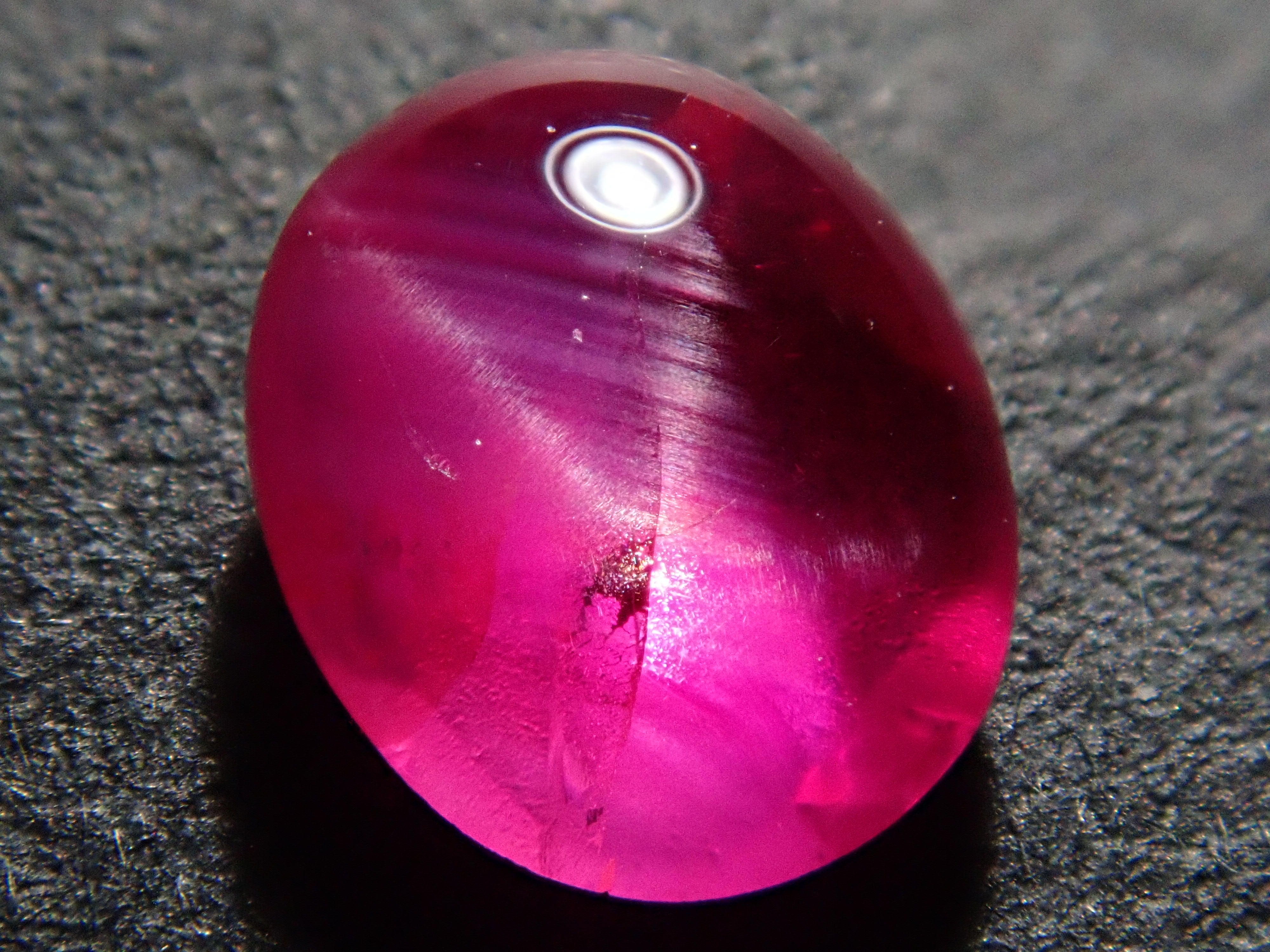 紅寶石自古以來就被視為寶石而受到推崇。指紅剛玉。紅寶石是僅次於鑽石的第二硬寶石,硬度為9,是一種堅韌、穩定且易於護理的寶石。這是一種帶有星光效果的紅寶石,用筆電筒拍攝。石頭的背面基本上是未拋光的。這是產自緬甸的罕見未加熱星光紅寶石。