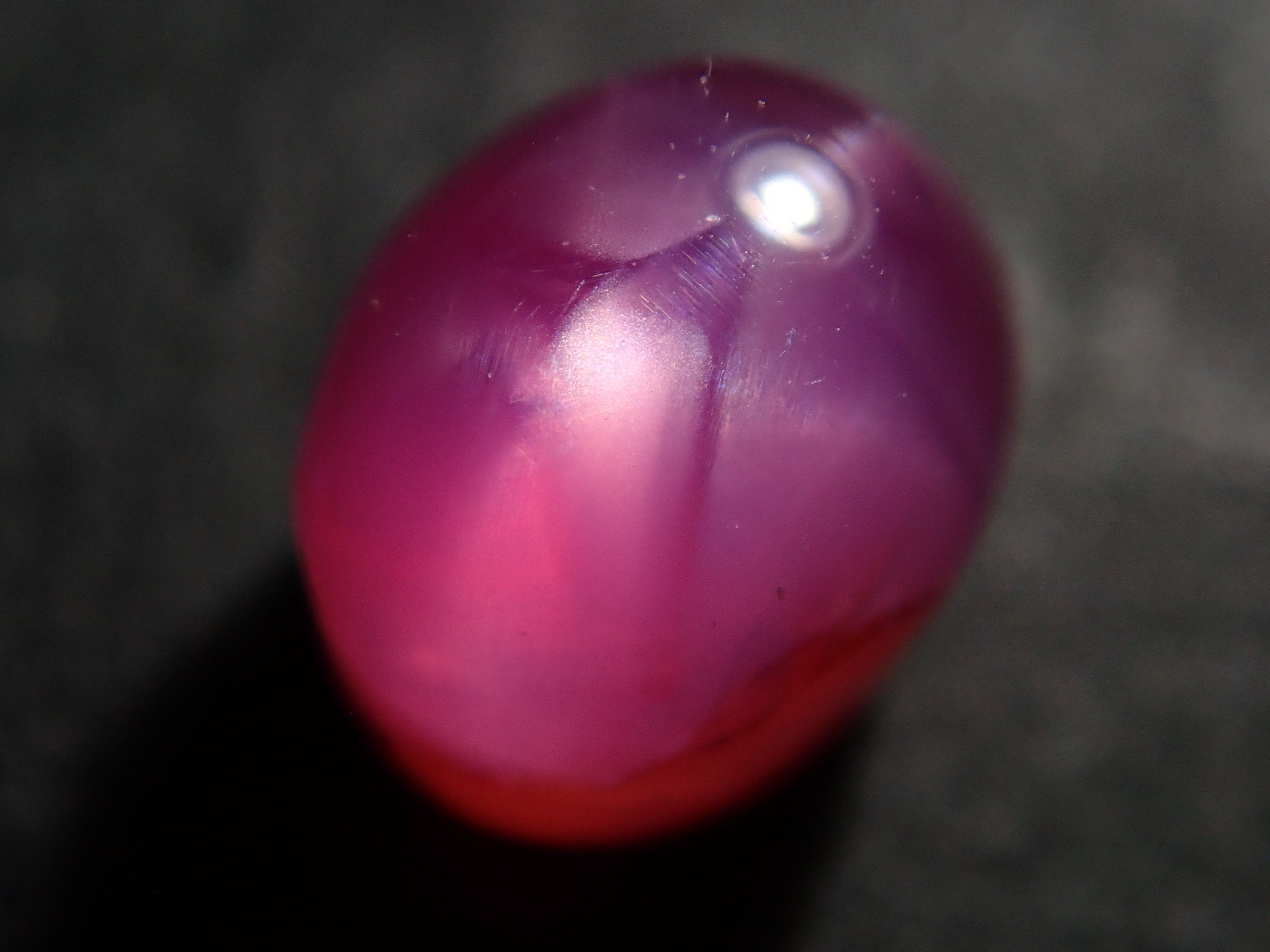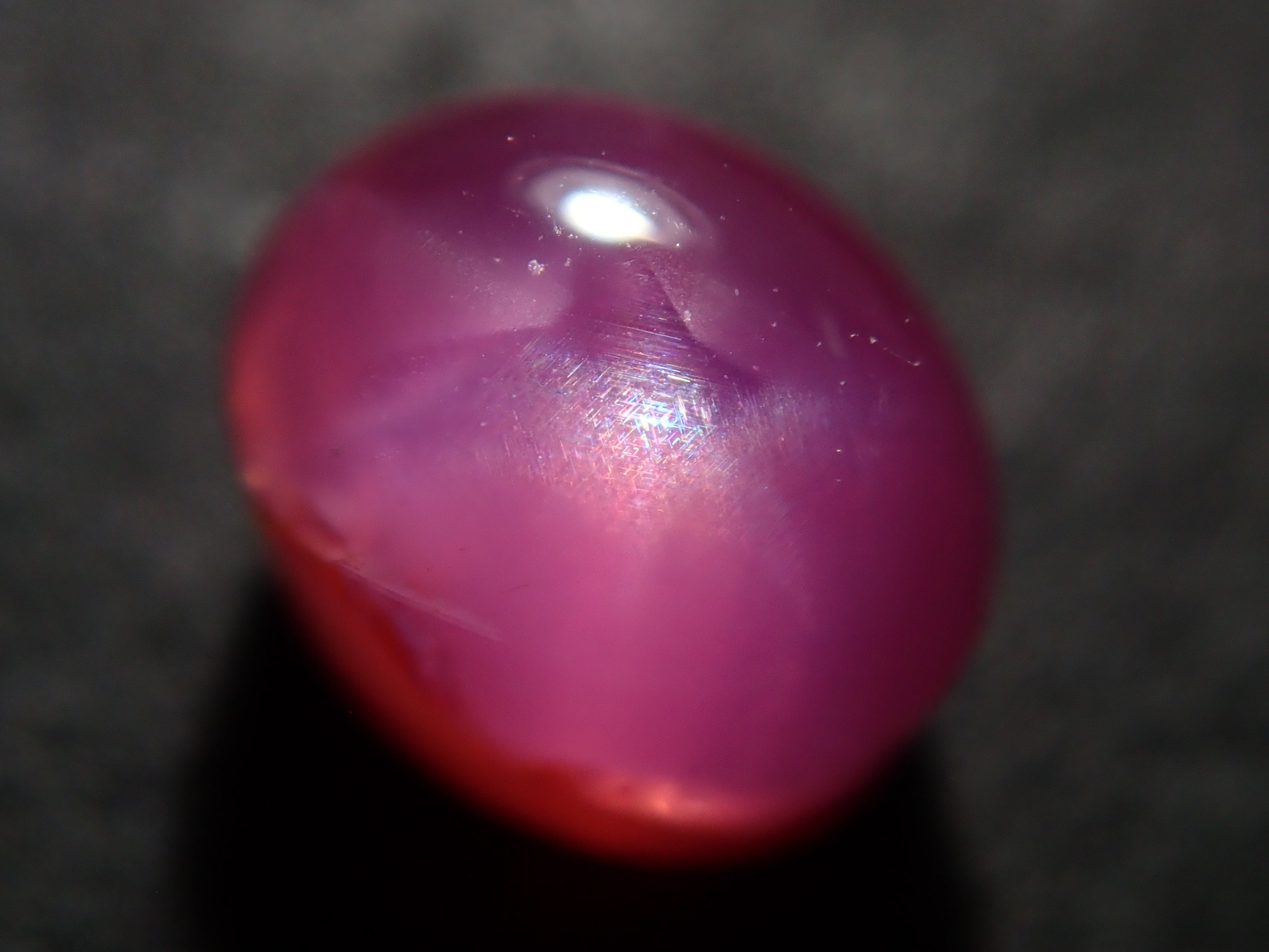 著名的藍寶石是一種著名的寶石。這顆藍寶石具有星光效果。藍寶石是僅次於鑽石的第二硬寶石,硬度為9,堅韌、穩定且易於保養。照片使用了筆型手電筒拍攝。寶石的背面通常未經拋光。