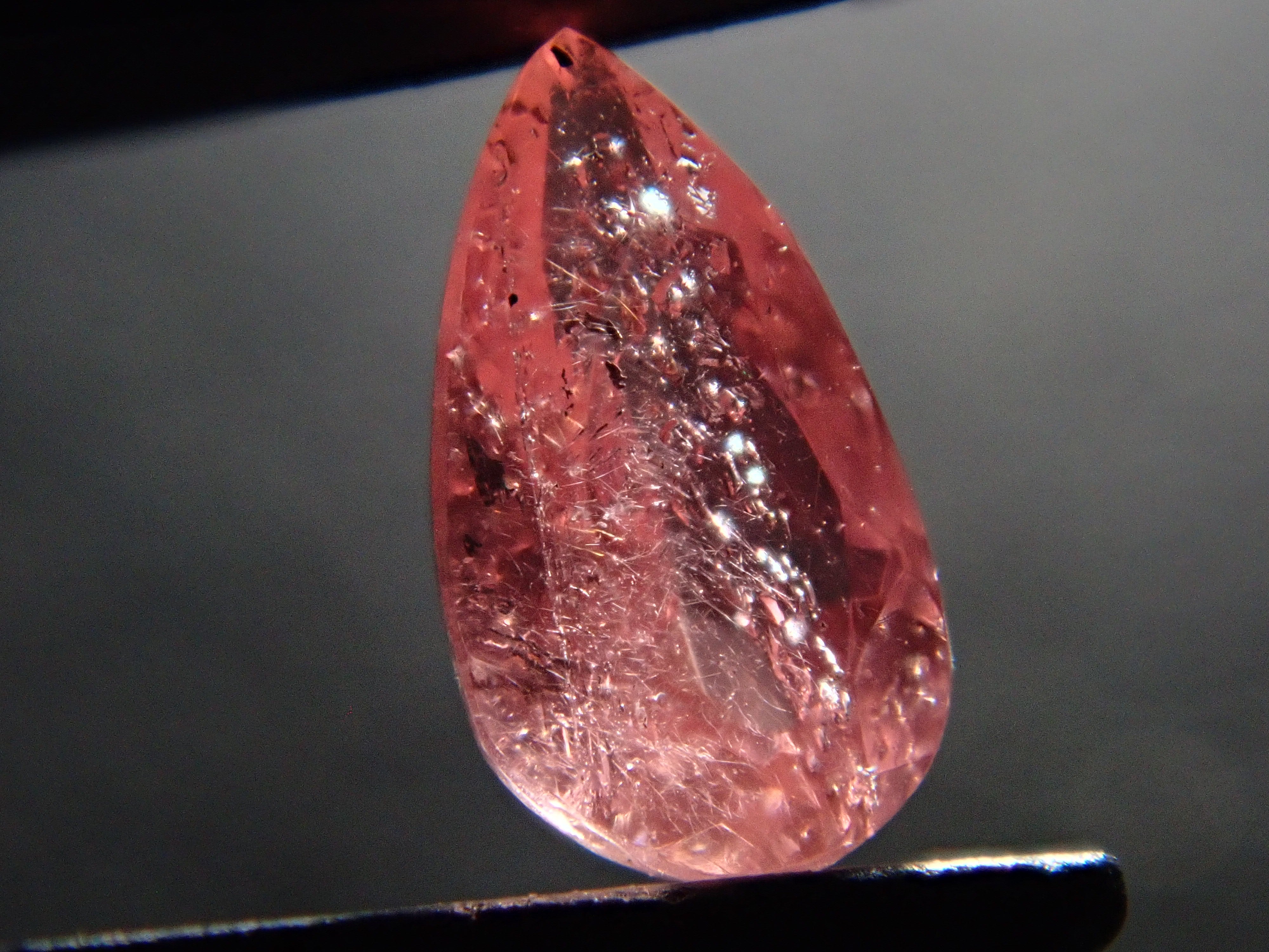 Euclase的名字來自希臘語“eu”,意思是“好”,和“klasis”,意思是“打破”。正如其起源所示,它具有完美的乳溝。由於它是稀有品種,所以是很少被製成珠寶的稀有石材。有白色、無色、淺綠色、淺藍色、深藍色等顏色變化。這是巴西粉紅euclase。它是巴西粉紅色尤長石特別深邃、鮮豔的顏色。