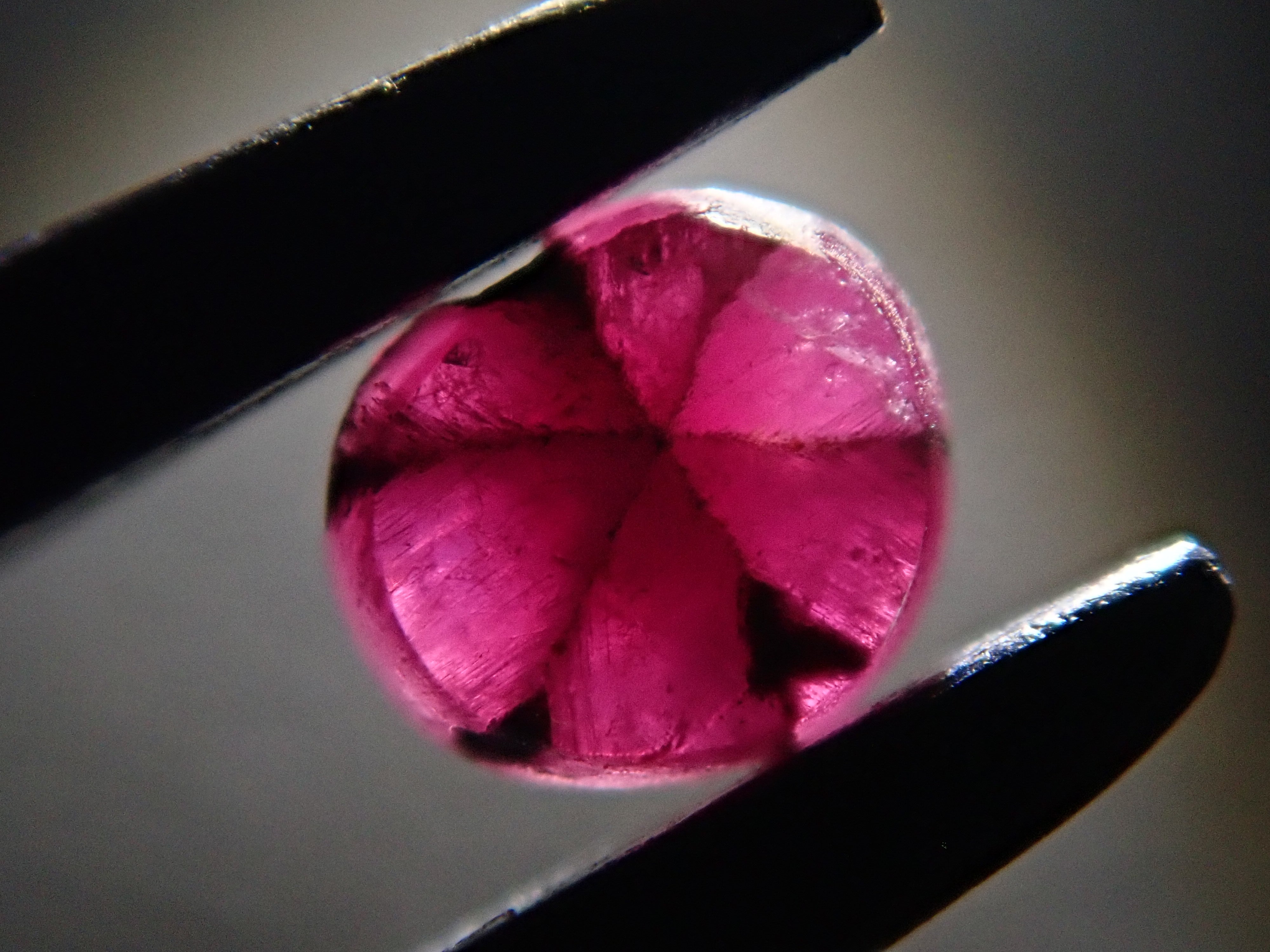 達碧茲圖案也稱為碳線。其中,trapichelby 是一種產量很少的稀有寶石。它的特點是這種 6 線星狀圖案。此外,有很多類型的達碧茲都有划痕和缺口,而不僅僅是紅寶石。
