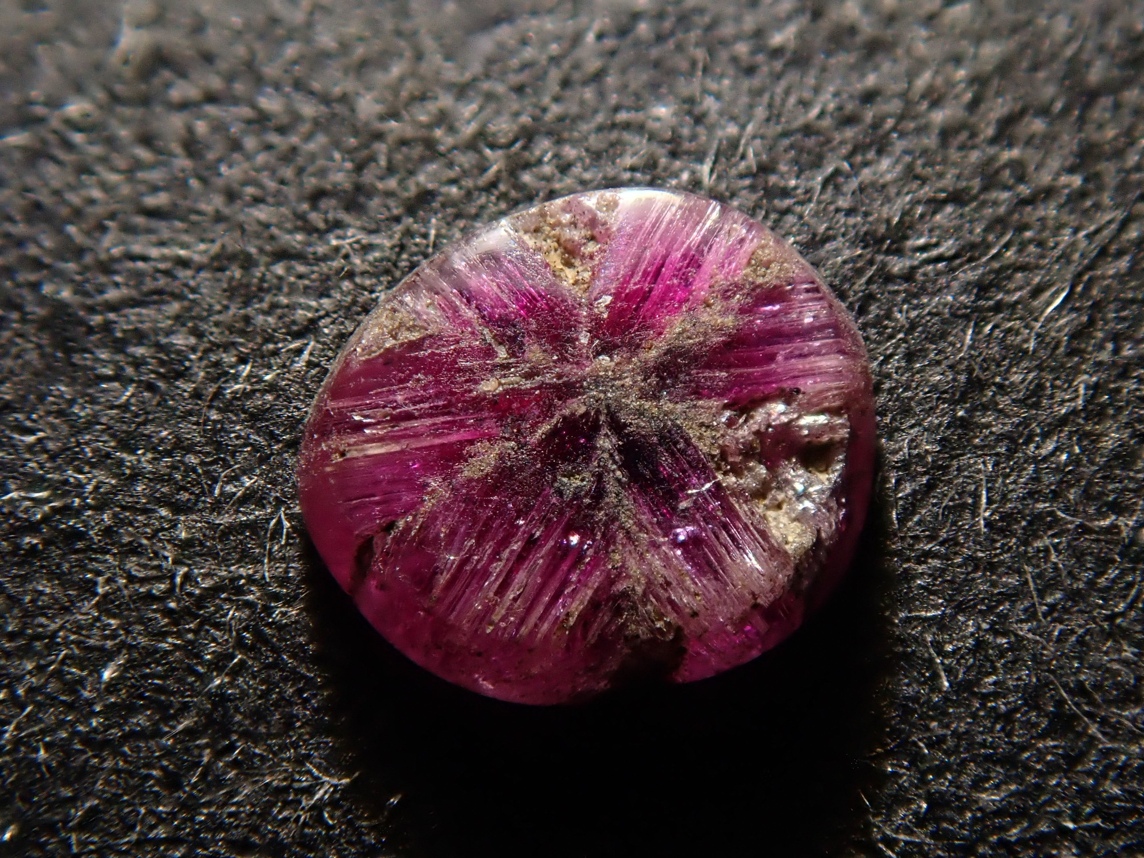 達碧茲圖案也稱為碳線。其中,trapichelby 是一種產量很少的稀有寶石。這種六線星狀圖案很有特色。此外,有很多類型的達碧茲都有划痕和缺口,而不僅僅是紅寶石。