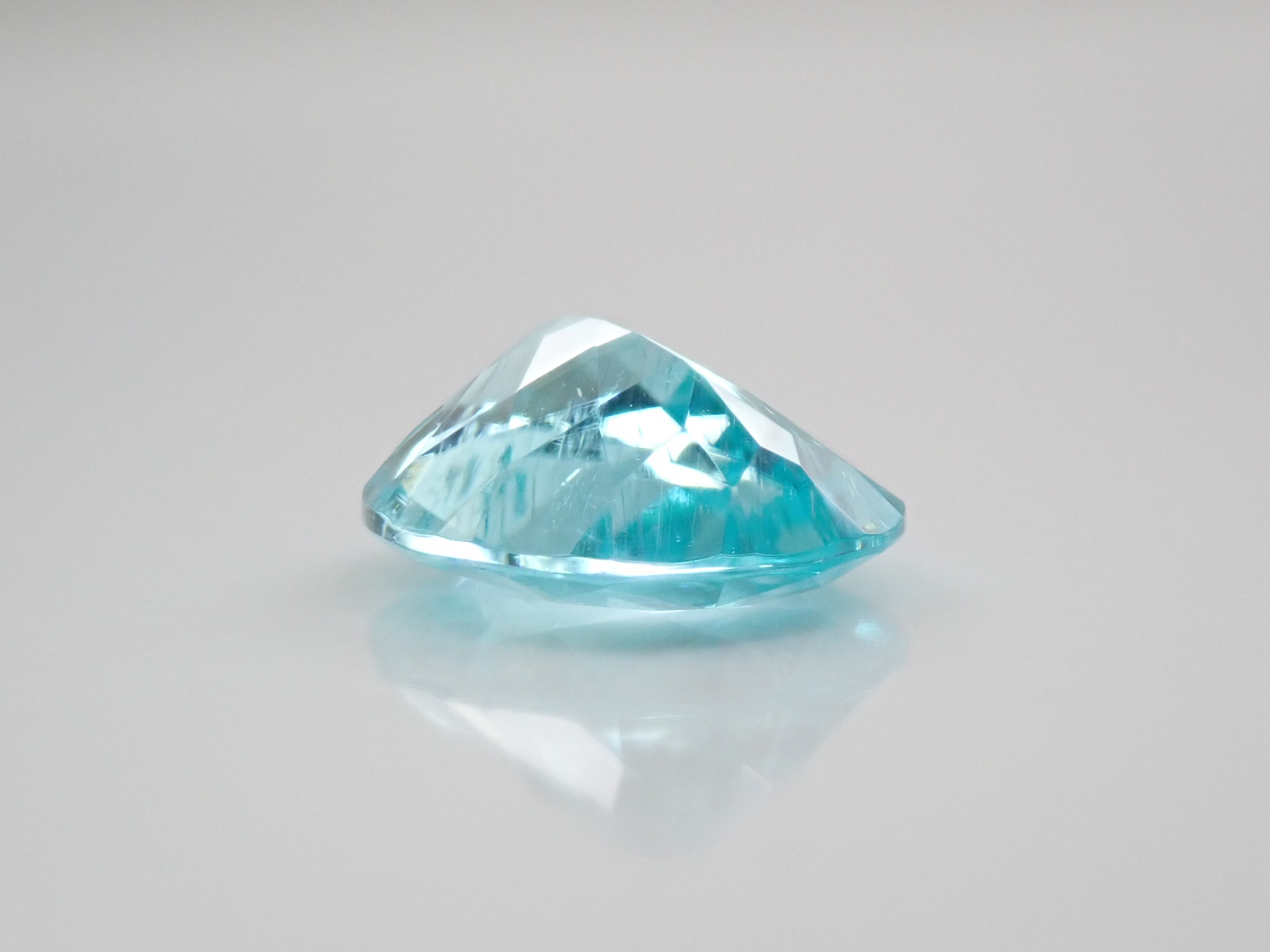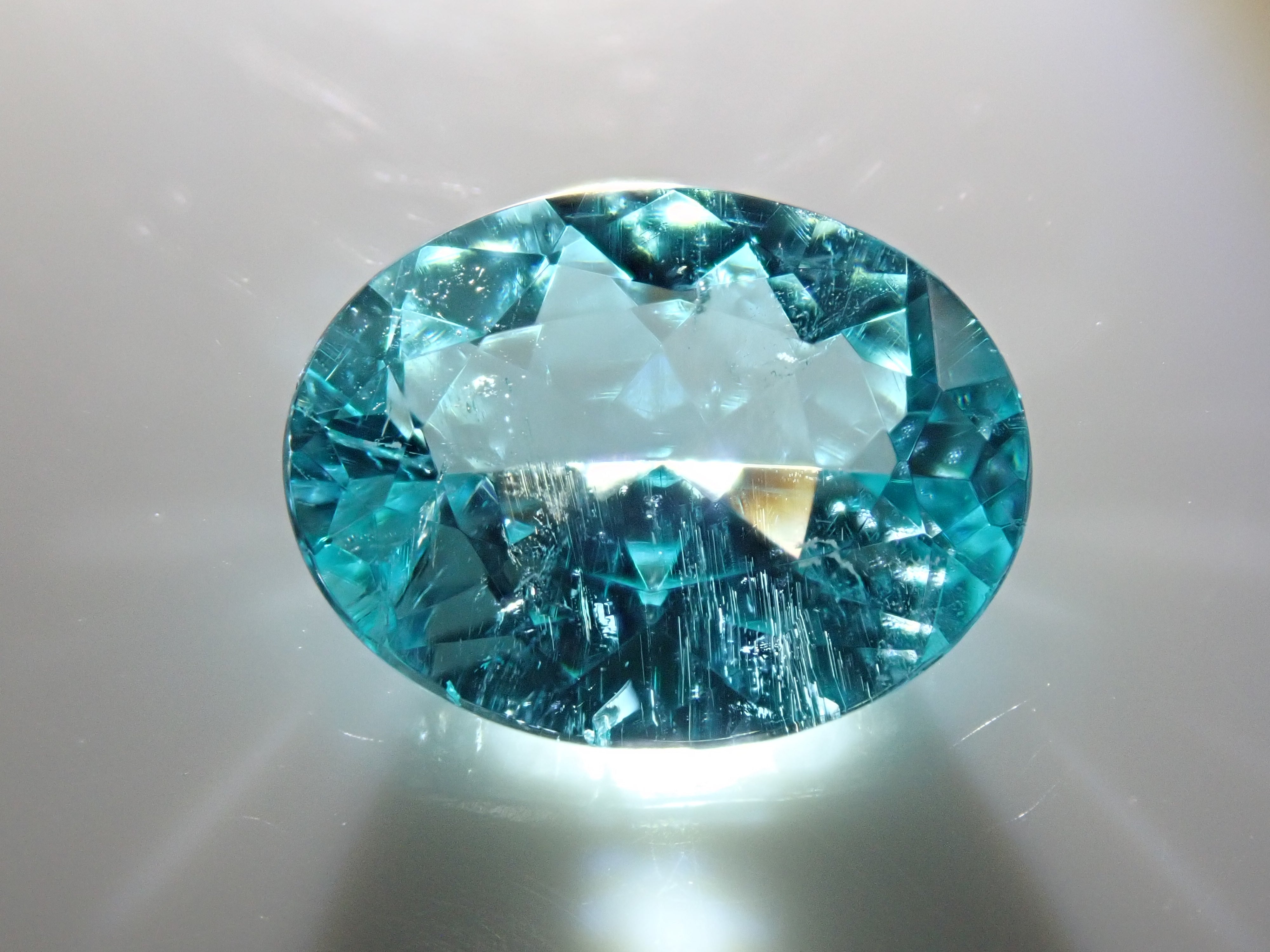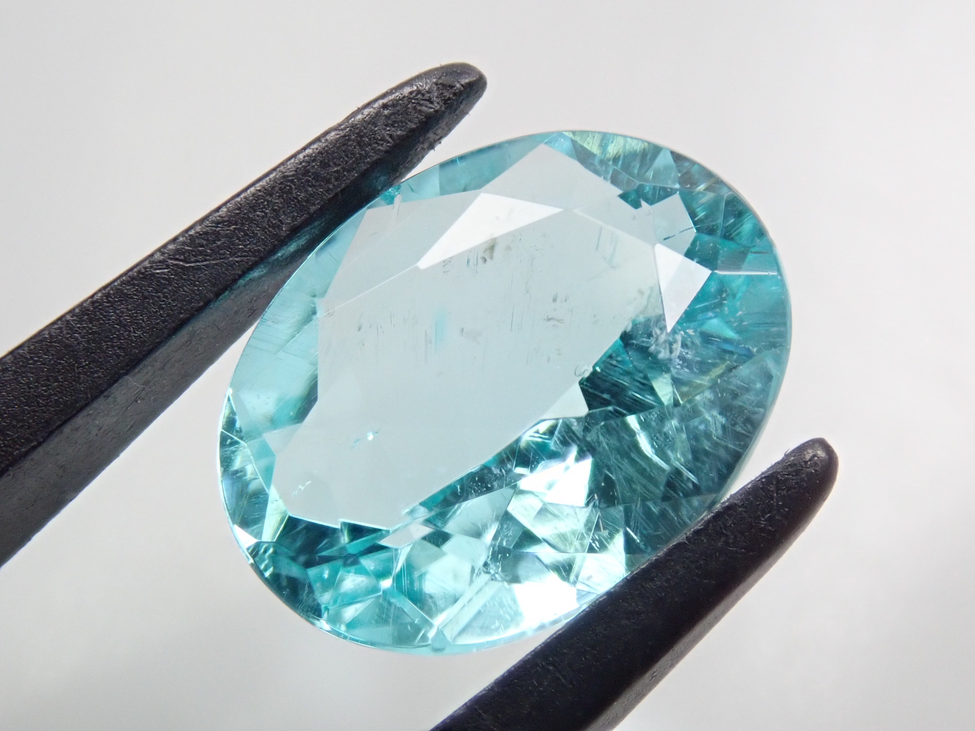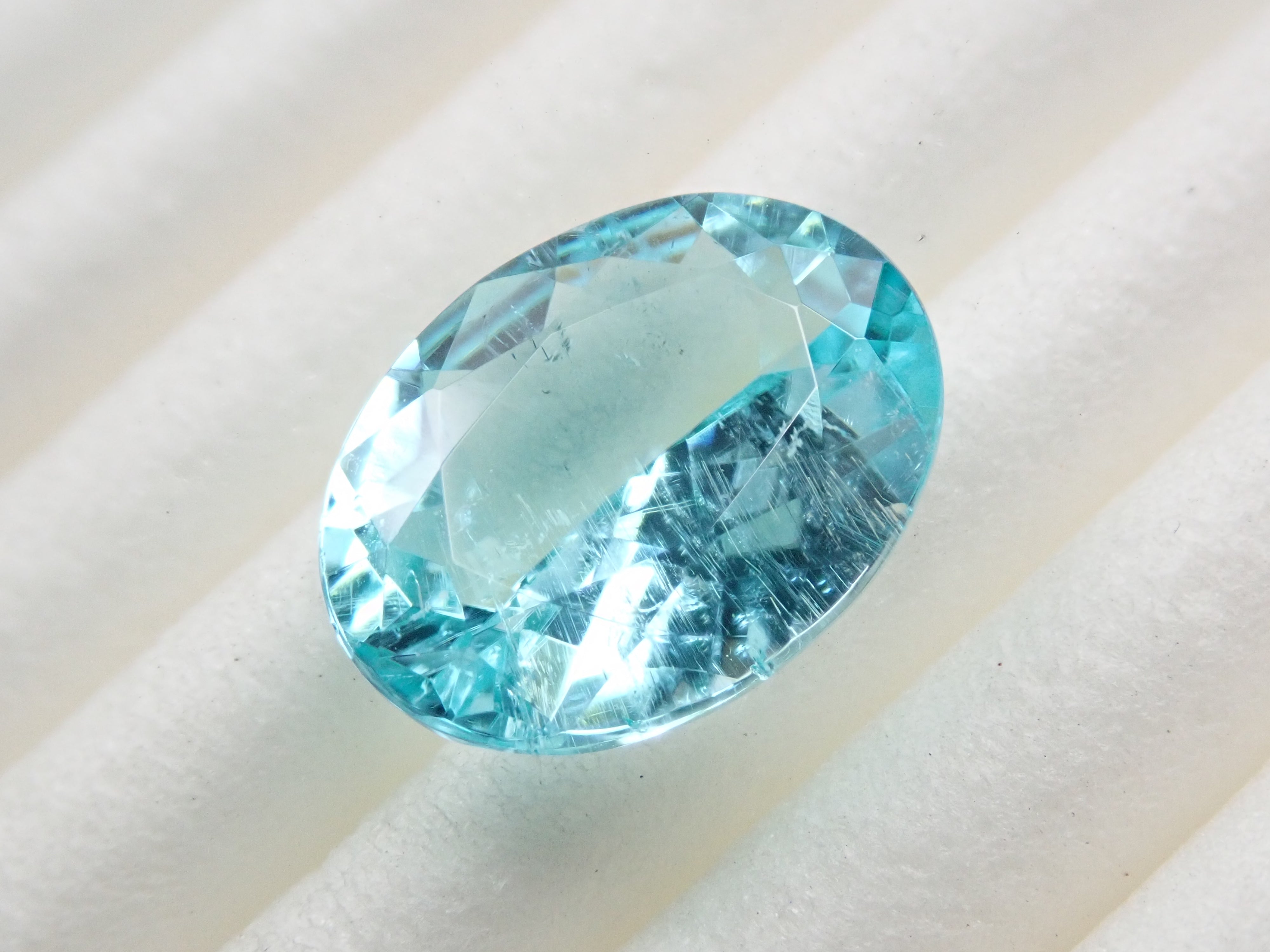帕拉伊巴碧璽有著不同於大海的藍色或天空的藍色的精緻色彩。它在日本的定義是“含有銅的藍色到綠色碧璽(無論產地)。”它是一種非常受歡迎的寶石。這顆產自莫三比克的帕拉伊巴碧璽透明度高,尺寸大,超過 2 克拉。