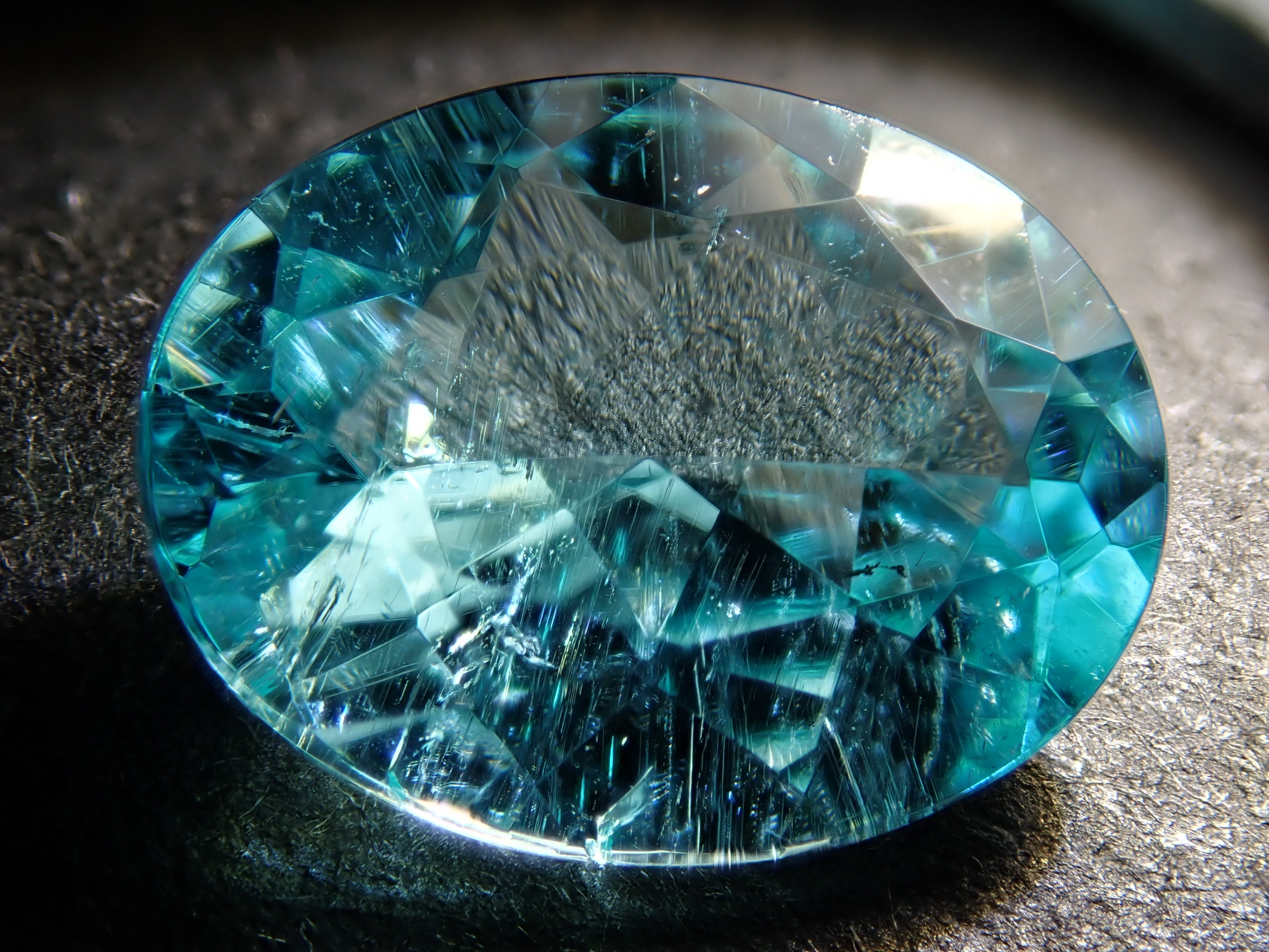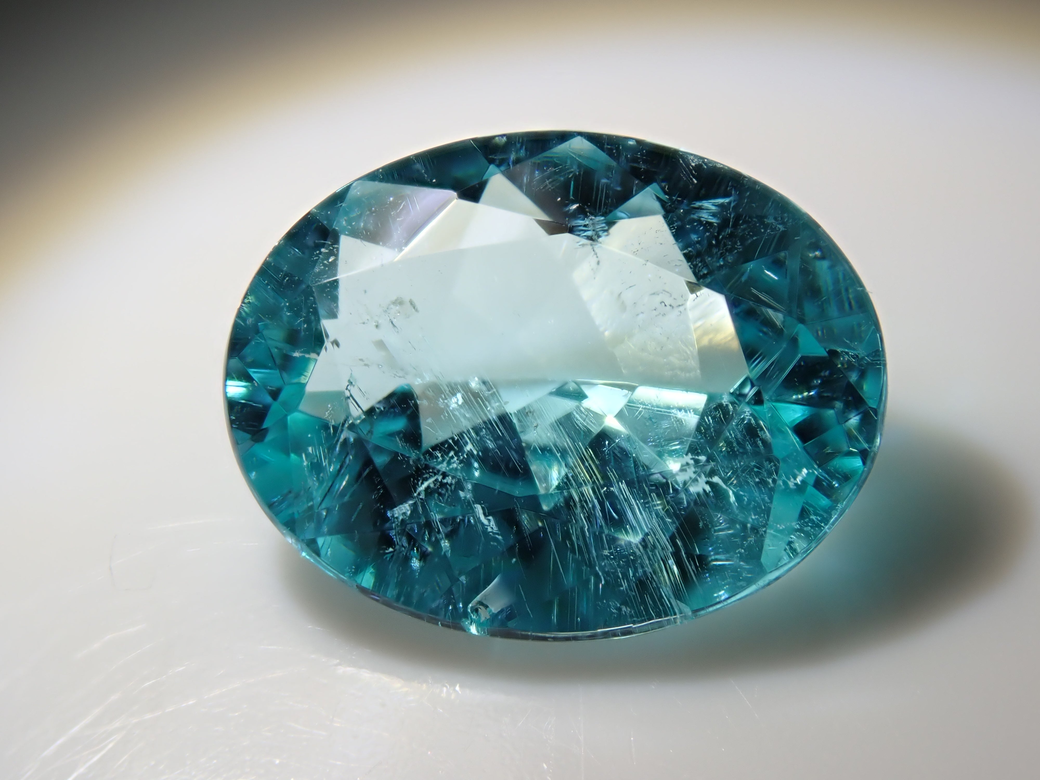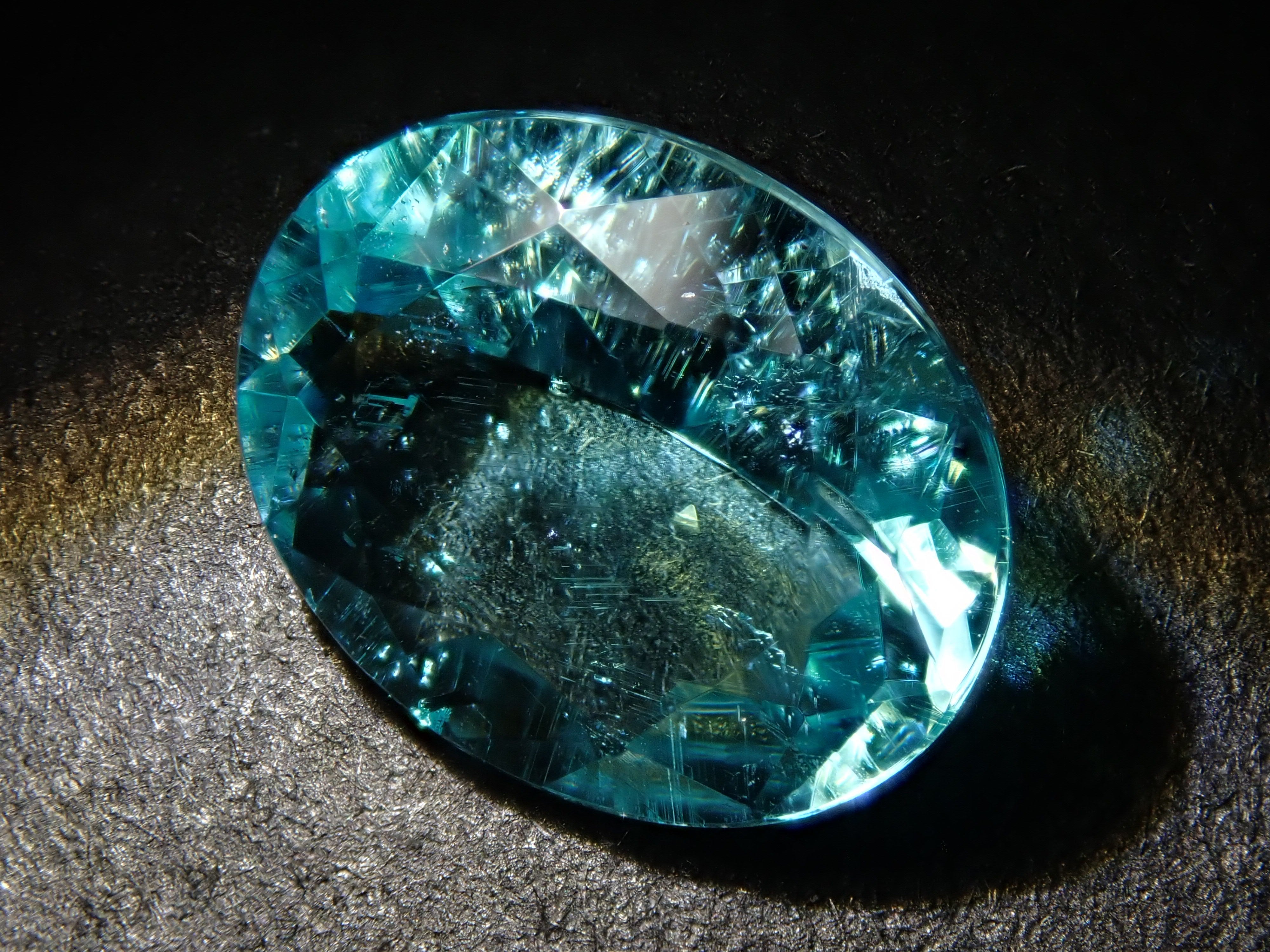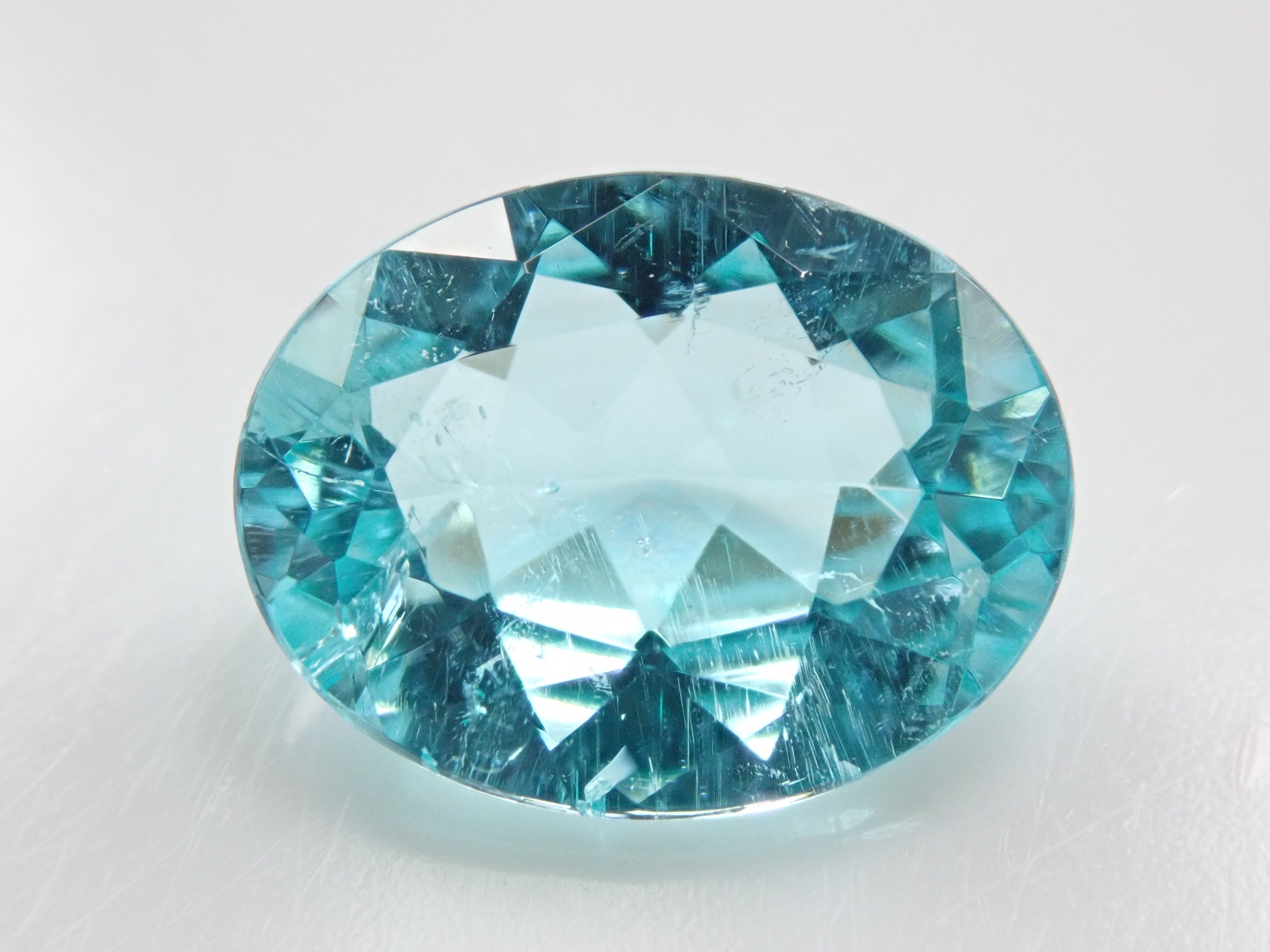 帕拉伊巴碧璽有著不同於大海的藍色或天空的藍色的精緻色彩。它在日本的定義是“含有銅的藍色到綠色碧璽(無論產地)。”它是一種非常受歡迎的寶石。這顆產自莫三比克的帕拉伊巴碧璽透明度高,尺寸大,超過 2 克拉。