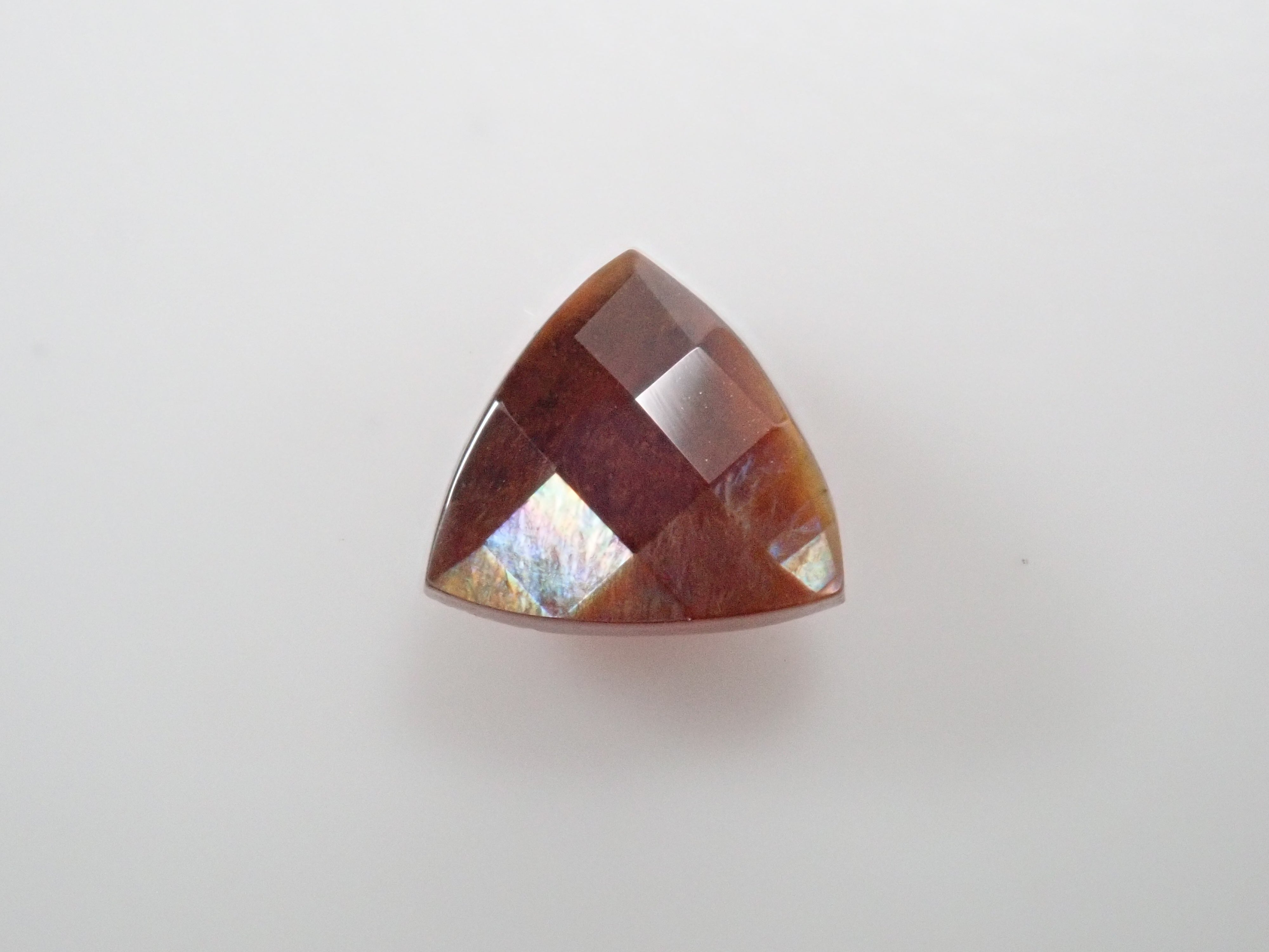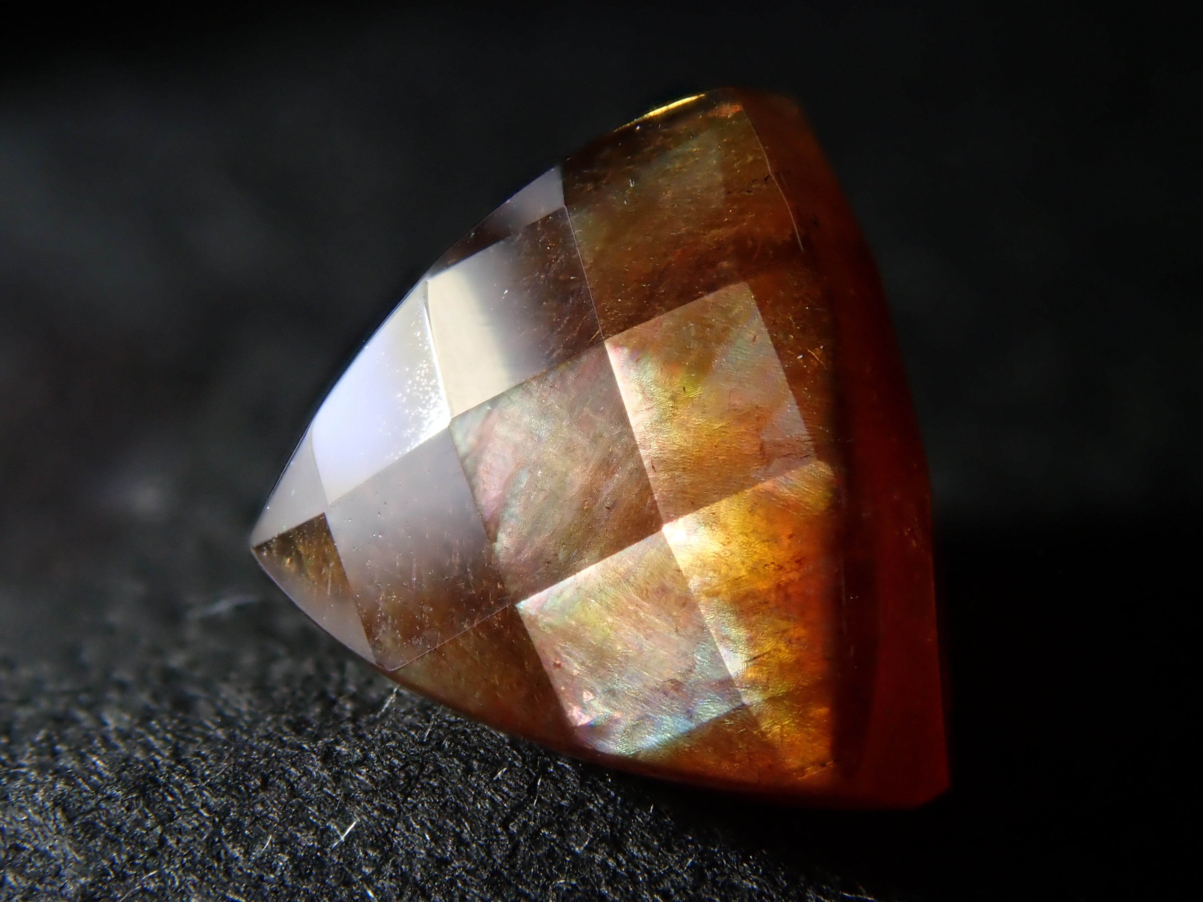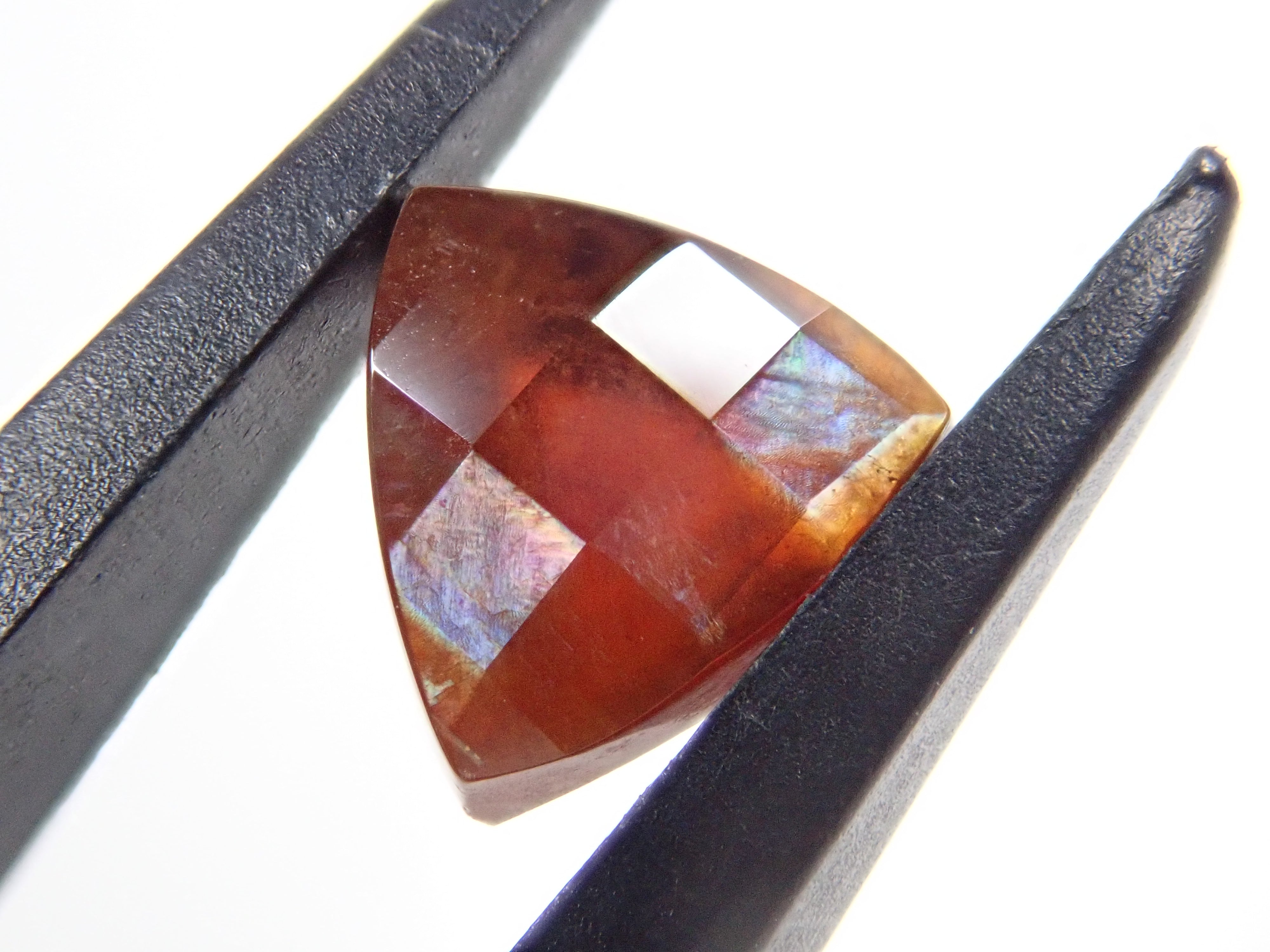 石榴石是一月的生日石。這是一種稍微不尋常的類型,您可以看到虹彩效果。由於其外觀,它被俗稱為“彩虹石榴石”和“虹彩鈣鐵榴石石榴石”。這是產自奈良縣天川村的棋盤形切割彩虹石榴石(鈣鐵榴石石榴石)。