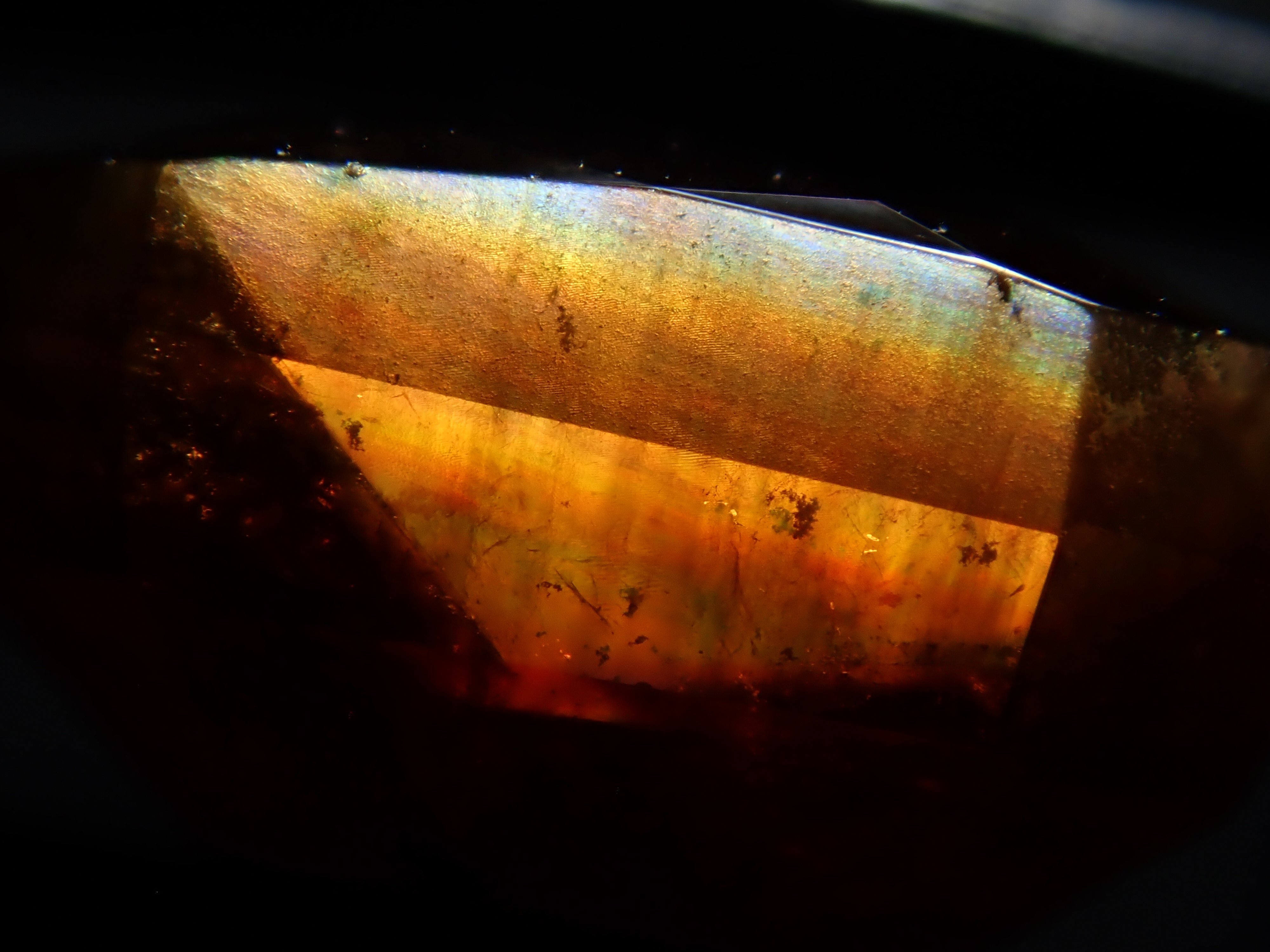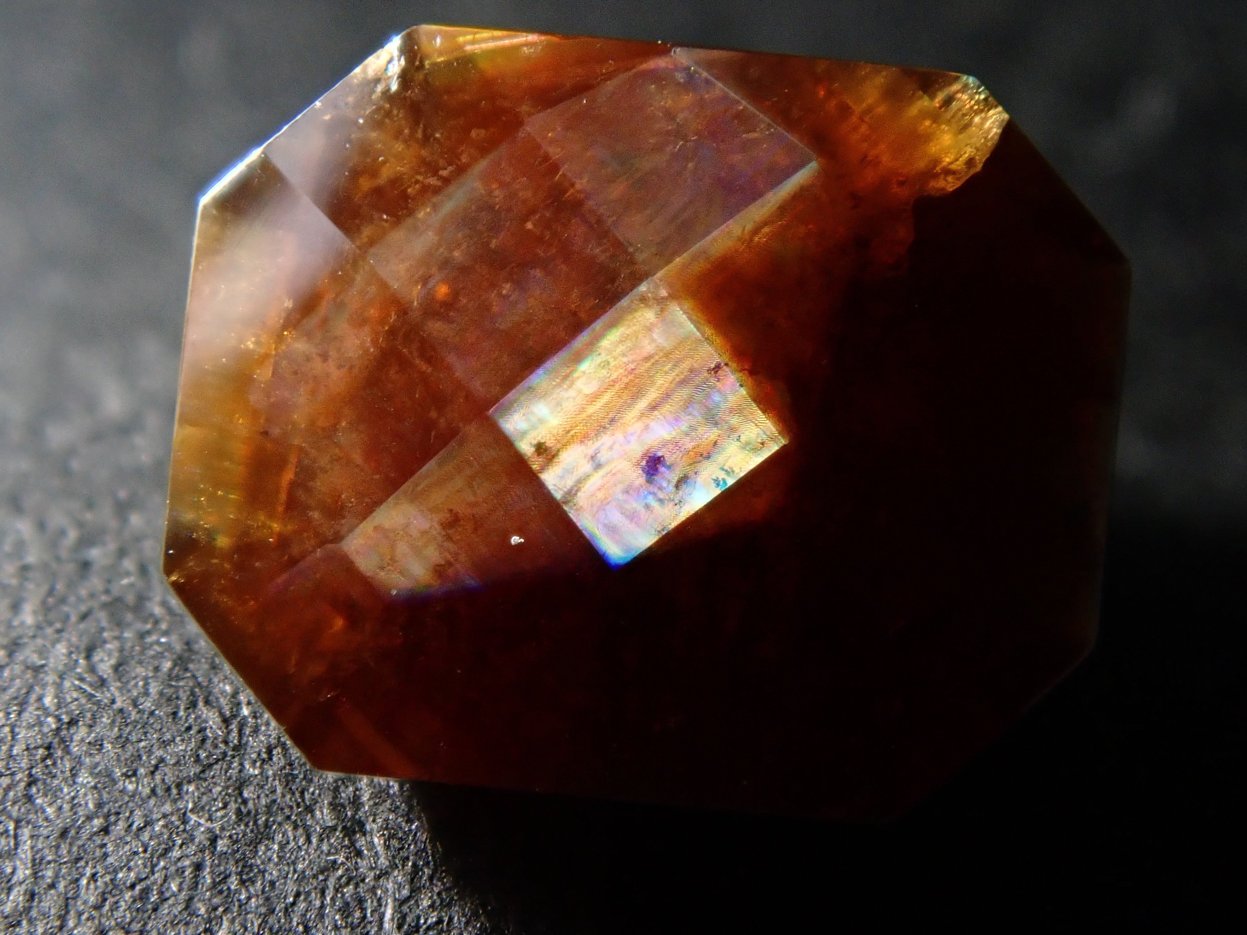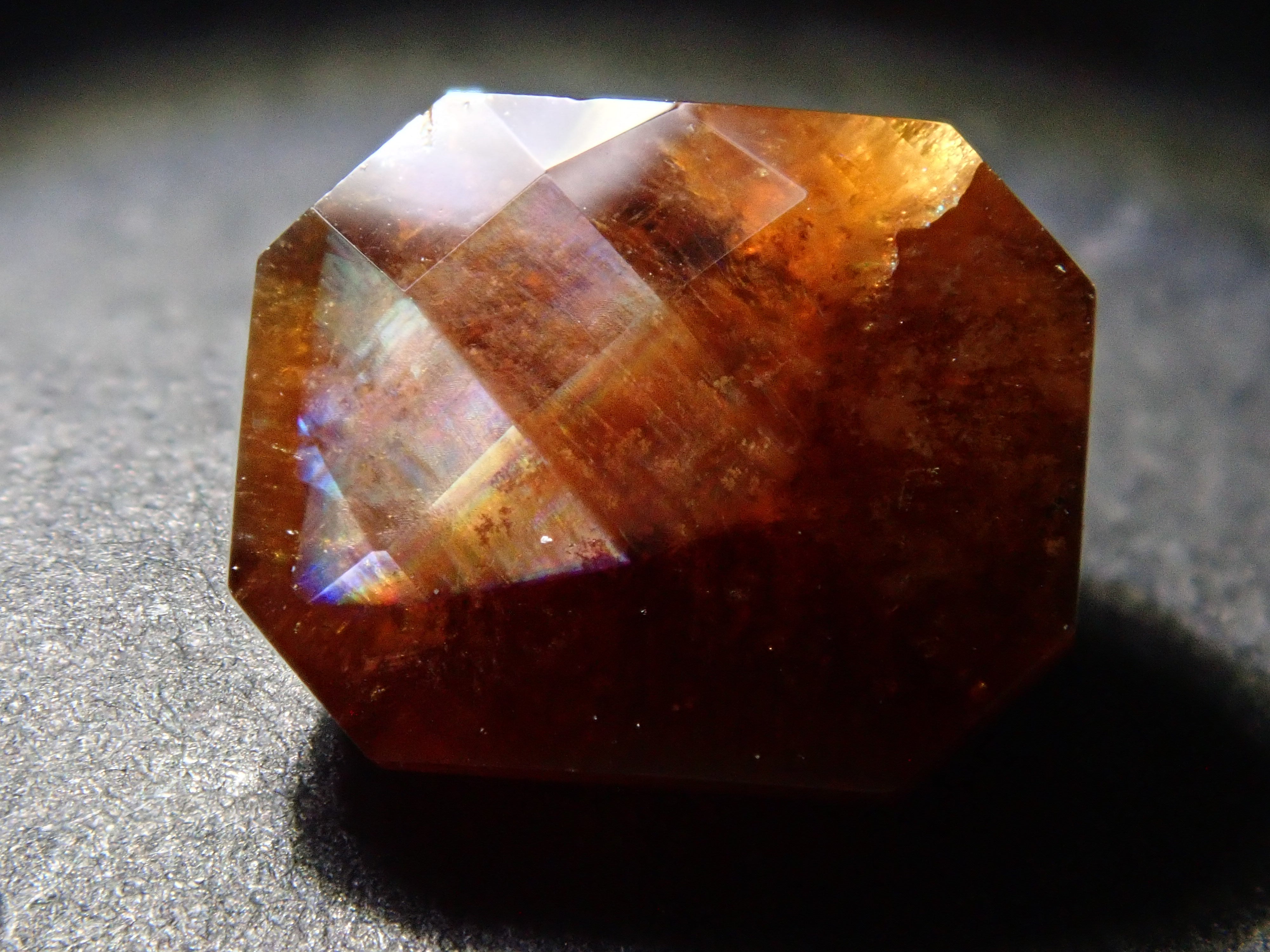 石榴石是一月的誕生石。這是一種稍微不尋常的類型,您可以看到虹彩效果。由於其外觀,它被俗稱為“彩虹石榴石”和“虹彩鈣鐵榴石石榴石”。這是產自奈良縣天川村的棋盤形切割彩虹石榴石(鈣鐵榴石石榴石)。
