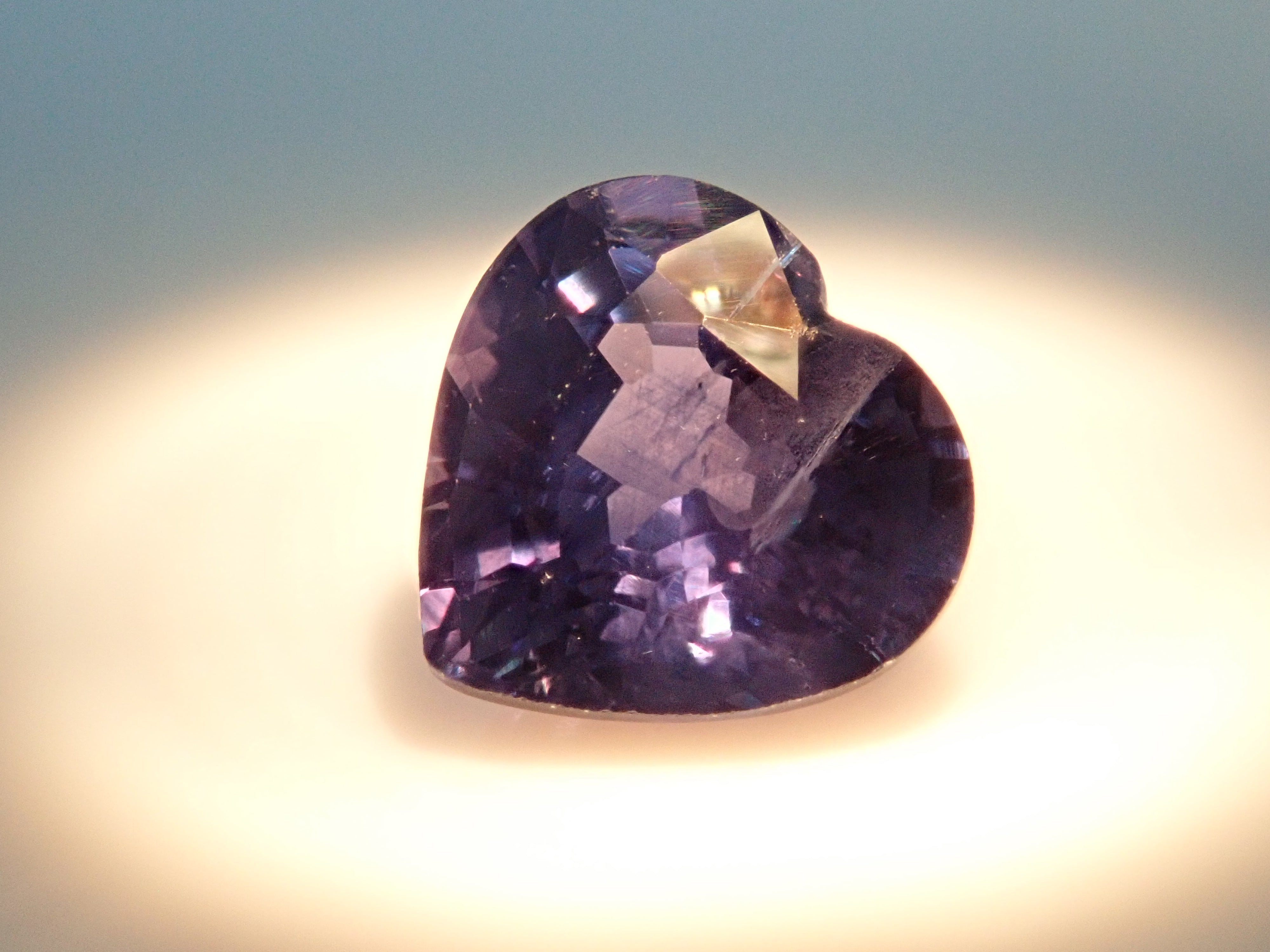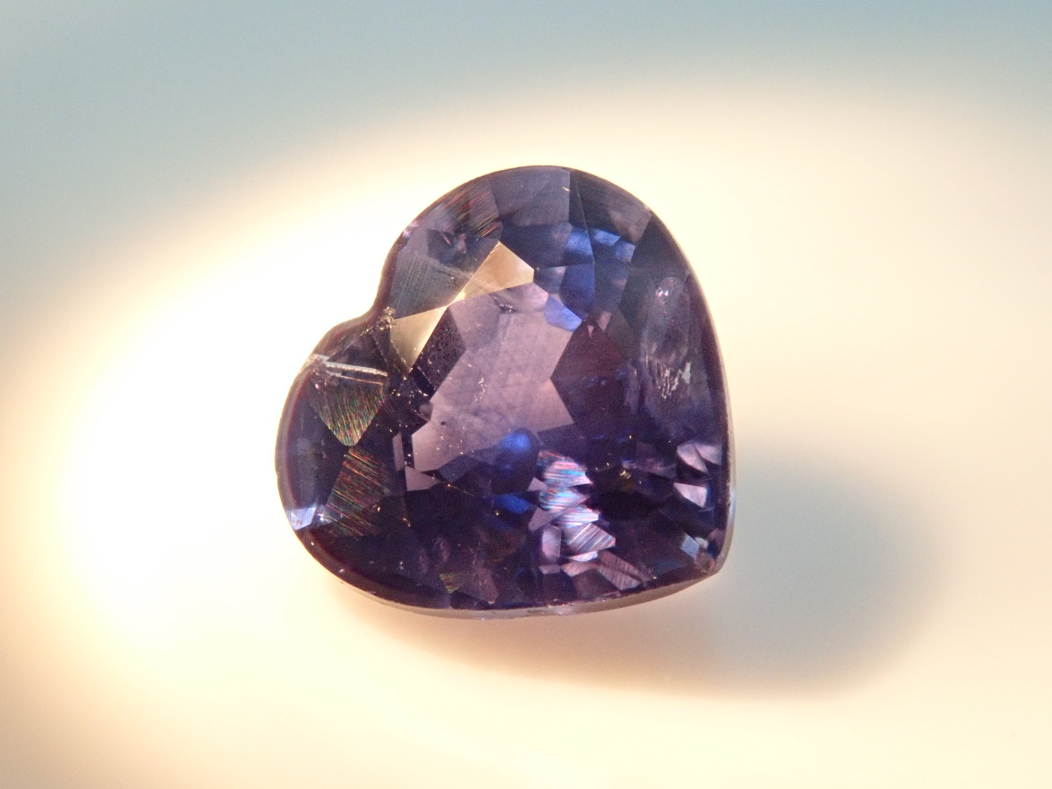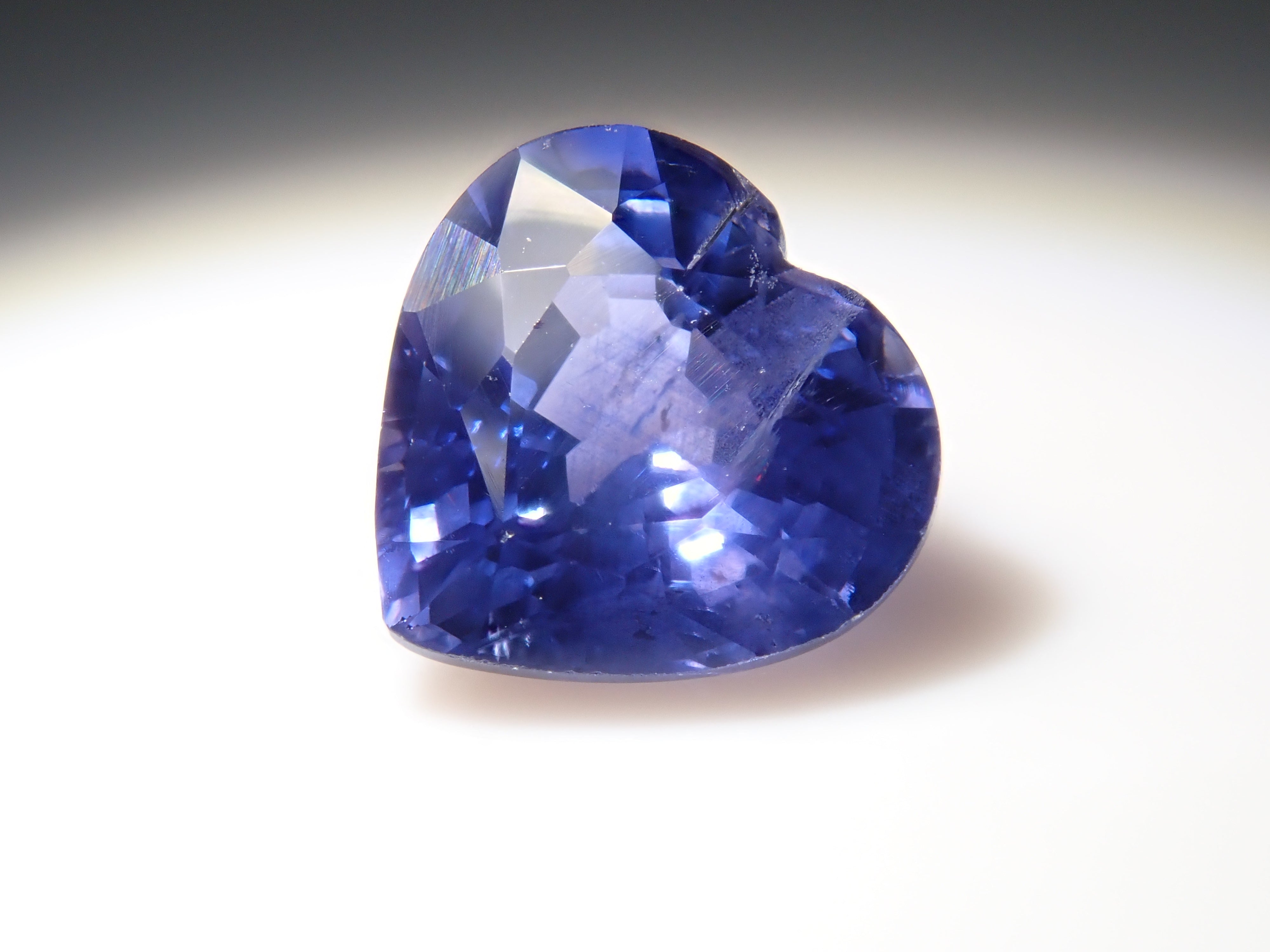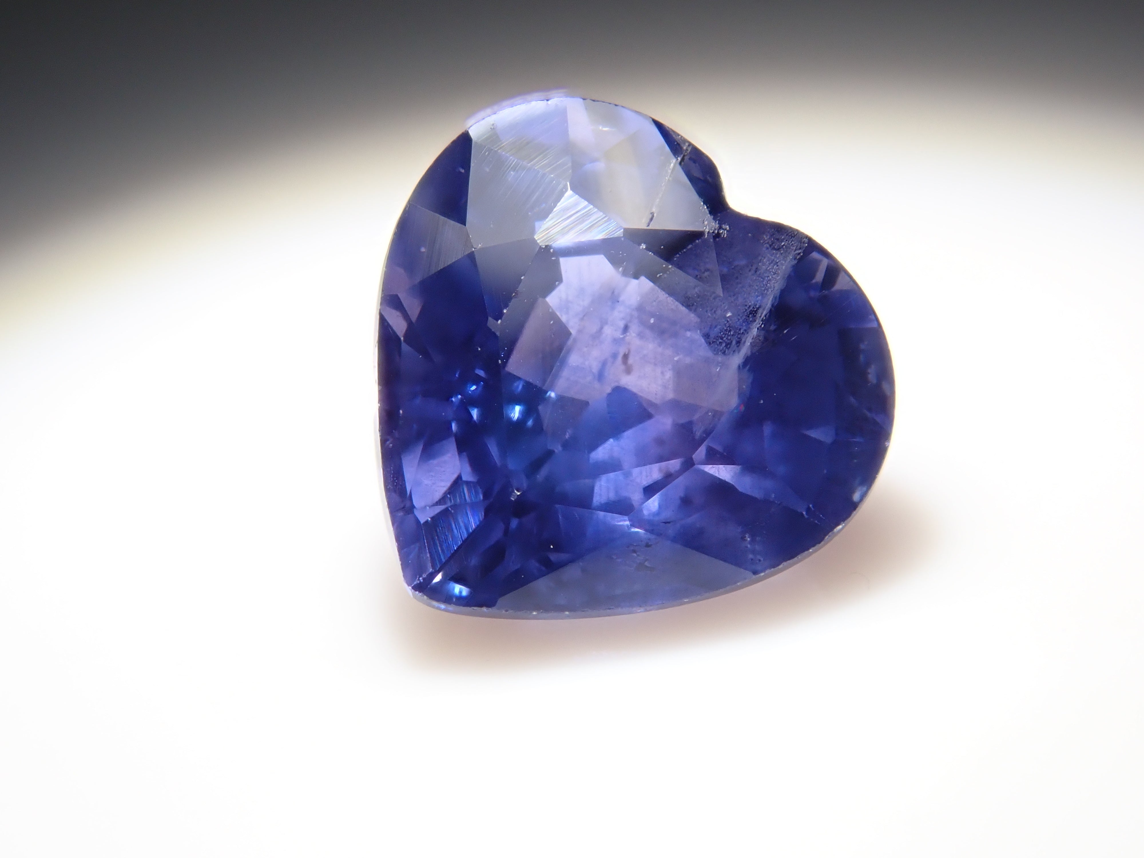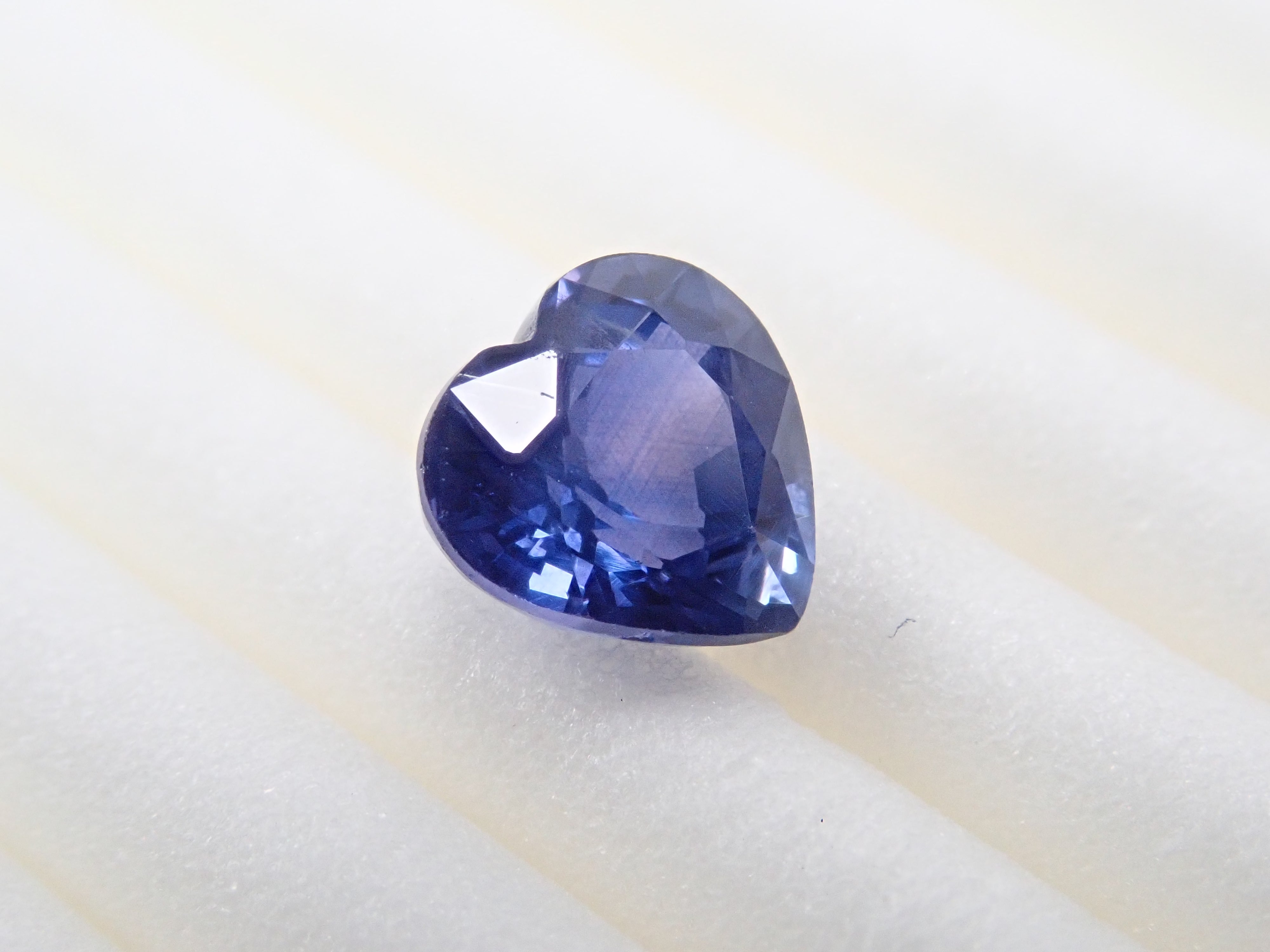 藍寶石是一種著名的寶石。礦物為剛玉,與紅寶石相同,但除紅色以外的所有剛玉稱為藍寶石。其中,這是一種罕見的會變色的藍寶石。藍寶石的硬度為 9,是僅次於鑽石的第二硬寶石,是一種高度堅韌、穩定且易於護理的寶石。請使用紅色變色筆燈欣賞變色效果。一顆心形切割變色藍寶石,尺寸接近 1 克拉。