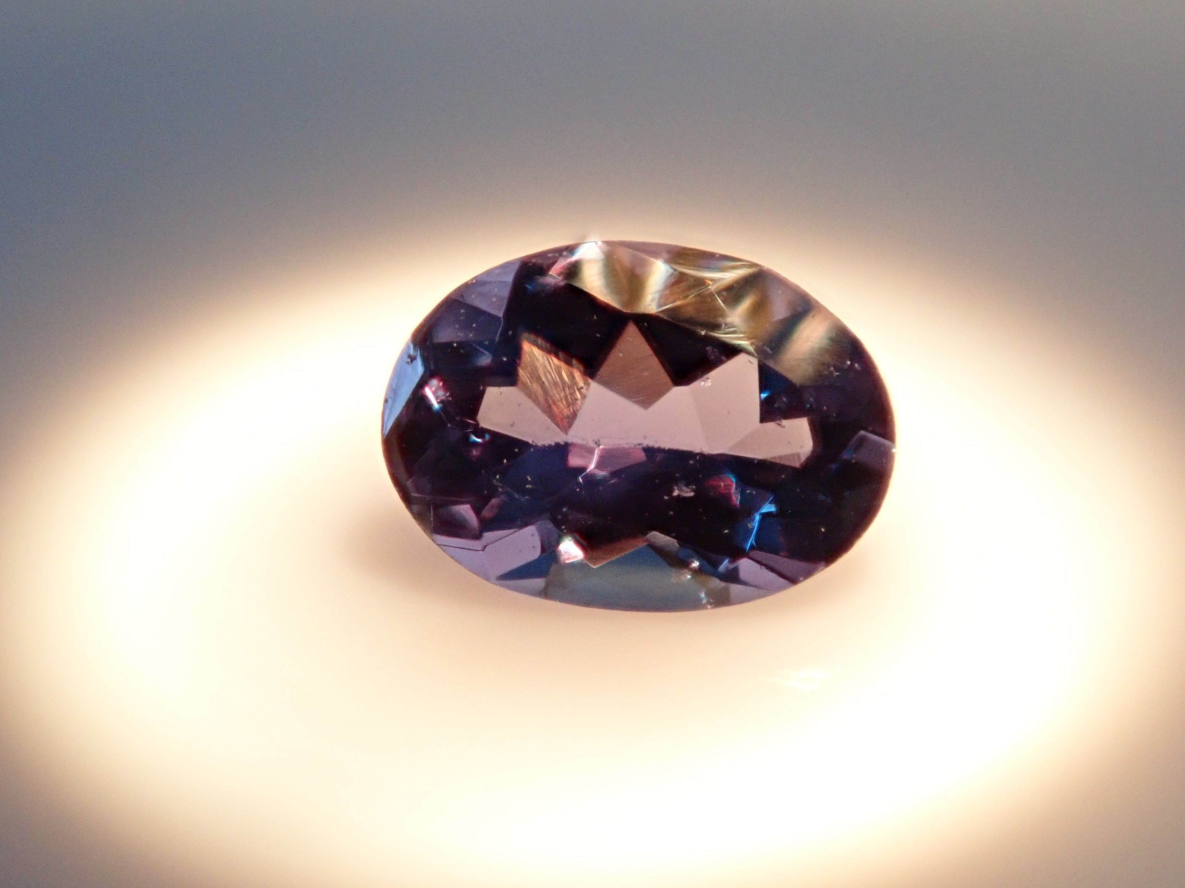 石榴石是著名的一月誕生石,也是最受歡迎的寶石之一。然而,這種會變色的石榴石在市面上並不常見,所以很多人可能誤以為石榴石會變色。這顆名為貝基里藍石榴石的石榴石相對罕見,略帶藍色。您可以使用紅色變色筆型手電筒來欣賞它的顏色變化。
