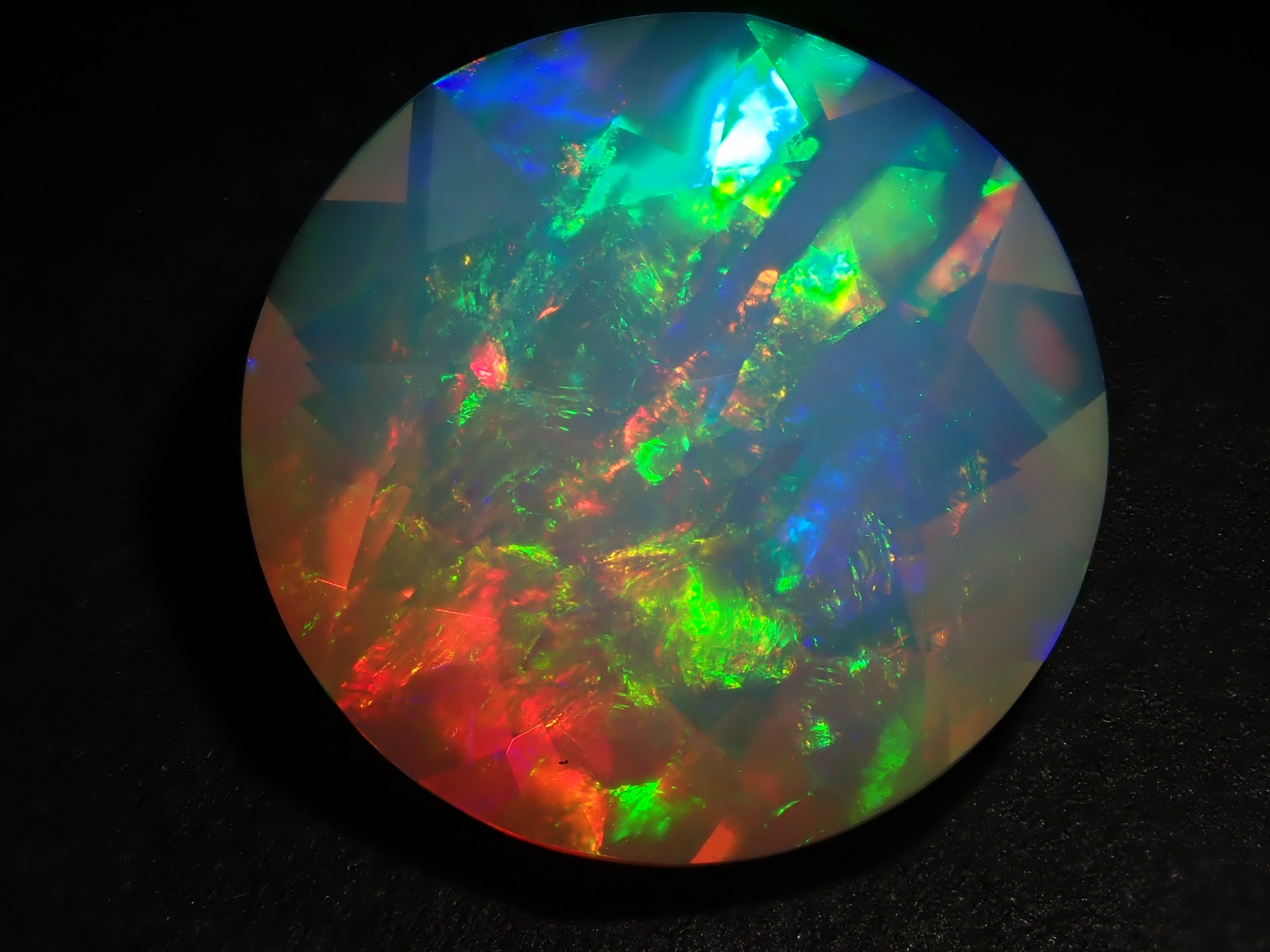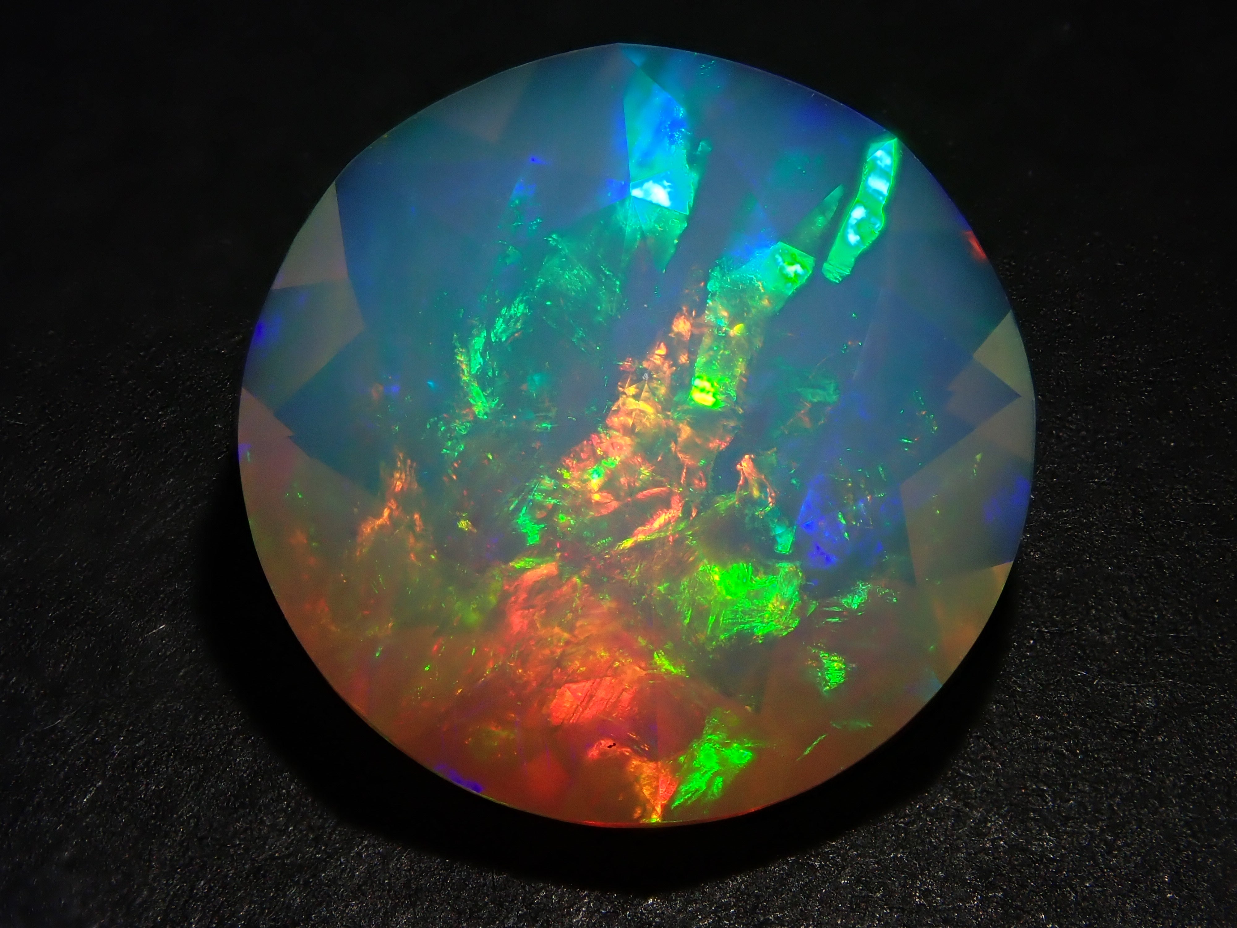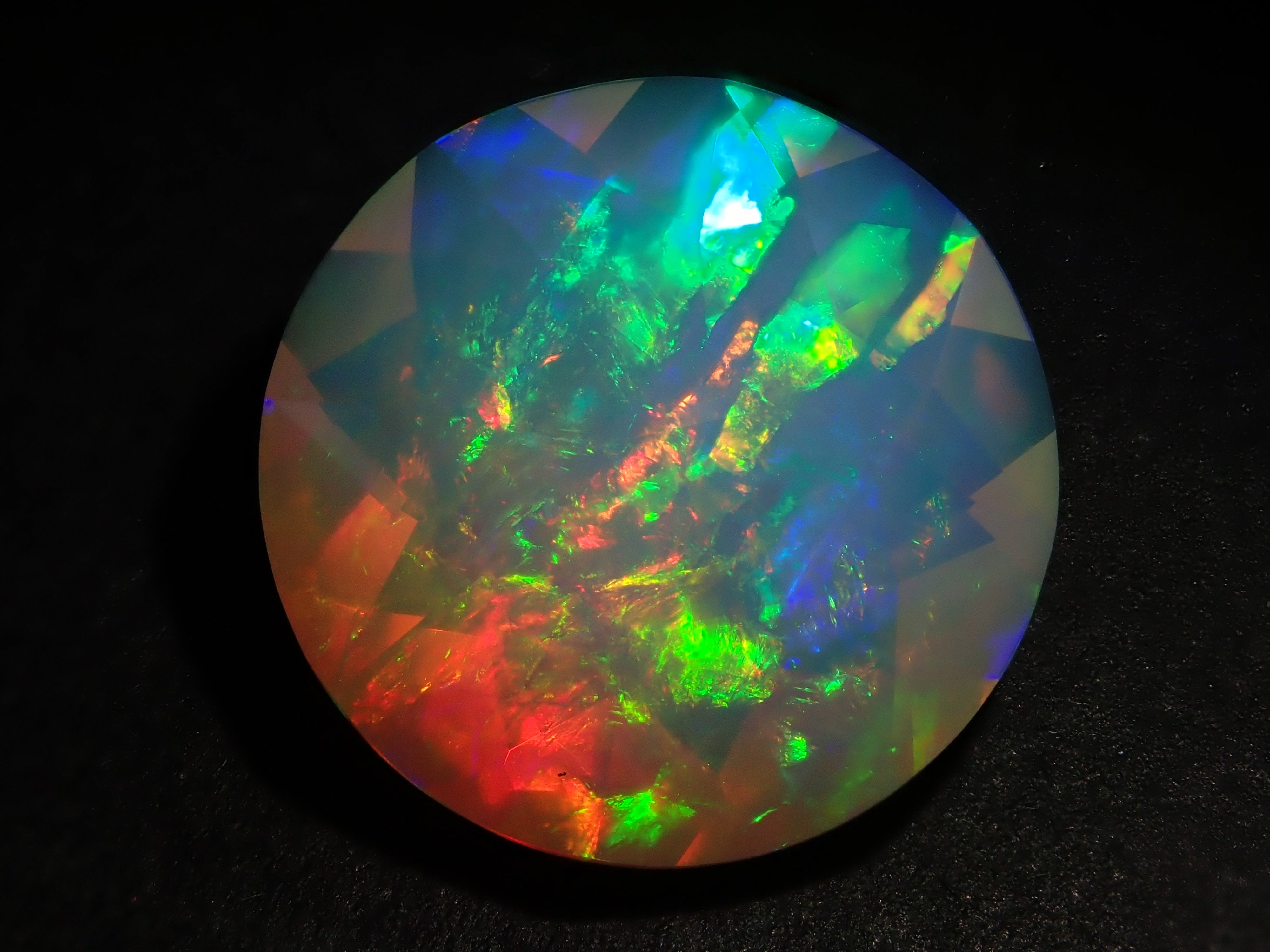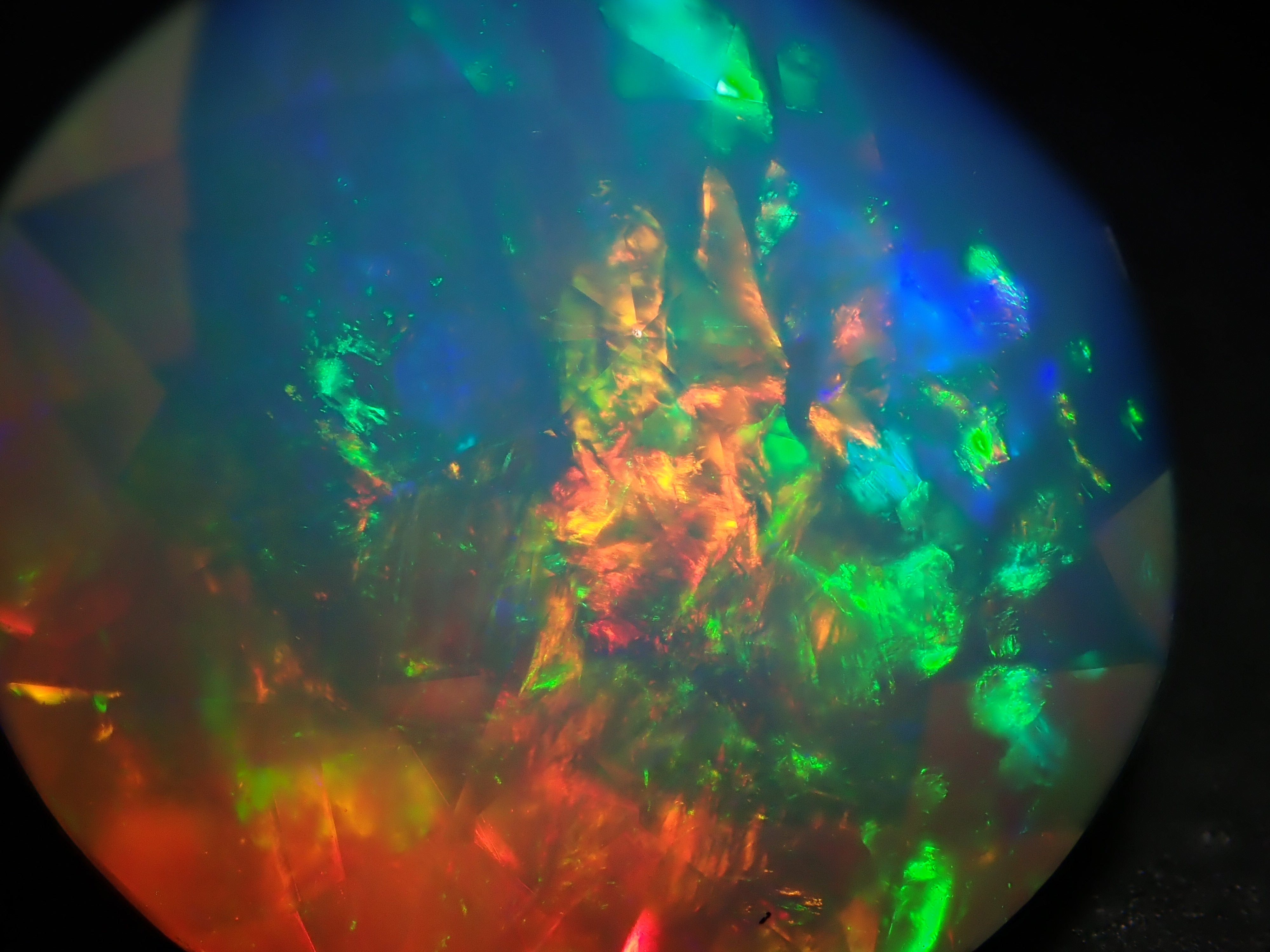 蛋白石是一種閃爍著彩虹色光芒的寶石。蛋白石是一種寶石,有許多不同的類型並具有多種表現形式。有些人被這種魅力所吸引,以至於只收集蛋白石。照片是使用筆燈拍攝的。