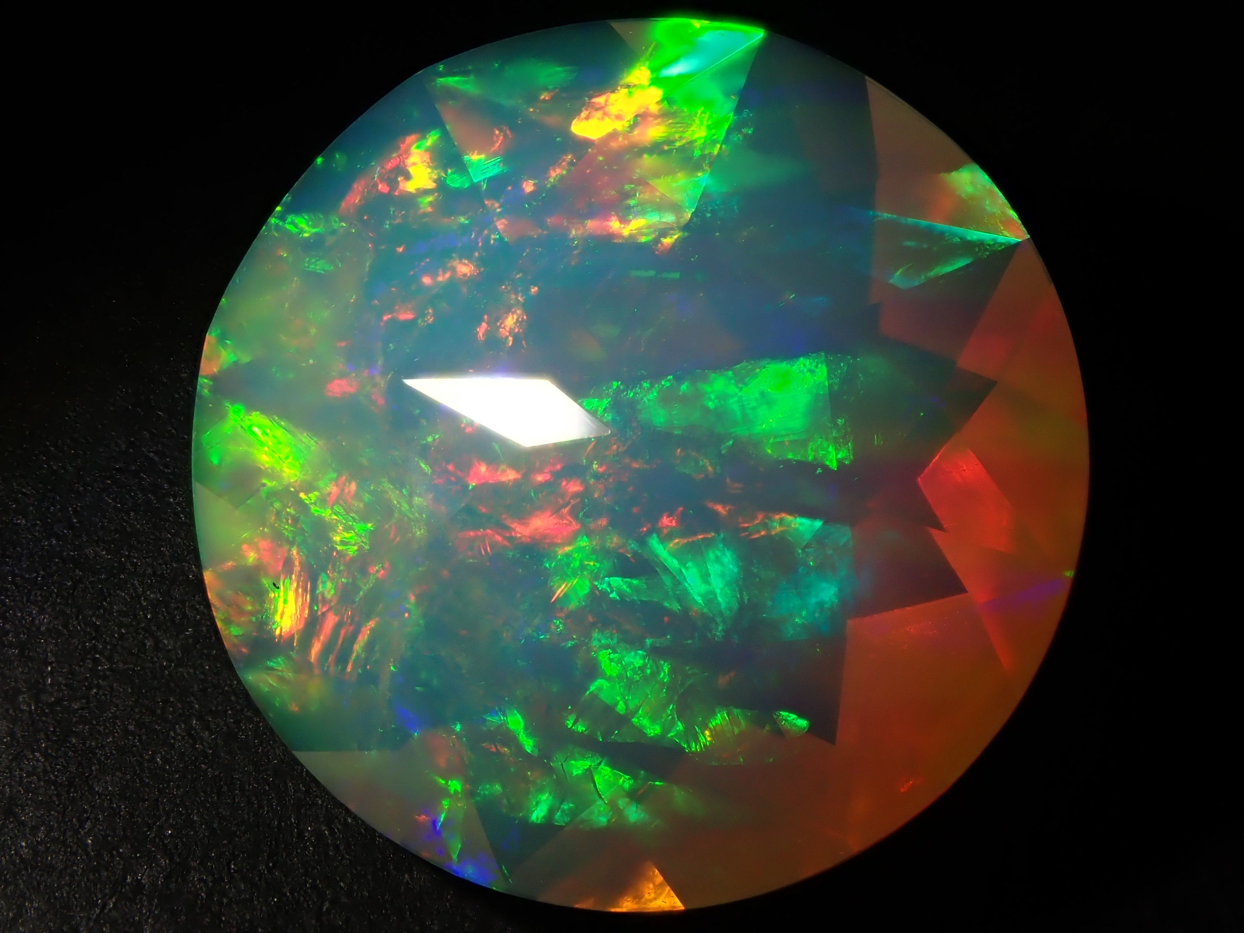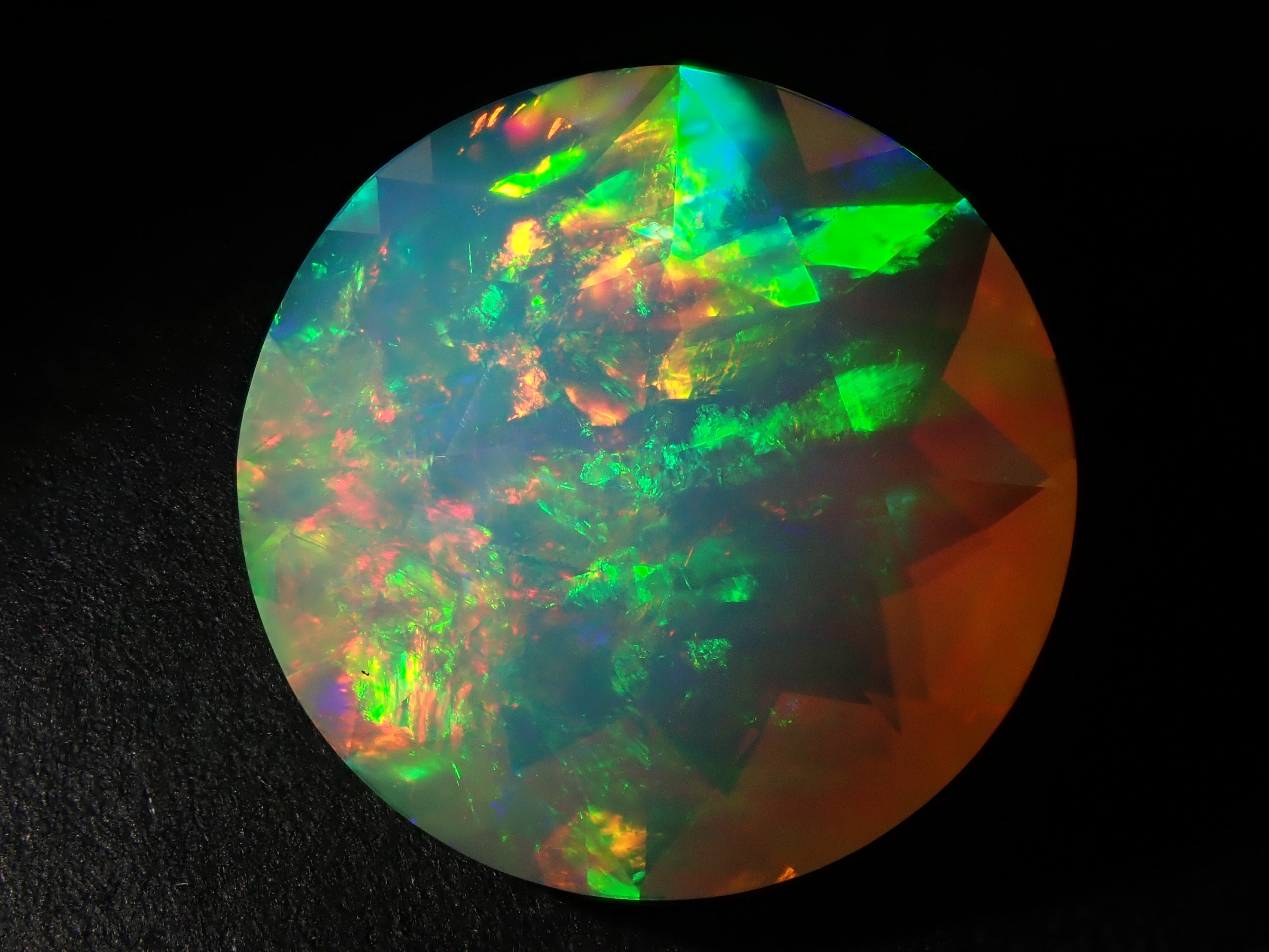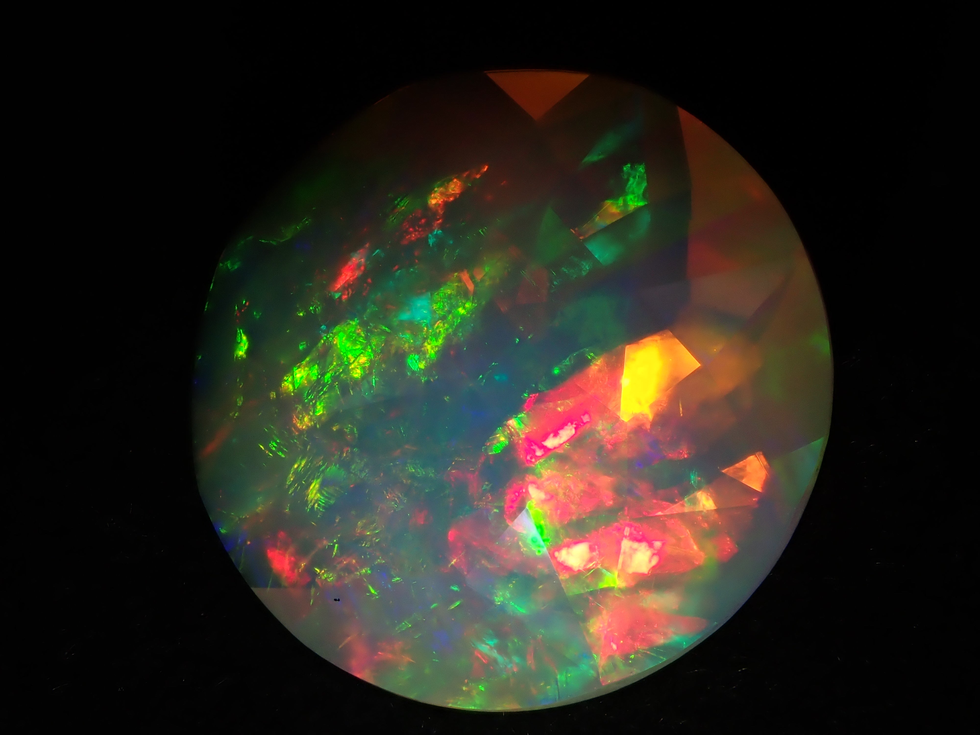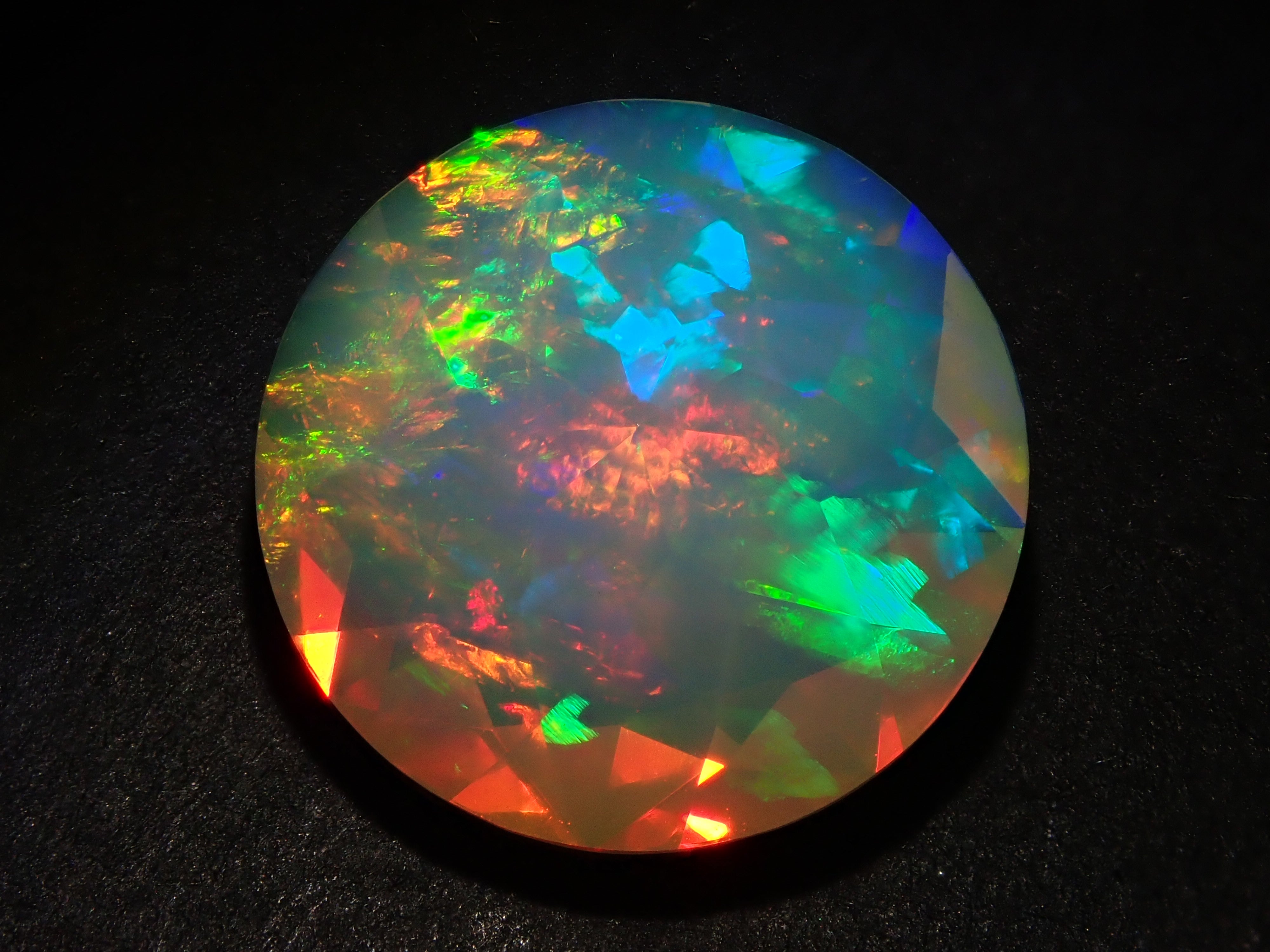 蛋白石是一種閃爍著彩虹色光芒的寶石。蛋白石是一種寶石,有許多不同的類型並具有多種表現形式。有些人被這種魅力所吸引,以至於只收集蛋白石。照片是使用筆燈拍攝的。